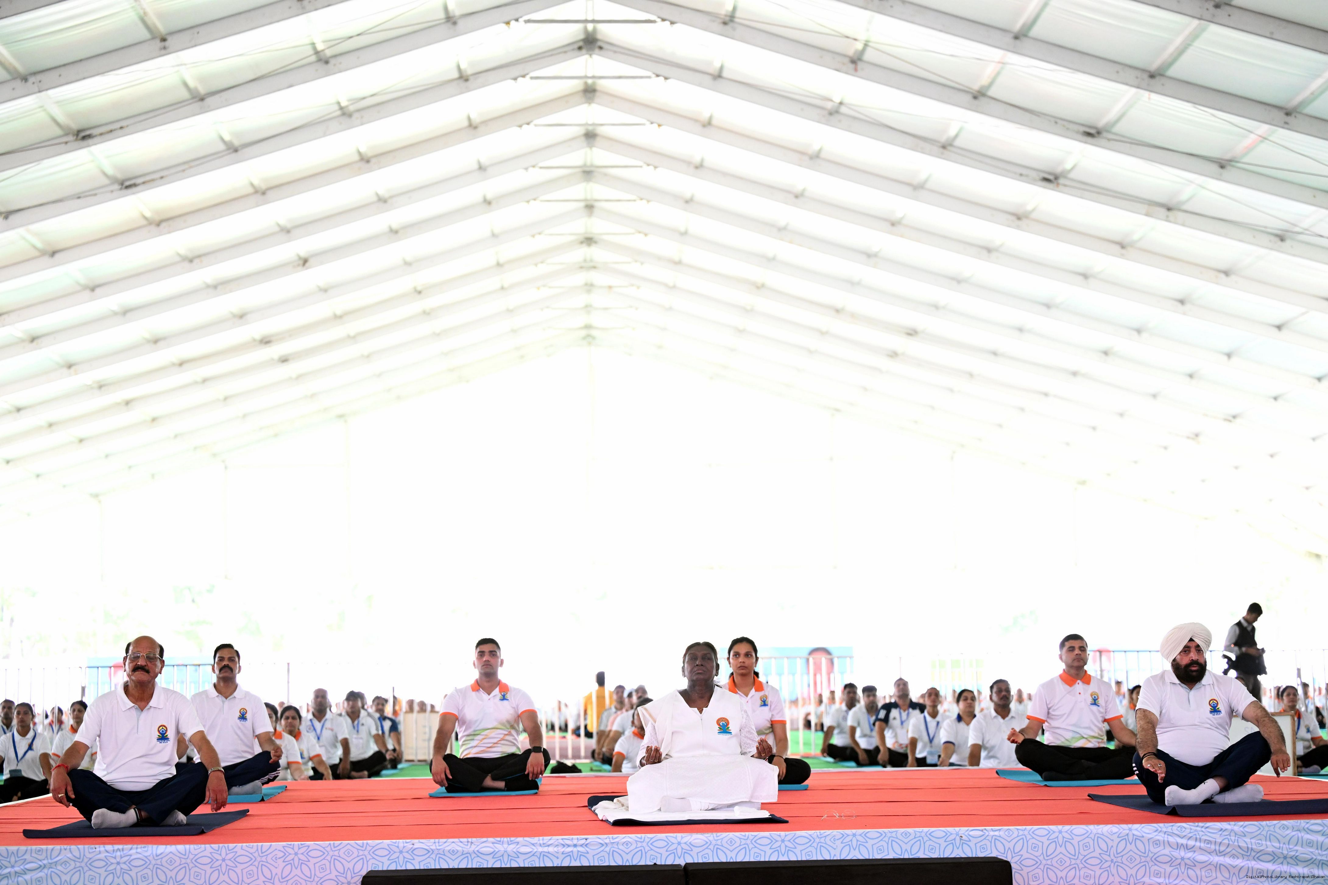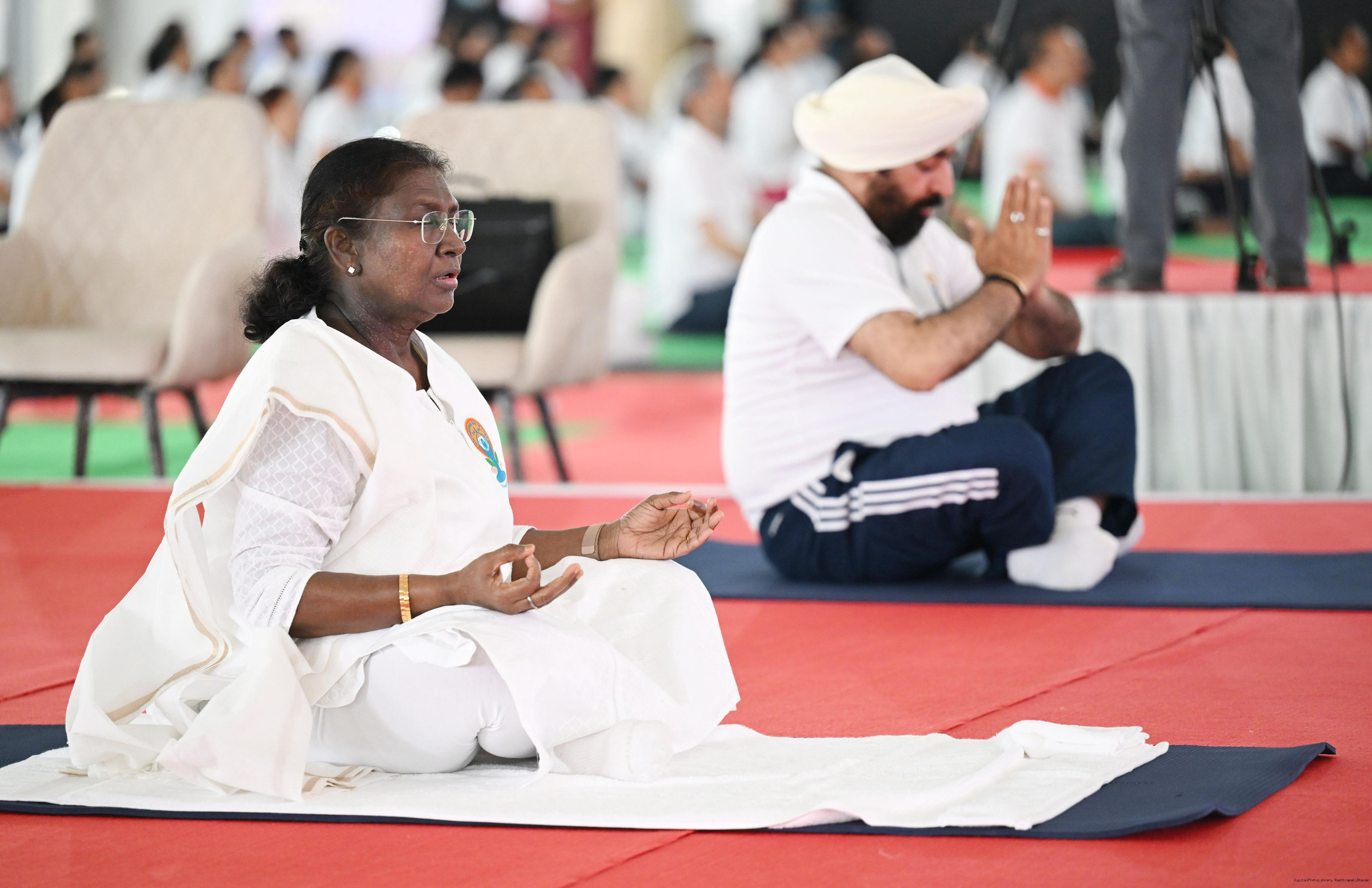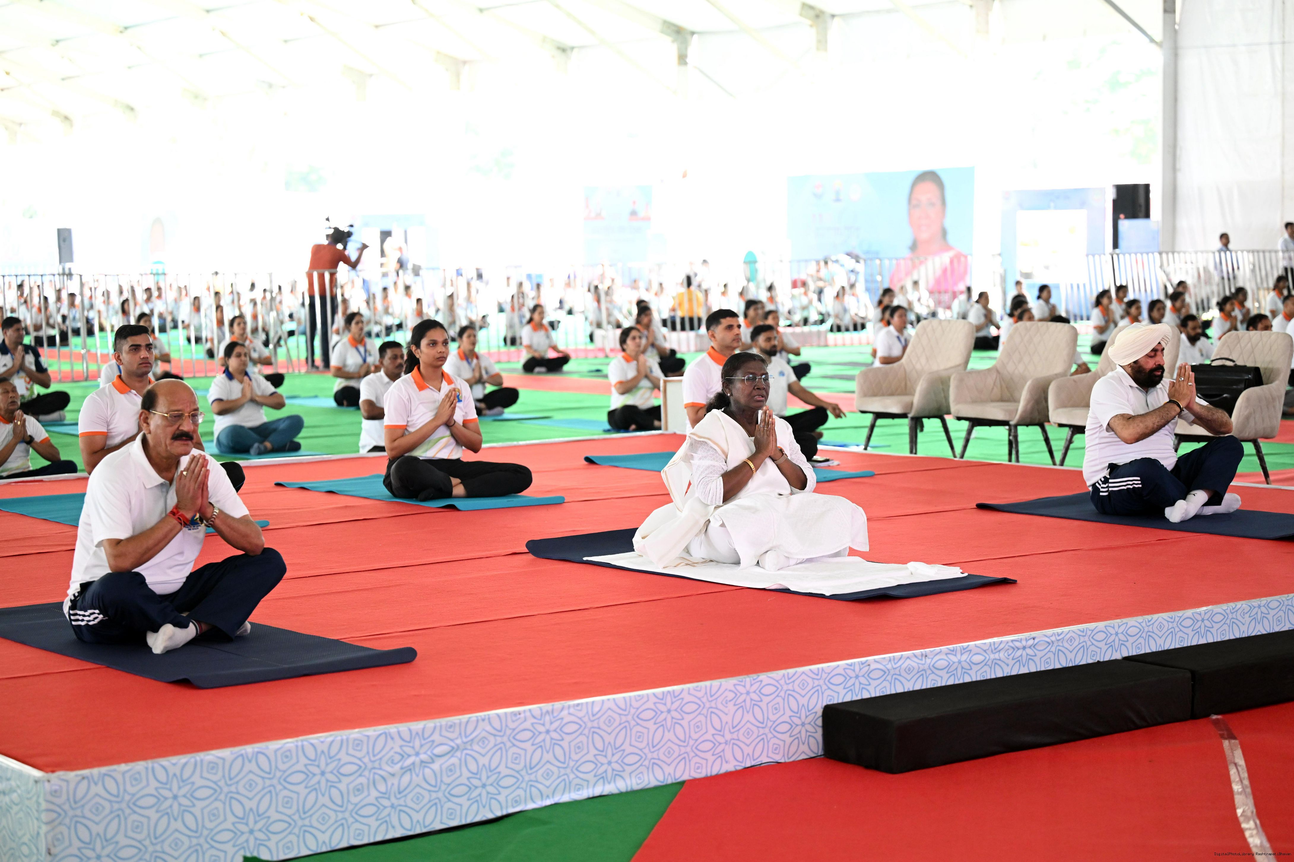 | Caption: | The President of India, Smt Droupadi Murmu participated in a mass yoga demonstration at the Uttarakhand State Police Line Maidan, Dehradun, on the International Yoga Day on June 21, 2025. |
