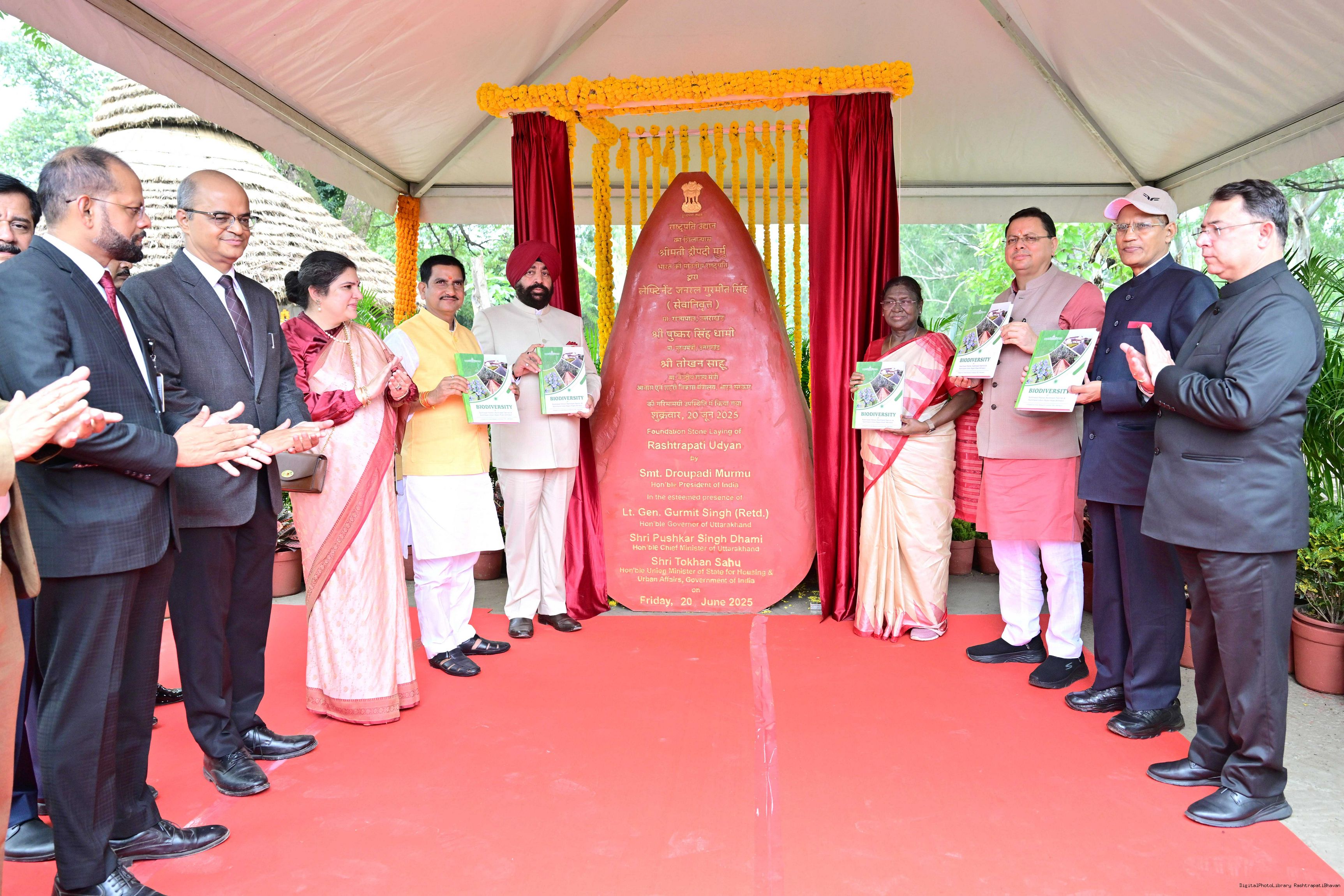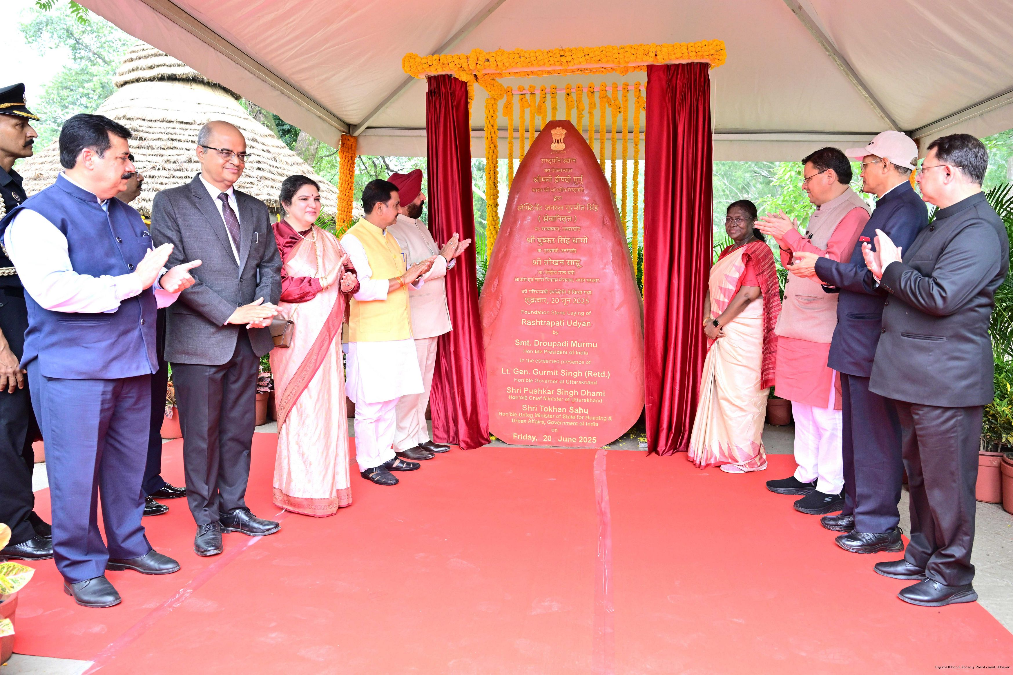 | Caption: | The President of India, Smt Droupadi Murmu laid of foundation stone of Rashtrapati Udyan Rajpur Road Dehradun on June 20, 2025. |