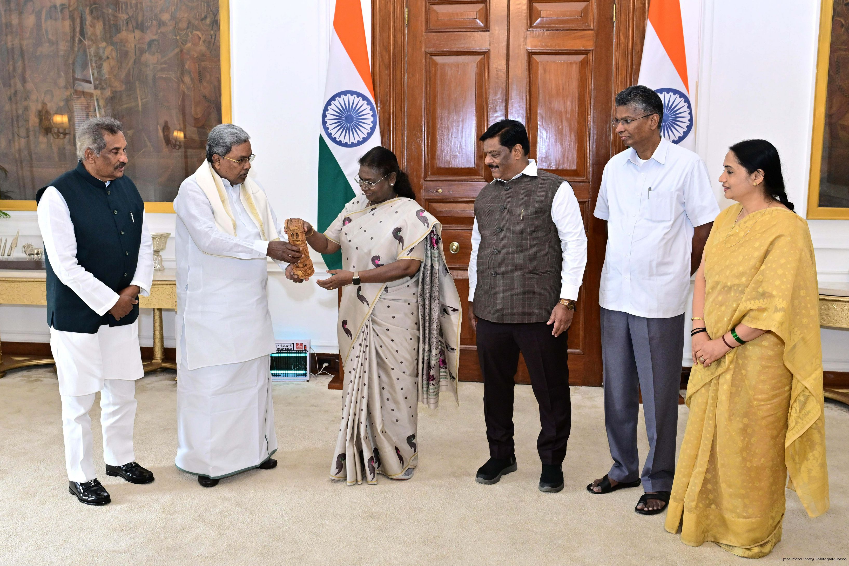 | Caption: | The Chief Minister of Karnataka, Shri Siddaramaiah called on the President of India, Smt Droupadi Murmu at Rashtrapati Bhavan on June 24, 2025. |