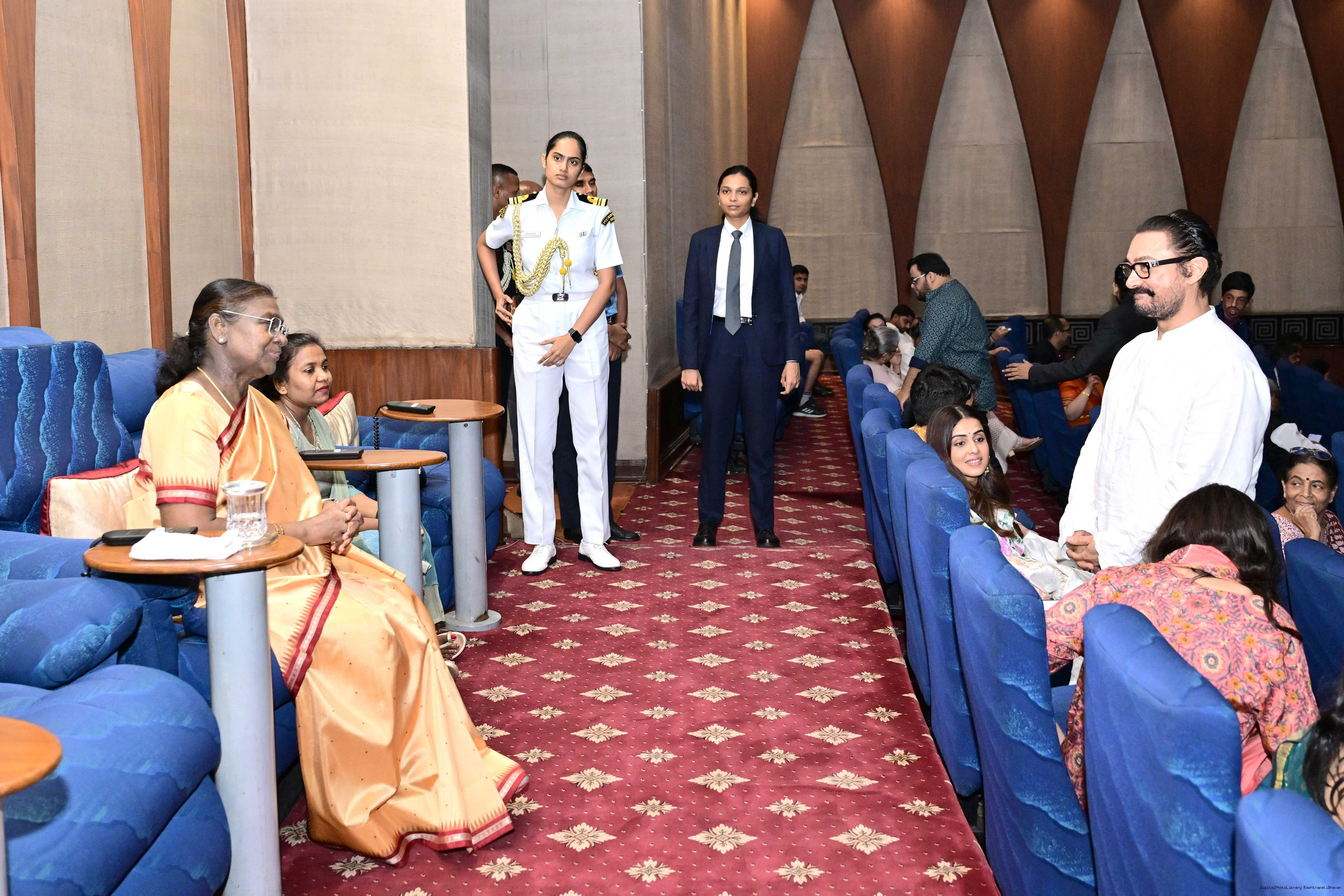 | Caption: | The President of India, Smt Droupadi Murmu watched the film 'Sitaare Zameen Par' at the Rashtrapati Bhavan Cultural Centre on June 24, 2025. |