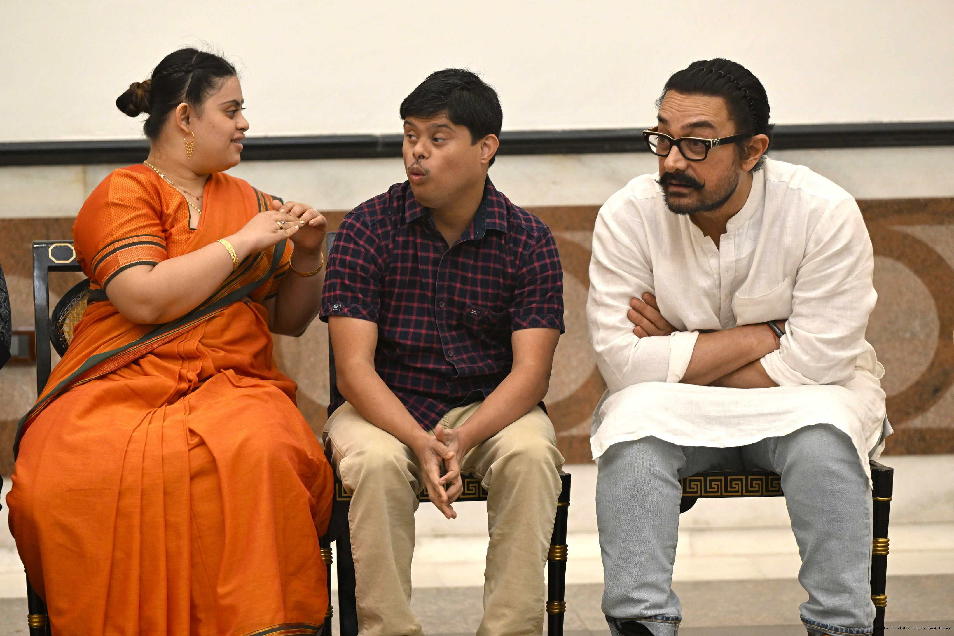| Caption: | The President of India, Smt Droupadi Murmu watched the film 'Sitaare Zameen Par' at the Rashtrapati Bhavan Cultural Centre on June 24, 2025. |