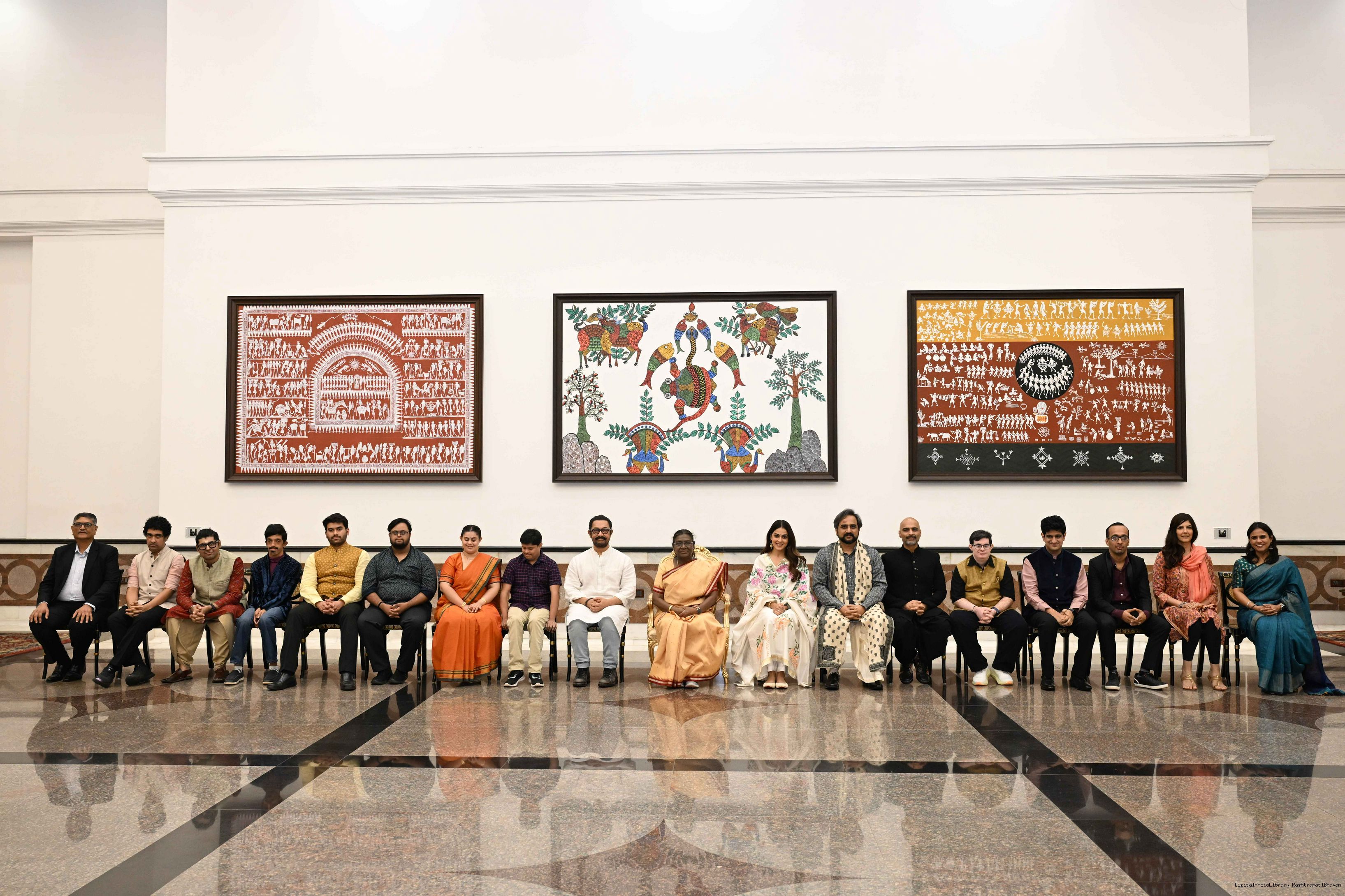 | Caption: | The President of India, Smt Droupadi Murmu watched the film 'Sitaare Zameen Par' at the Rashtrapati Bhavan Cultural Centre on June 24, 2025. |