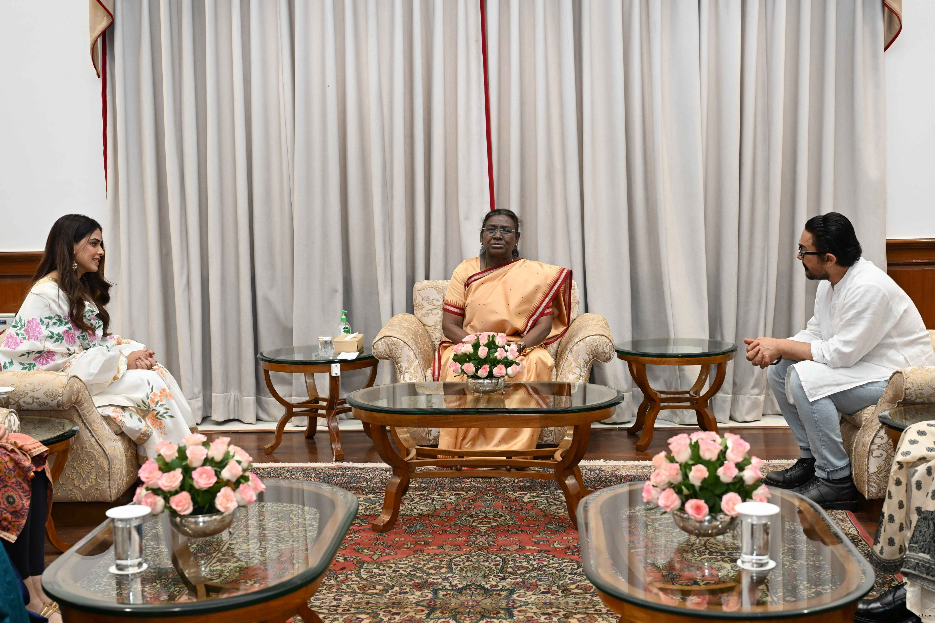 | Caption: | The President of India, Smt Droupadi Murmu watched the film 'Sitaare Zameen Par' at the Rashtrapati Bhavan Cultural Centre on June 24, 2025. |