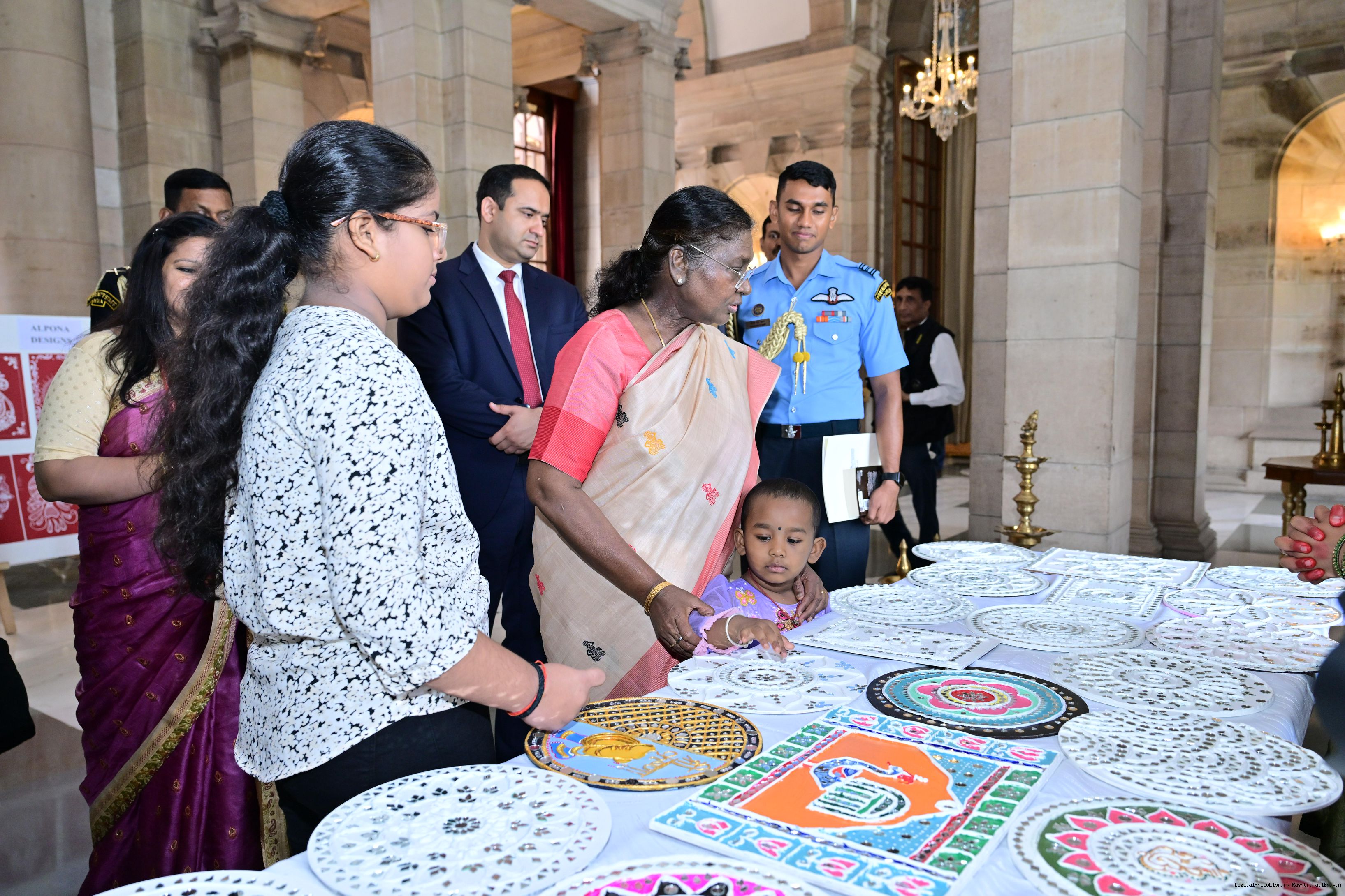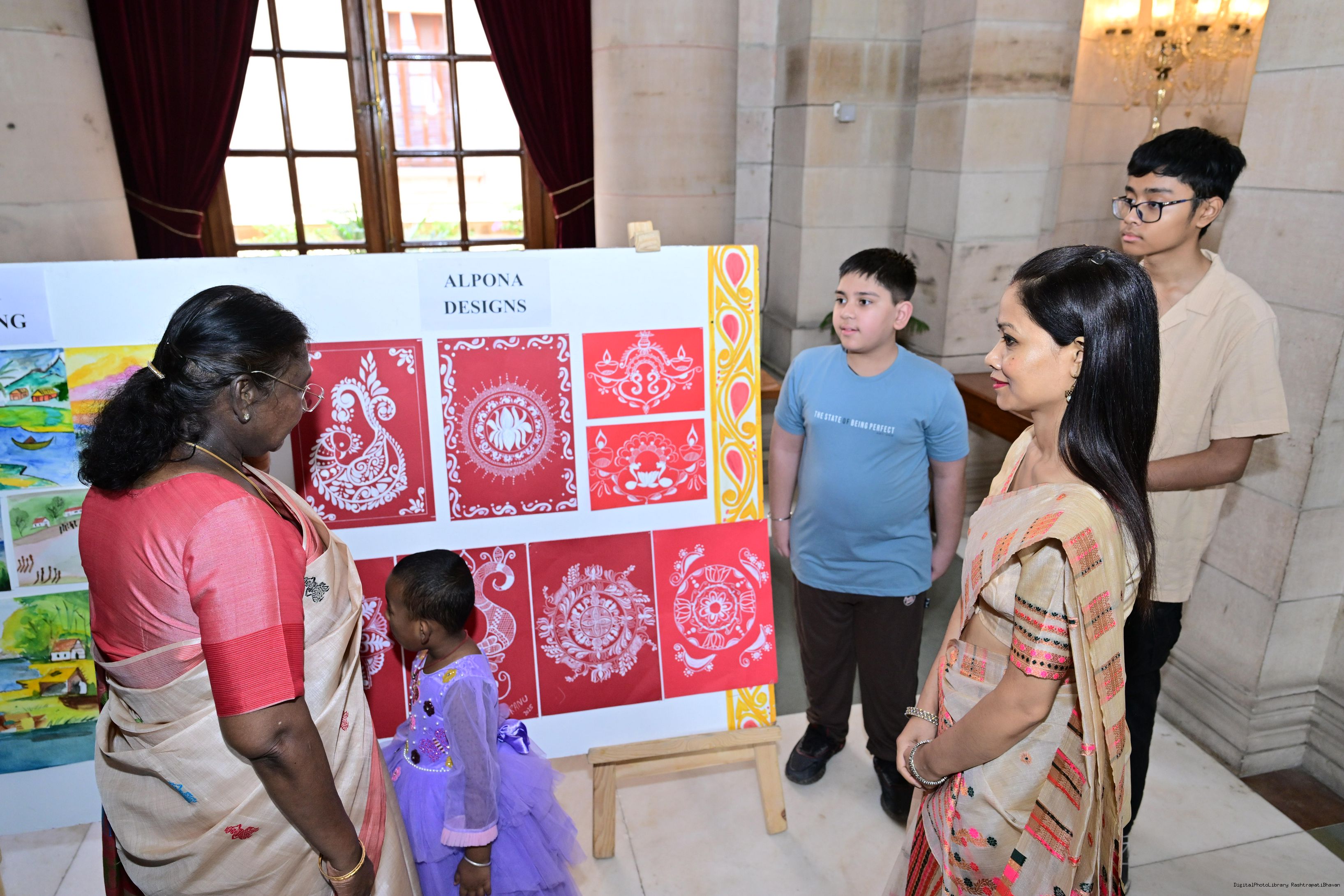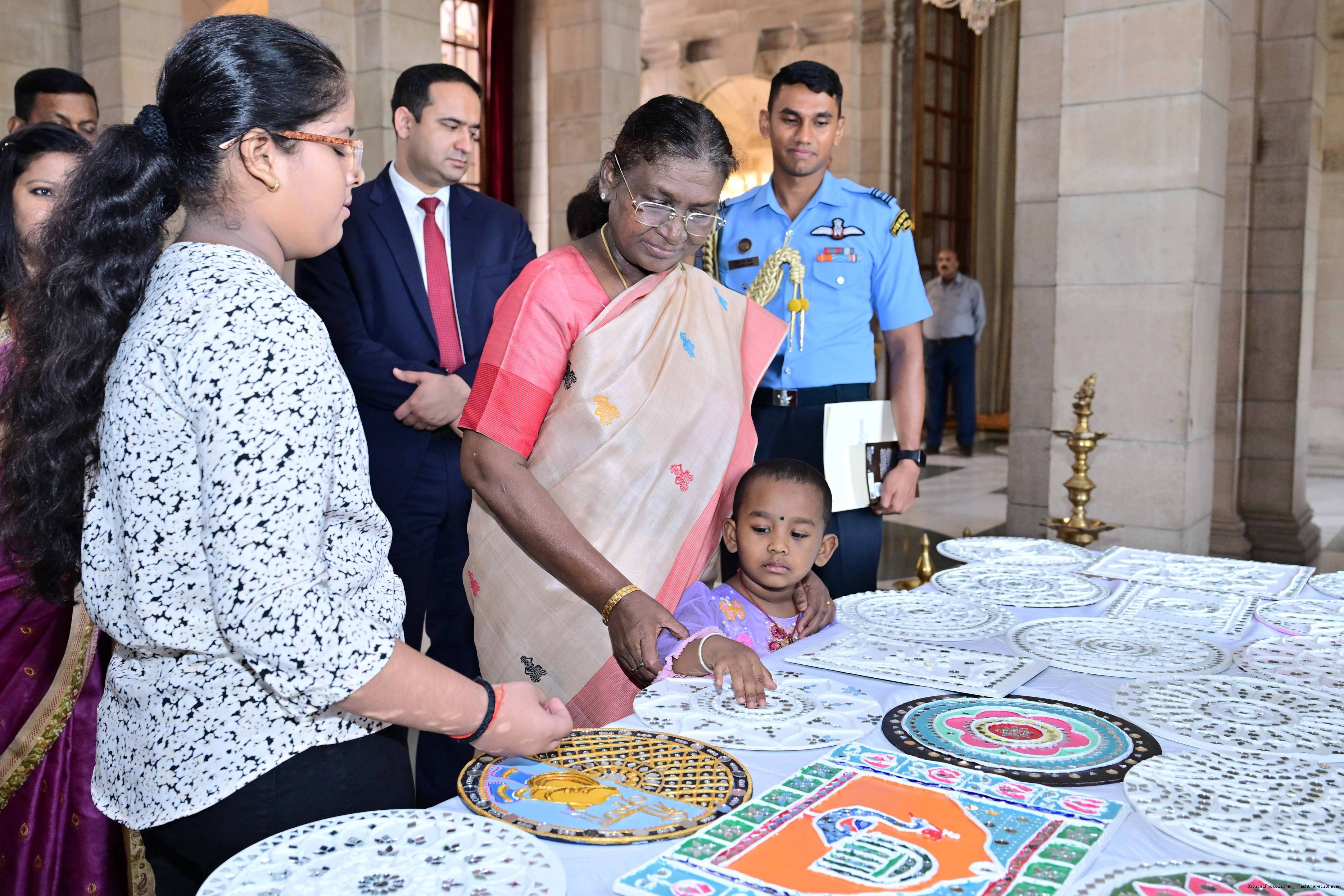| Caption: | The President of India, Smt Droupadi Murmu interacted with photo opportunity with around 70 children from the Summer Workshop at President's Estate at Rashtrapati Bhavan on June 27, 2025. |