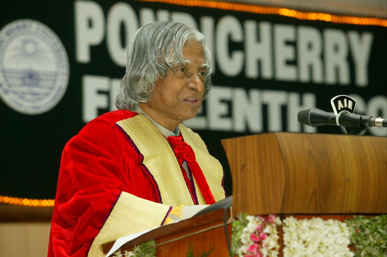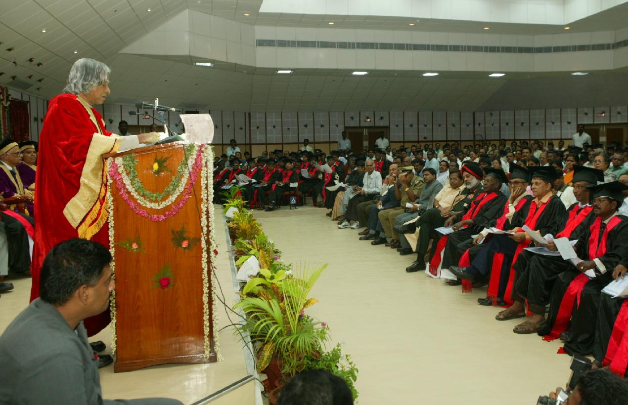 | Caption: | The President of India, Dr A P J Abdul Kalam addressing at the Convocation by the Priconvocation Pondicherry University in Pondicherry on Nov 01, 2004 |