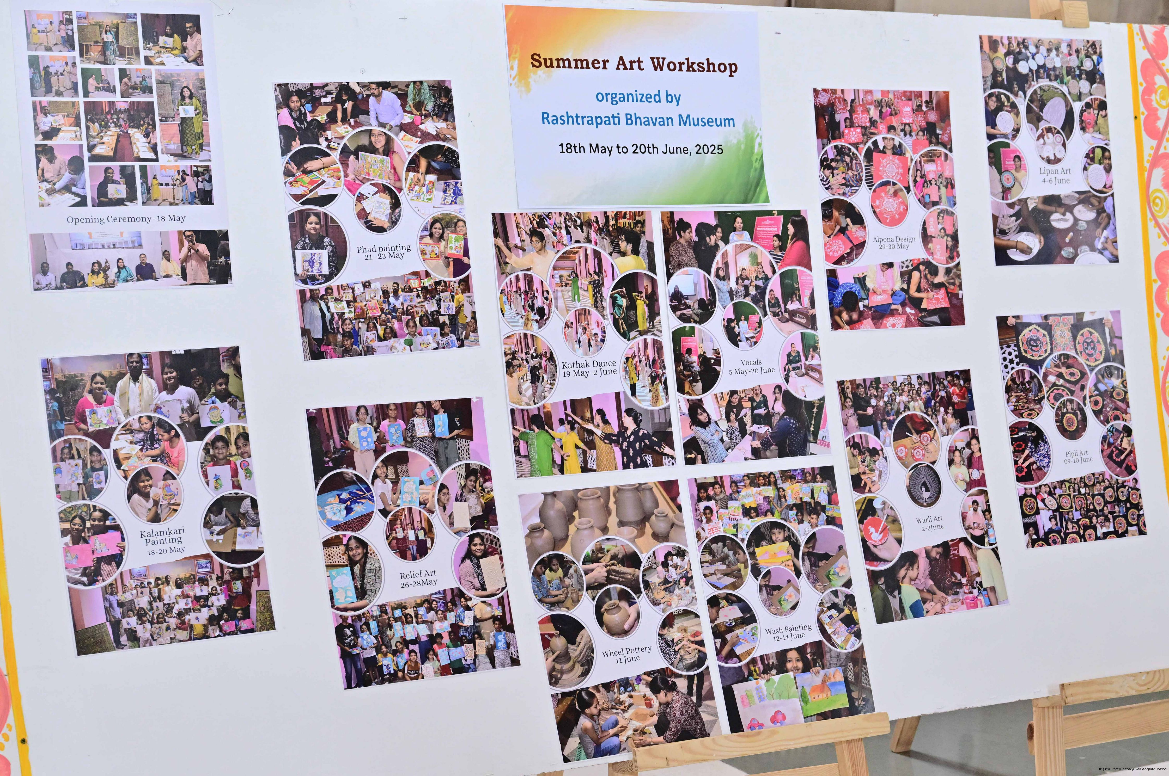 | Caption: | The President of India, Smt Droupadi Murmu interacted with photo opportunity with around 70 children from the Summer Workshop at President's Estate at Rashtrapati Bhavan on June 27, 2025. |