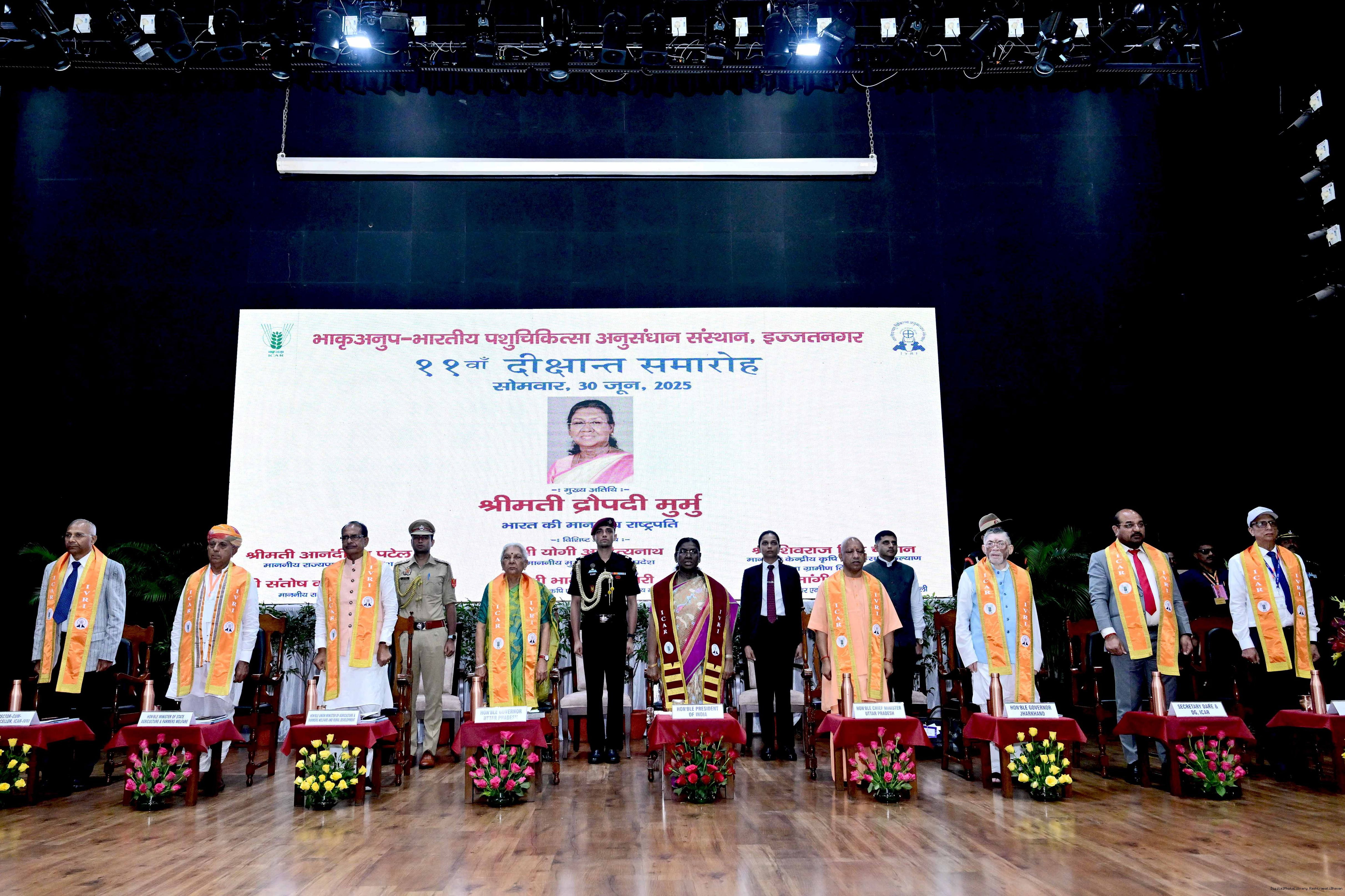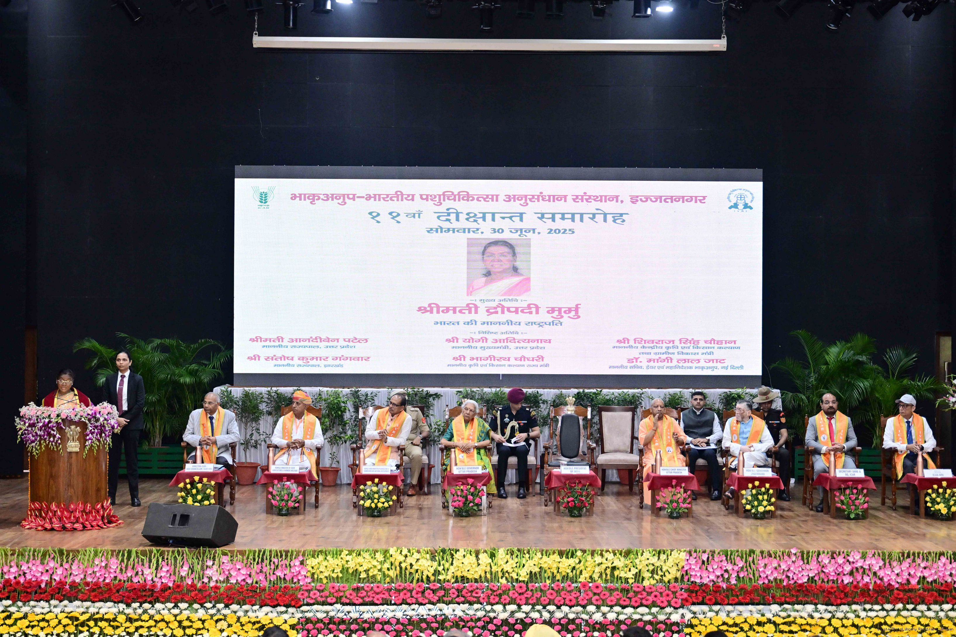 | Caption: | The President of India, Smt Droupadi Murmu graced the convocation ceremony of the Indian Veterinary Research Institute (IVRI) at Bareilly, Uttar Pradesh on June 30, 2025. |
