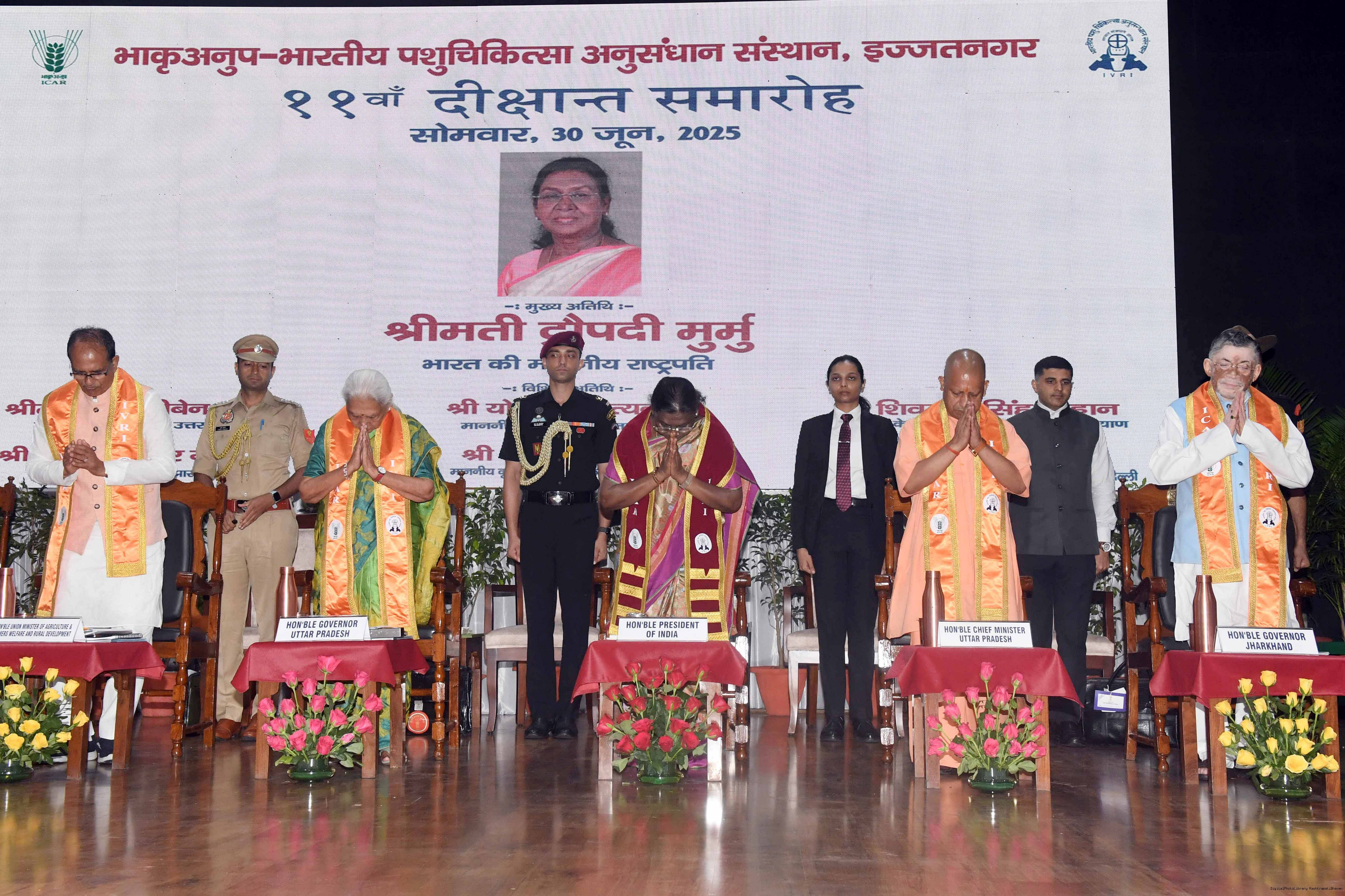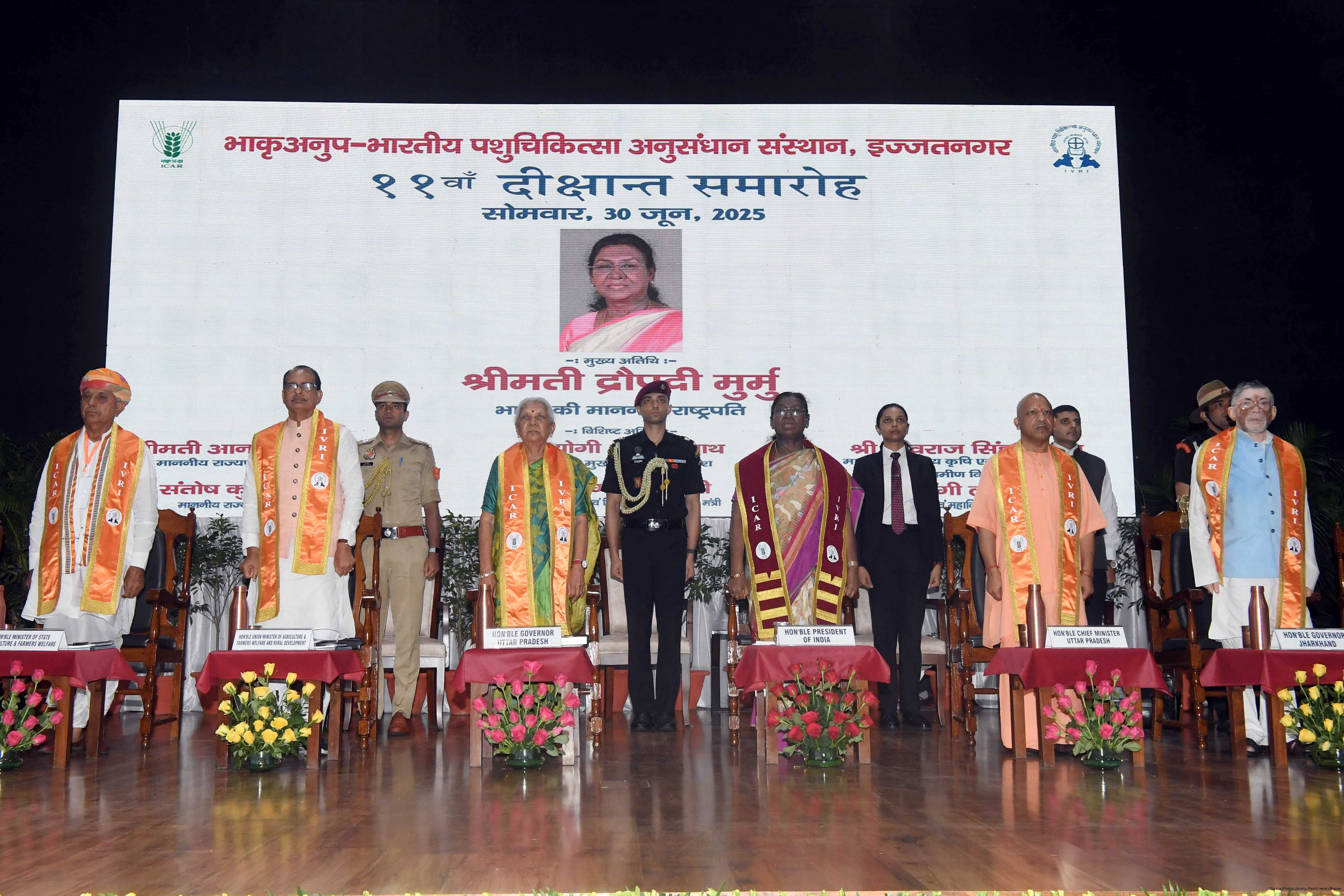 | Caption: | The President of India, Smt Droupadi Murmu graced the convocation ceremony of the Indian Veterinary Research Institute (IVRI) at Bareilly, Uttar Pradesh on June 30, 2025. |
