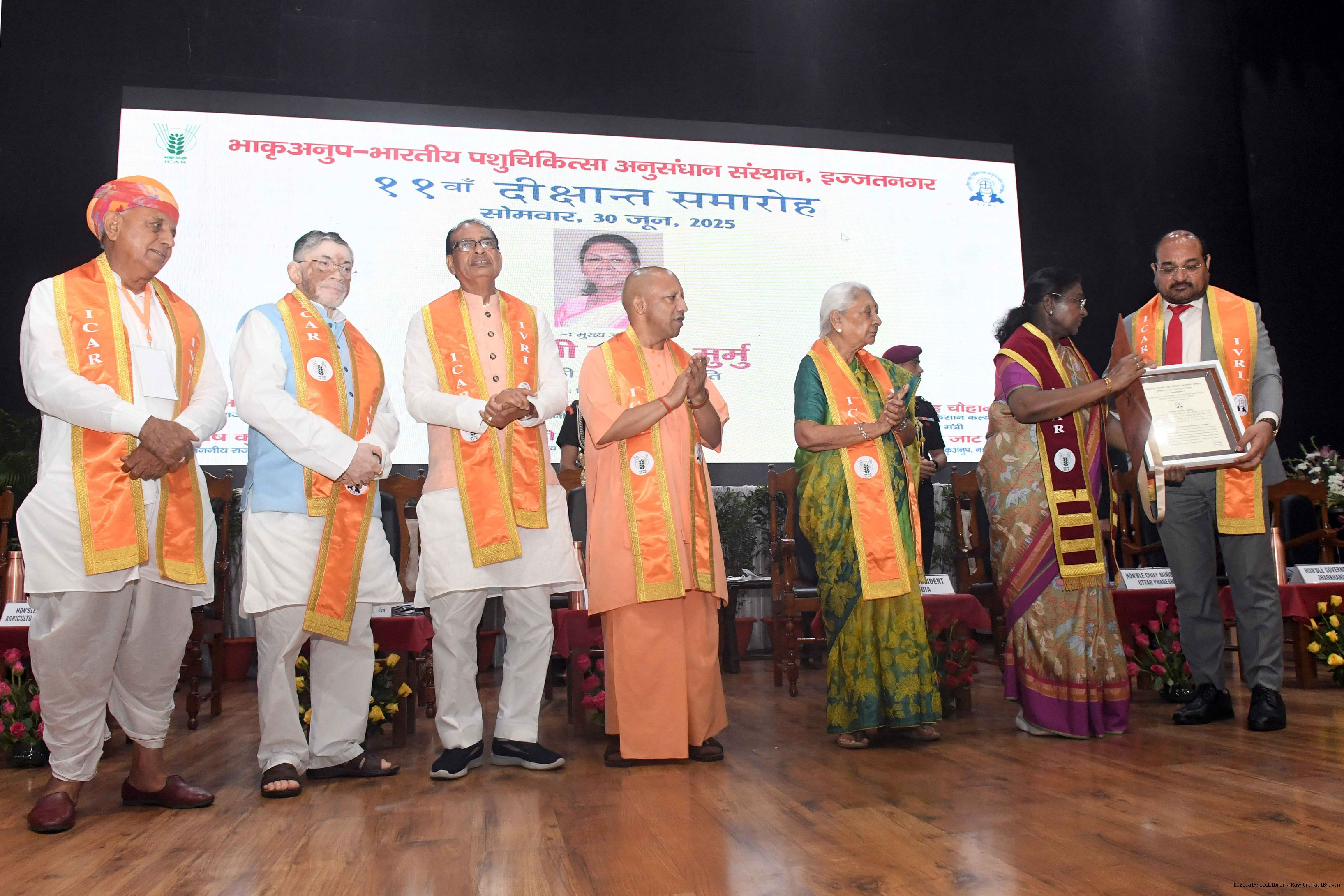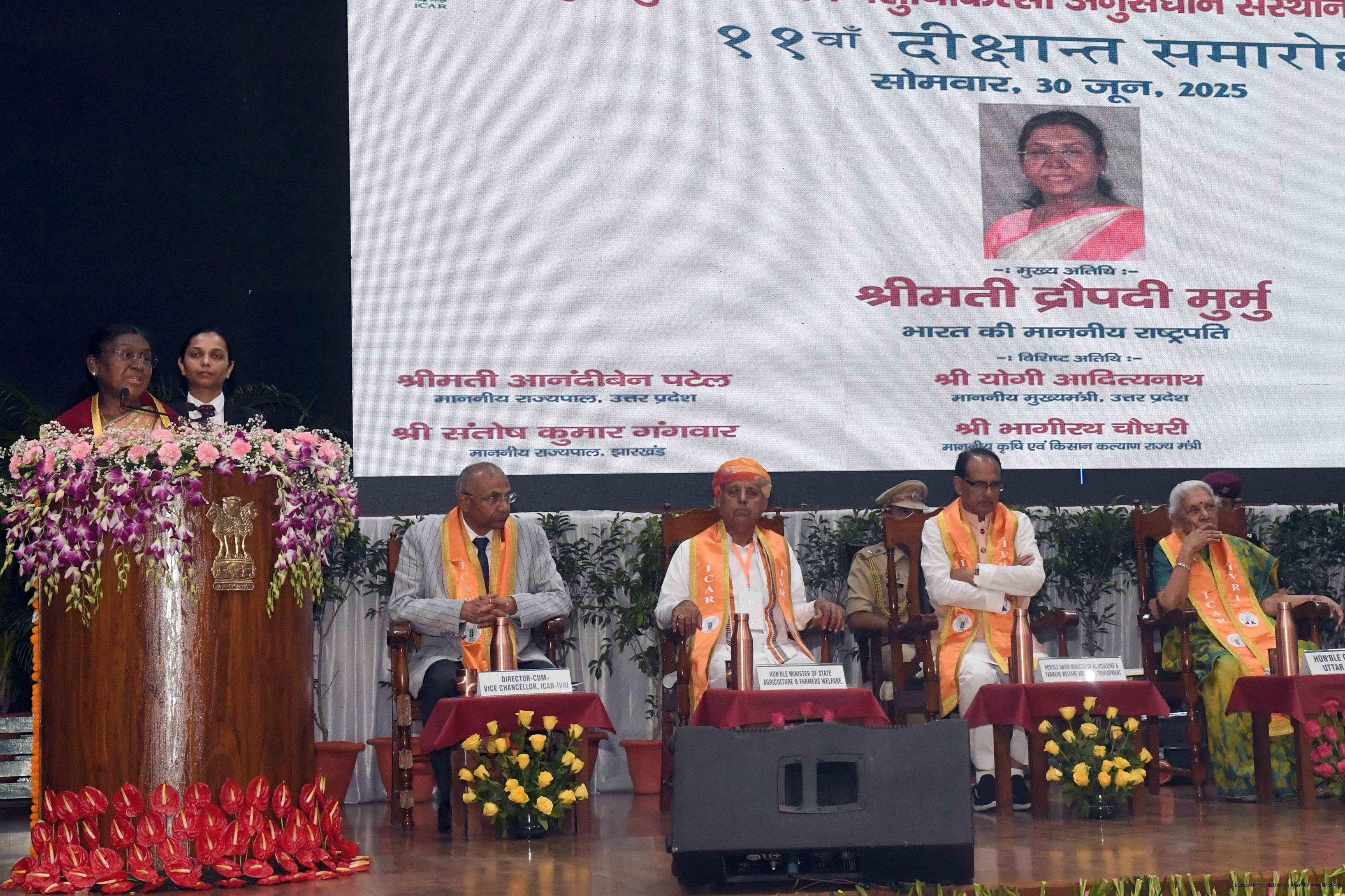| Caption: | The President of India, Smt Droupadi Murmu graced the convocation ceremony of the Indian Veterinary Research Institute (IVRI) at Bareilly, Uttar Pradesh on June 30, 2025. |
