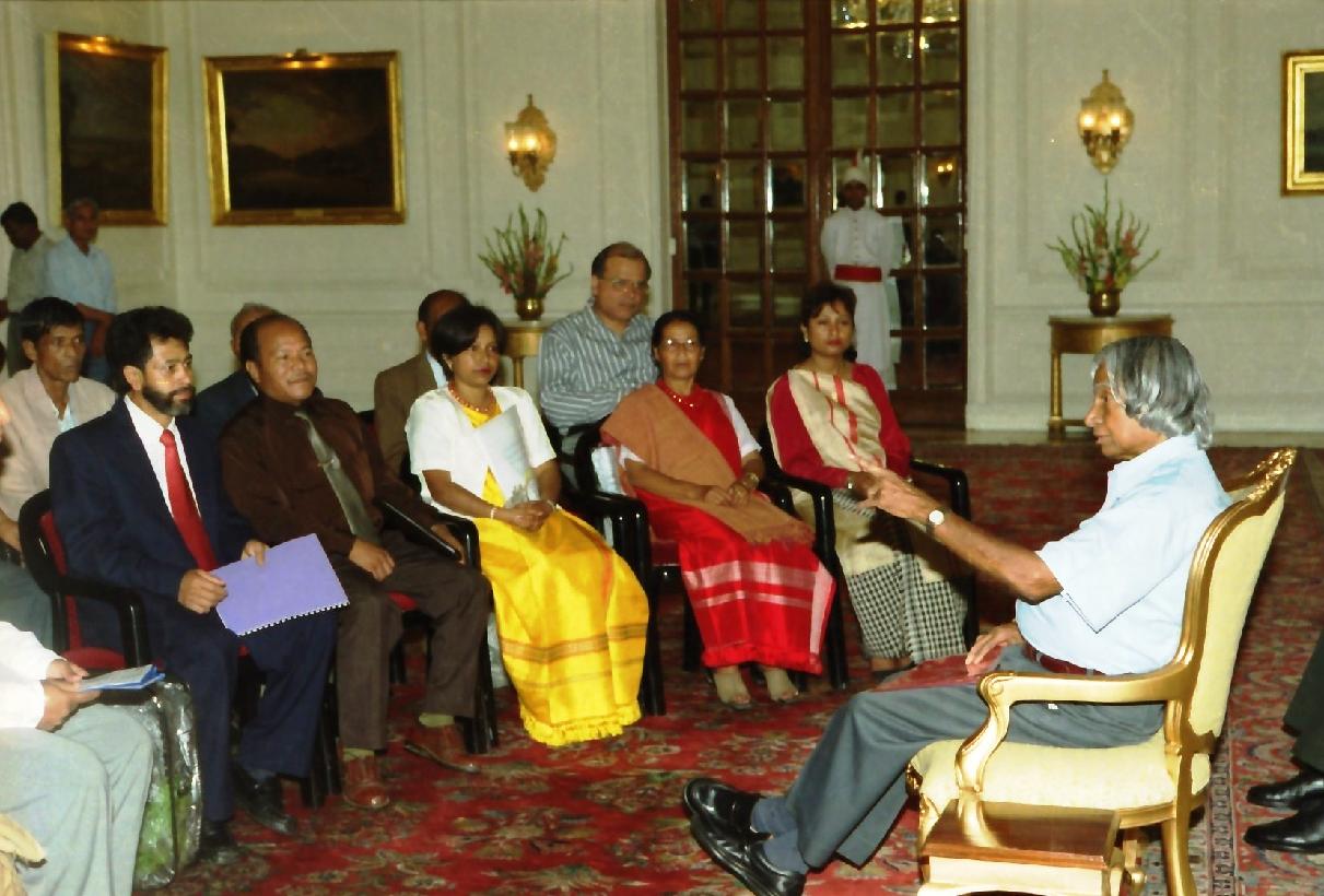 | Caption: | A Delegation of Herbal Farmers and Practitioners from the Khasi School of Medicine Shillong calling on the President of India, Dr A P J Abdul Kalam at the Yellow Drawing Room of Rashtrapati Bhavan in New Delhi on June 20, 2003 |