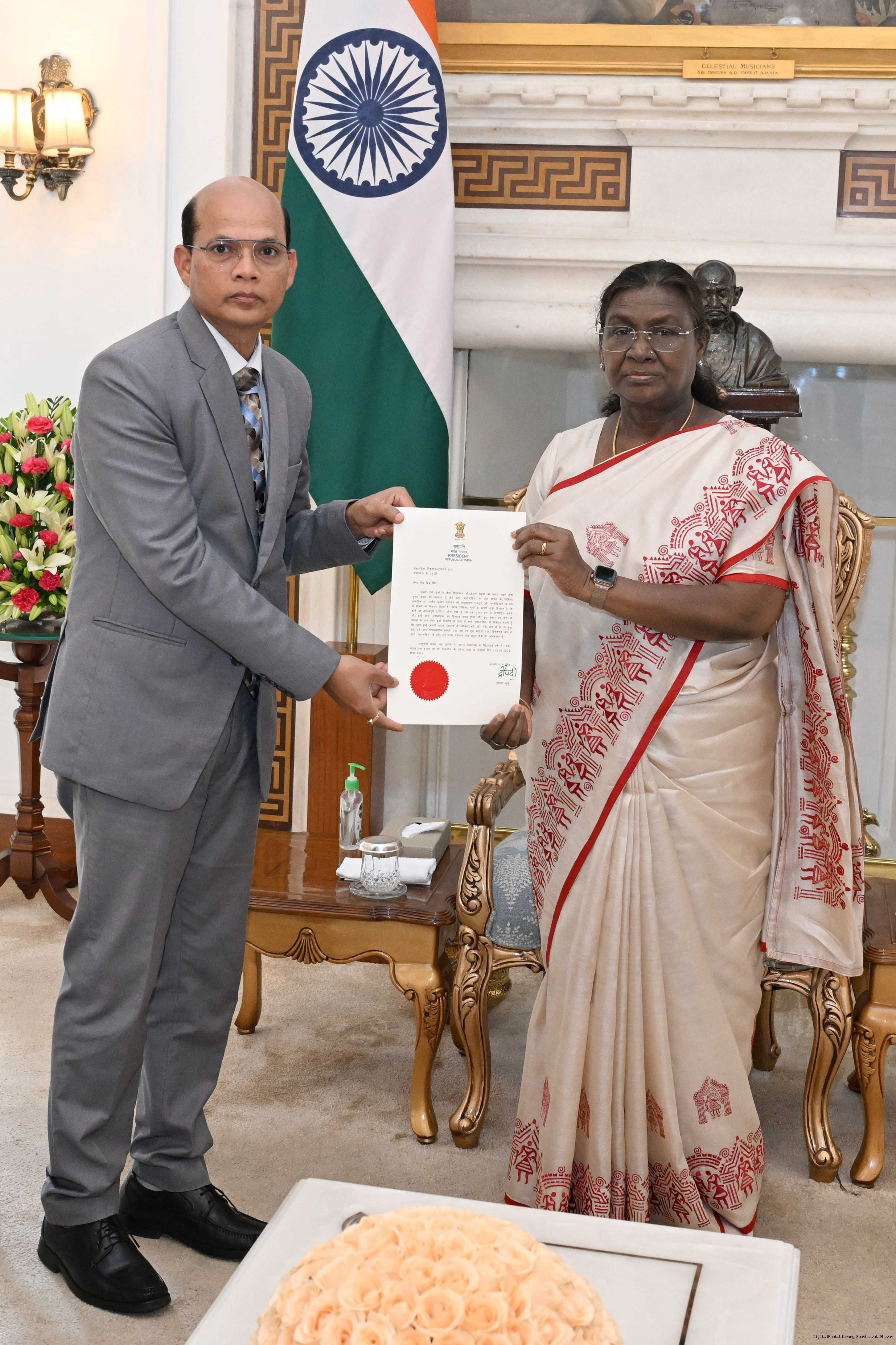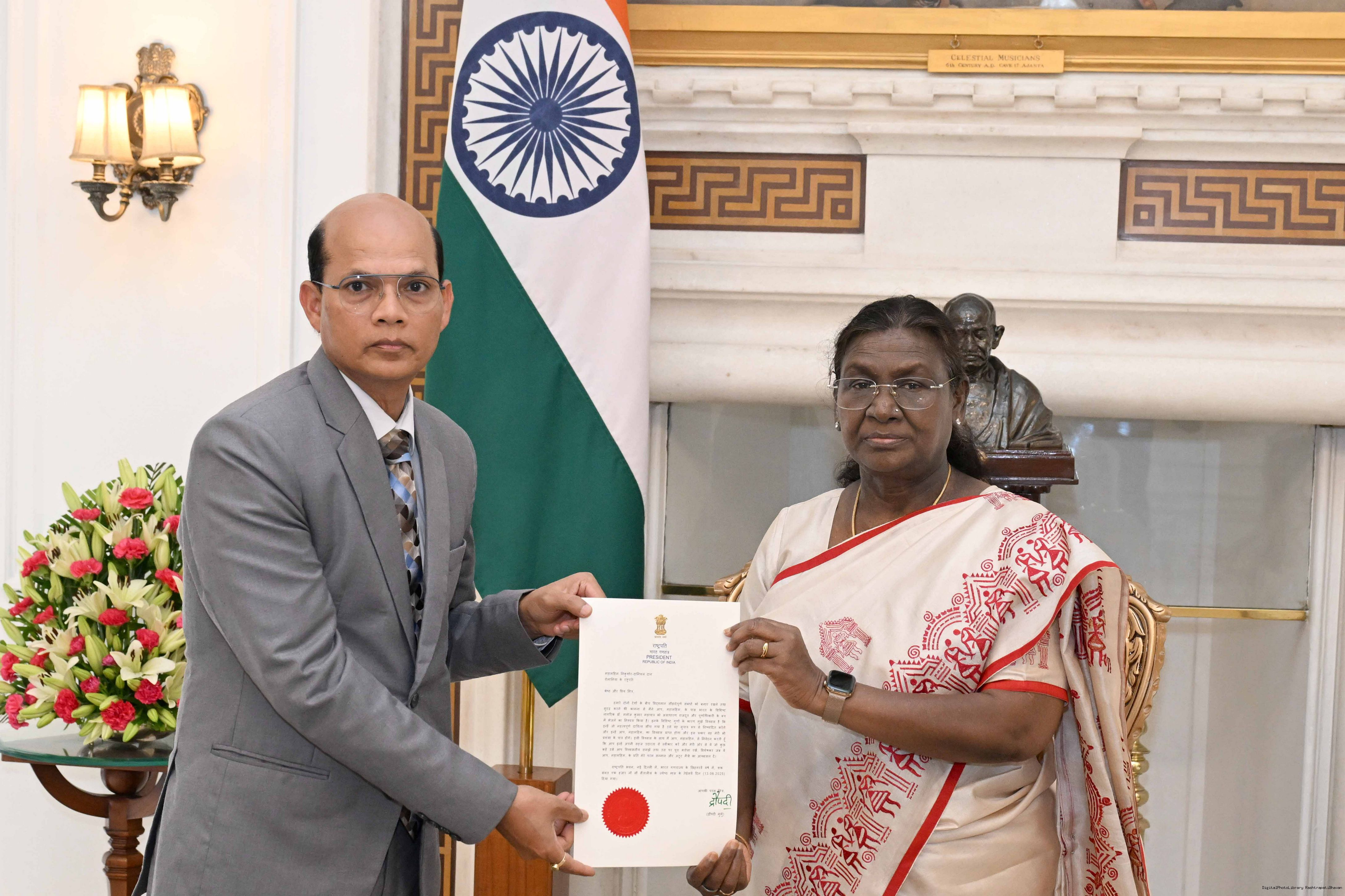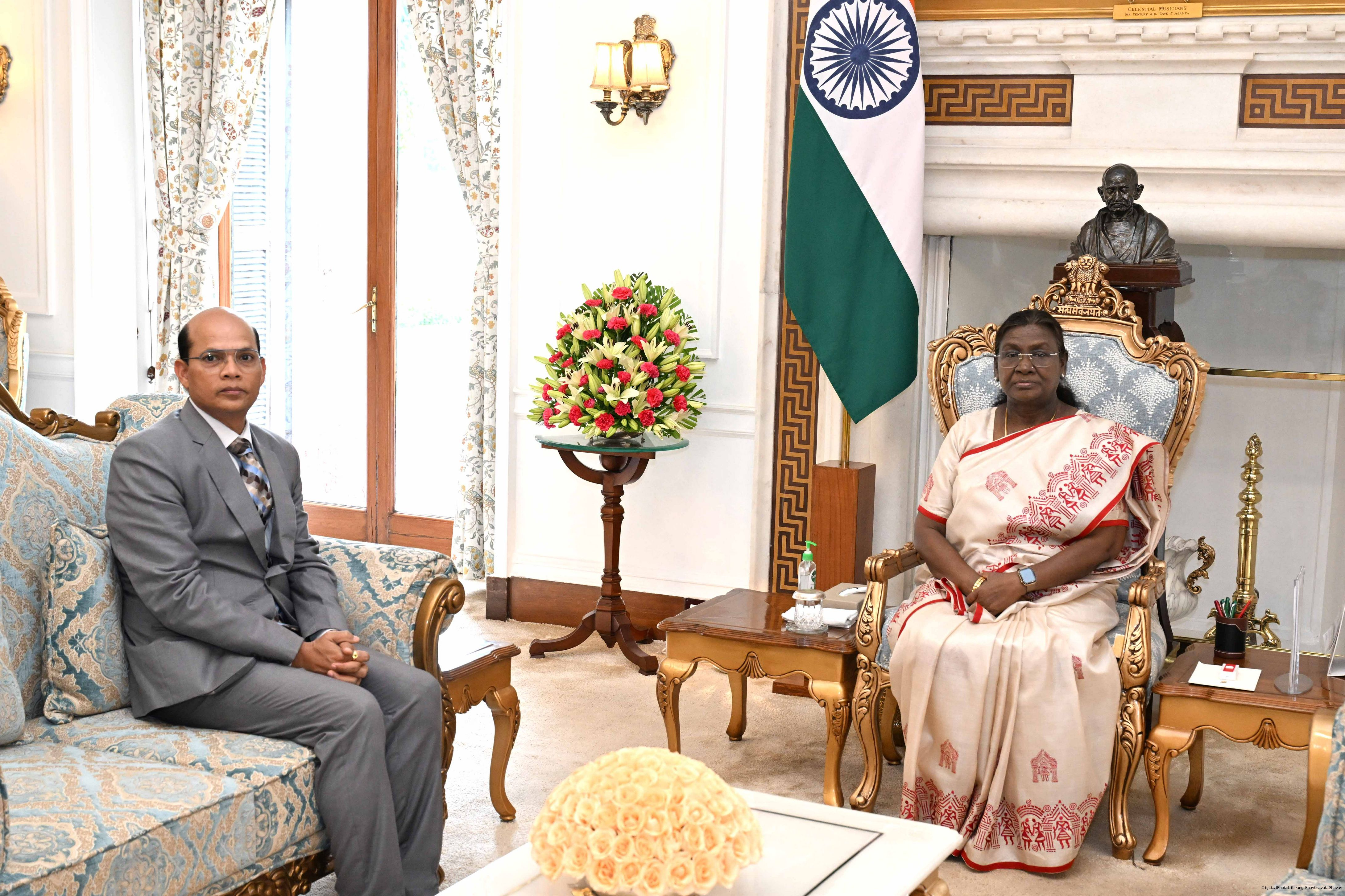 | Caption: | The Ambassador-designate of India to Romania, Shri Manoj Kumar Mohapatra meeting with the President of India, Smt Droupadi Murmu at Rashtrapati Bhavan on July 3, 2025. |