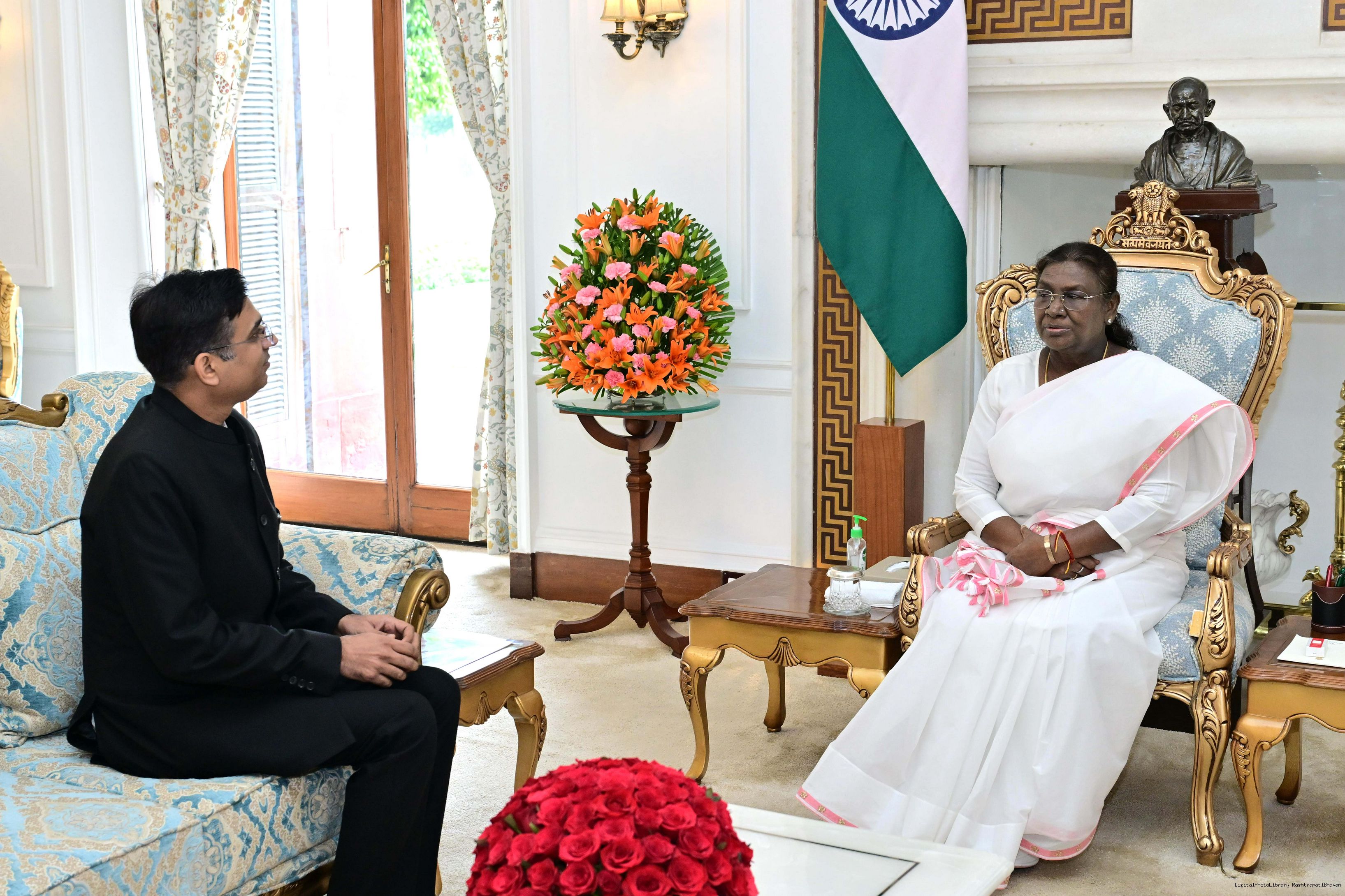 | Caption: | The Ambassador-designate of India to Paraguay, Shri Piyush Singh meeting with the President of India, Smt Droupadi Murmu at Rashtrapati Bhavan on July 7, 2025. |