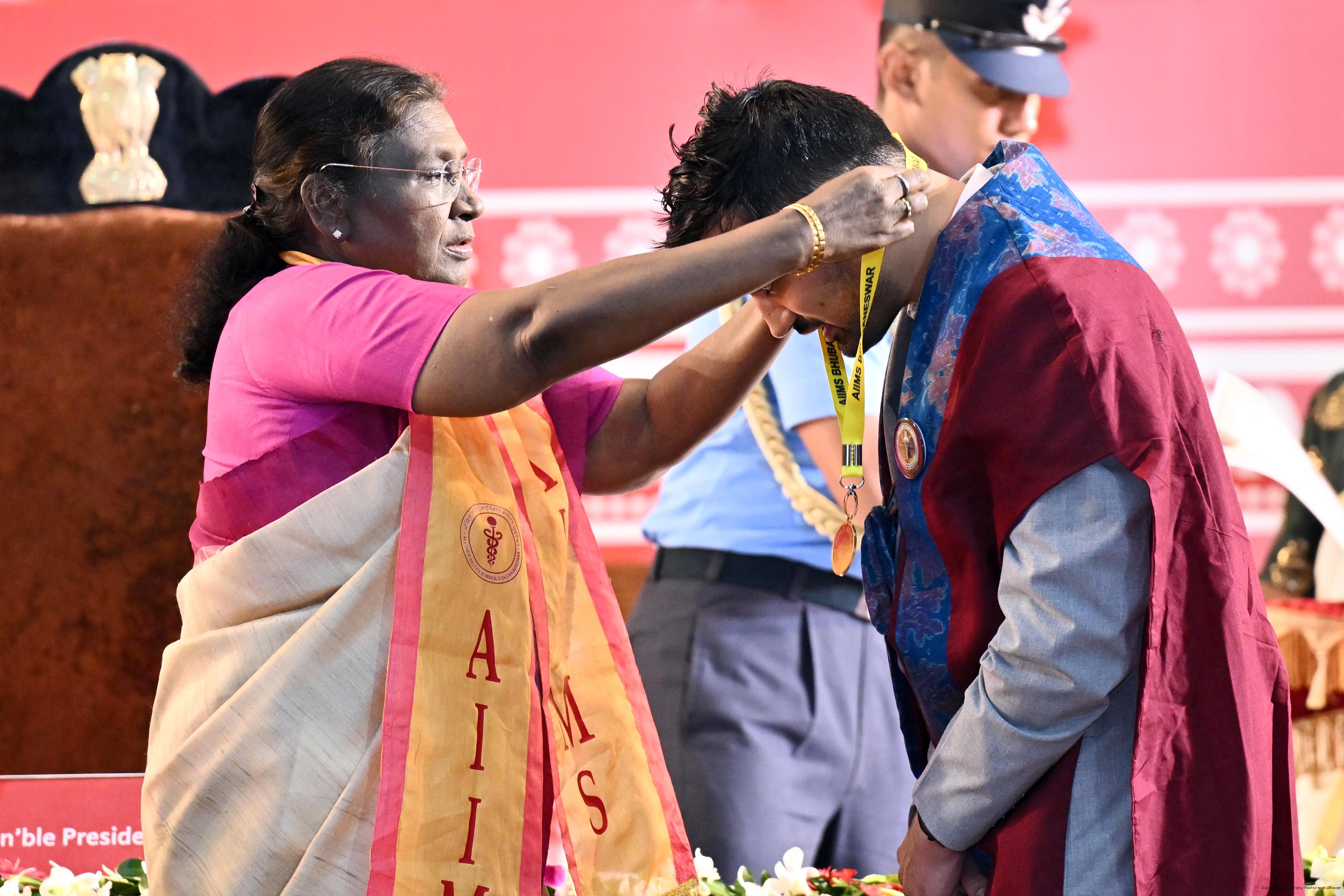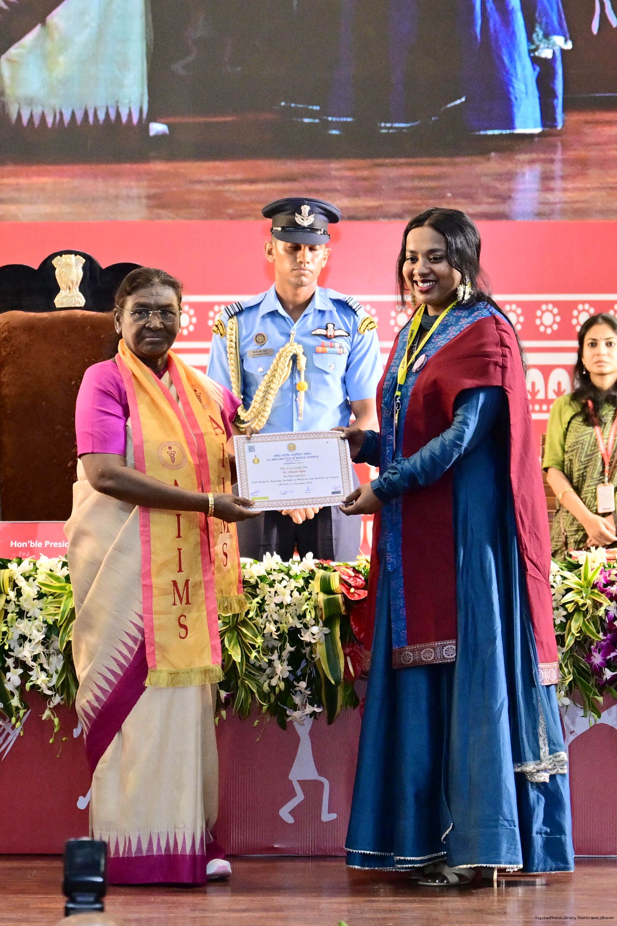 | Caption: | The President of India, Smt Droupadi Murmu, graced the fifth convocation ceremony of AIIMS, Bhubaneswar, at Bhubaneswar, Odisha on July 14, 2025. |
