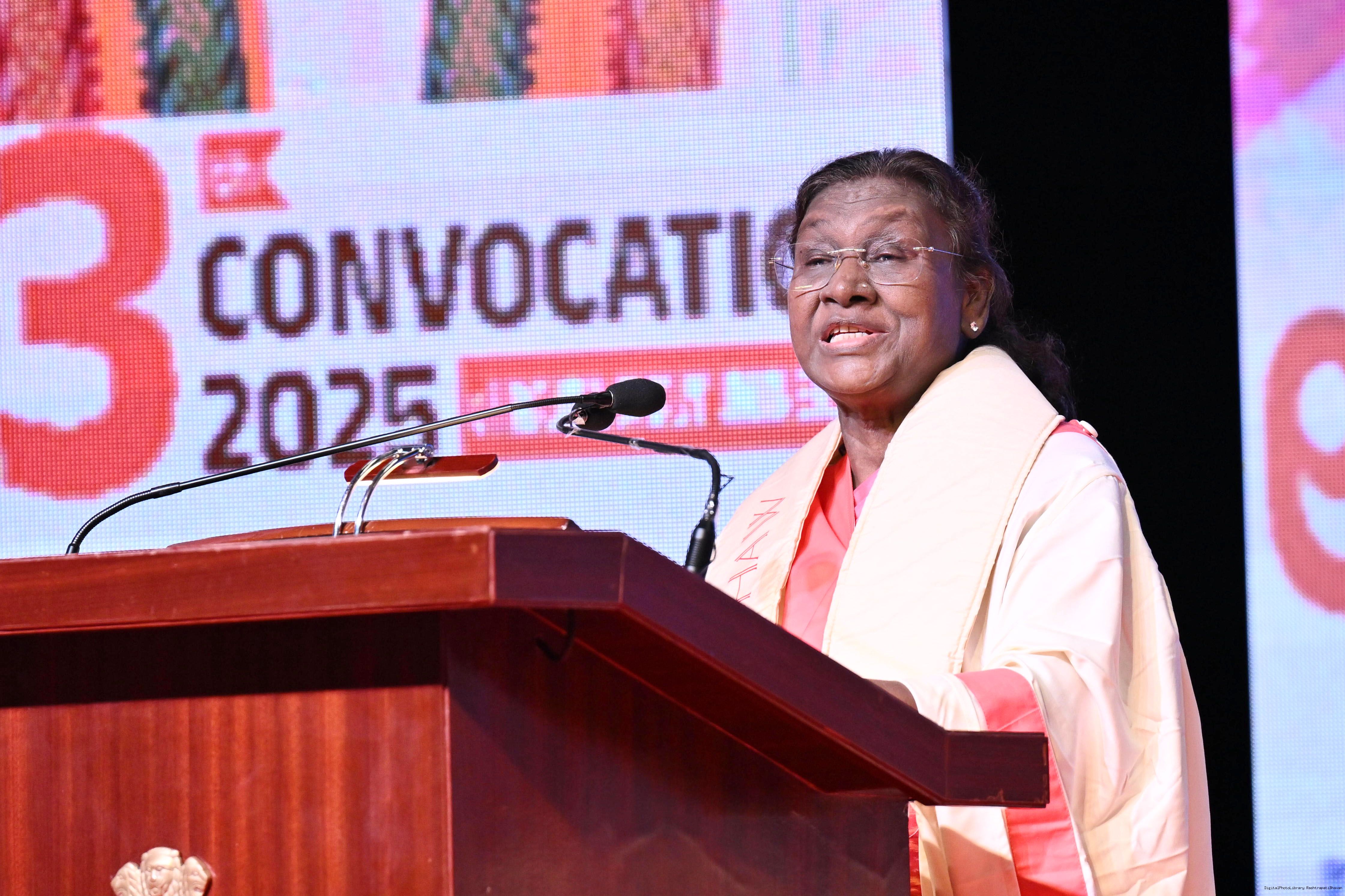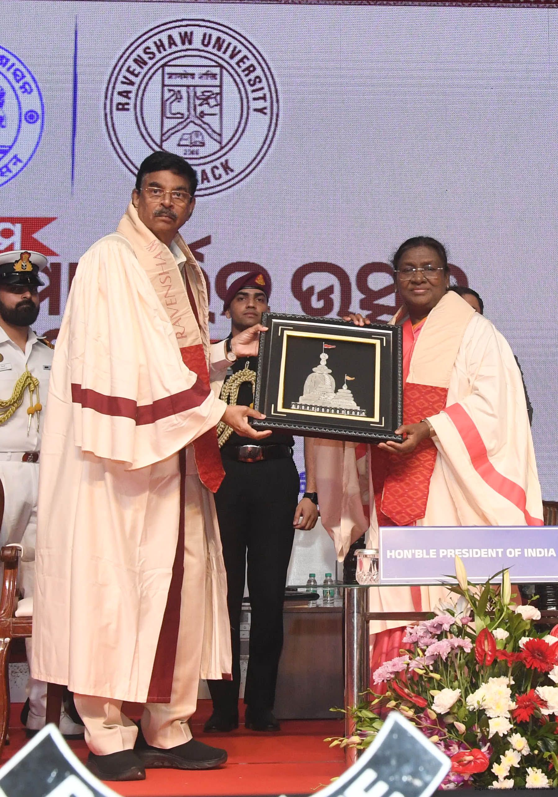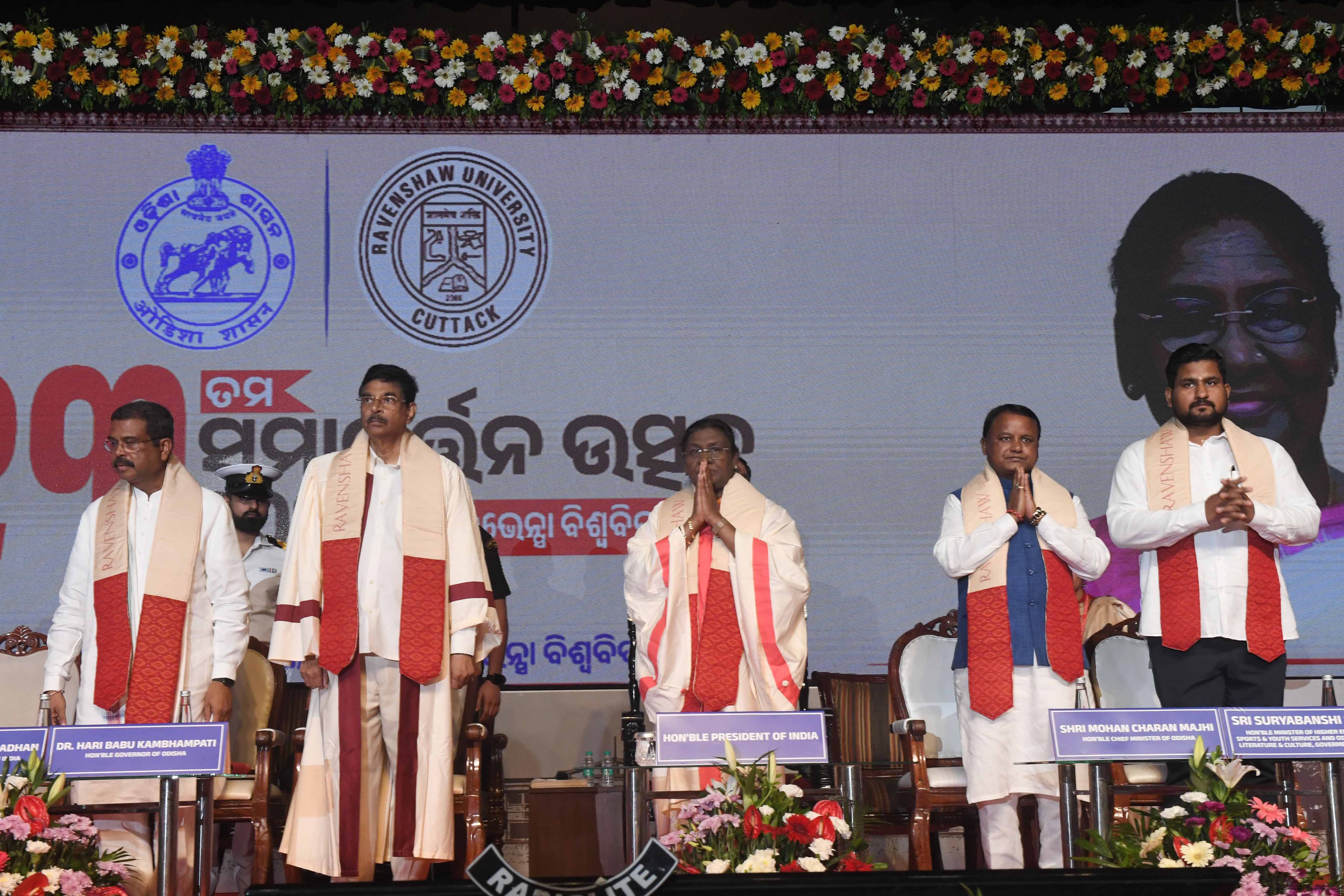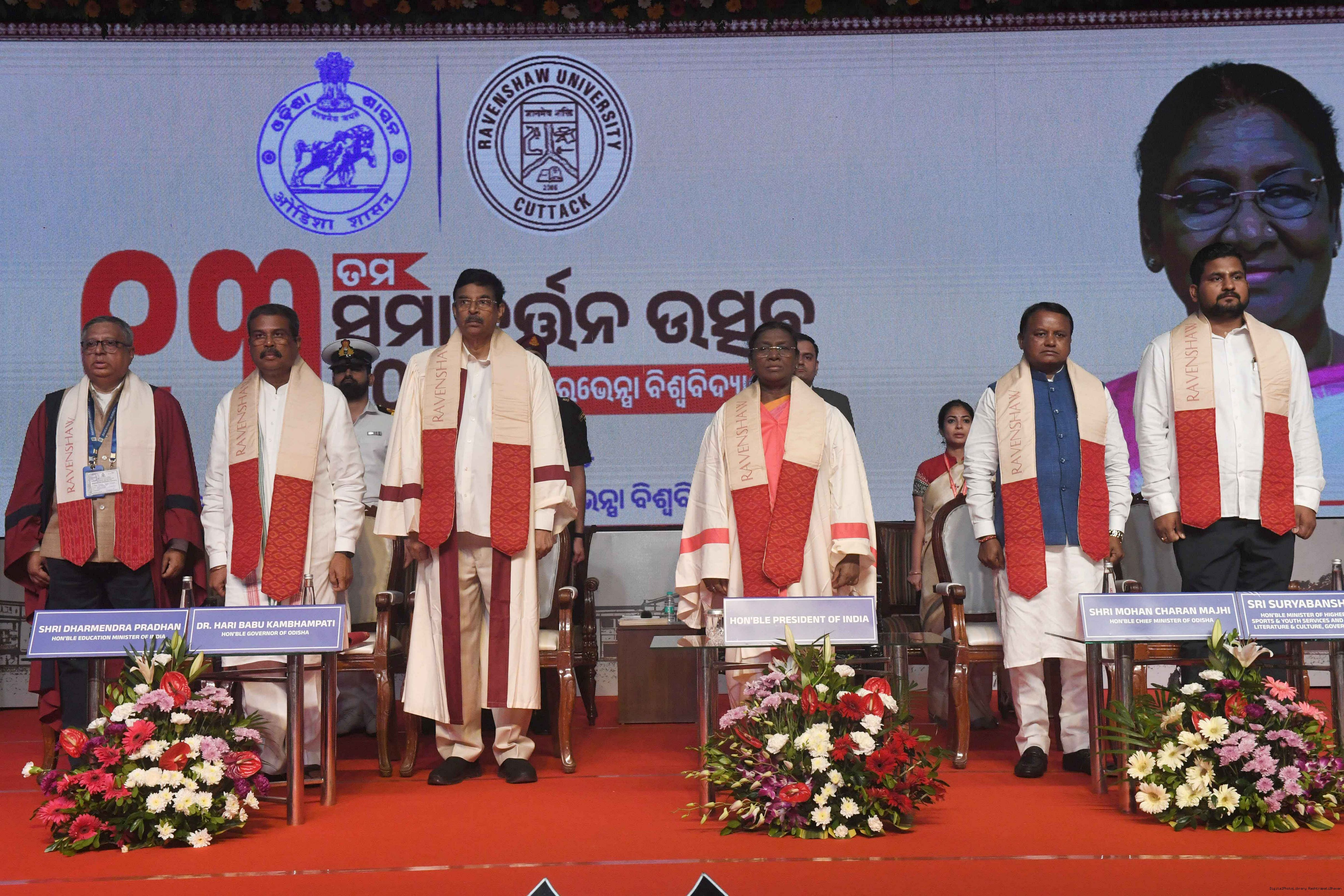 | Caption: | The President of India, Smt Droupadi Murmu, graced the convocation ceremony of Ravenshaw University at Cuttack, Odisha on July 15, 2025. |
