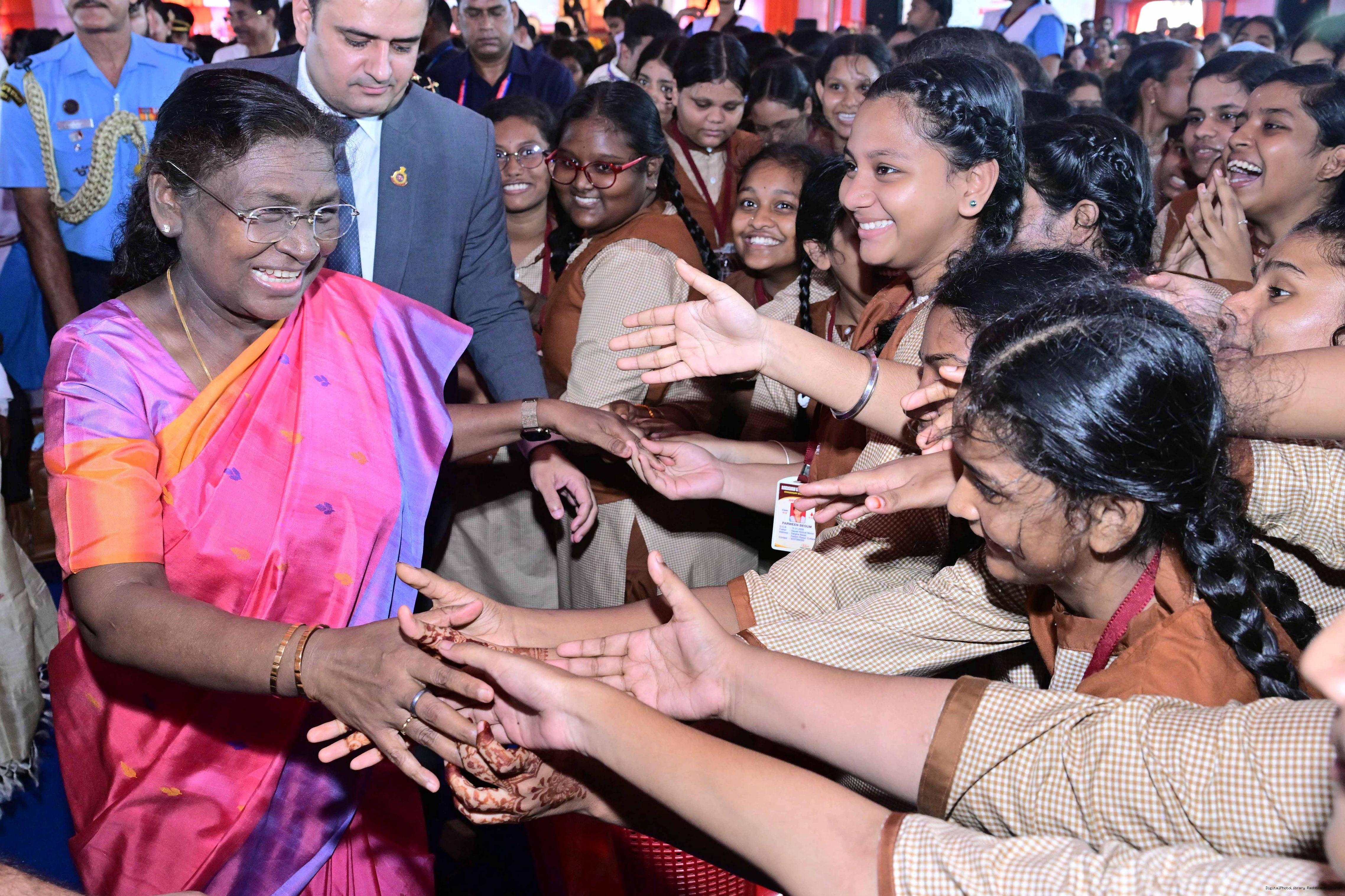| Caption: | The President of India, Smt Droupadi Murmu laid the foundation stone for the redevelopment of three buildings of Ravenshaw Girls’ High School at Cuttack Odisha on July 15, 2025. |