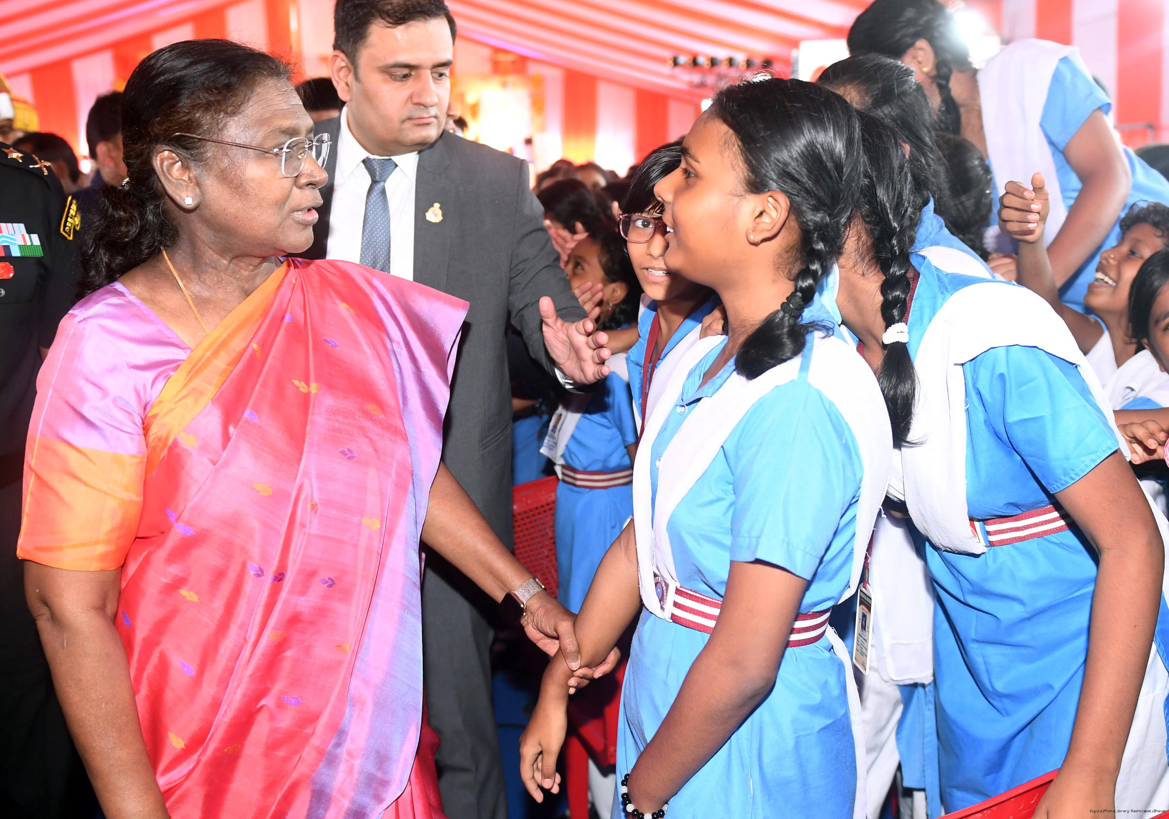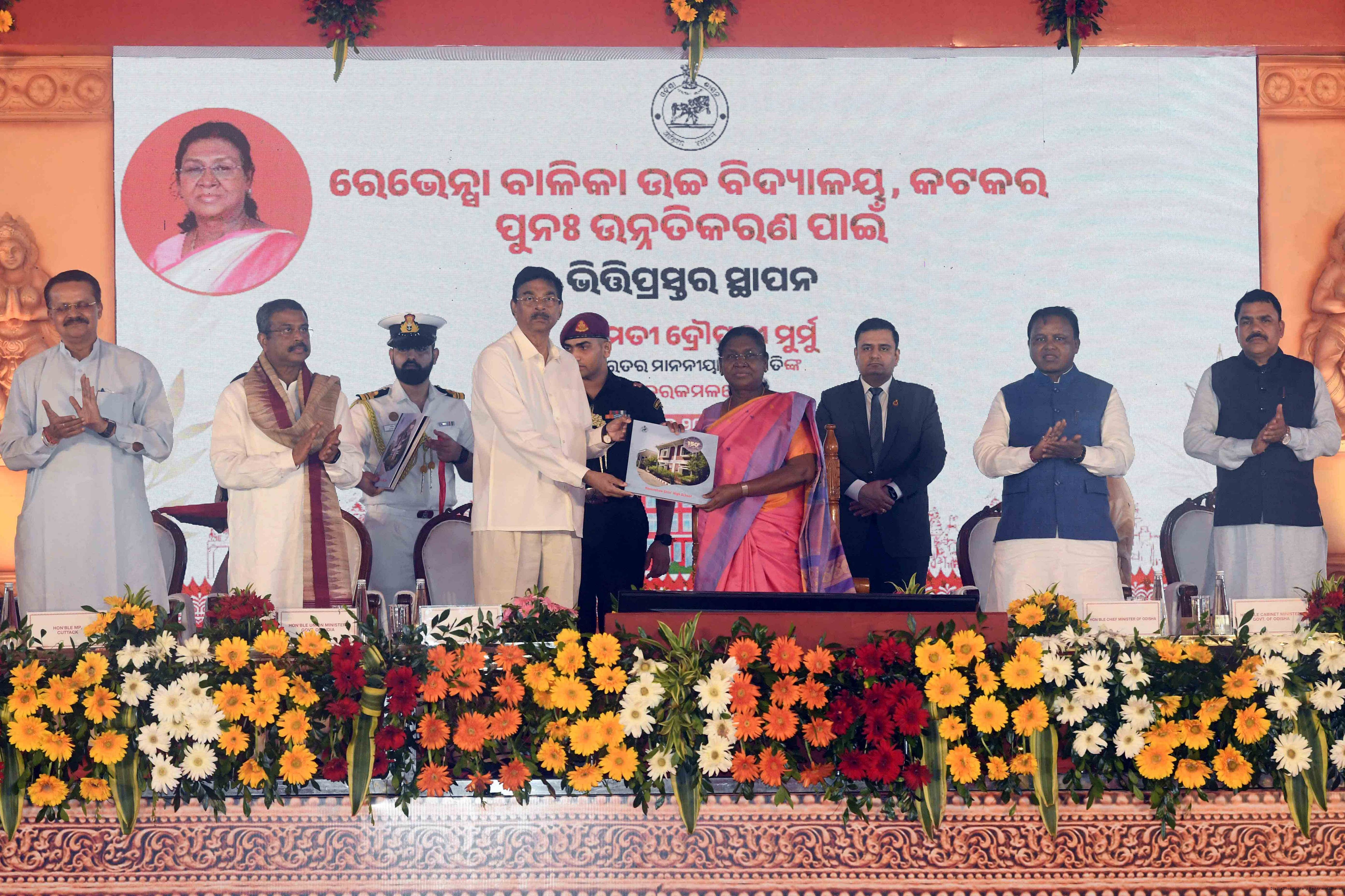 | Caption: | The President of India, Smt Droupadi Murmu laid the foundation stone for the redevelopment of three buildings of Ravenshaw Girls’ High School at Cuttack Odisha on July 15, 2025. |