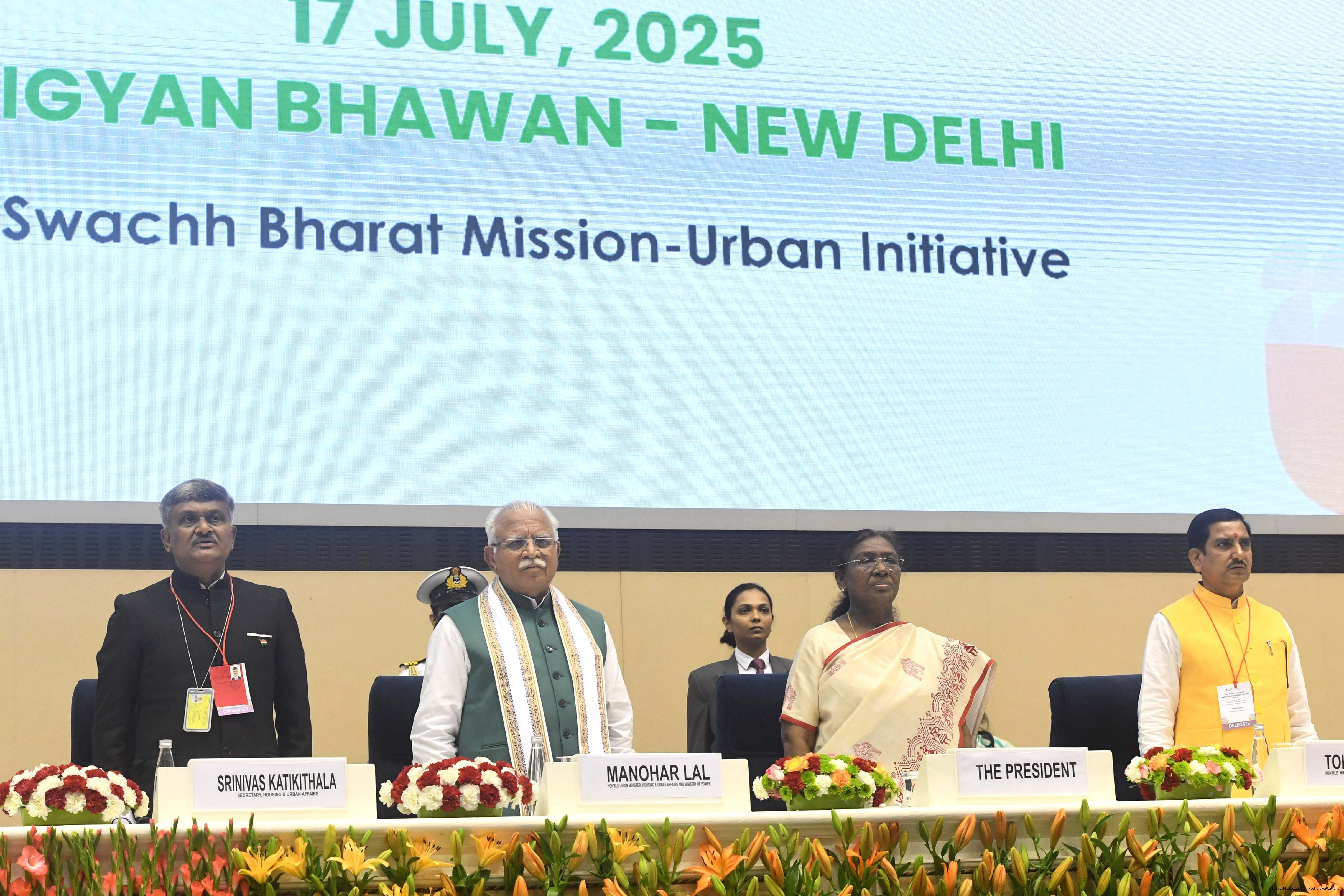 | Caption: | The President of India, Smt Droupadi Murmu, presented Swachh Survekshan awards at a function organized by the Ministry of Housing and Urban Affairs in New Delhi on July 17, 2025. |