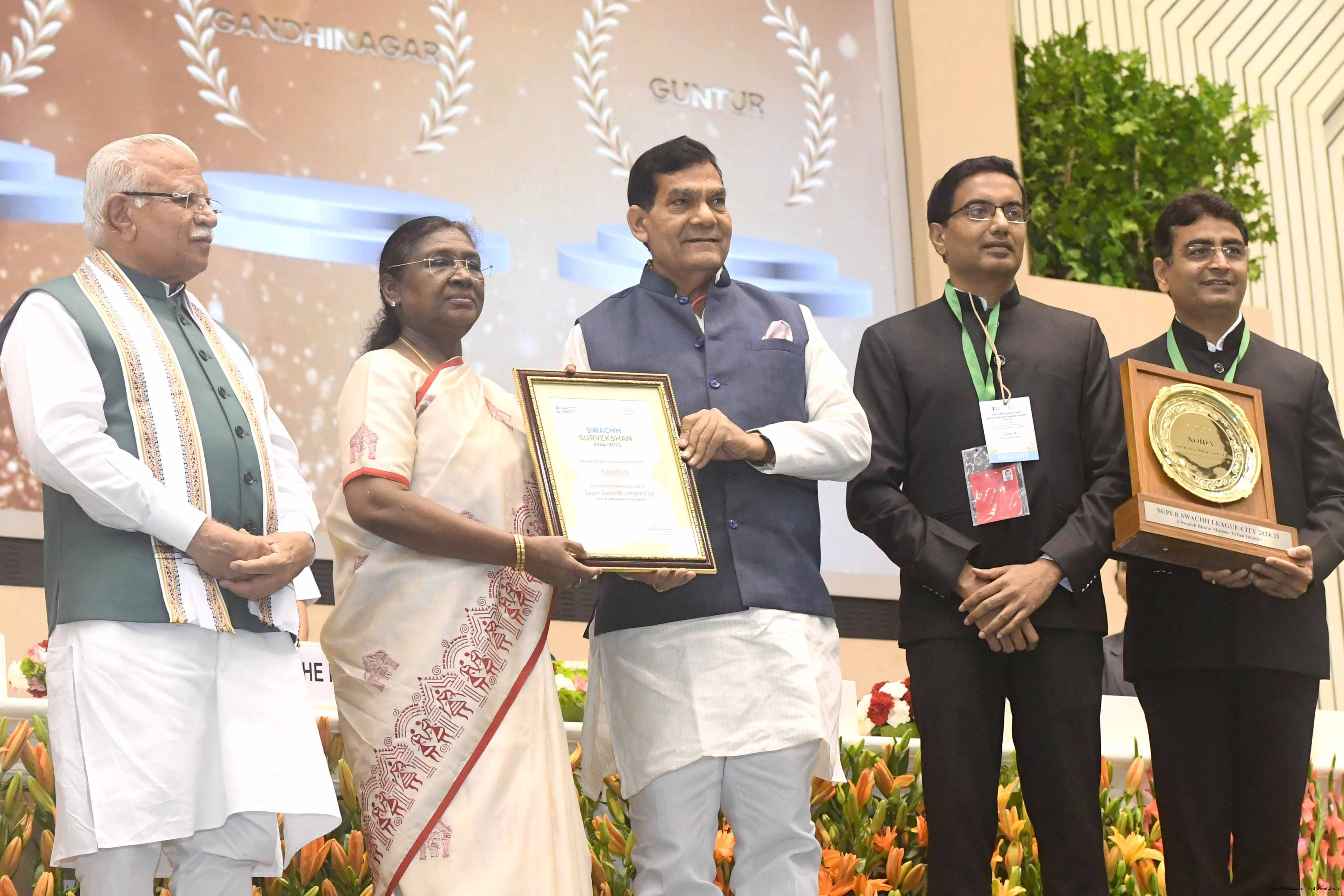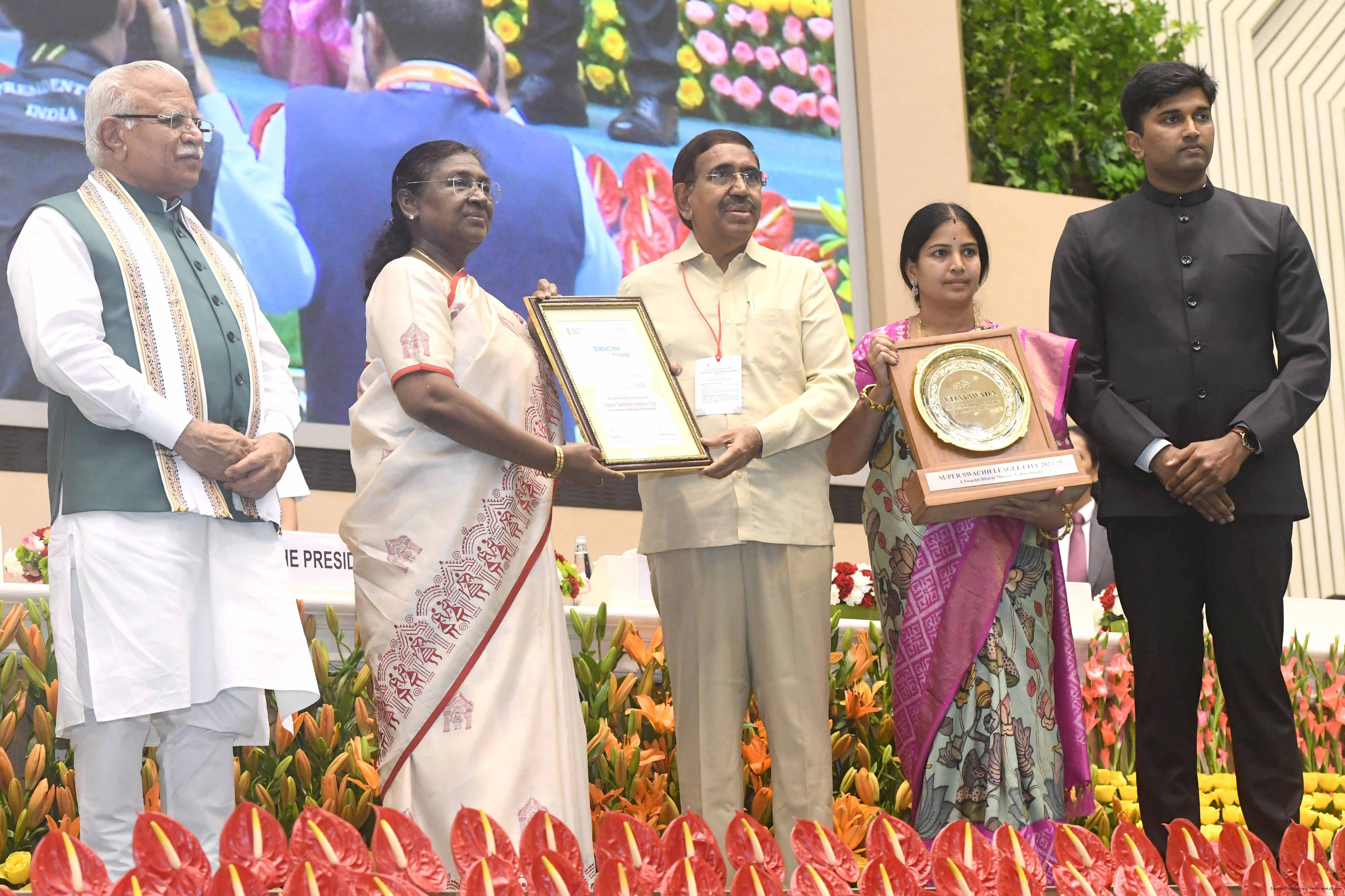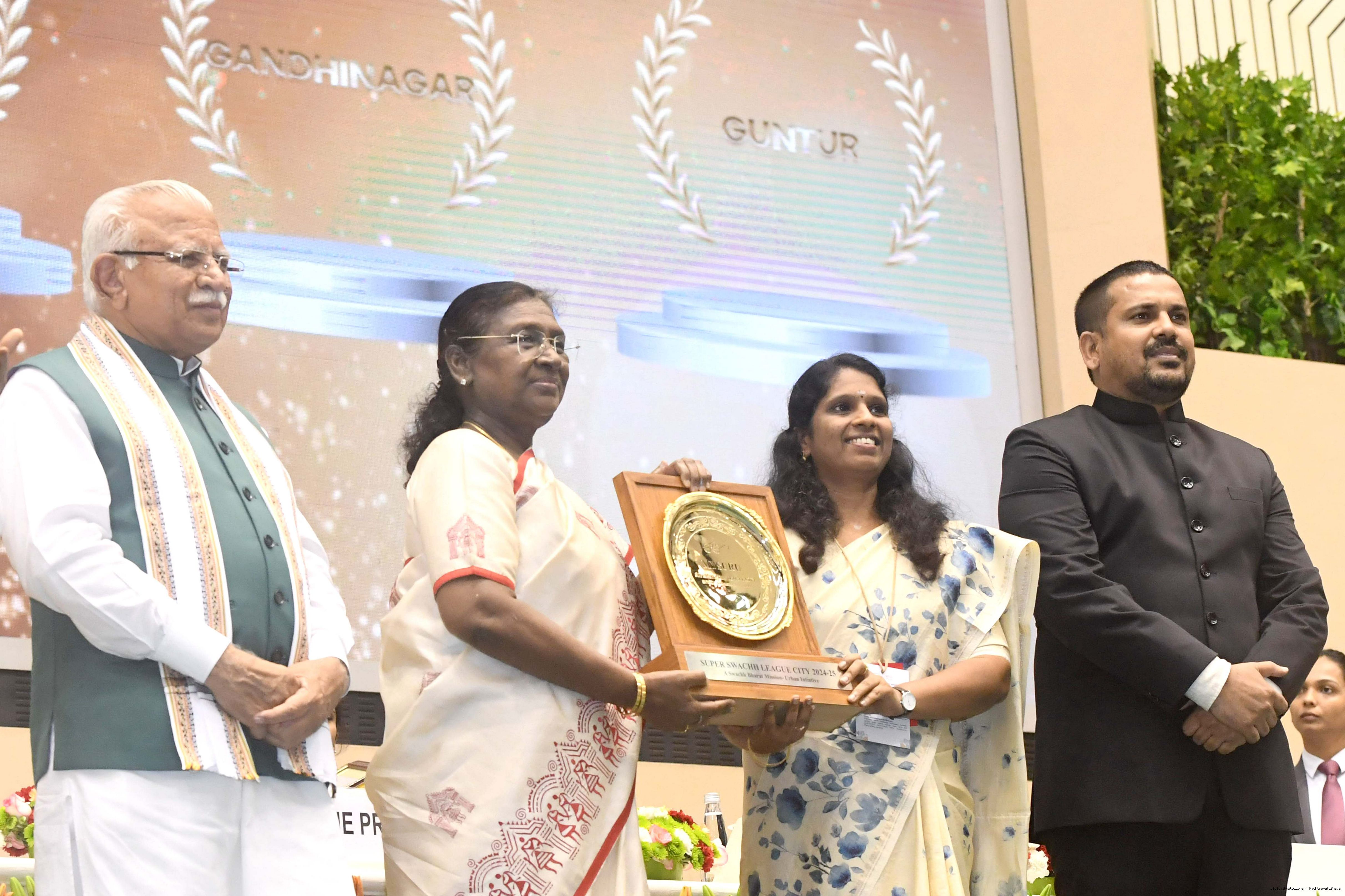 | Caption: | The President of India, Smt Droupadi Murmu, presented Swachh Survekshan awards at a function organized by the Ministry of Housing and Urban Affairs in New Delhi on July 17, 2025. |