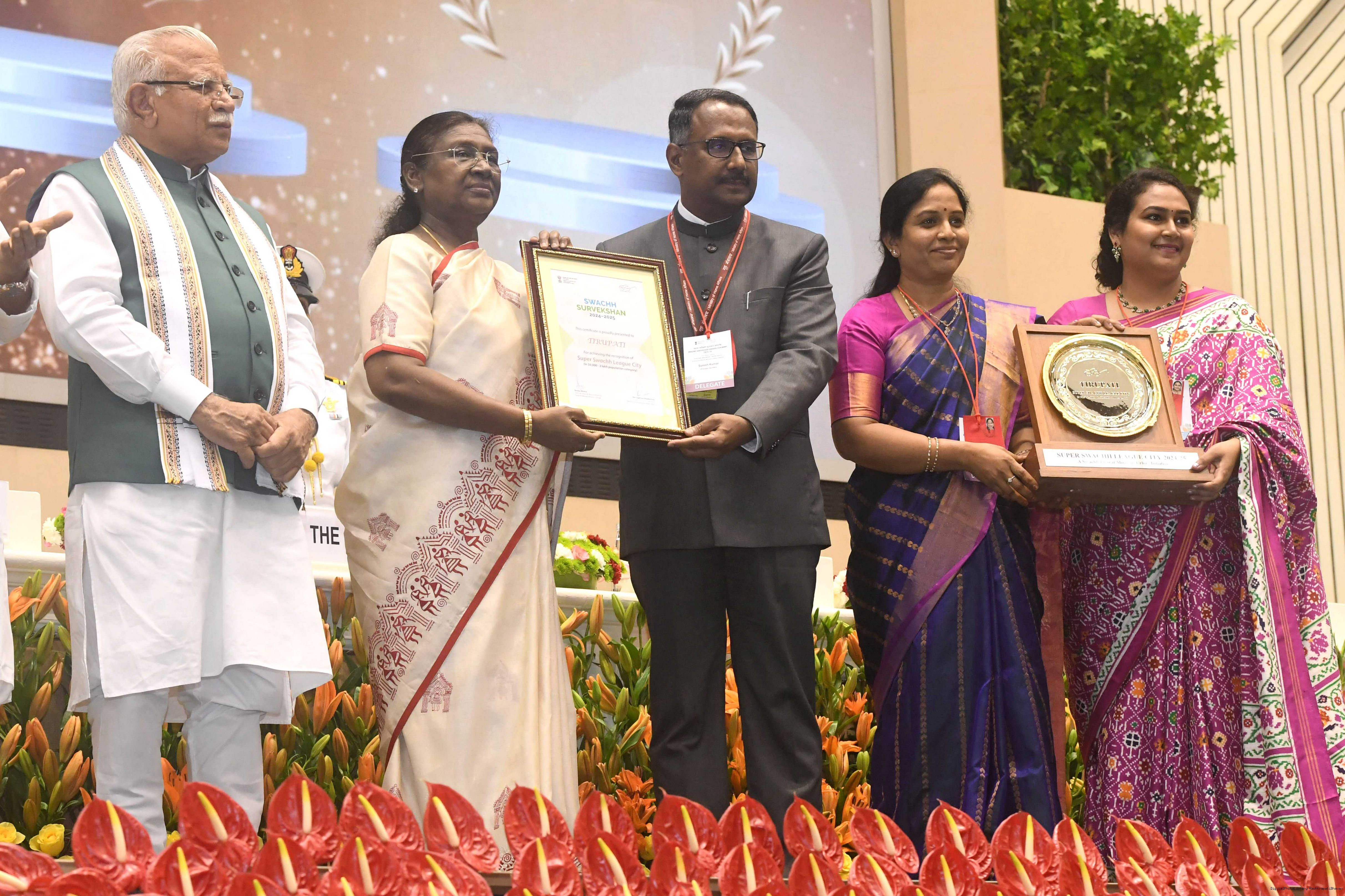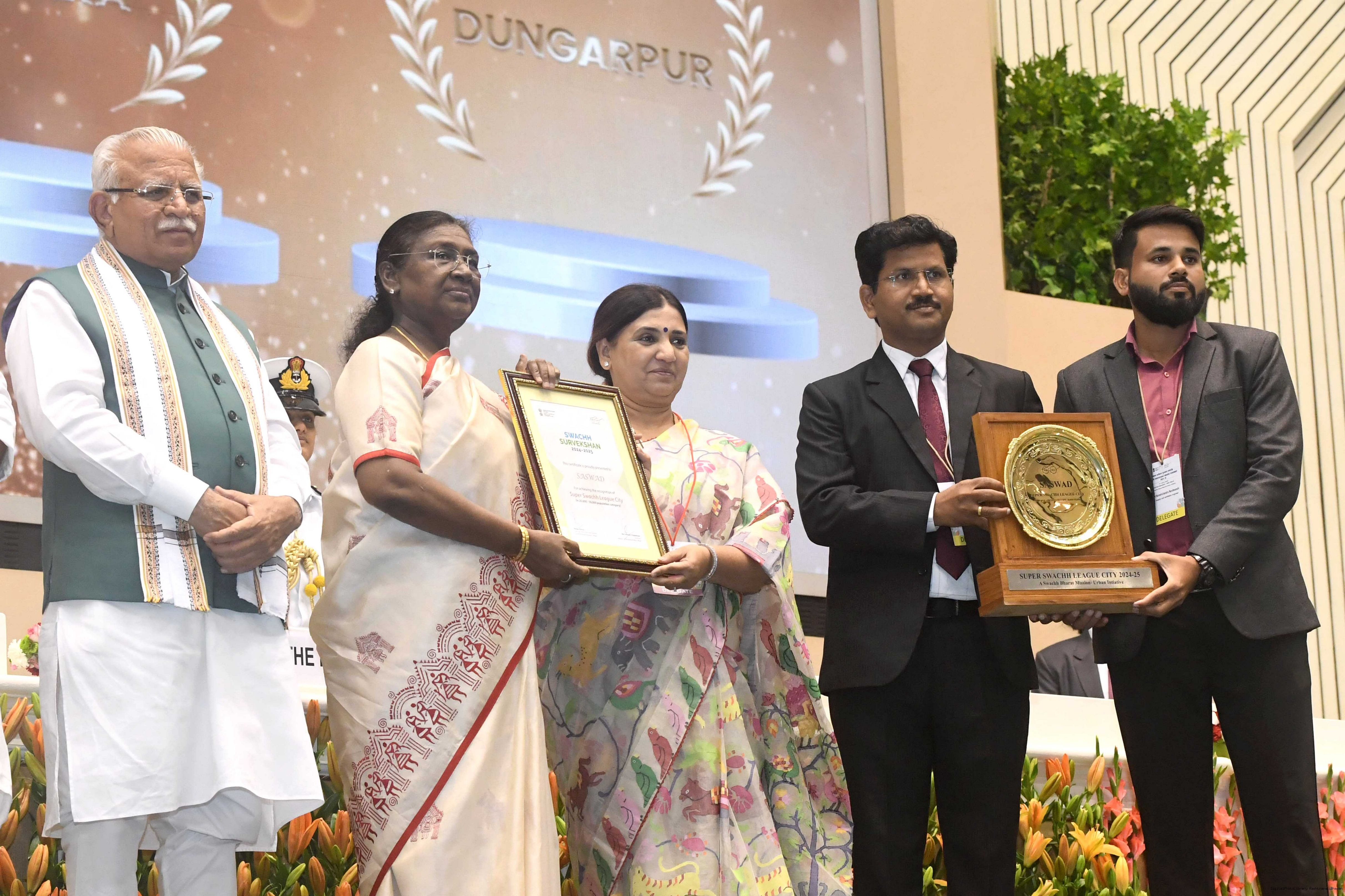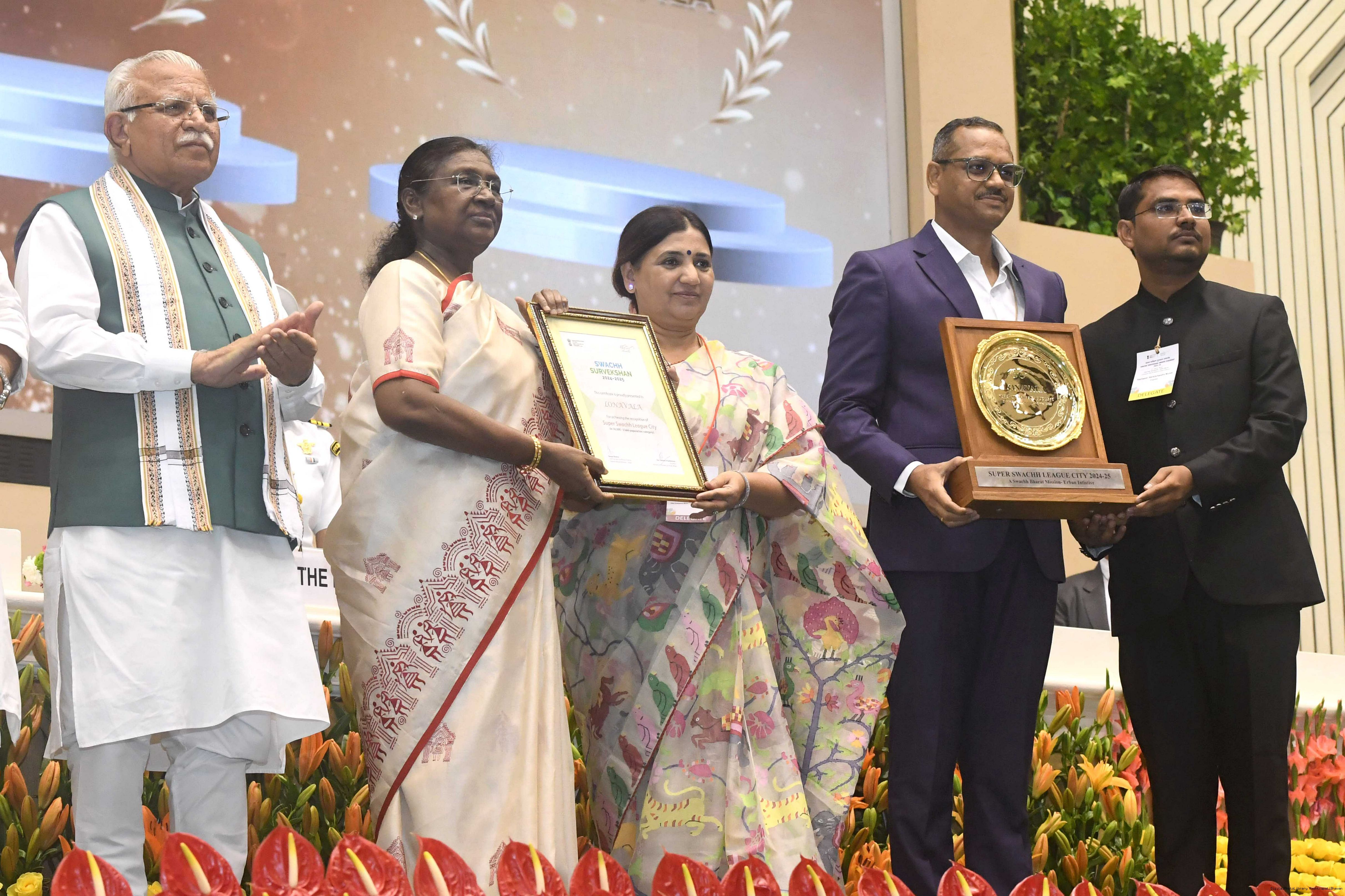 | Caption: | The President of India, Smt Droupadi Murmu, presented Swachh Survekshan awards at a function organized by the Ministry of Housing and Urban Affairs in New Delhi on July 17, 2025. |