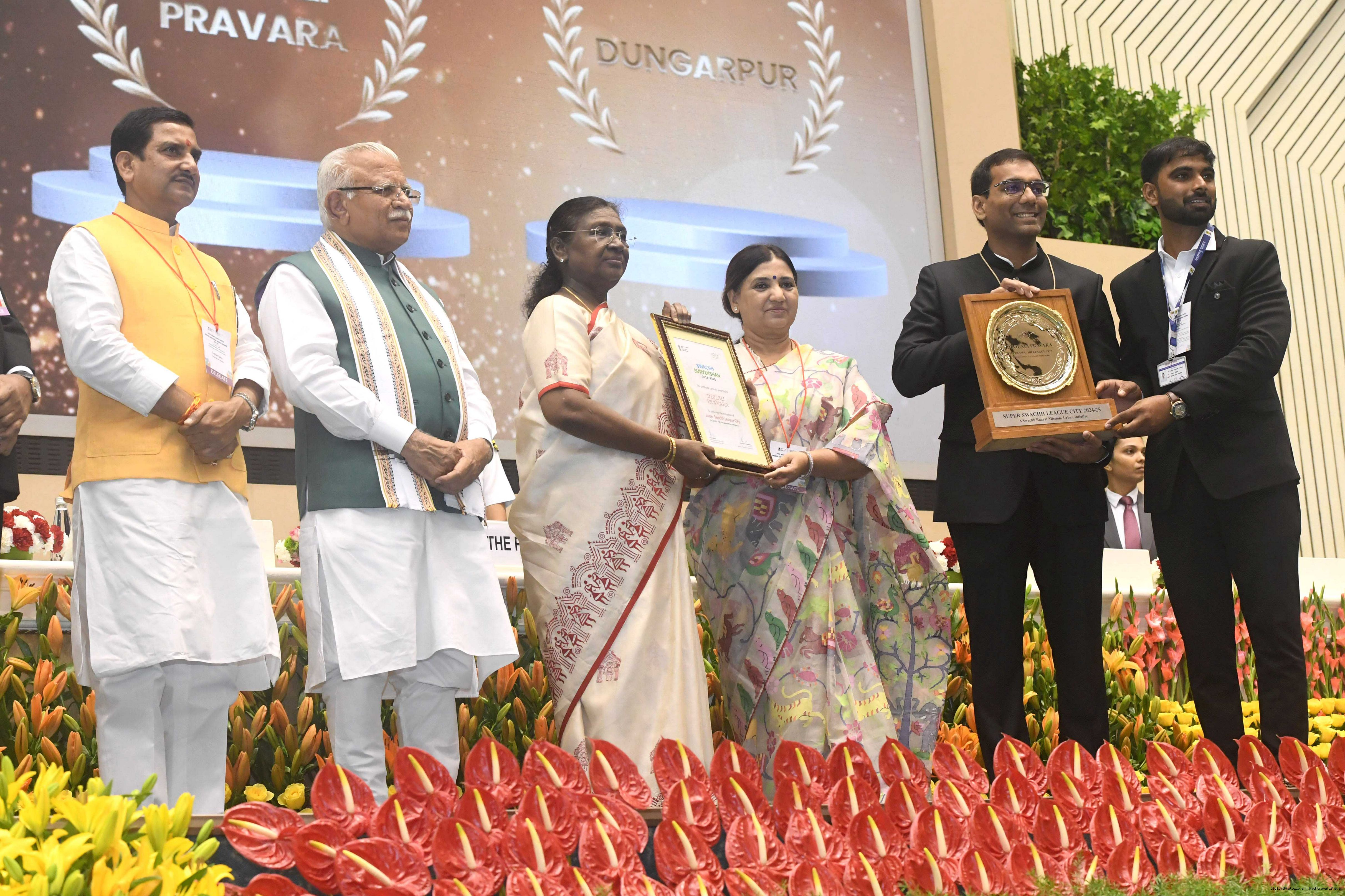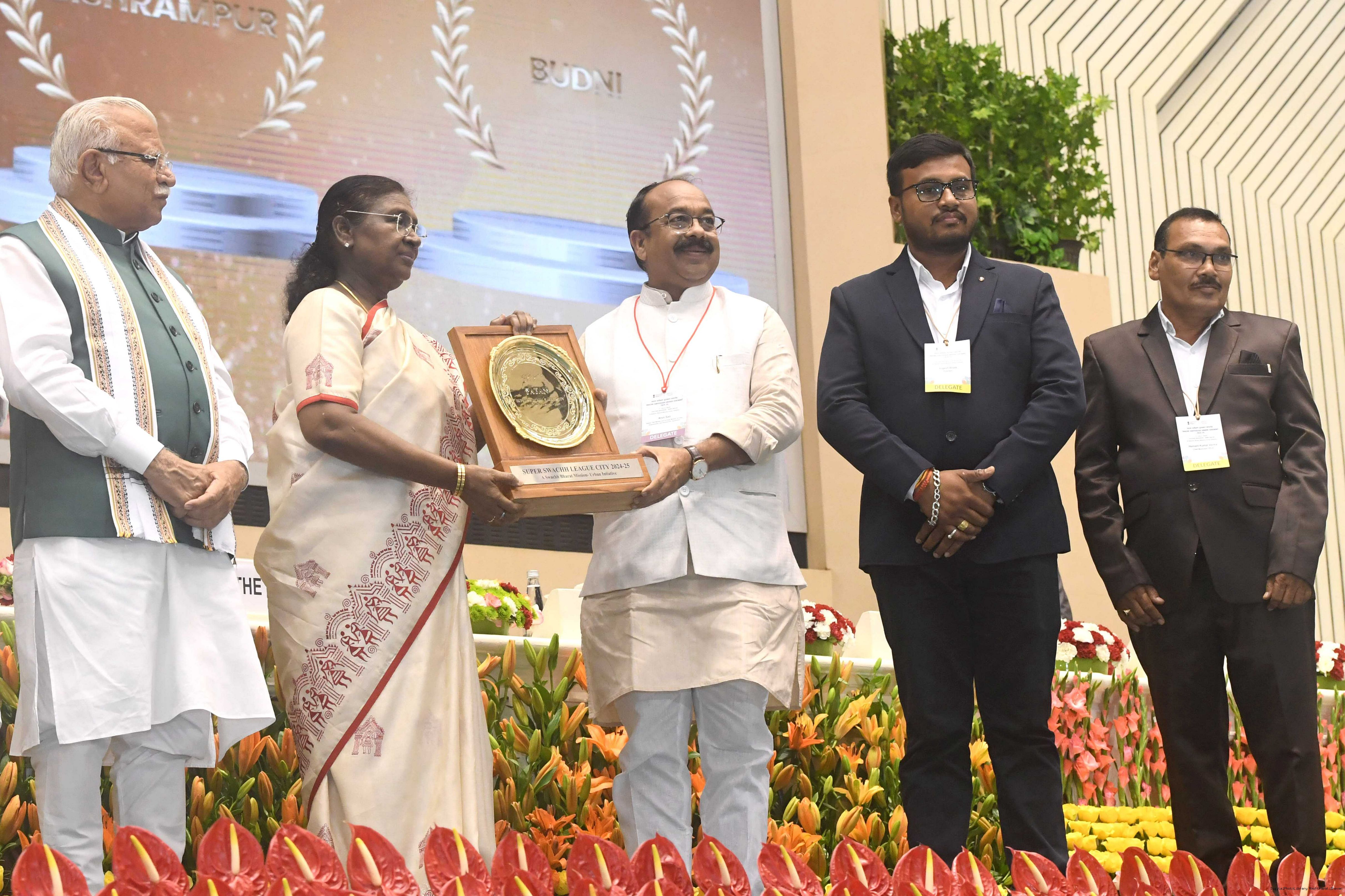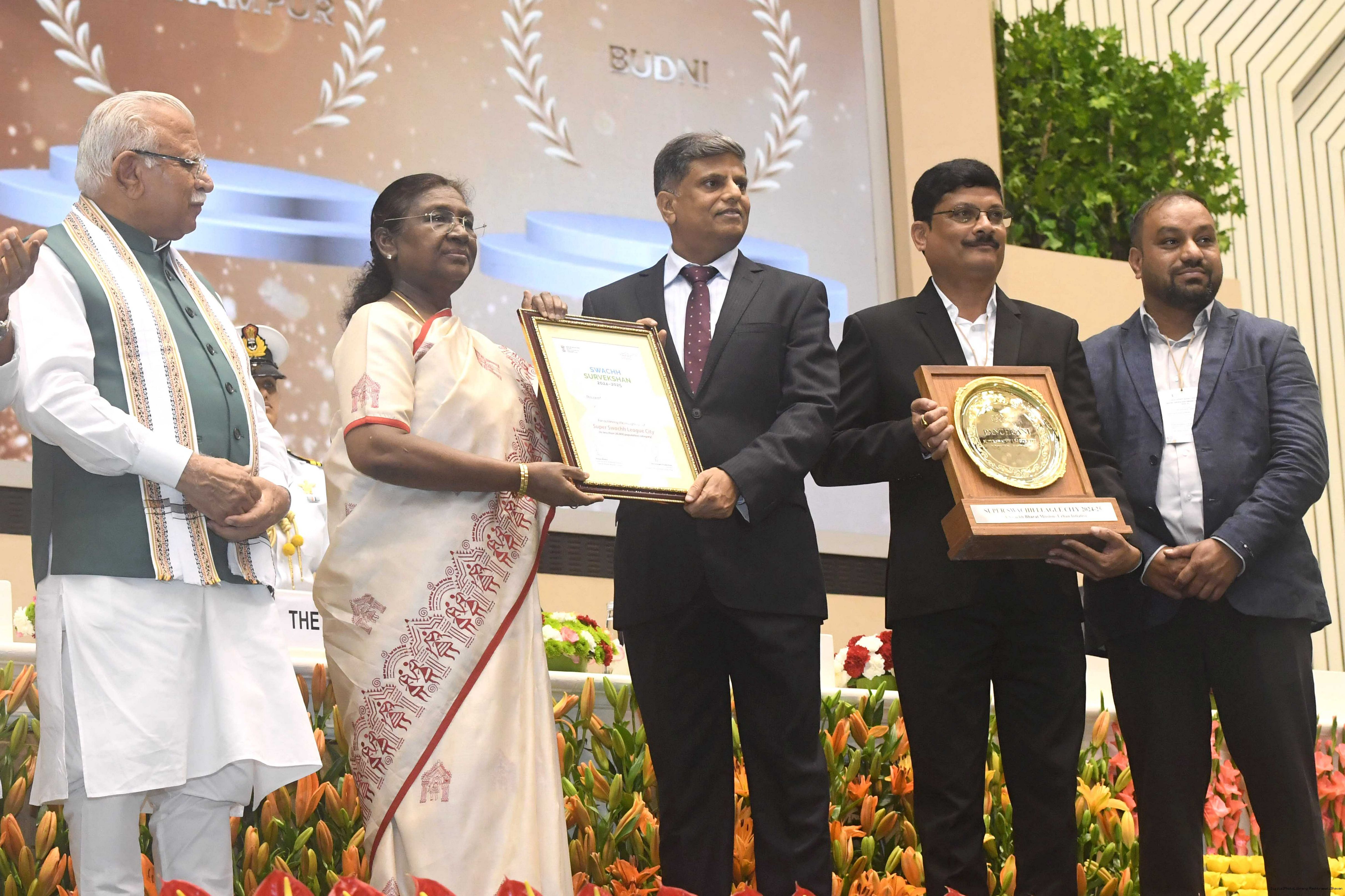 | Caption: | The President of India, Smt Droupadi Murmu, presented Swachh Survekshan awards at a function organized by the Ministry of Housing and Urban Affairs in New Delhi on July 17, 2025. |