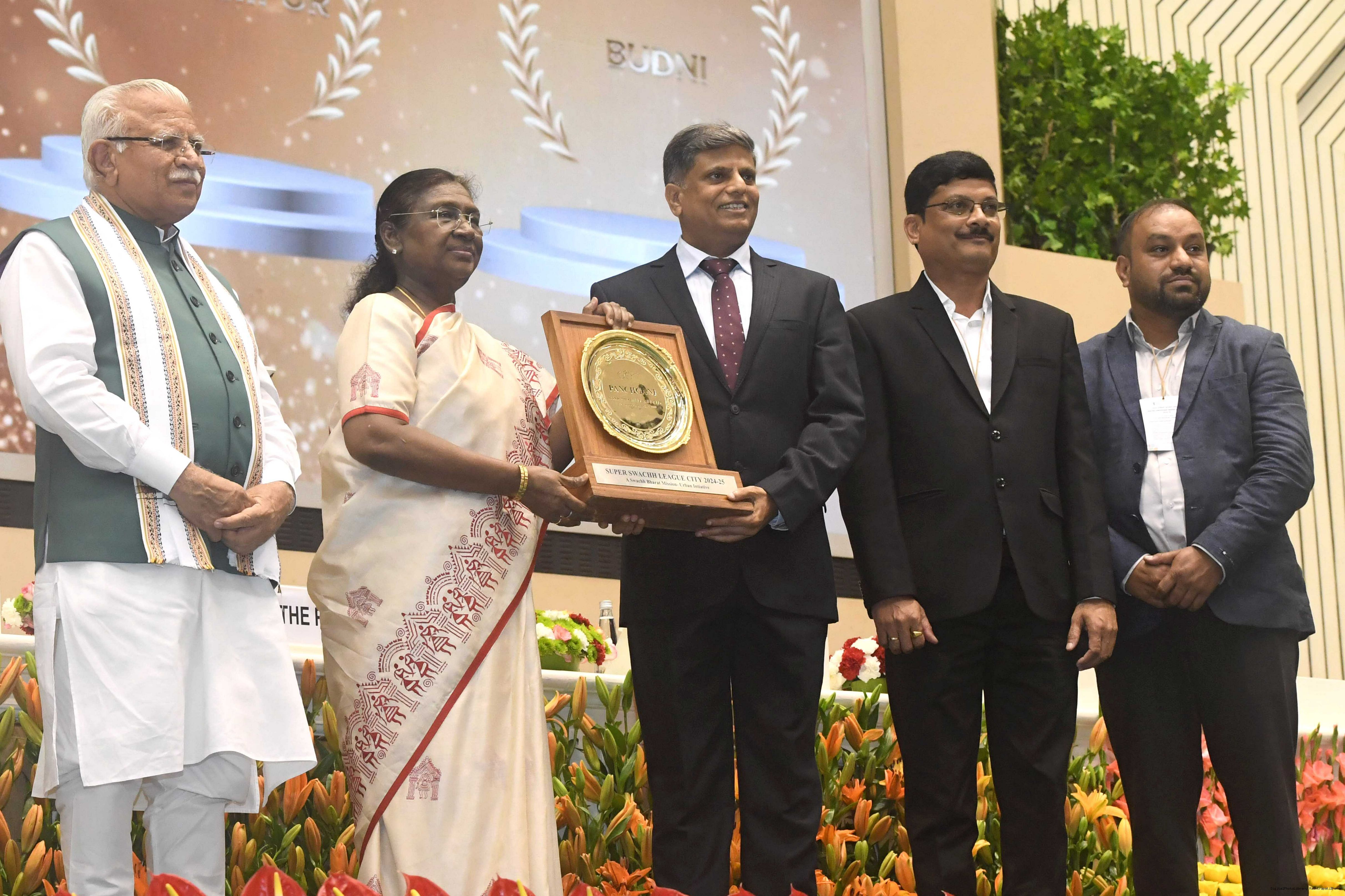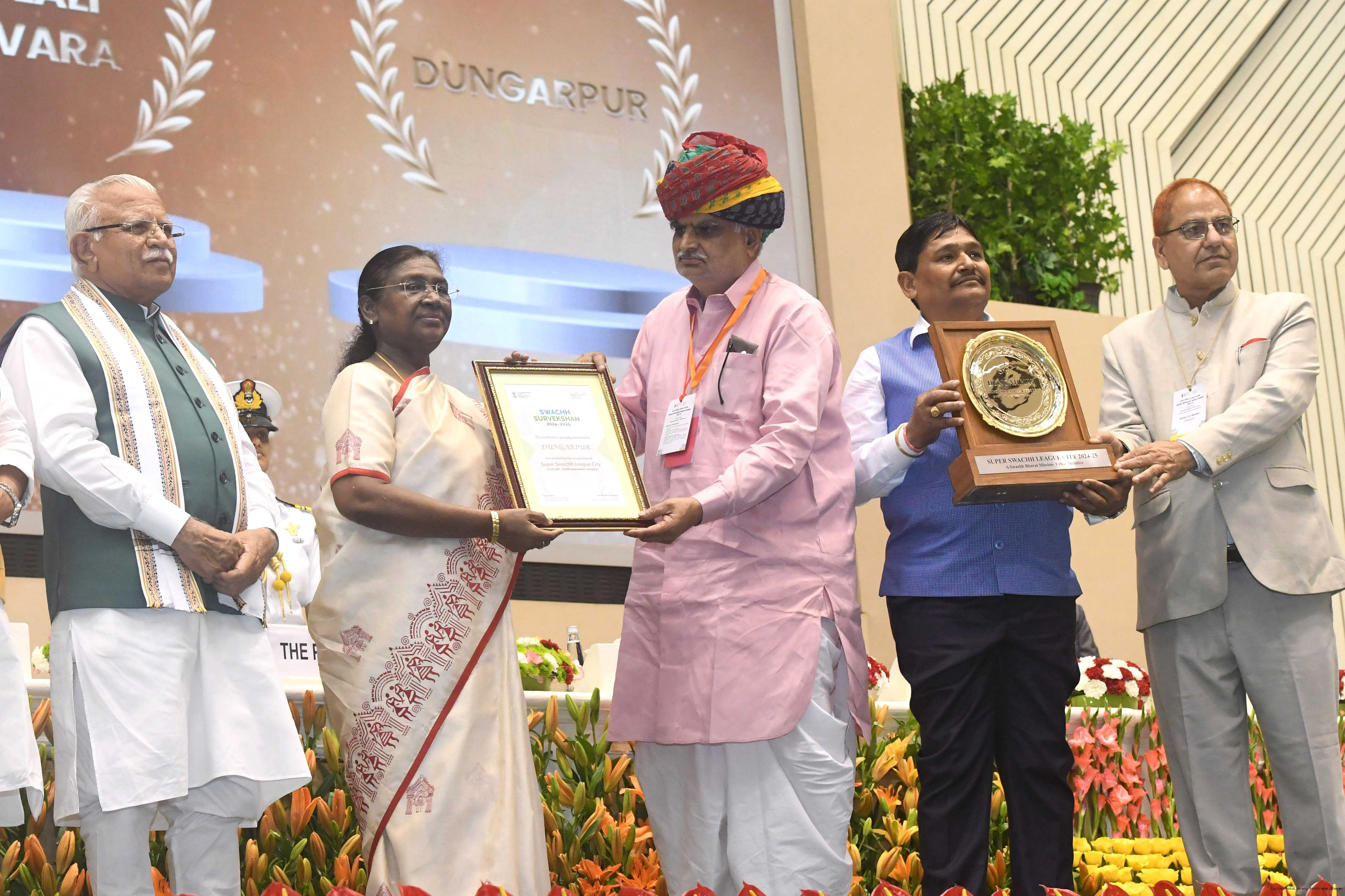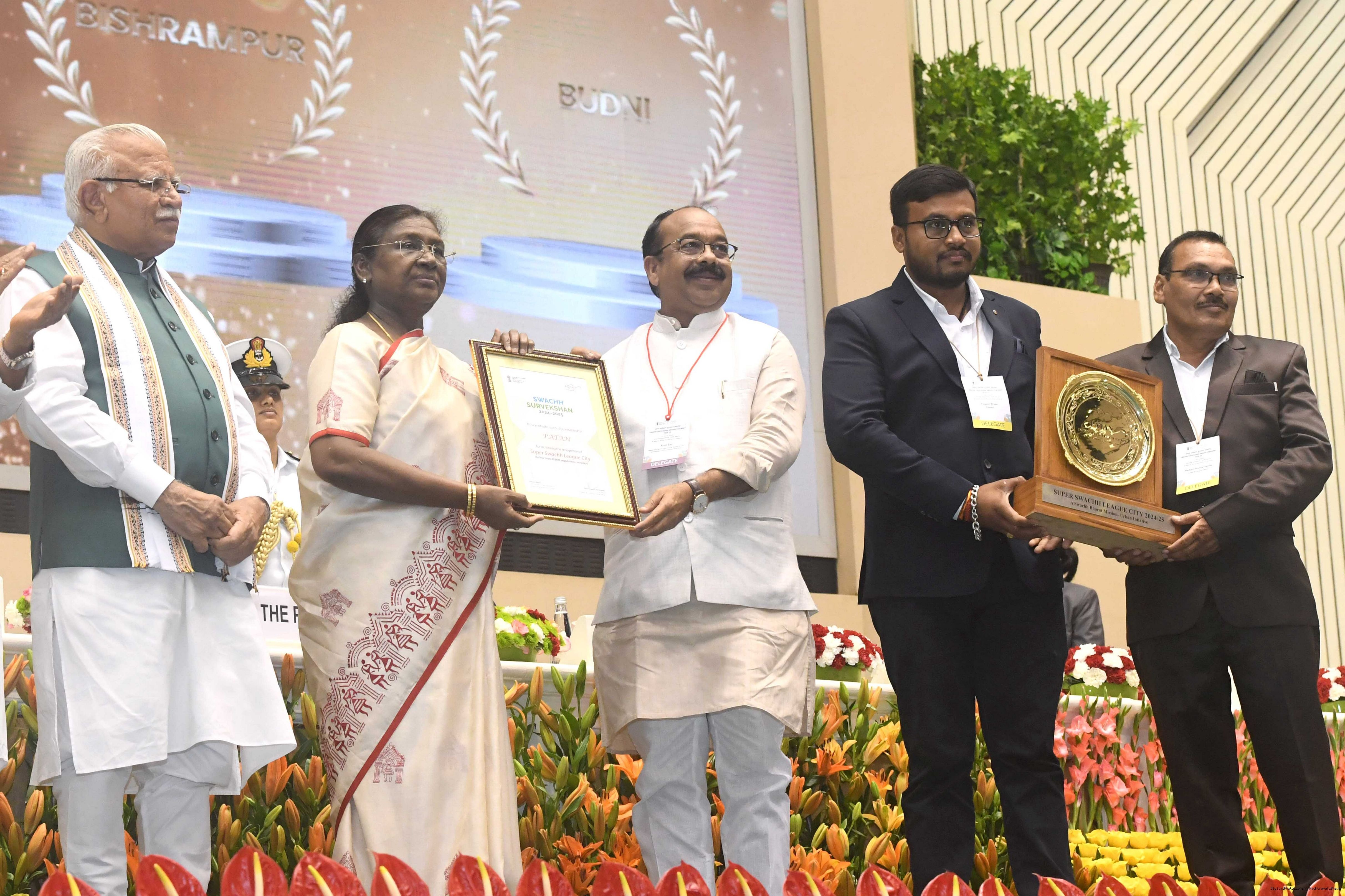 | Caption: | The President of India, Smt Droupadi Murmu, presented Swachh Survekshan awards at a function organized by the Ministry of Housing and Urban Affairs in New Delhi on July 17, 2025. |