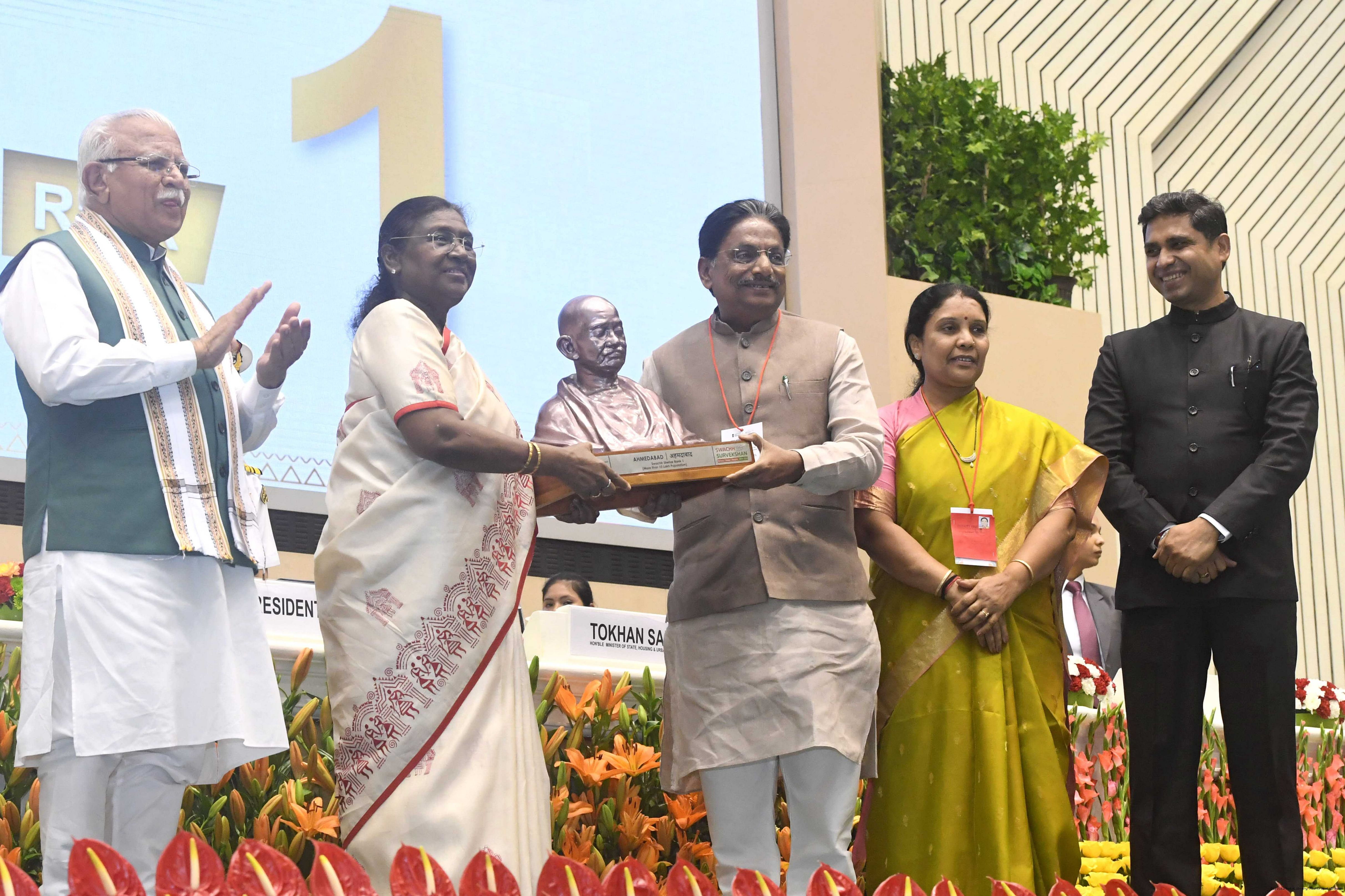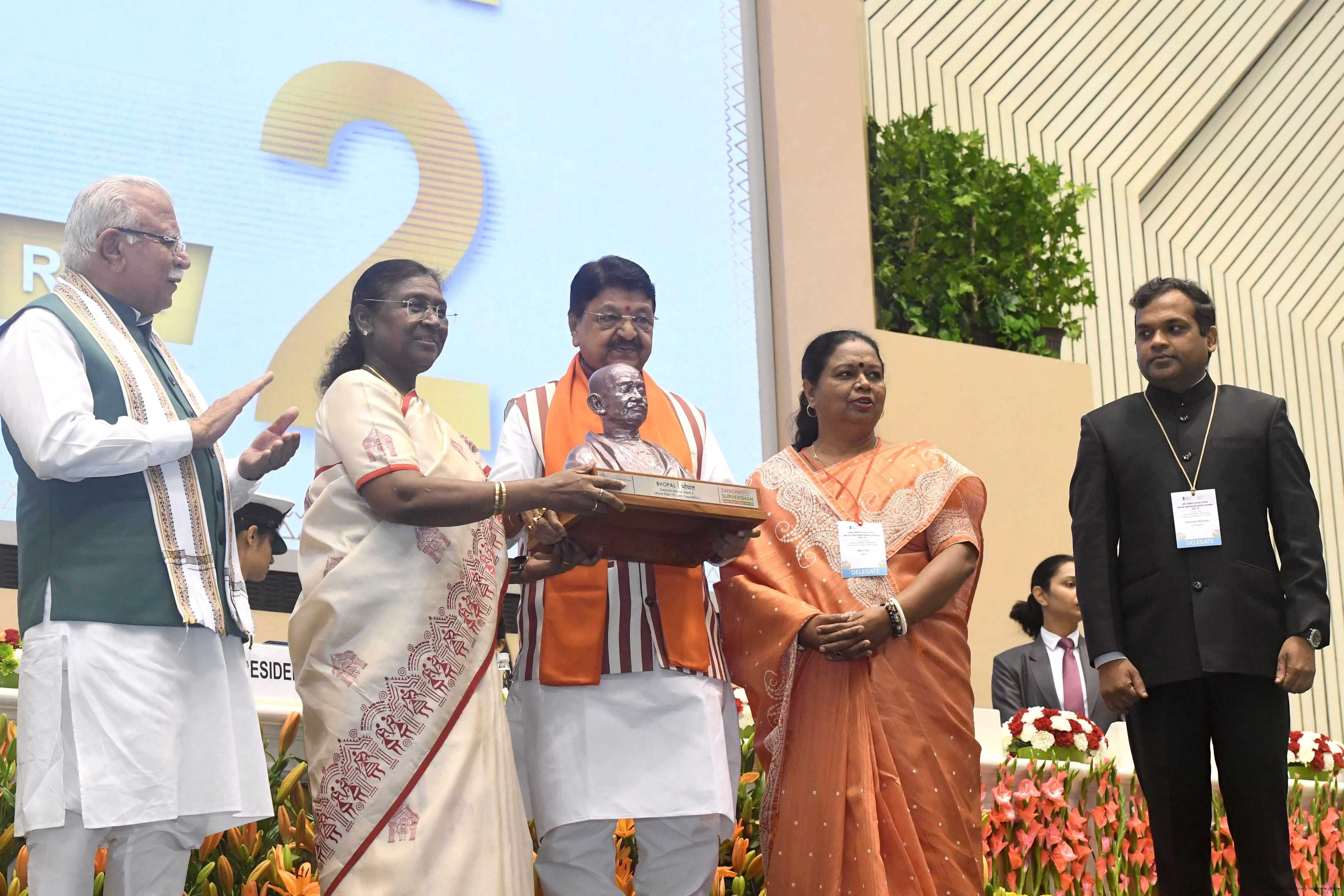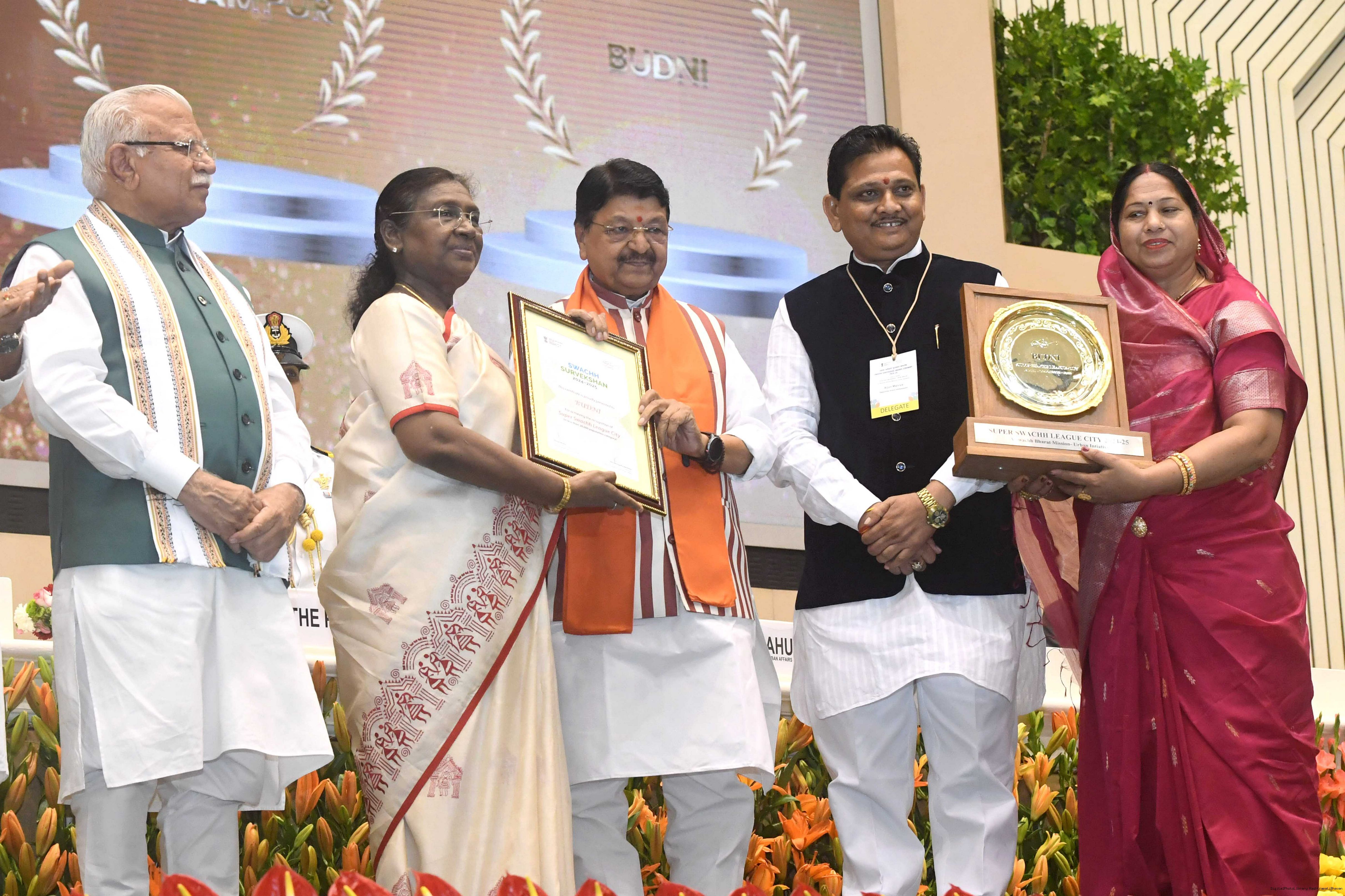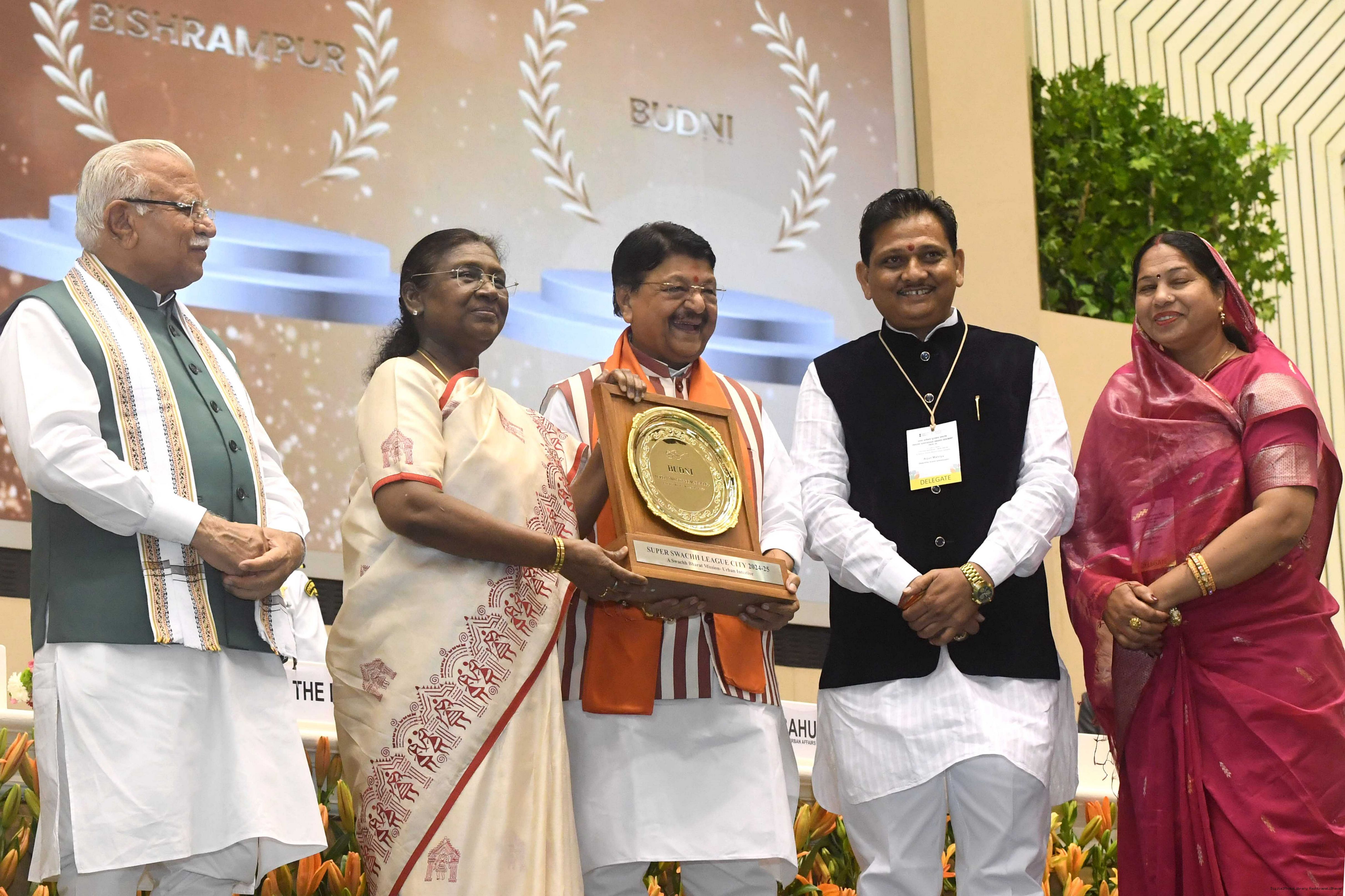 | Caption: | The President of India, Smt Droupadi Murmu, presented Swachh Survekshan awards at a function organized by the Ministry of Housing and Urban Affairs in New Delhi on July 17, 2025. |