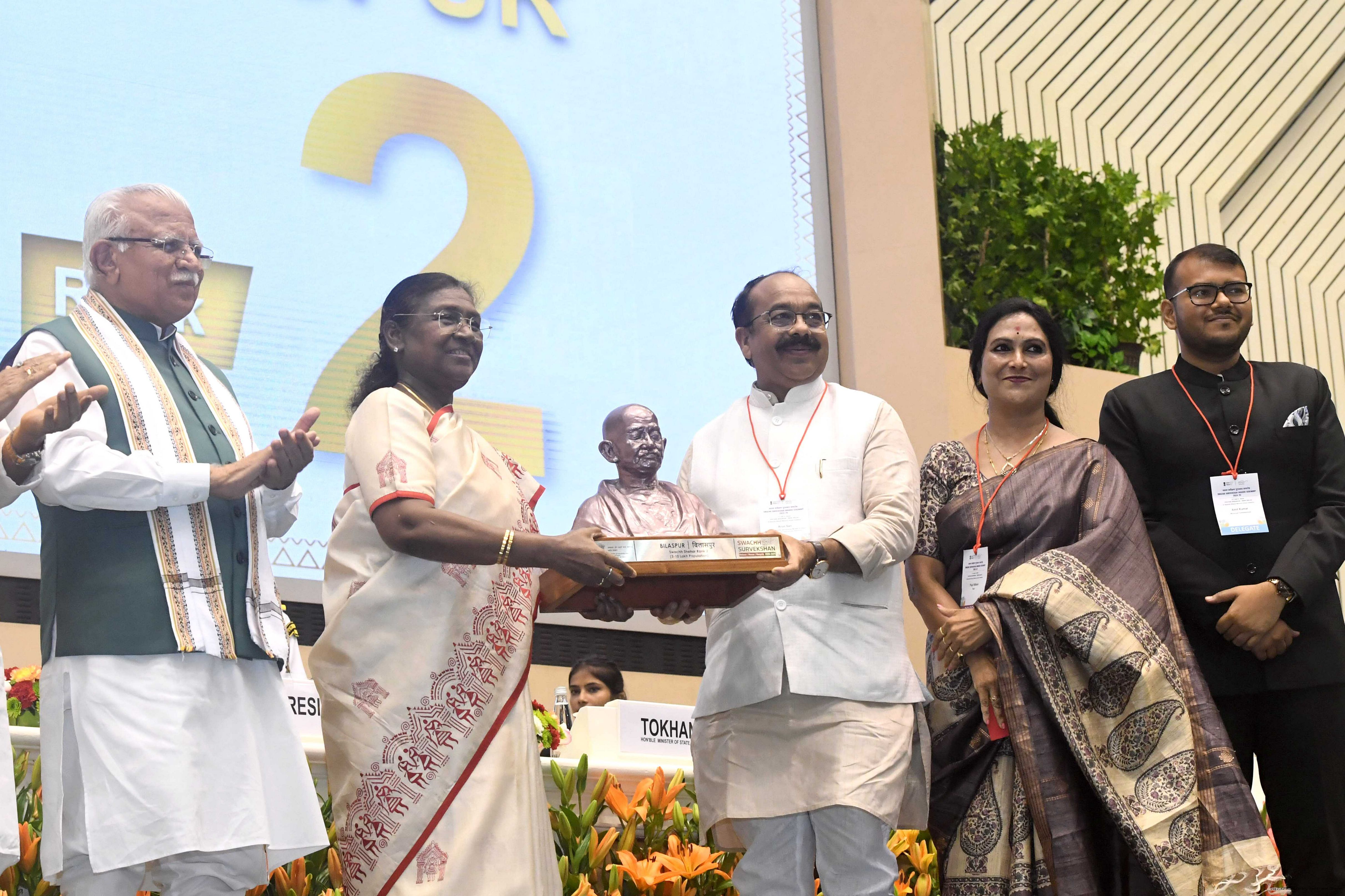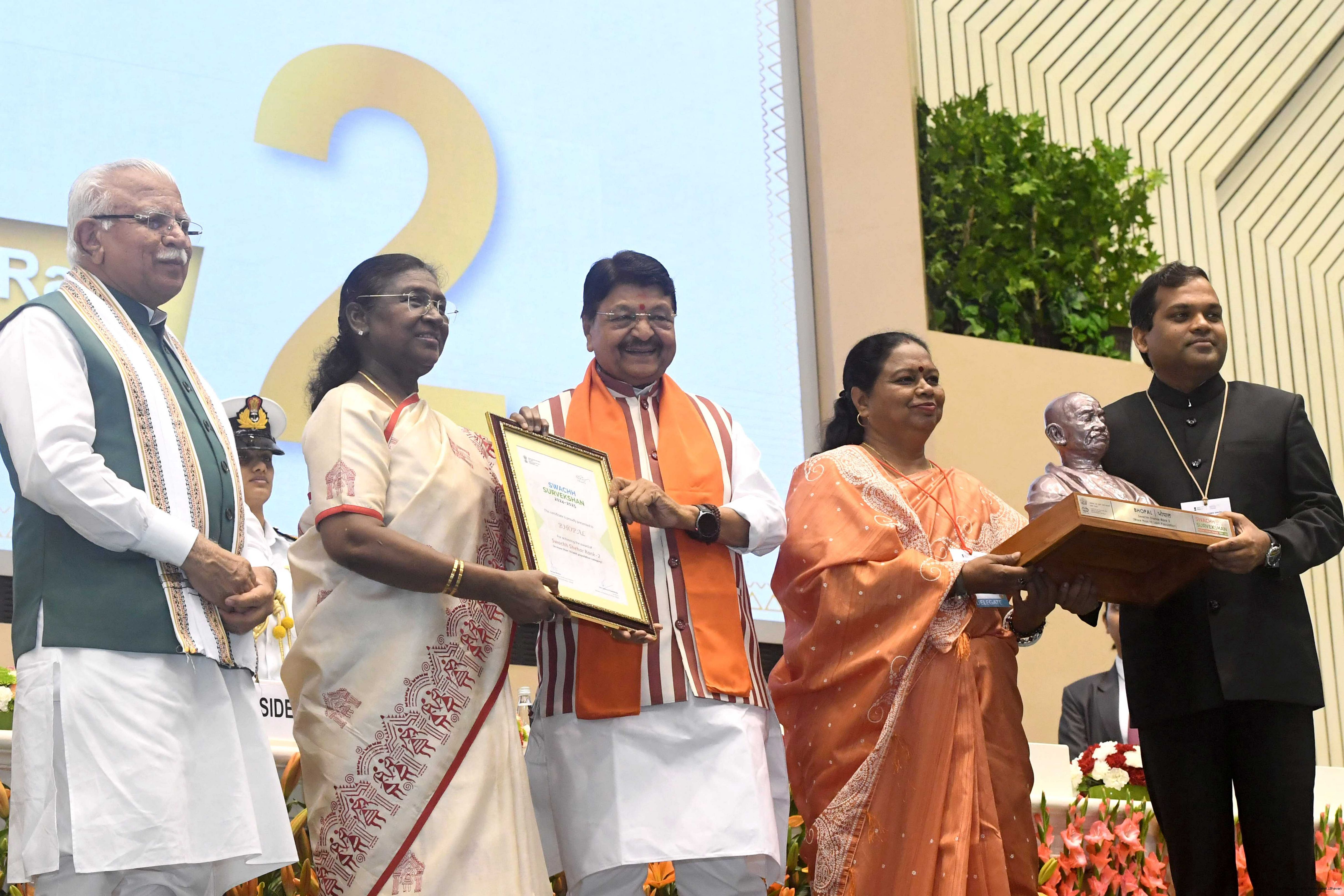 | Caption: | The President of India, Smt Droupadi Murmu, presented Swachh Survekshan awards at a function organized by the Ministry of Housing and Urban Affairs in New Delhi on July 17, 2025. |