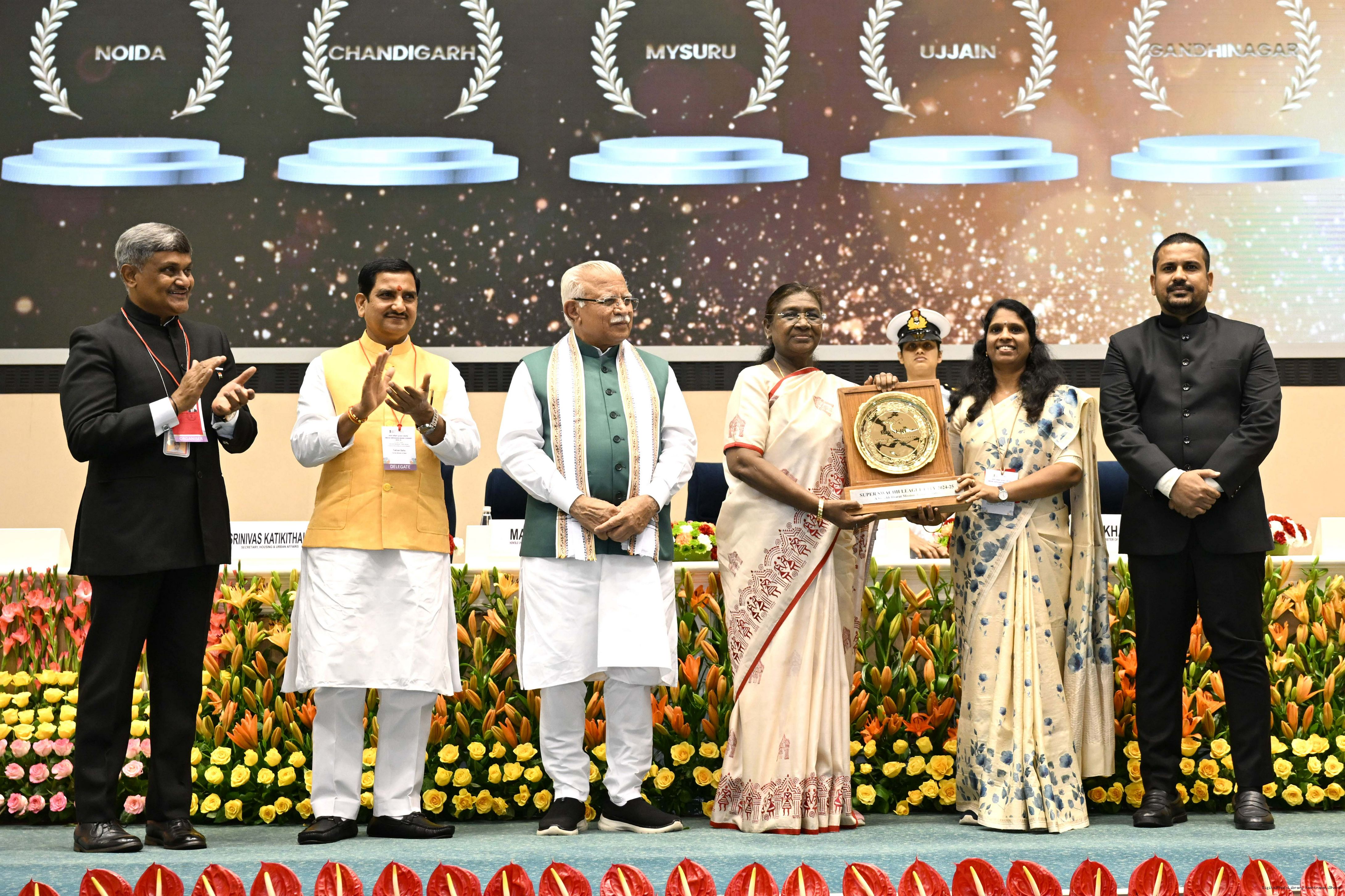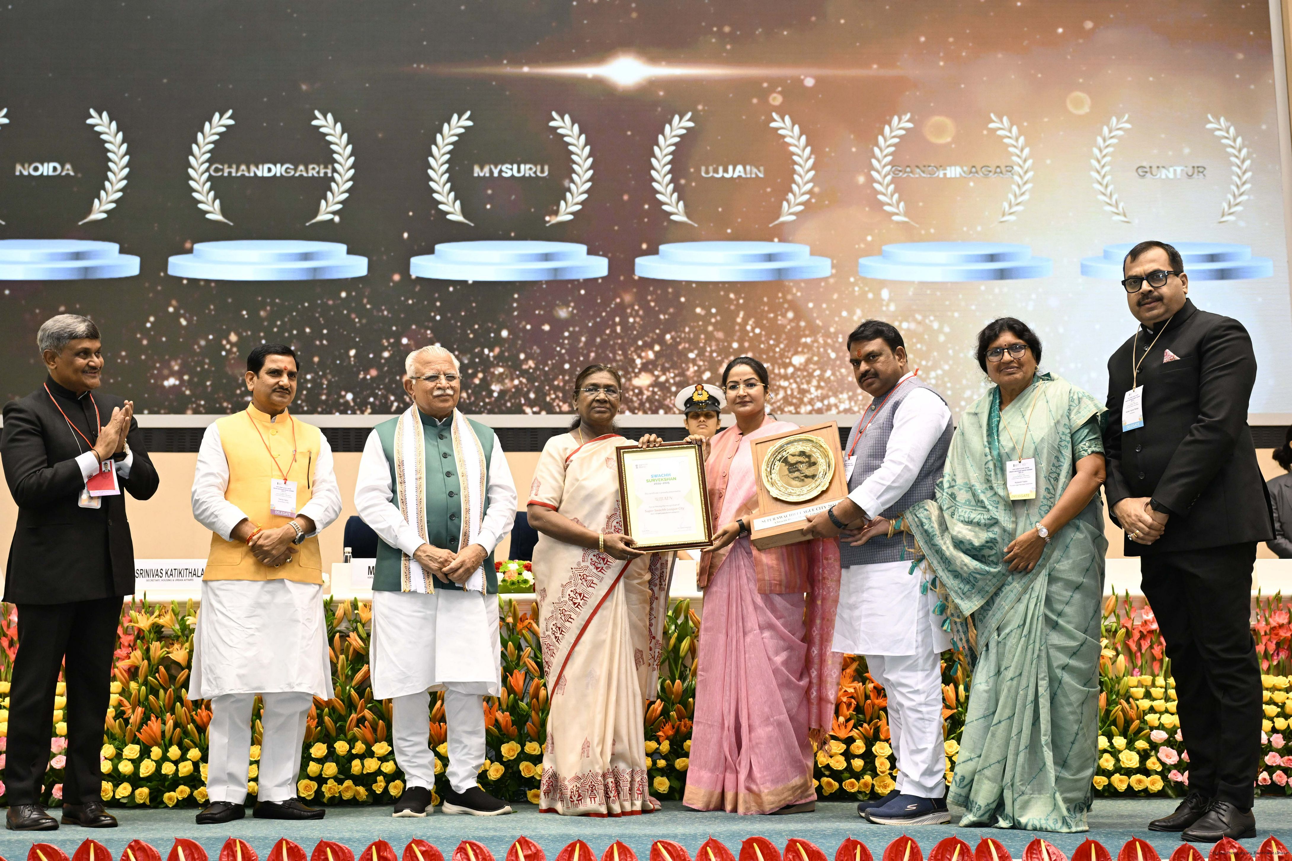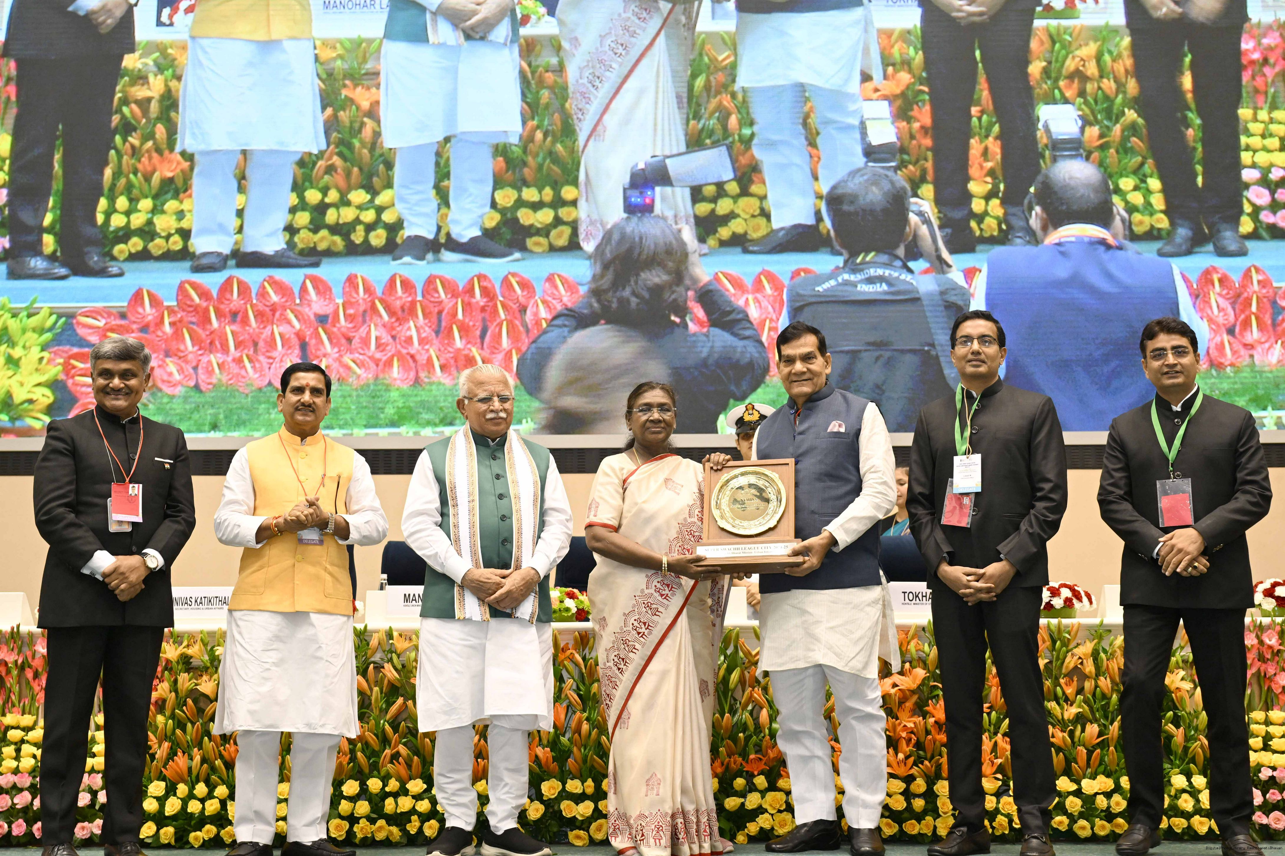 | Caption: | The President of India, Smt Droupadi Murmu, presented Swachh Survekshan awards at a function organized by the Ministry of Housing and Urban Affairs in New Delhi on July 17, 2025. |