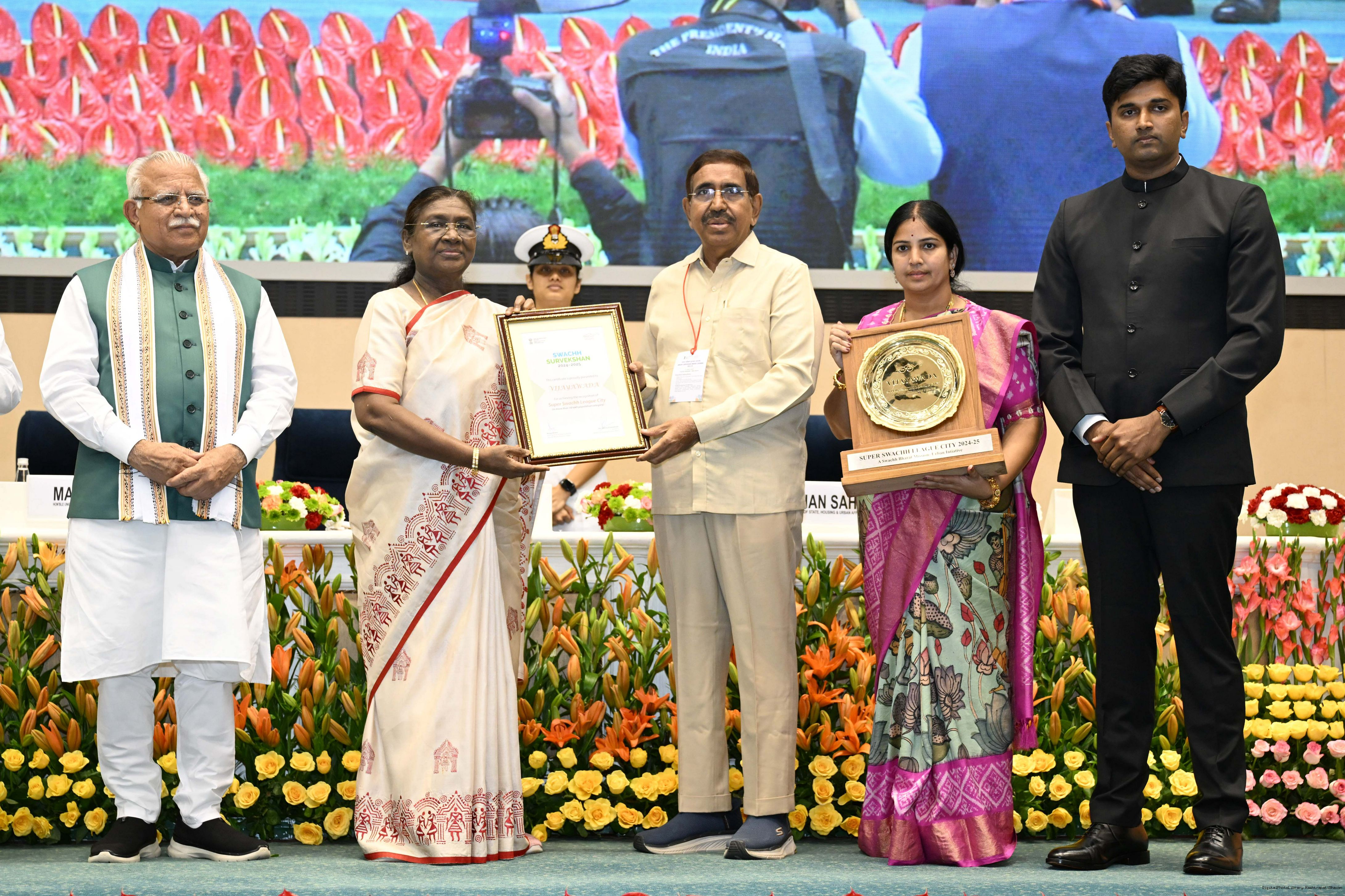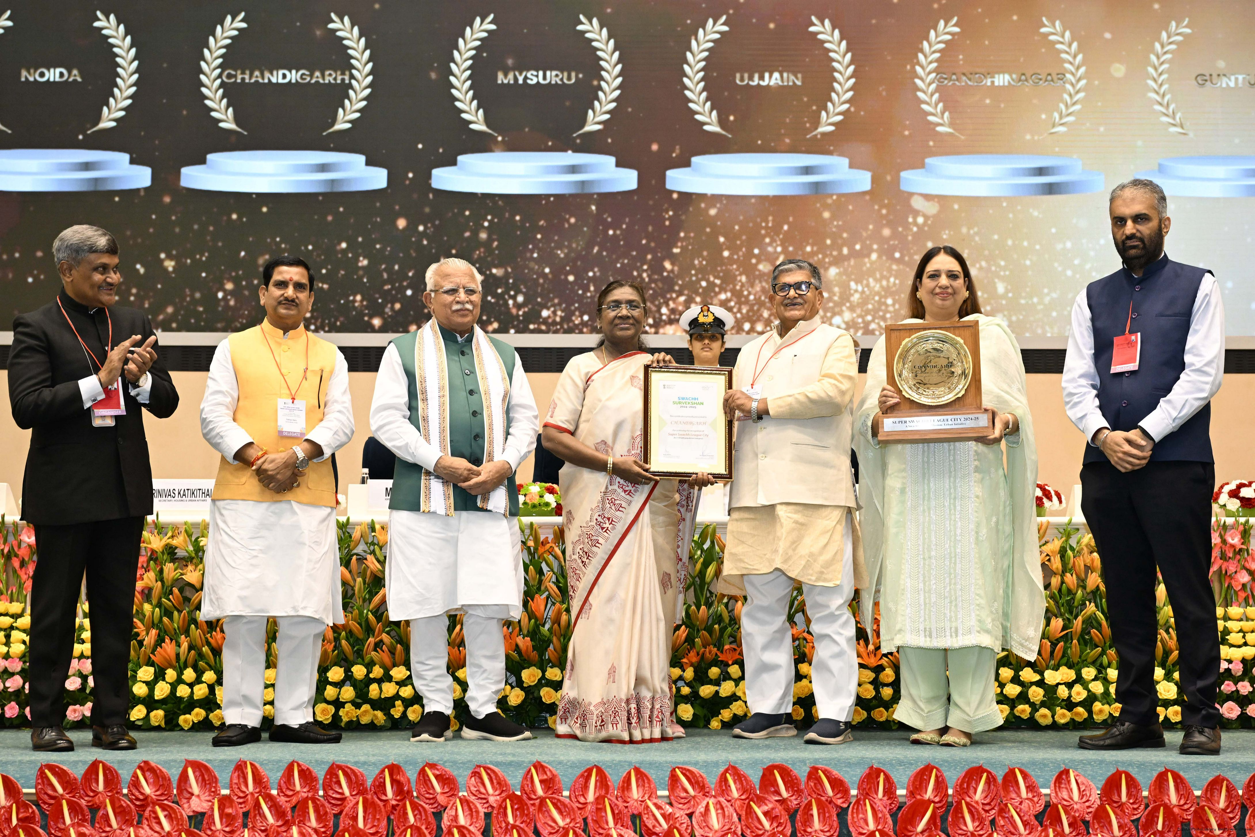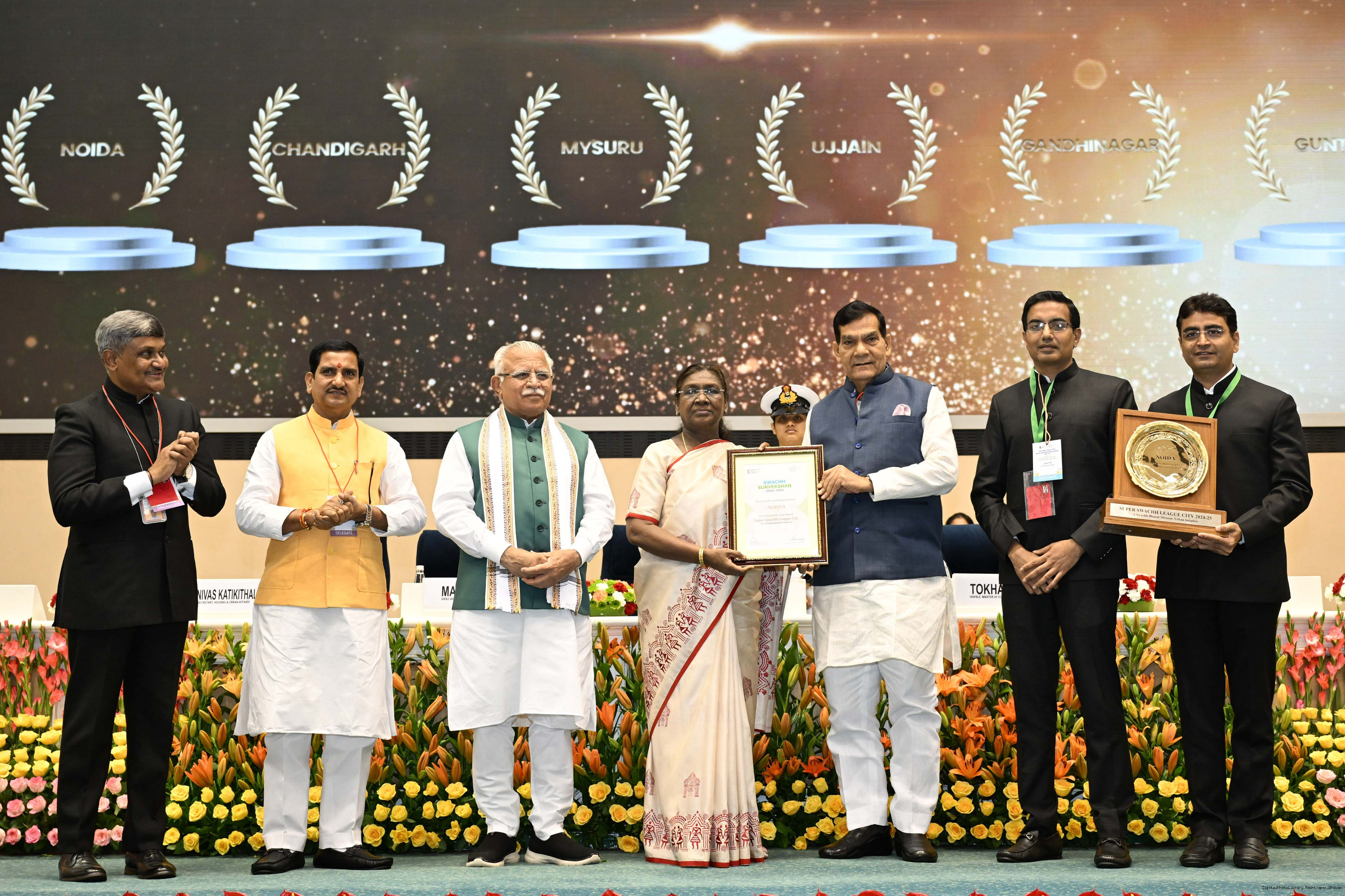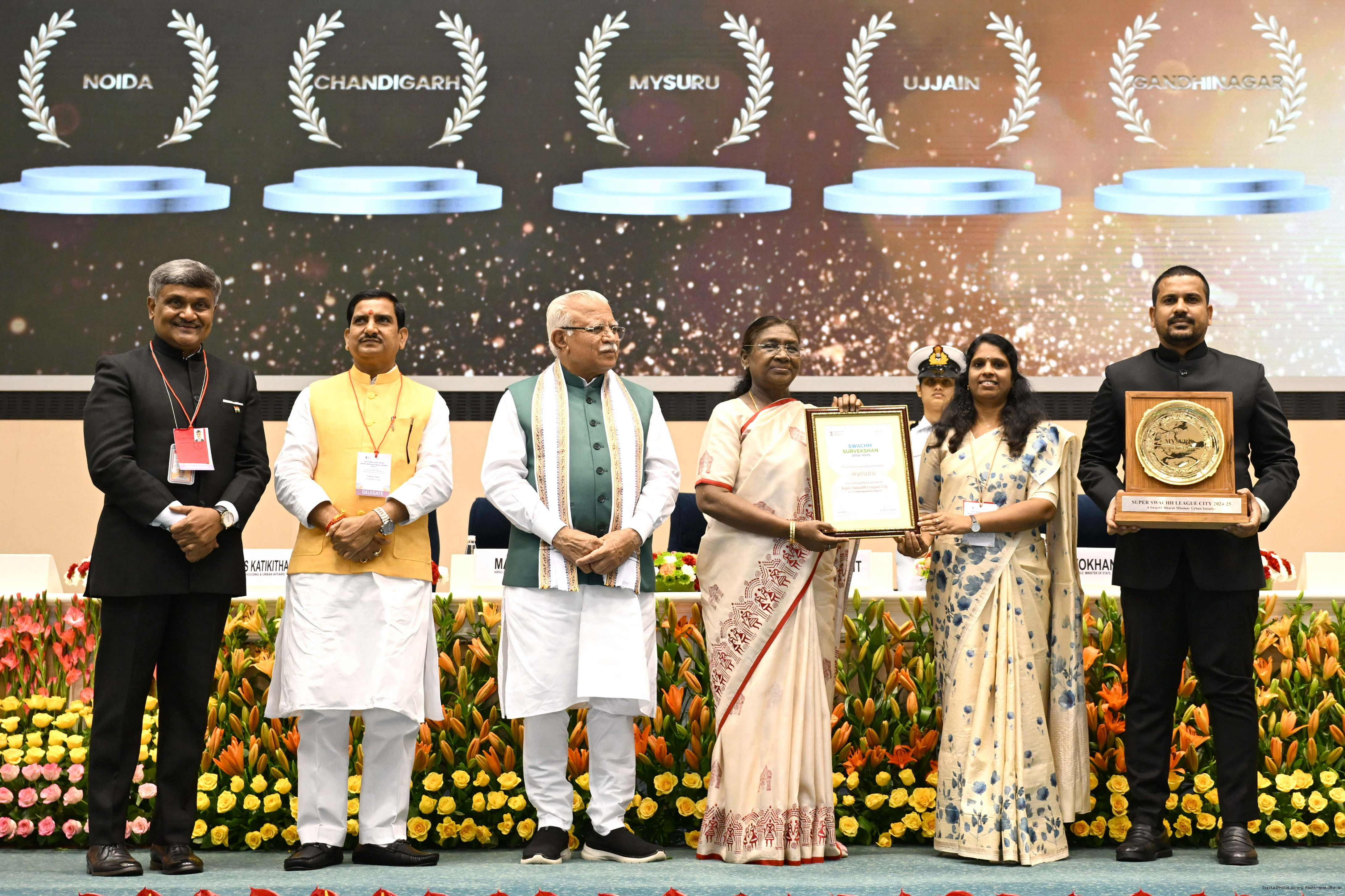 | Caption: | The President of India, Smt Droupadi Murmu, presented Swachh Survekshan awards at a function organized by the Ministry of Housing and Urban Affairs in New Delhi on July 17, 2025. |