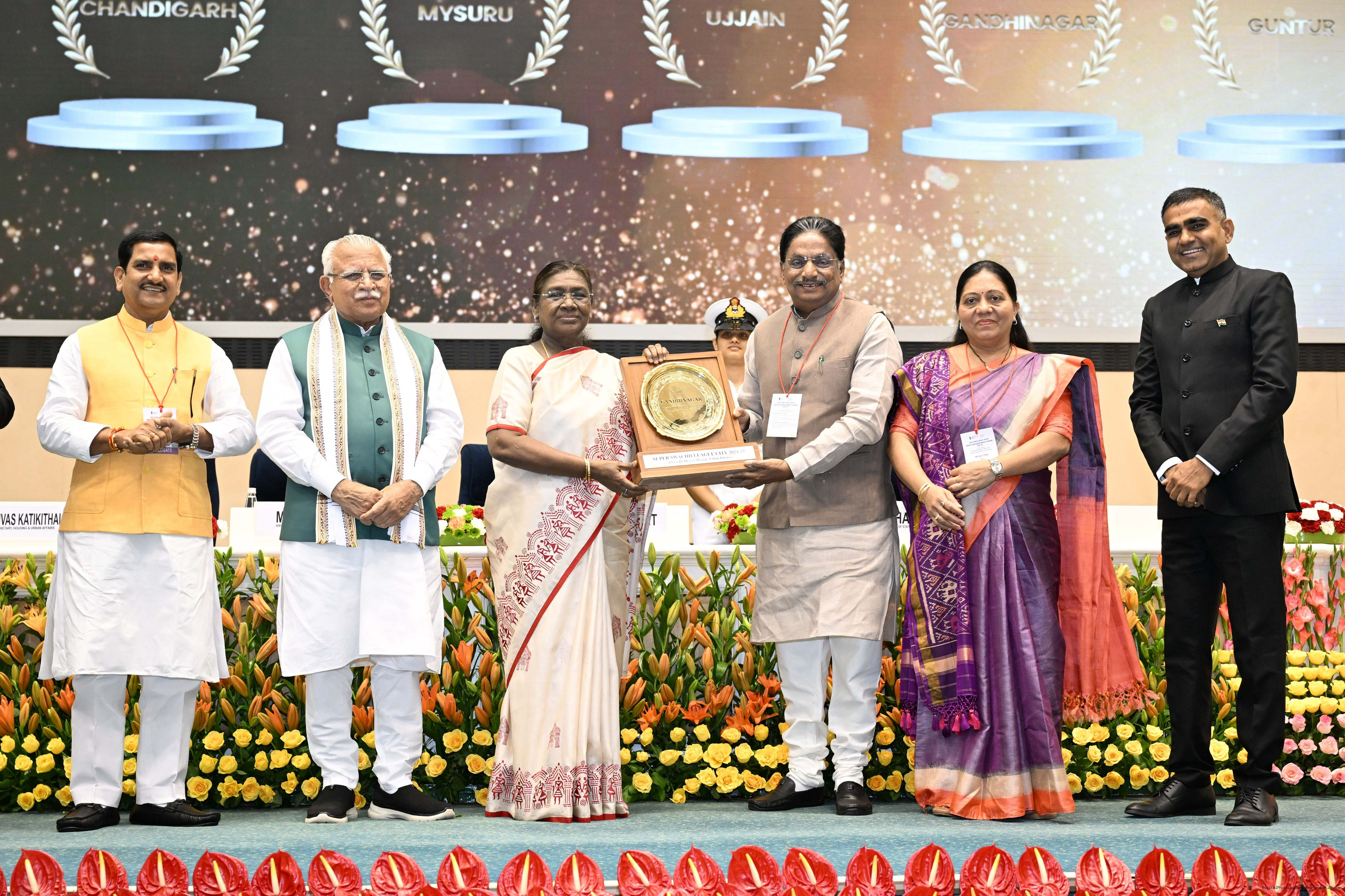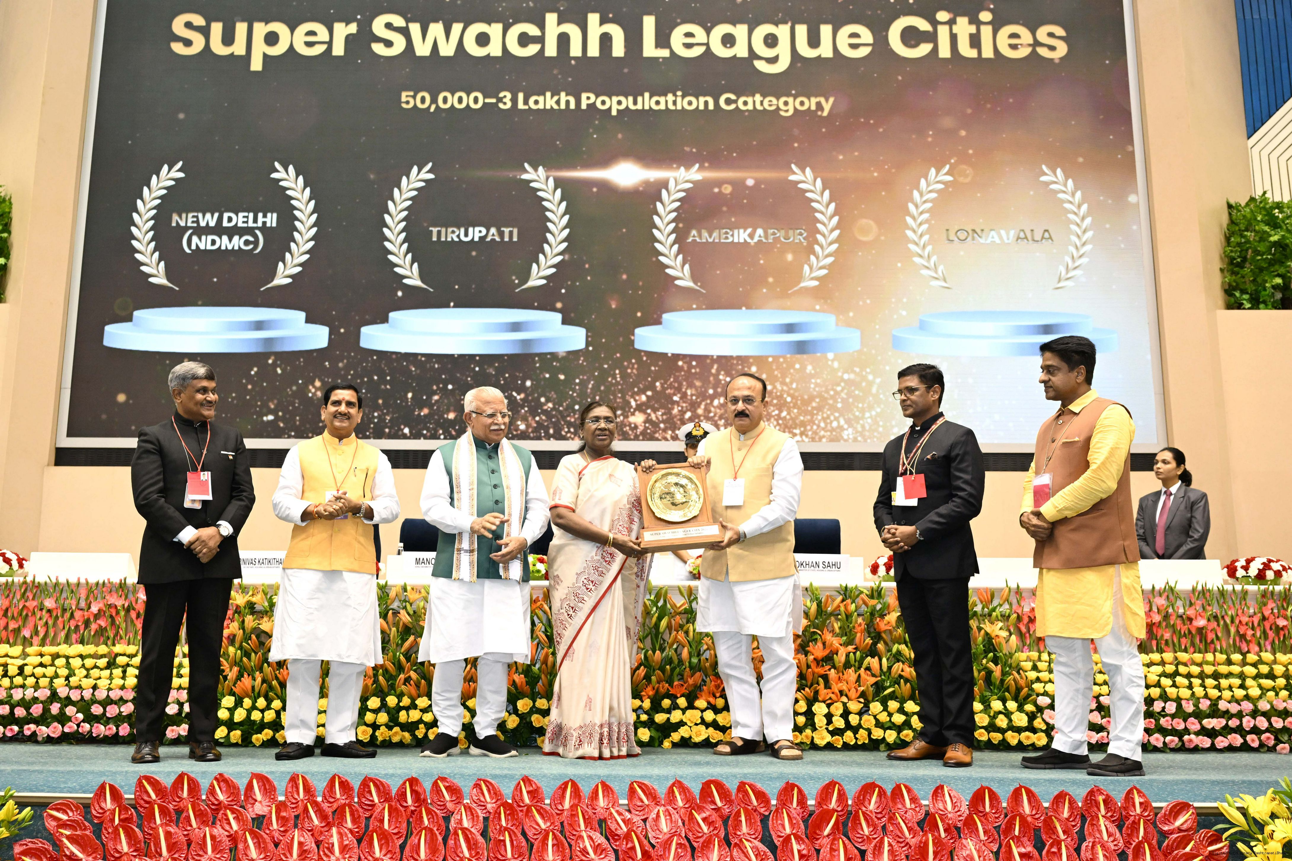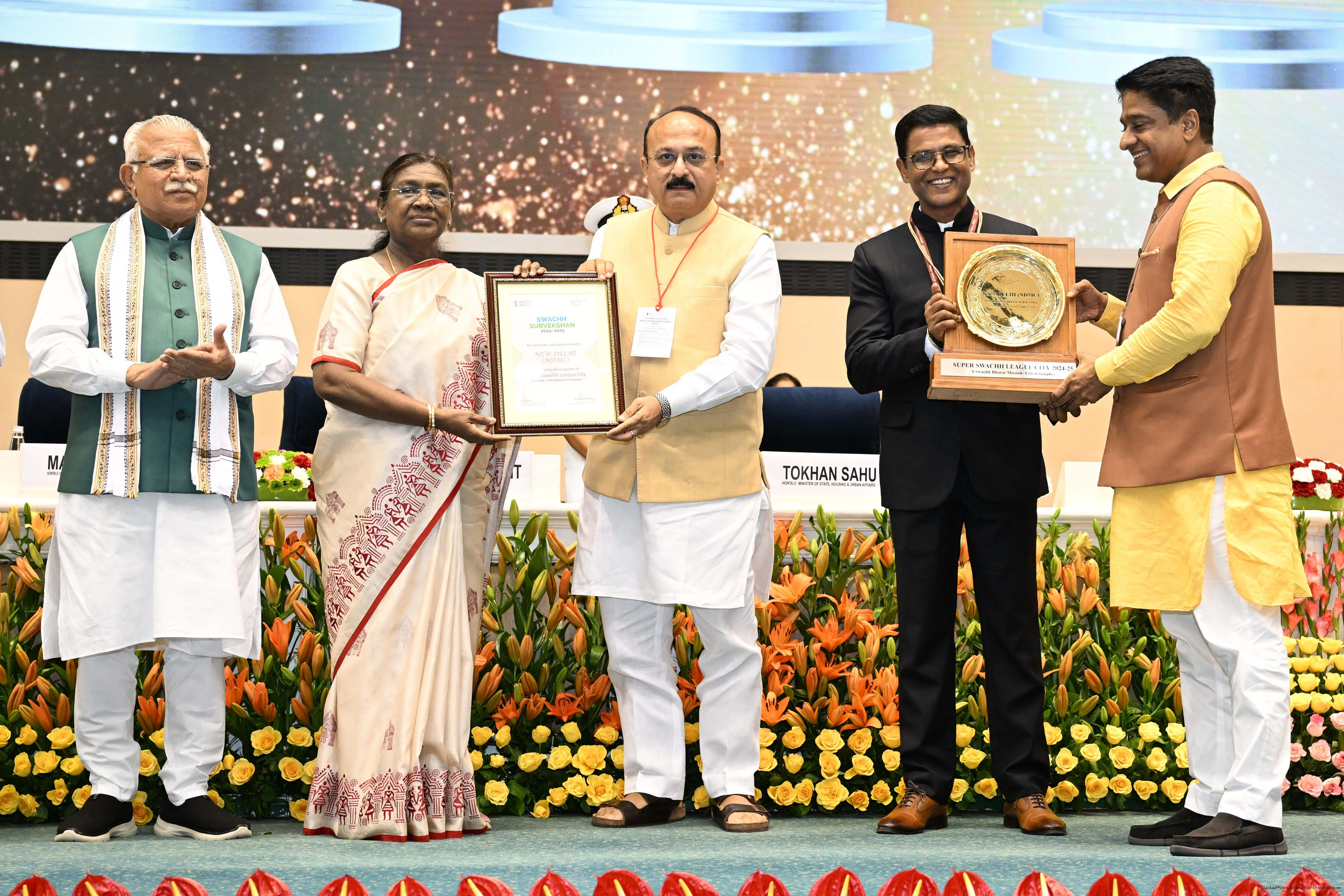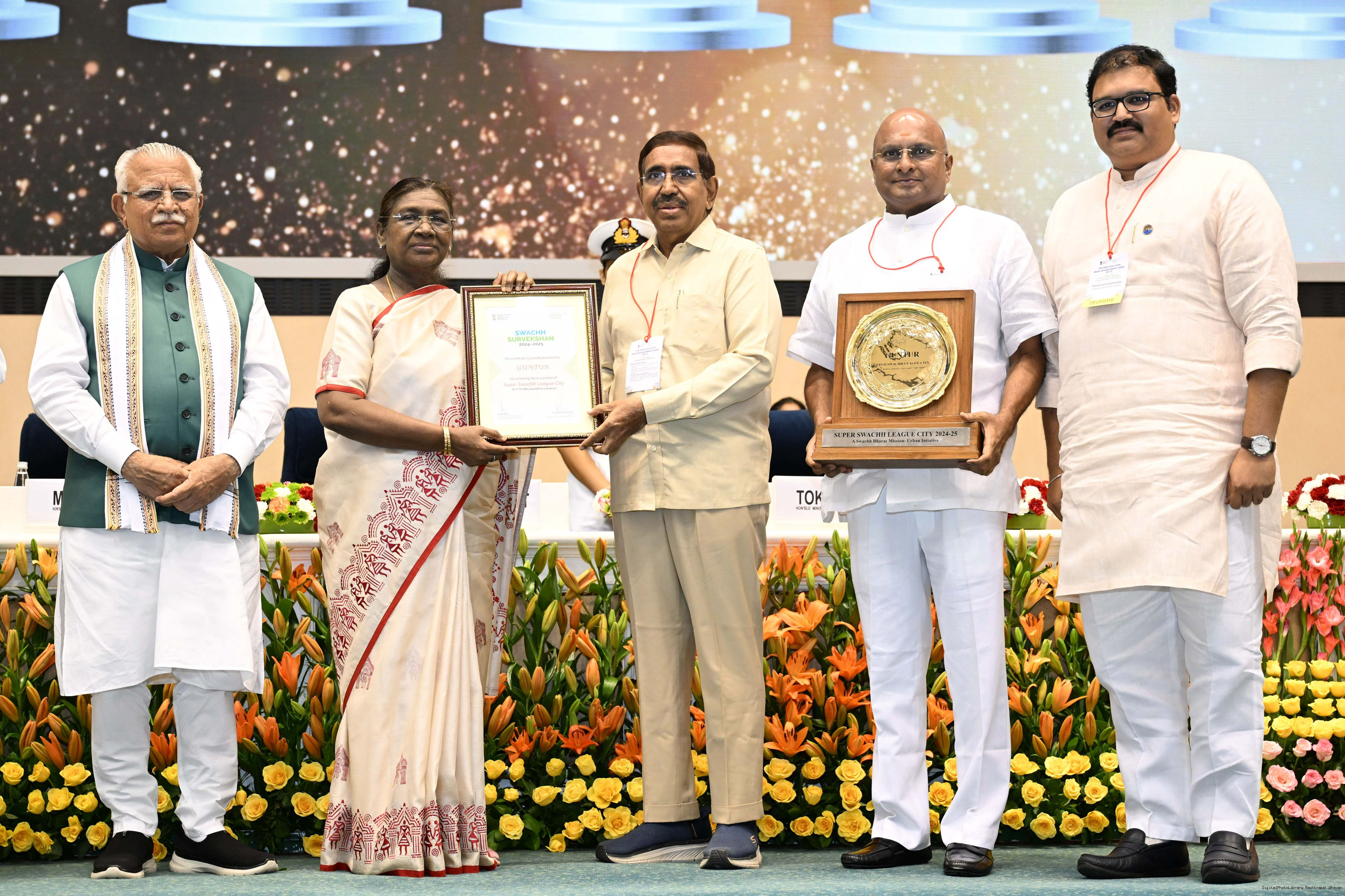 | Caption: | The President of India, Smt Droupadi Murmu, presented Swachh Survekshan awards at a function organized by the Ministry of Housing and Urban Affairs in New Delhi on July 17, 2025. |
