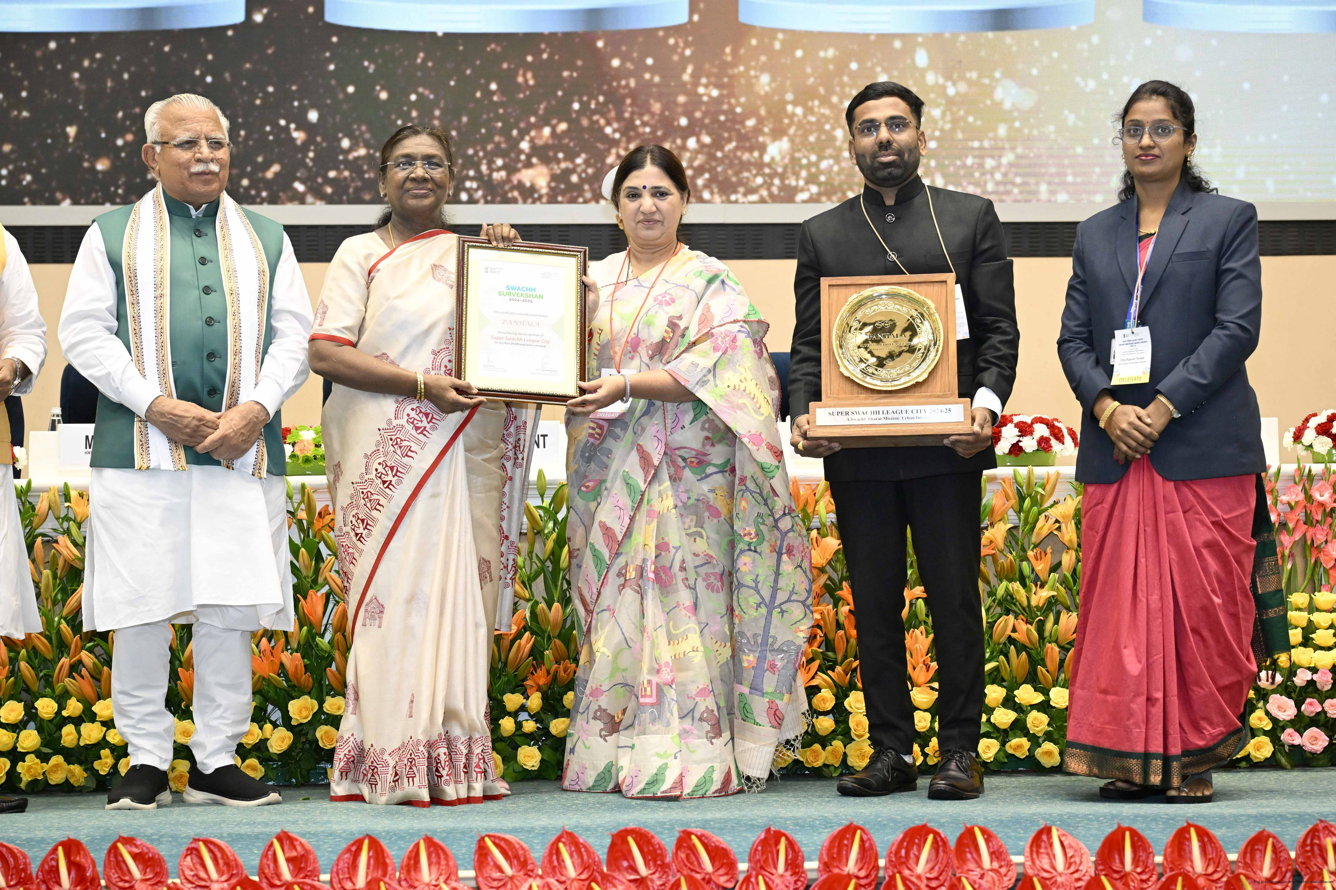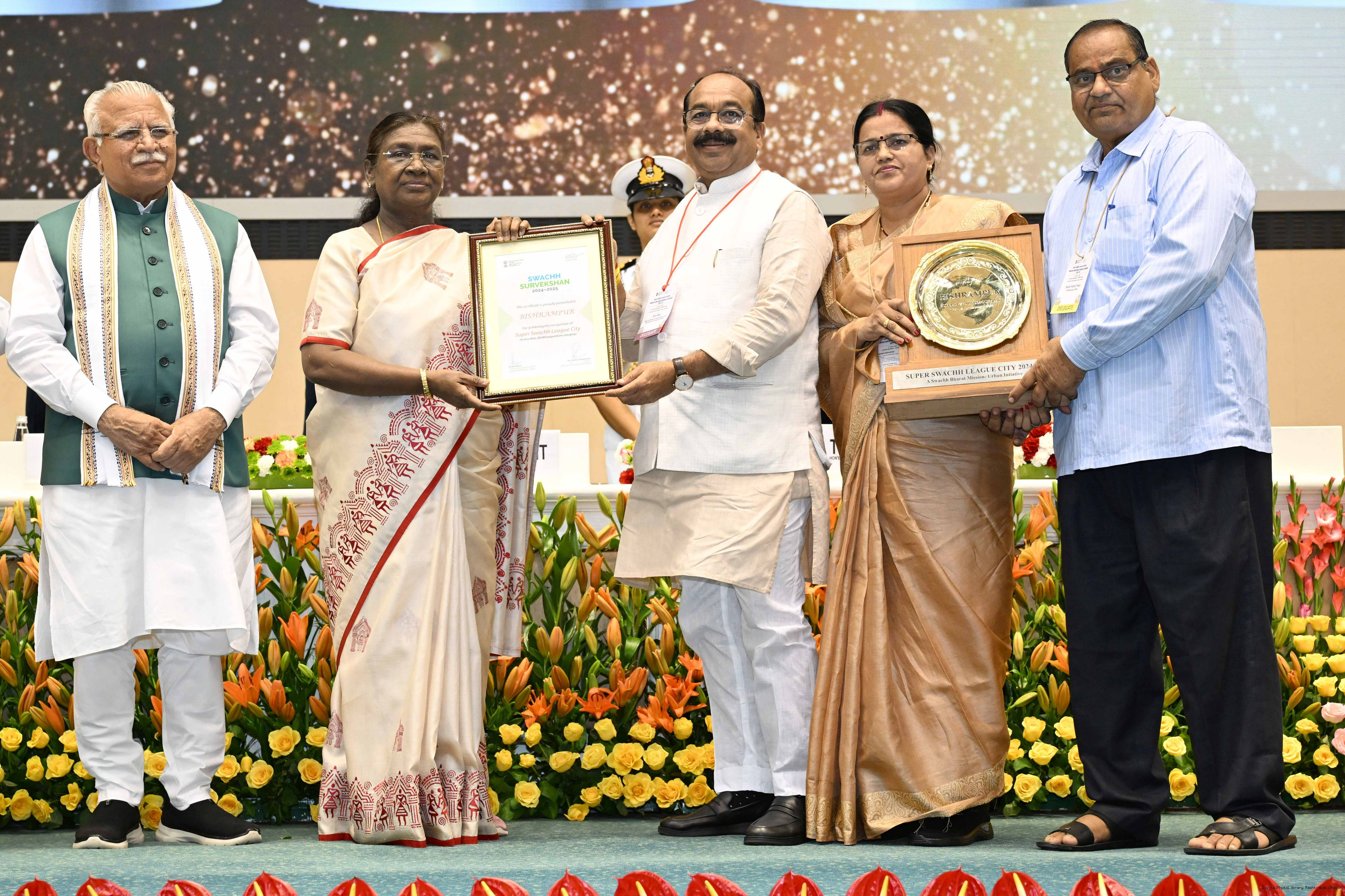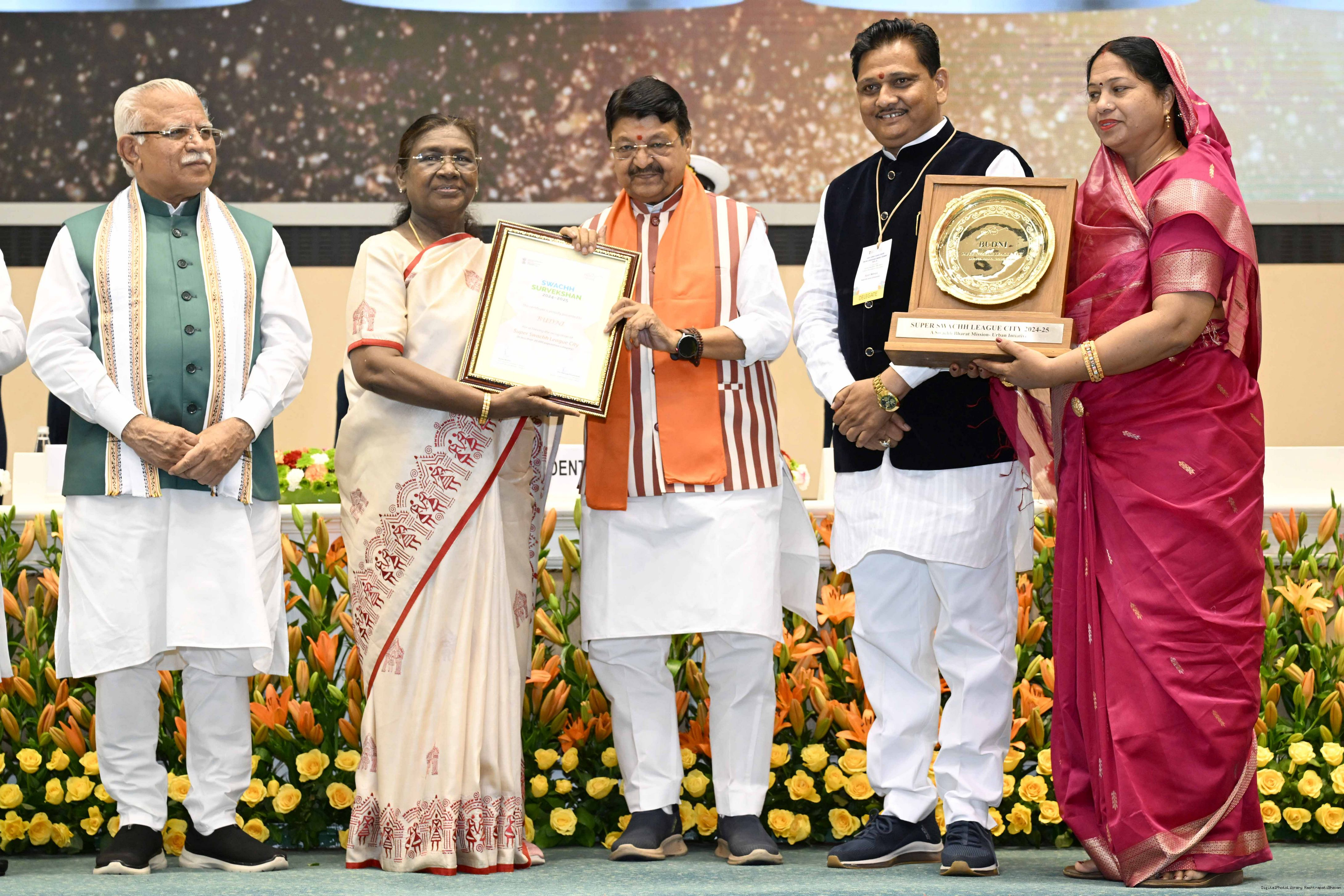 | Caption: | The President of India, Smt Droupadi Murmu, presented Swachh Survekshan awards at a function organized by the Ministry of Housing and Urban Affairs in New Delhi on July 17, 2025. |