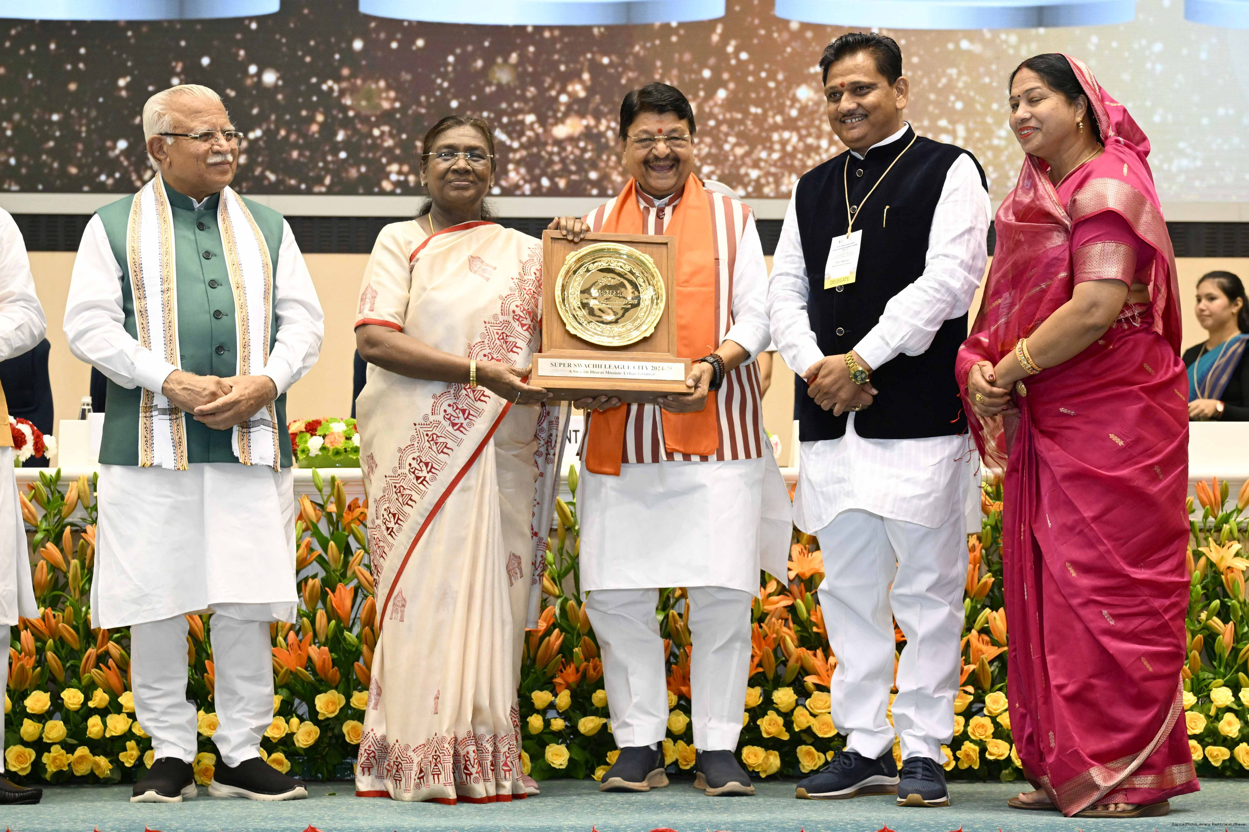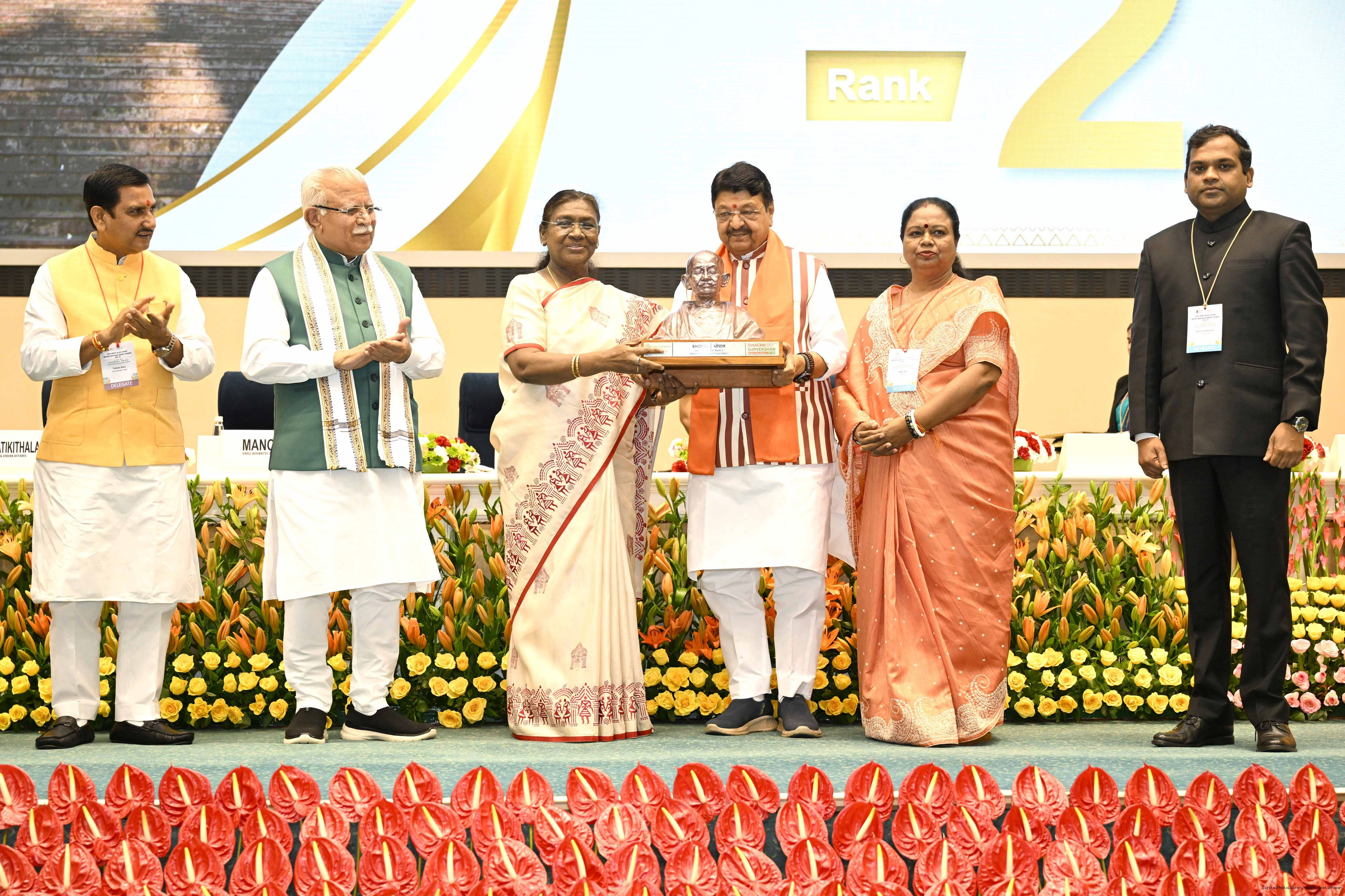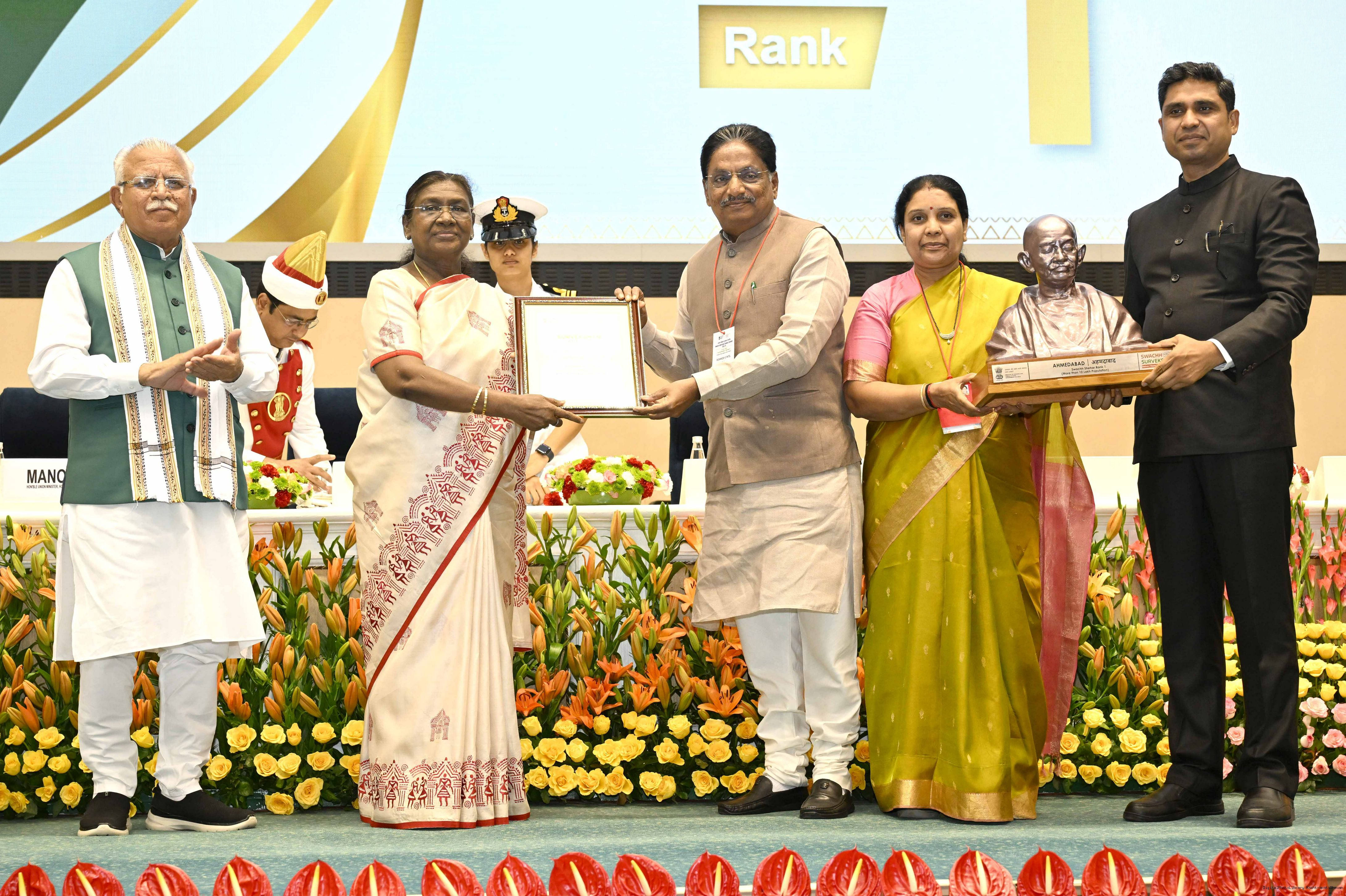 | Caption: | The President of India, Smt Droupadi Murmu, presented Swachh Survekshan awards at a function organized by the Ministry of Housing and Urban Affairs in New Delhi on July 17, 2025. |