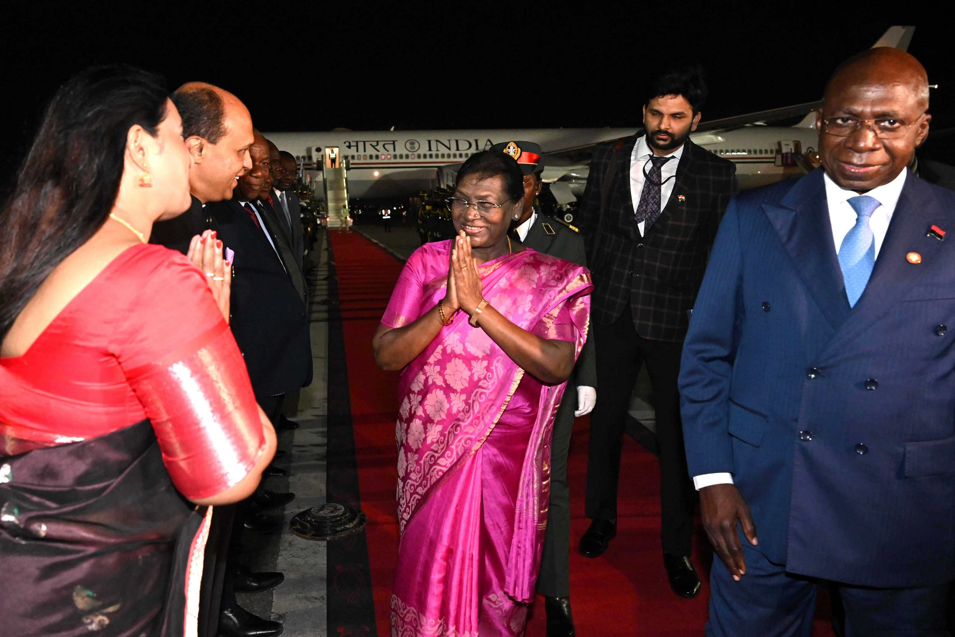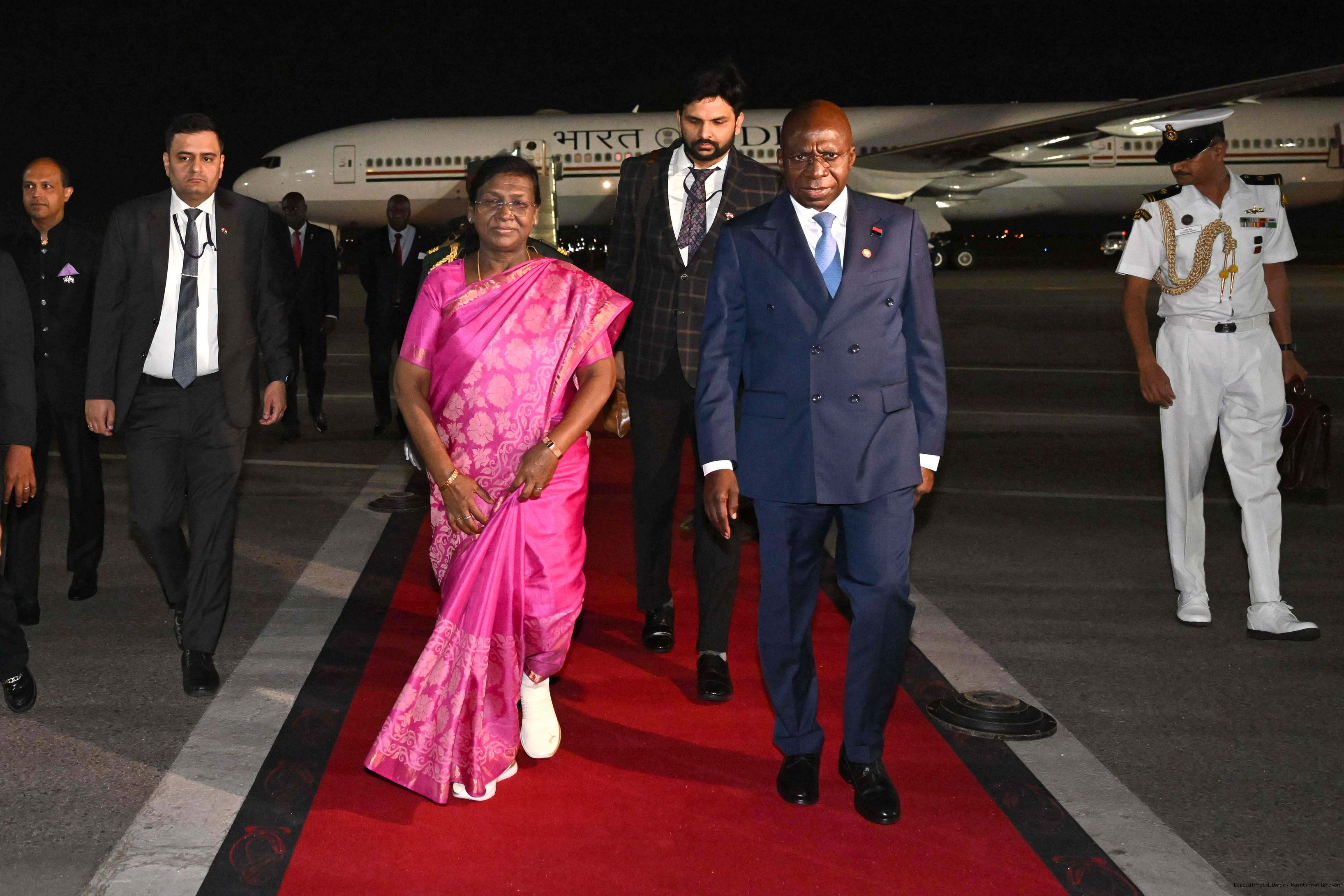 | Caption: | The President of India, Smt Droupadi Murmu reached Angola received by Mr. Tete Antonio, Minister of External Relations of Angola at Luanda International Airport on November 8, 2025. |