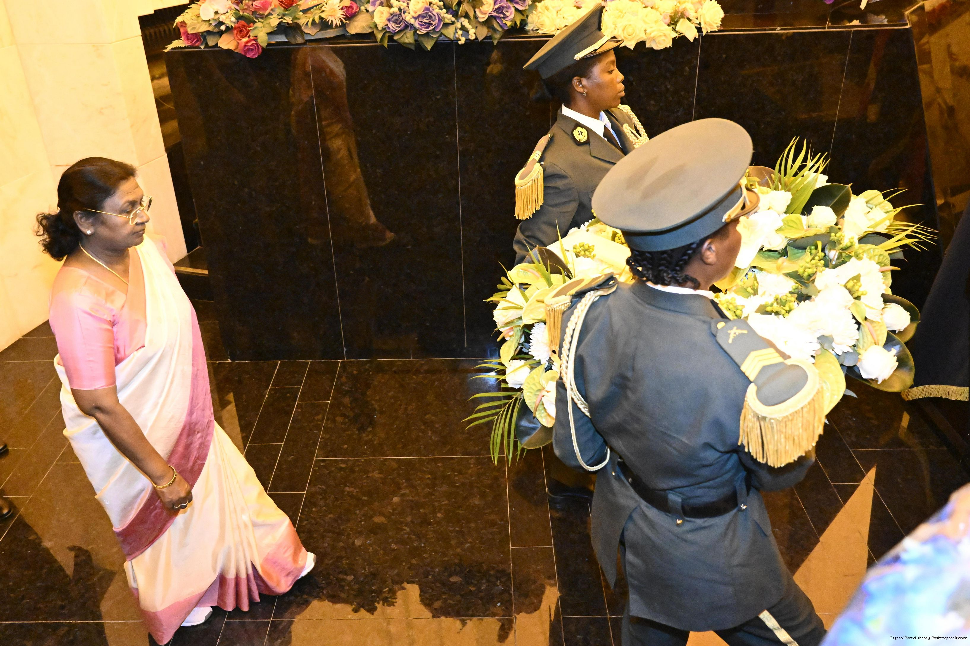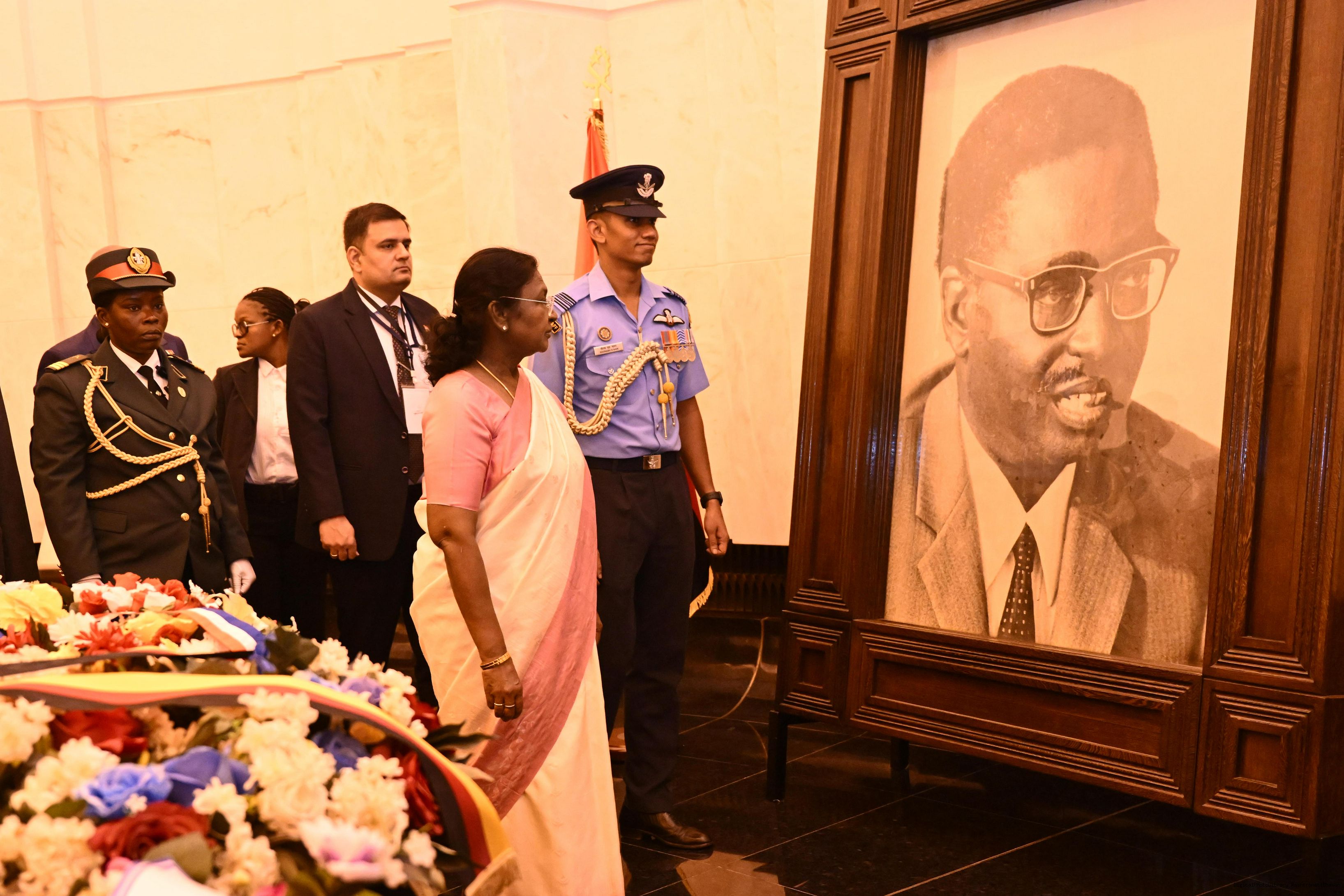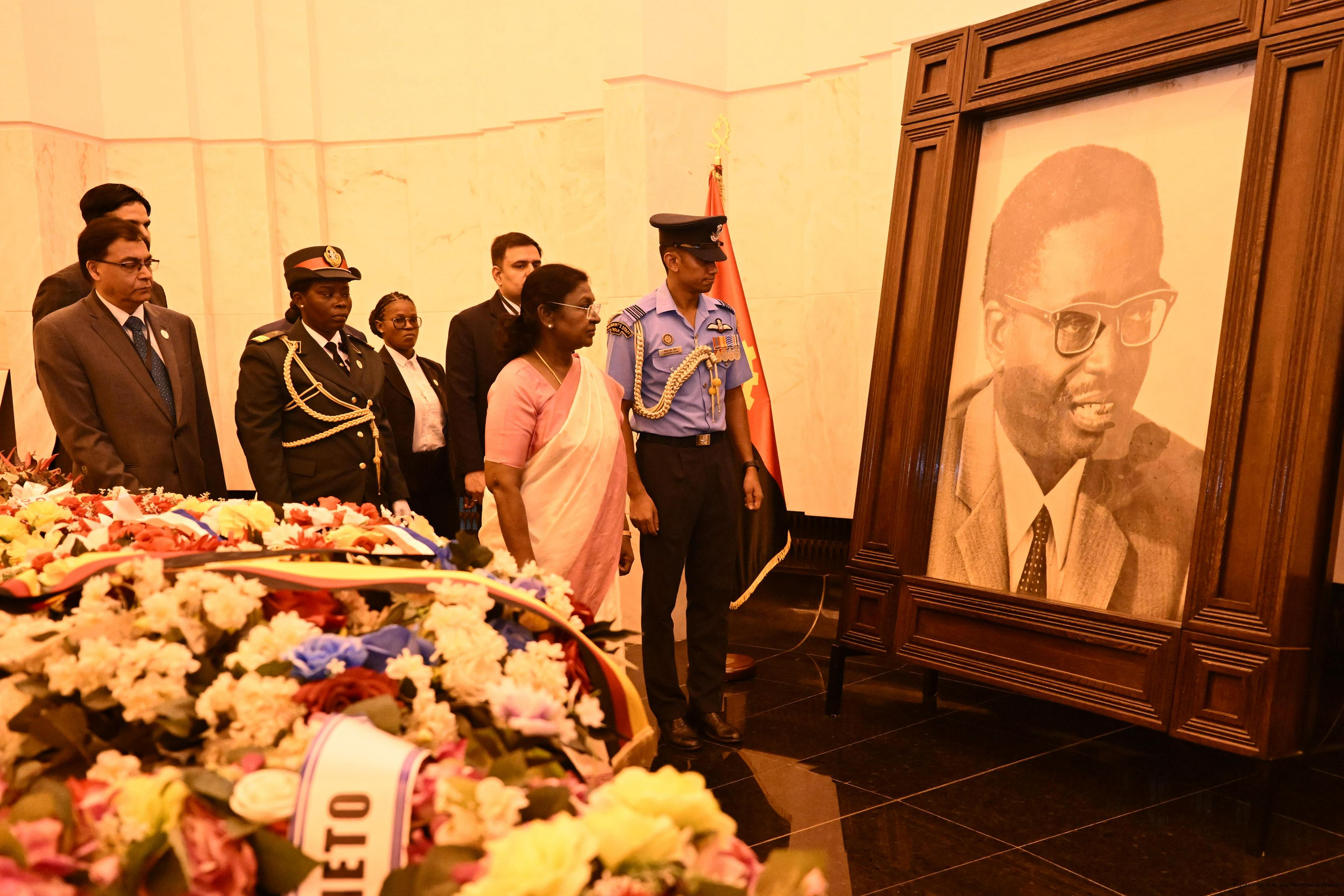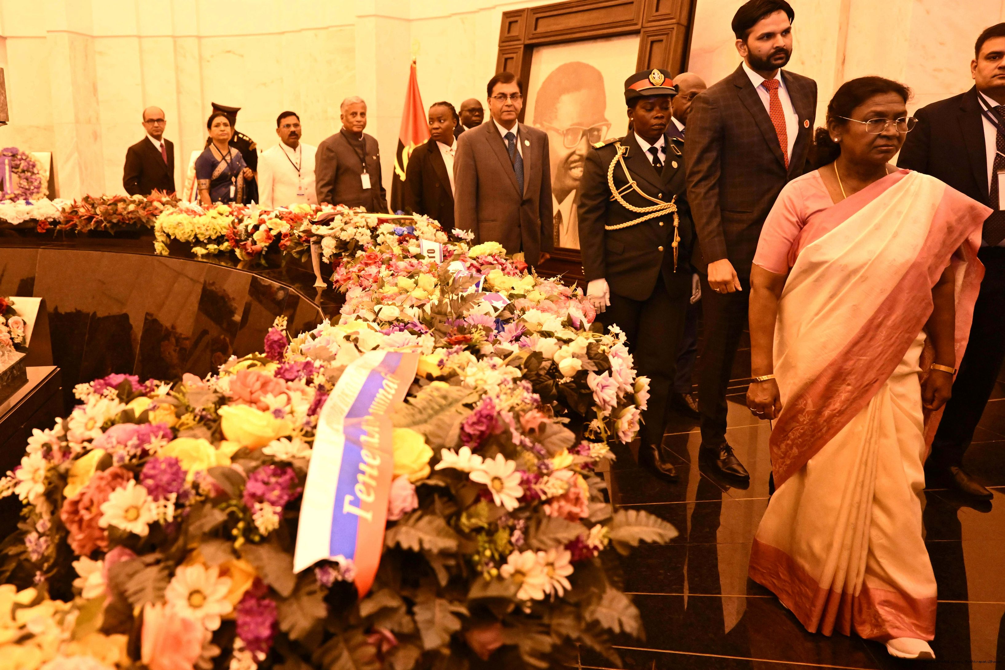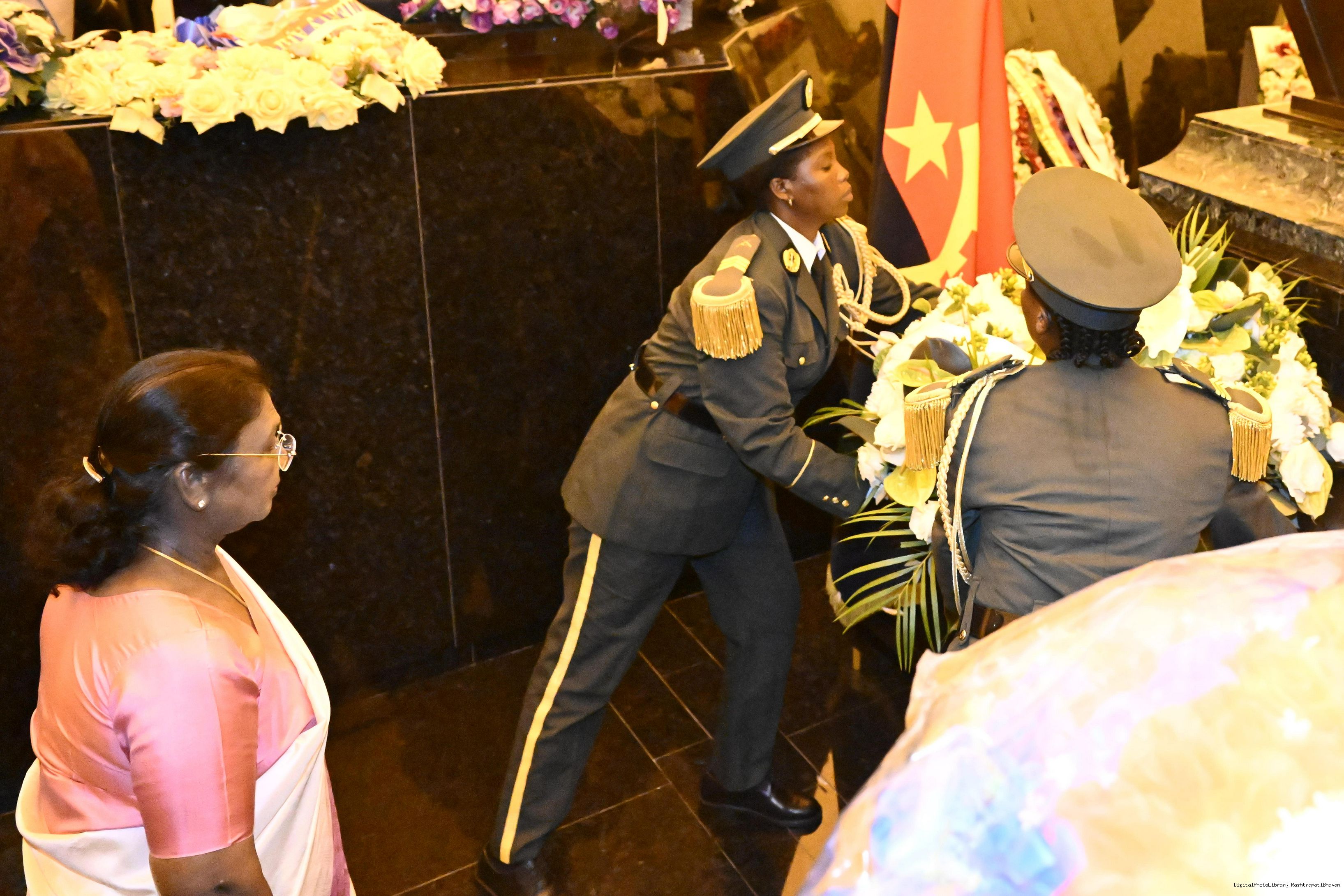 | Caption: | The President of India, Smt. Droupadi Murmu paid floral tribute at the memorial of Dr. Antonio Agostinho Neto in Luanda Angola on November 10, 2025. |