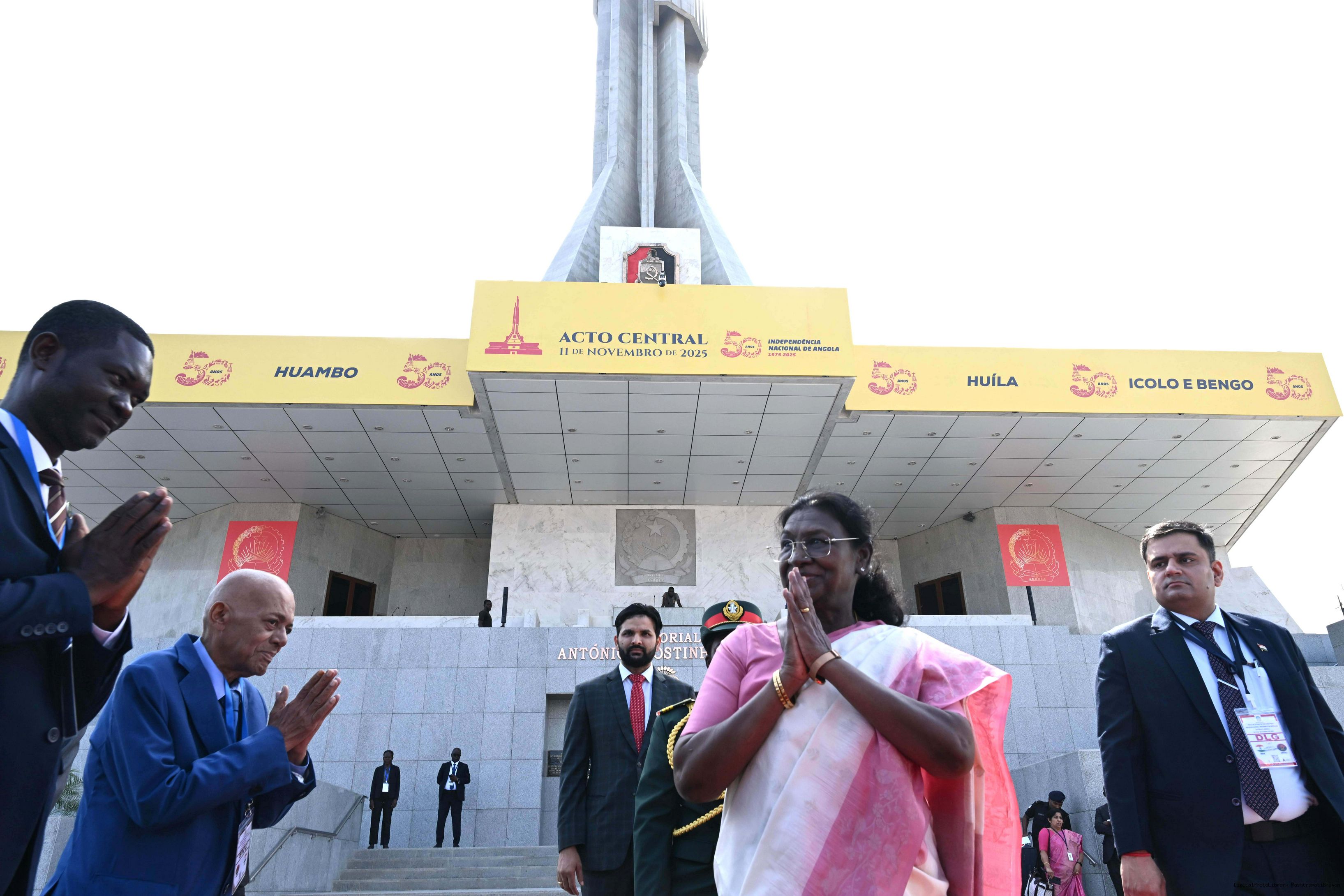 | Caption: | The President of India, Smt. Droupadi Murmu paid floral tribute at the memorial of Dr. Antonio Agostinho Neto in Luanda Angola on November 10, 2025. |