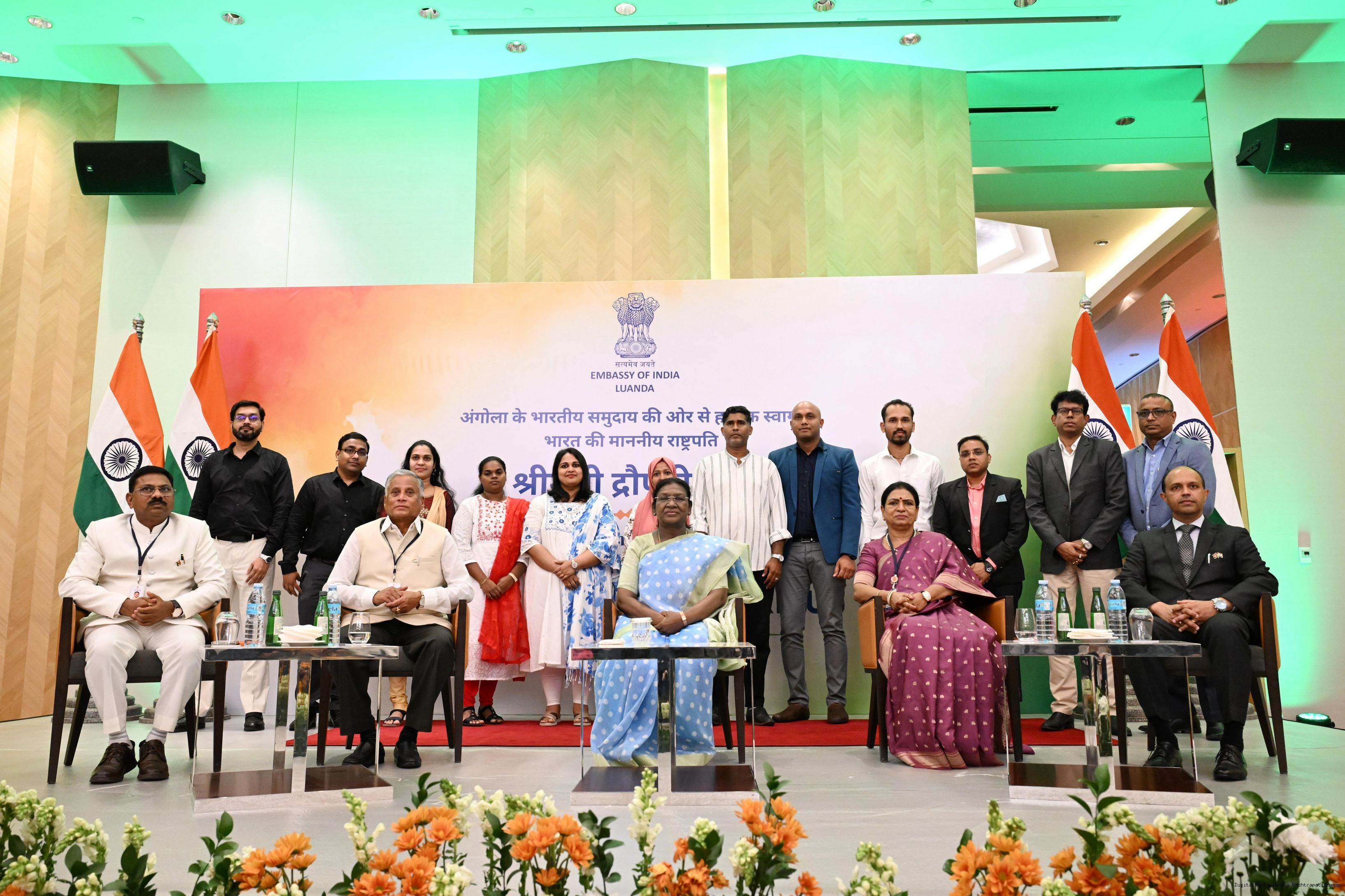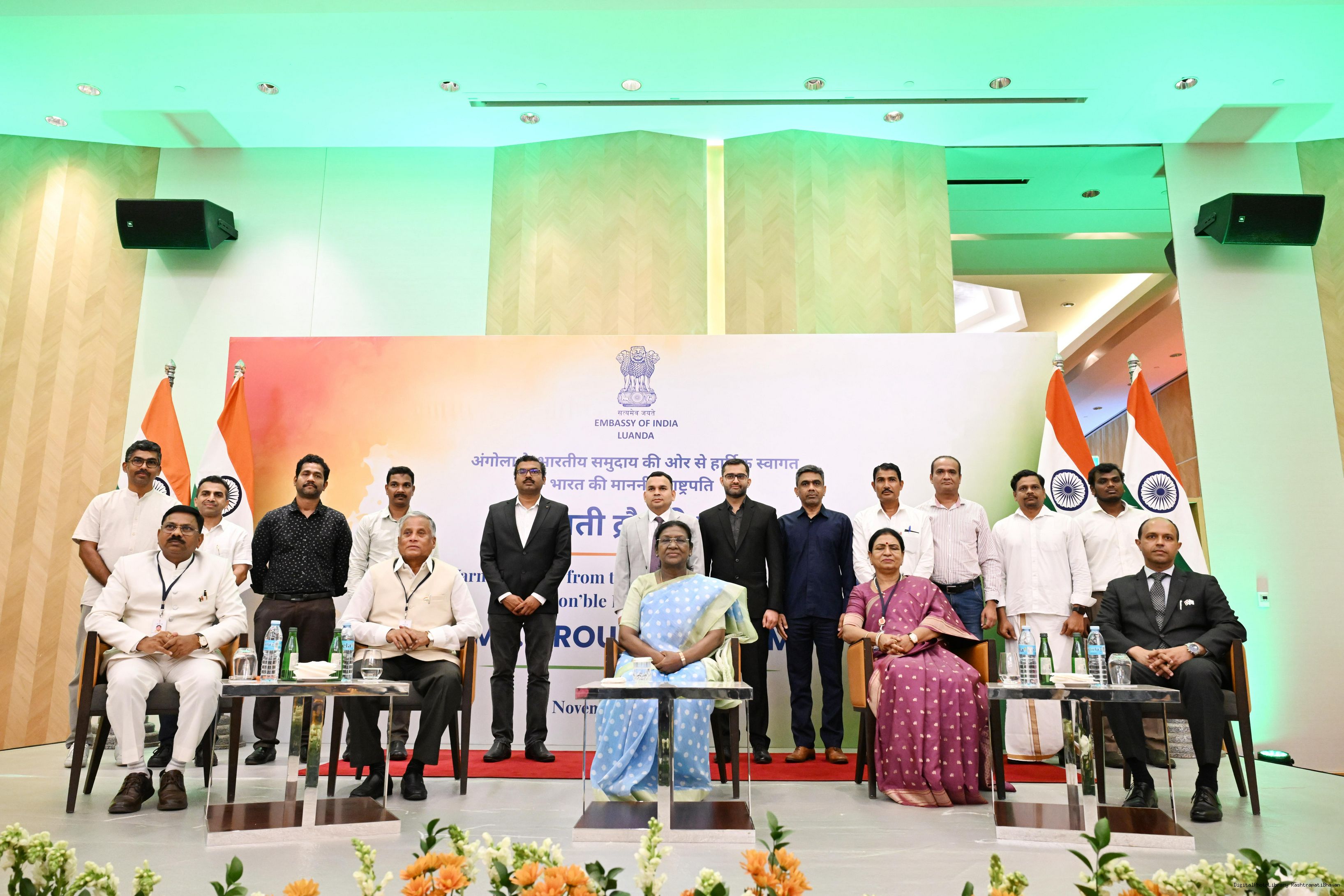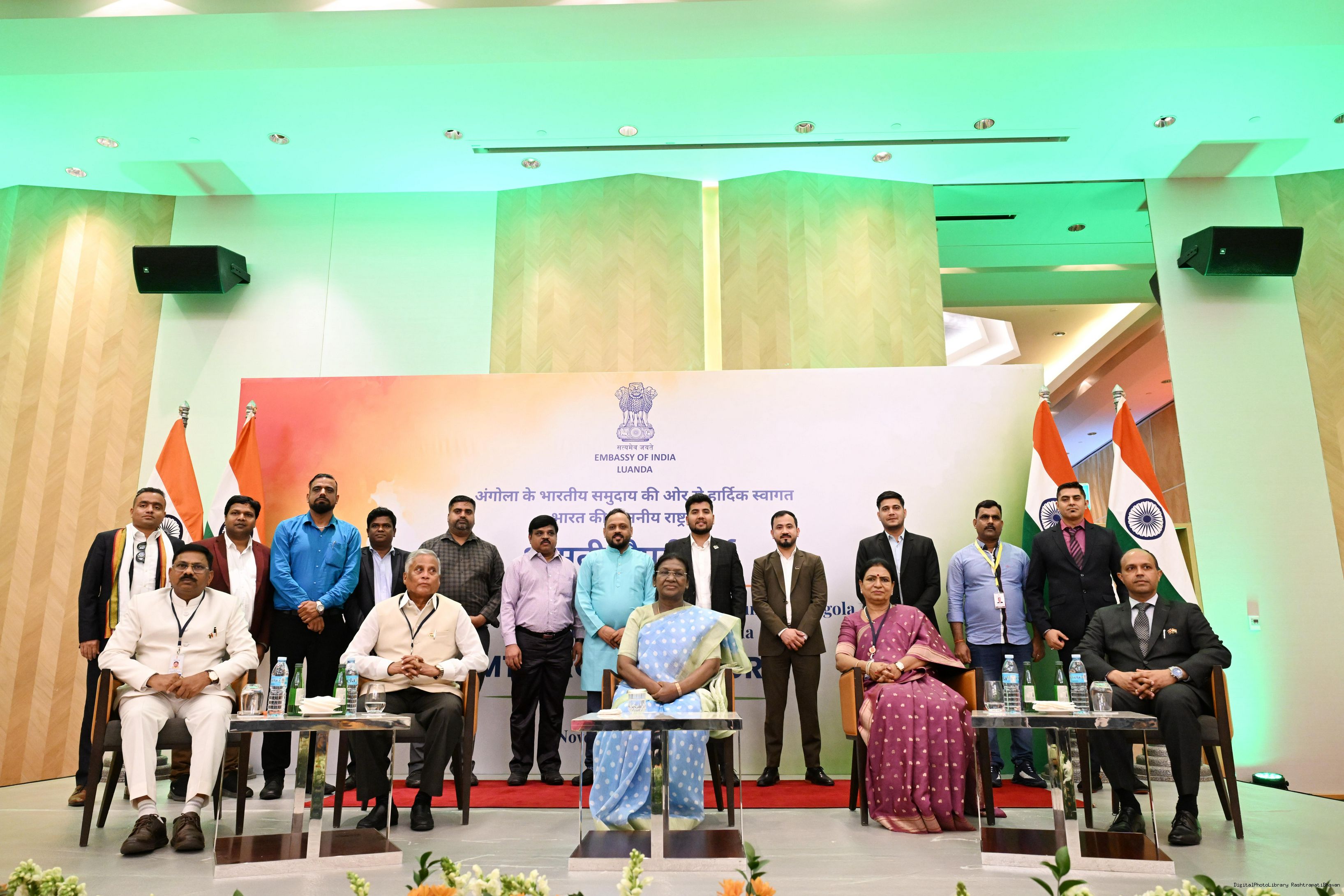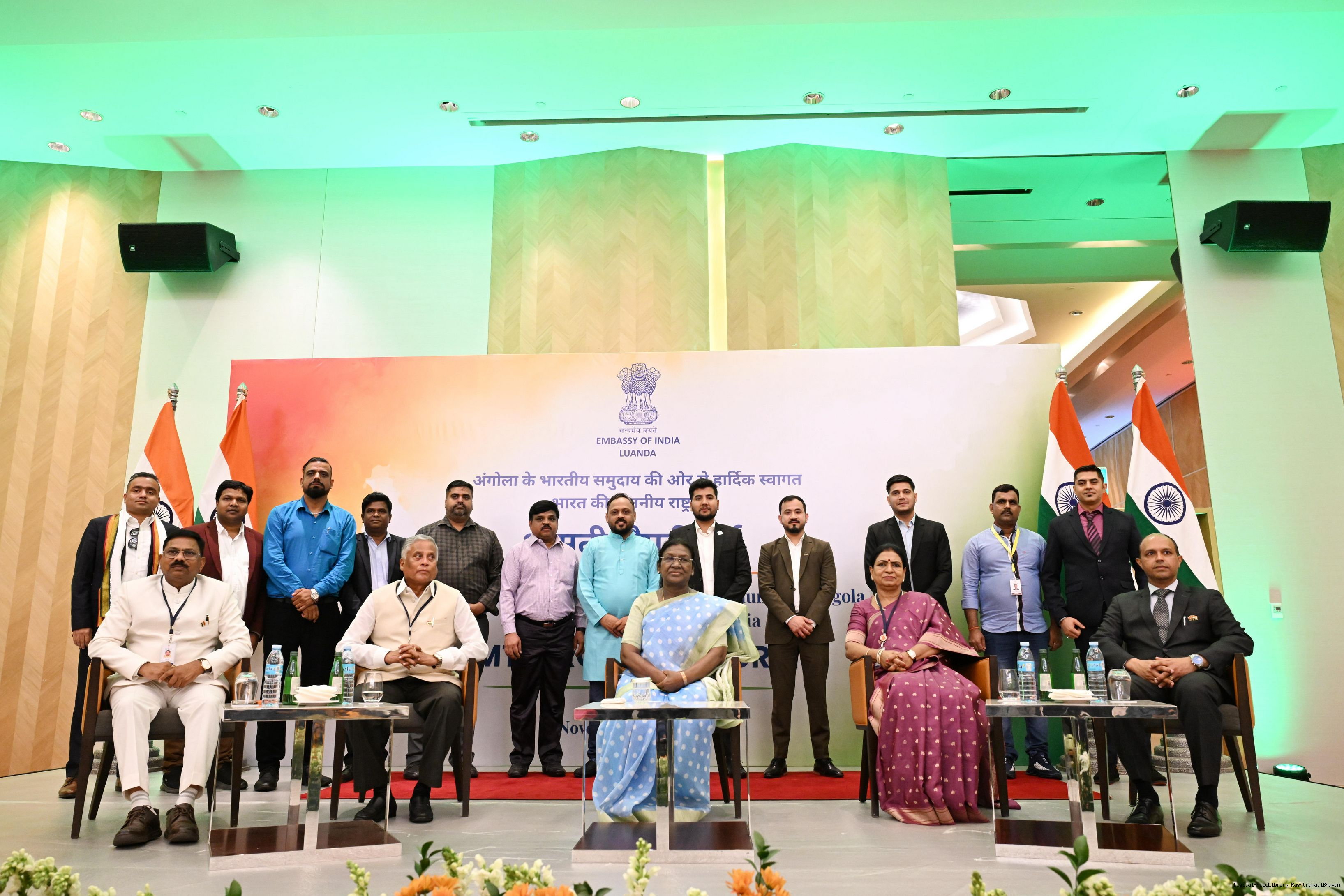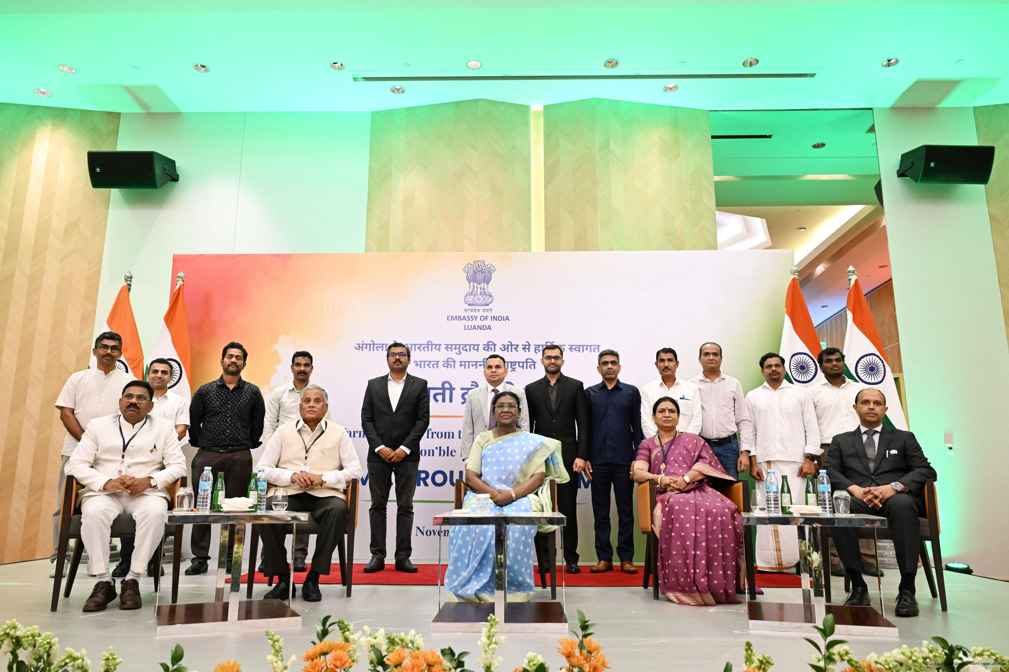 | Caption: | The President of India, Smt. Droupadi Murmu addressed the members of the Indian Community at a Reception hosted by the Ambassador of India to Angola at Luanda on November 10, 2025. |