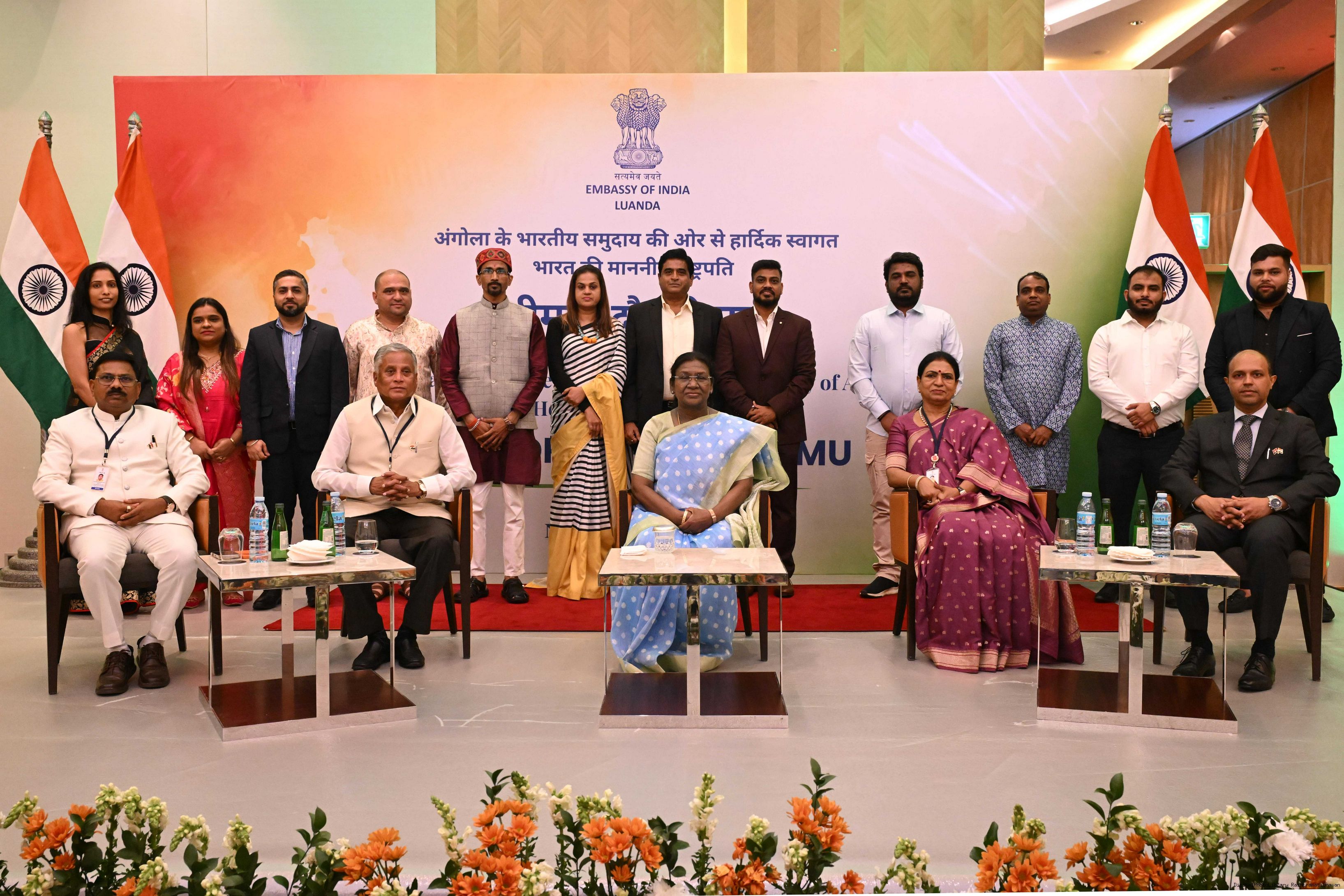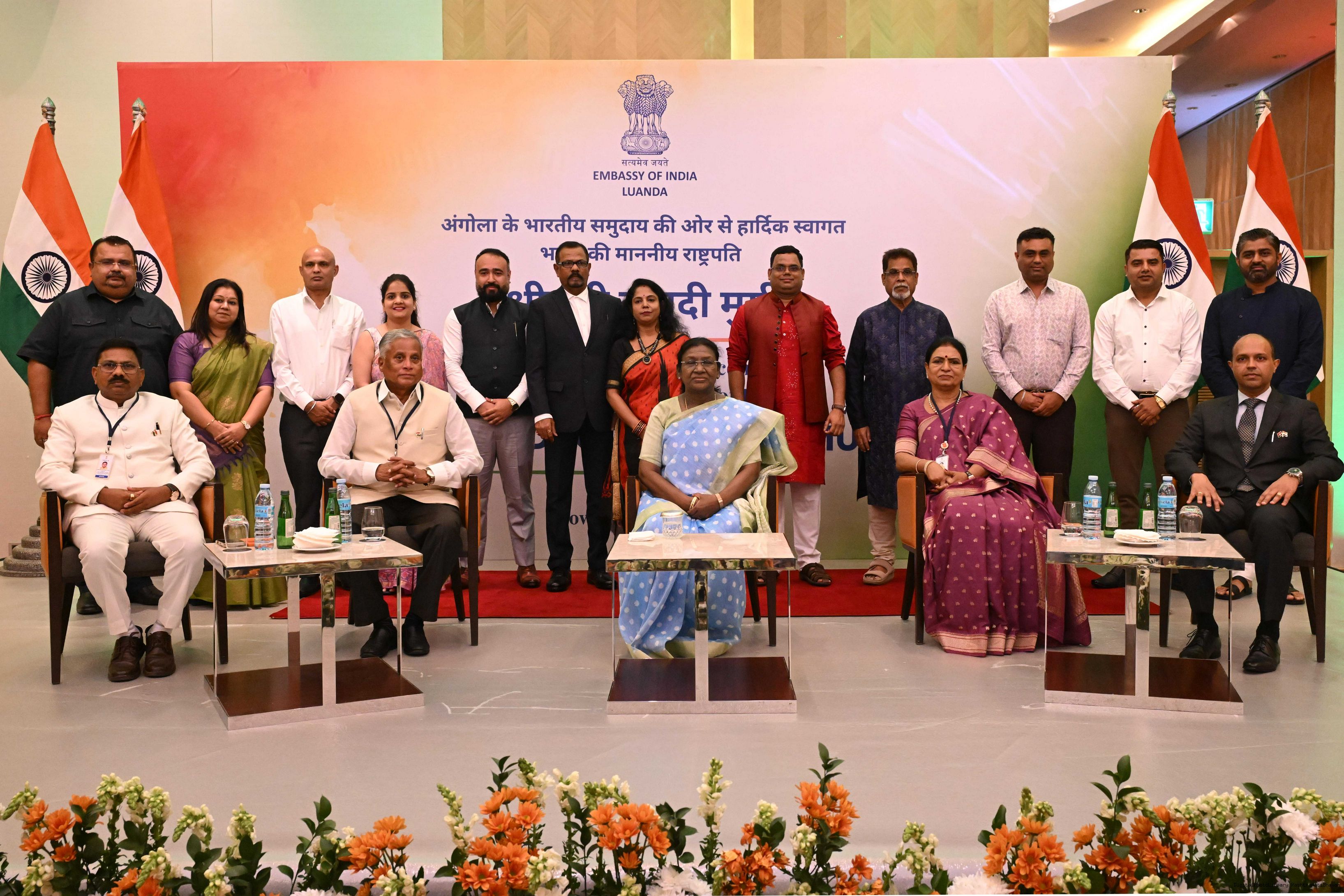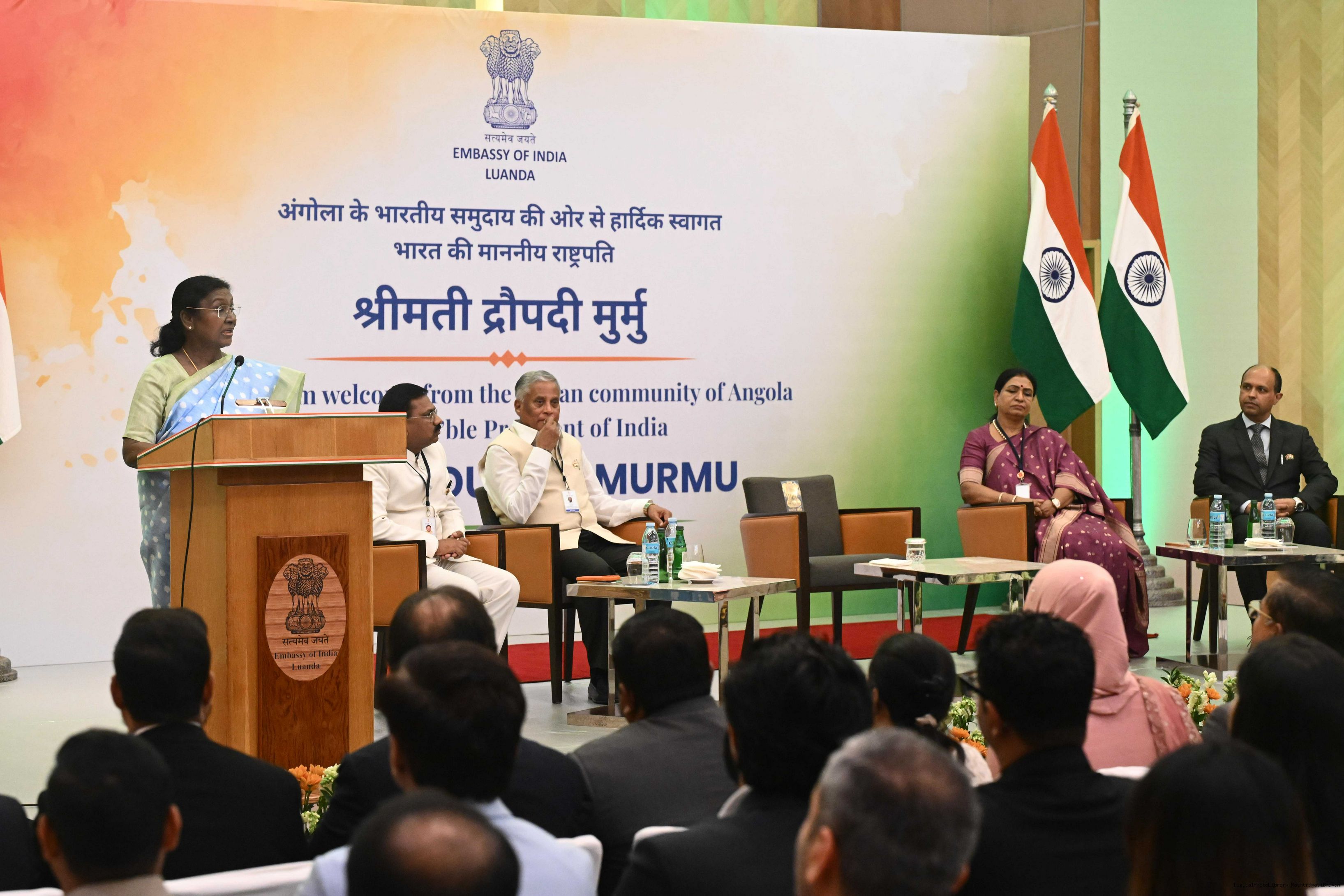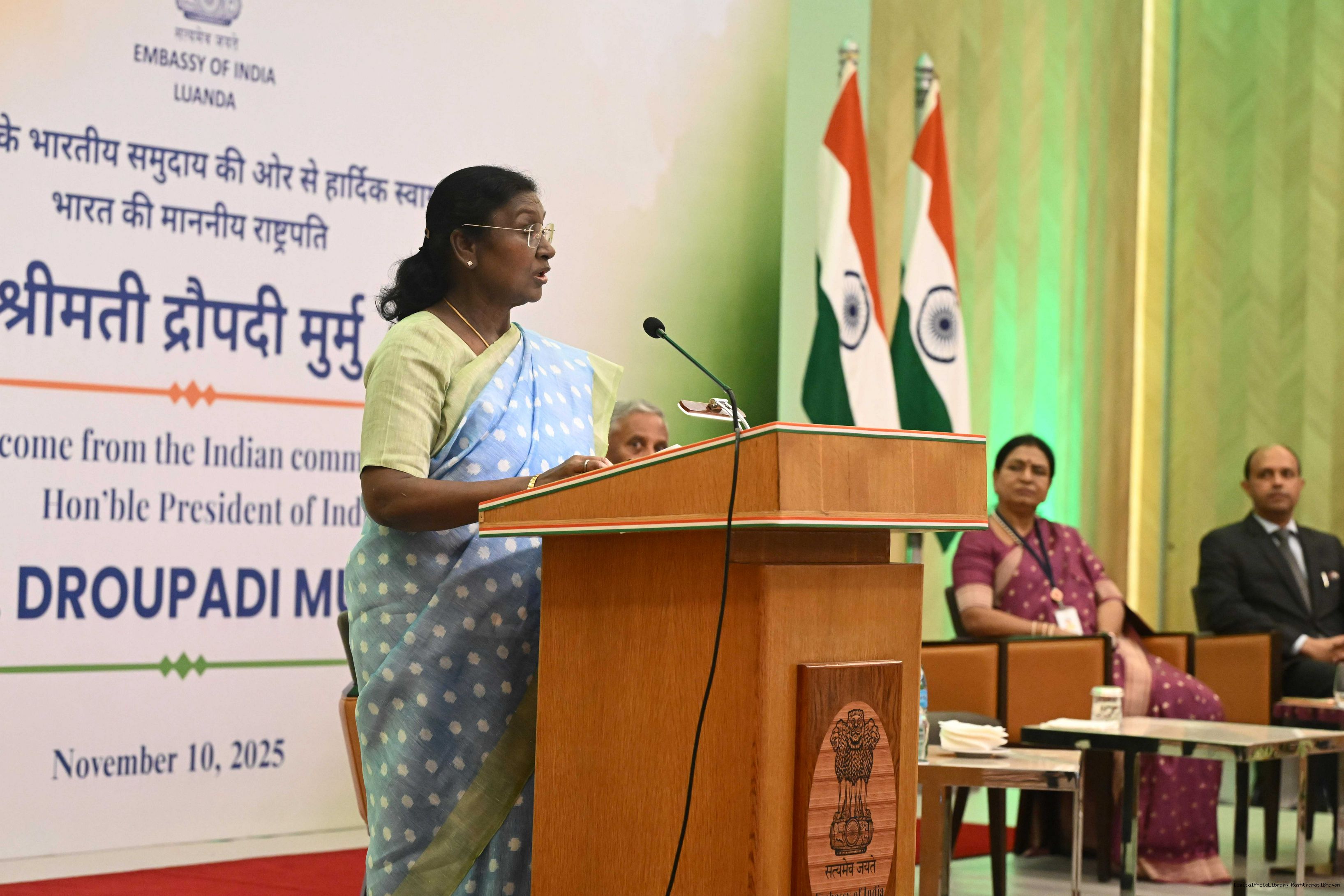 | Caption: | The President of India, Smt. Droupadi Murmu addressed the members of the Indian Community at a Reception hosted by the Ambassador of India to Angola at Luanda on November 10, 2025. |