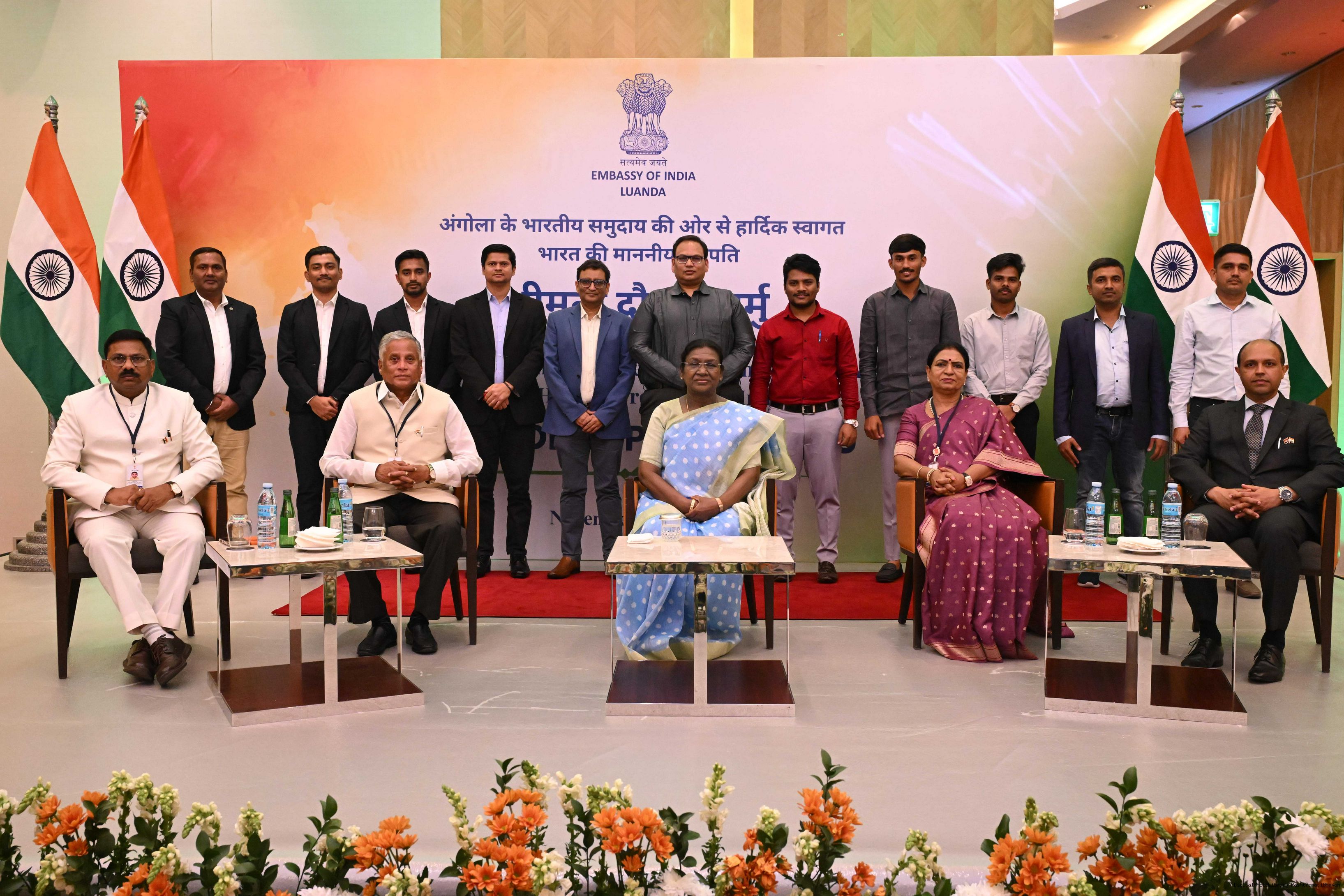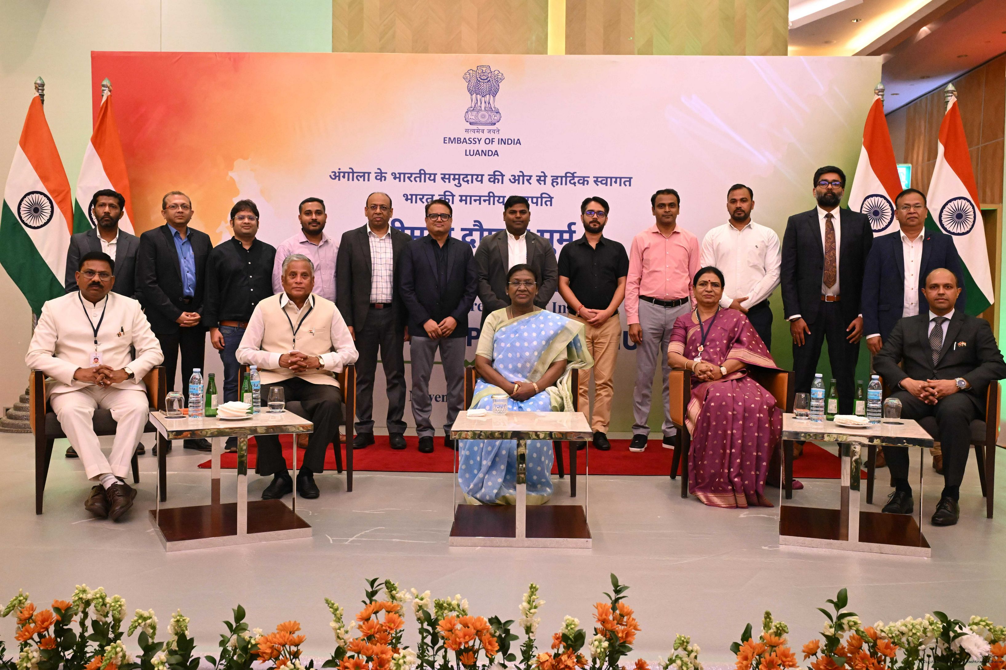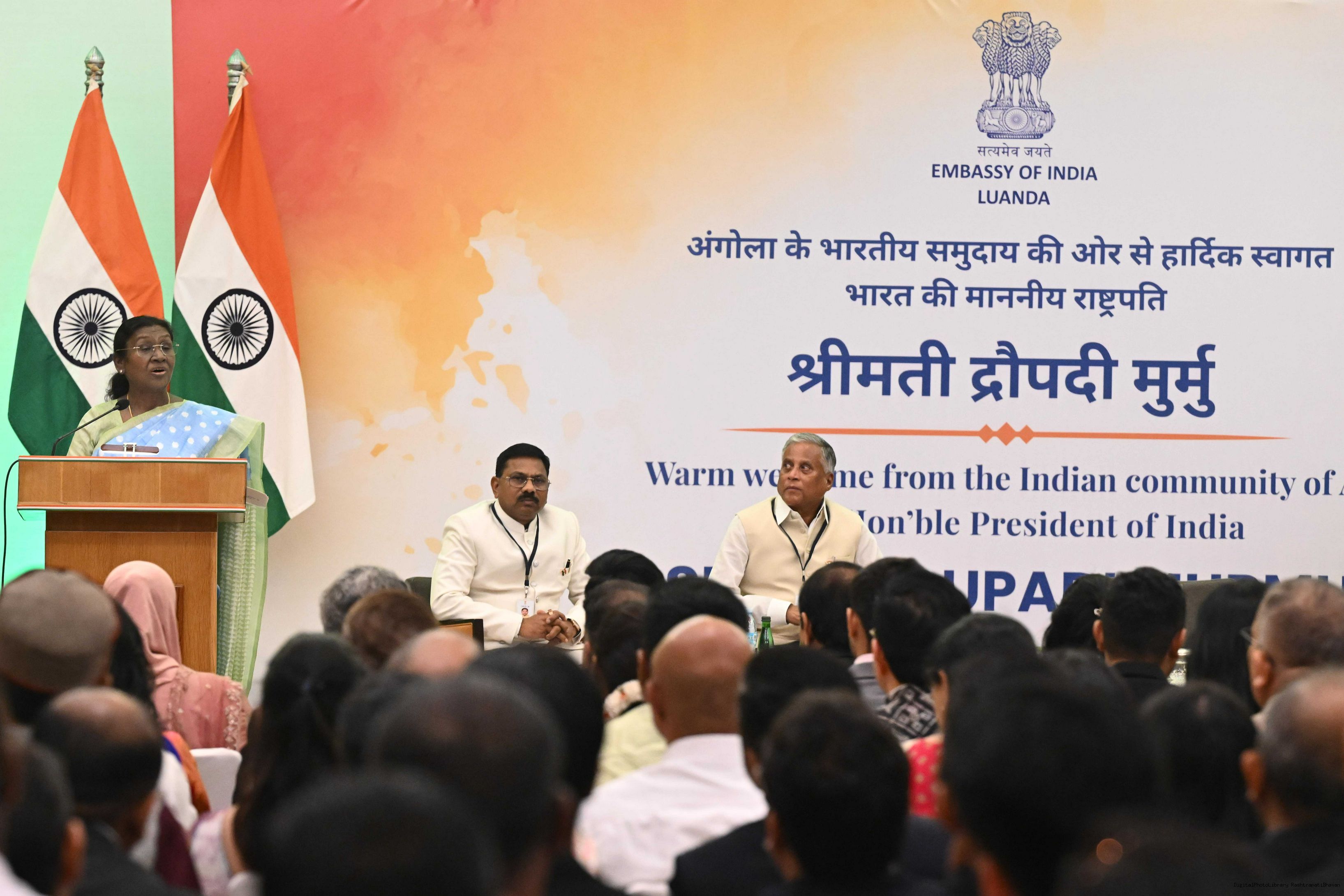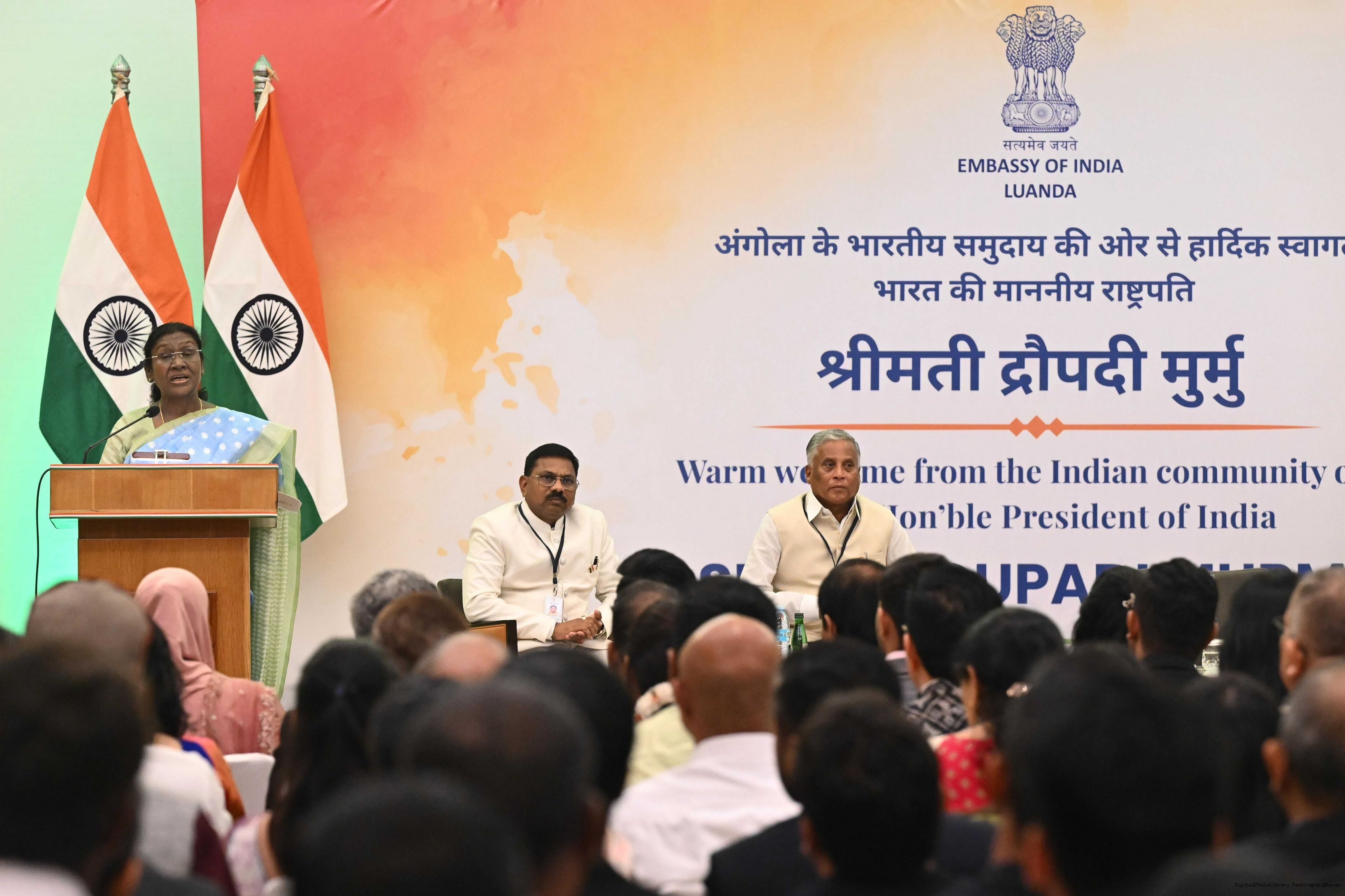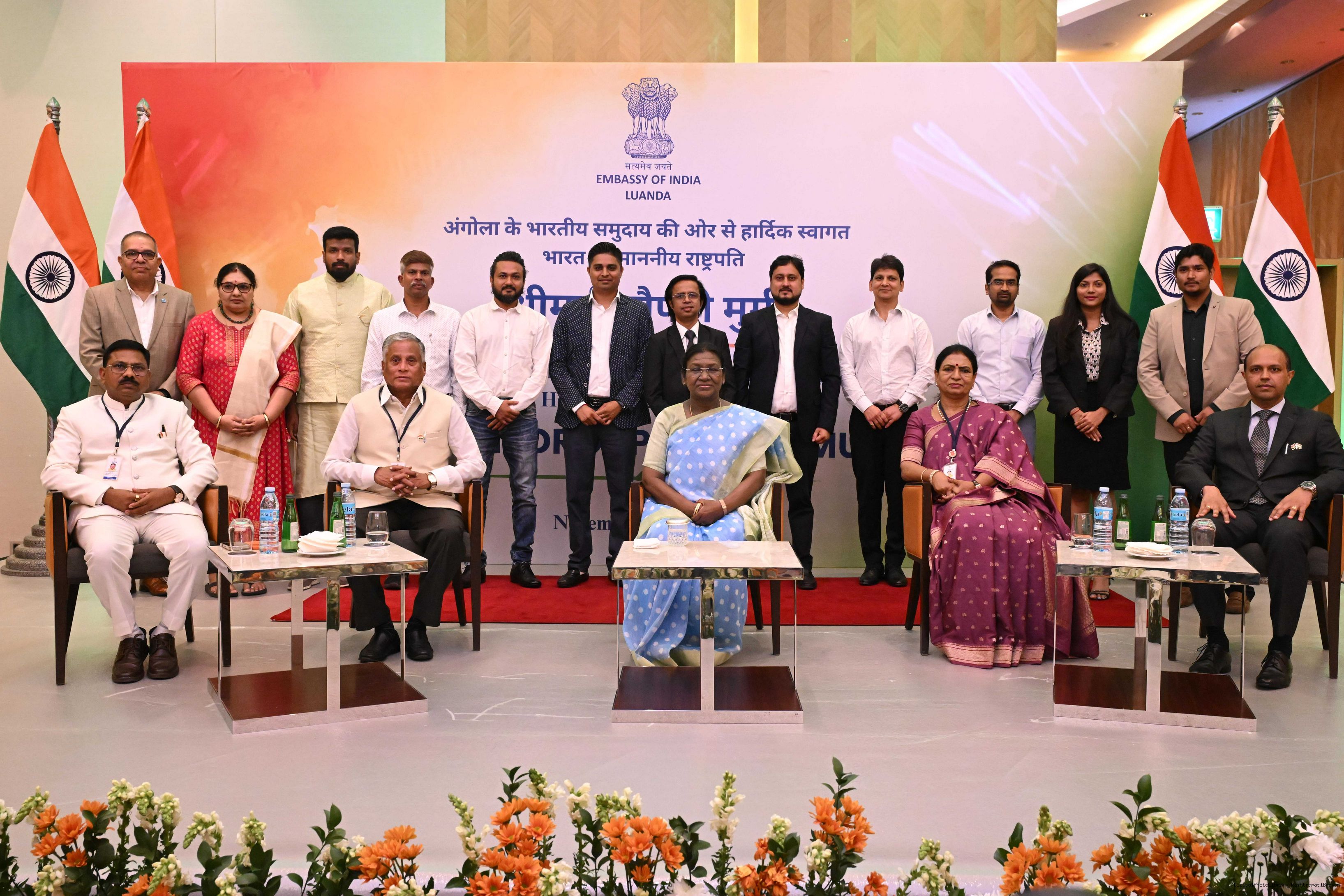 | Caption: | The President of India, Smt. Droupadi Murmu addressed the members of the Indian Community at a Reception hosted by the Ambassador of India to Angola at Luanda on November 10, 2025. |
