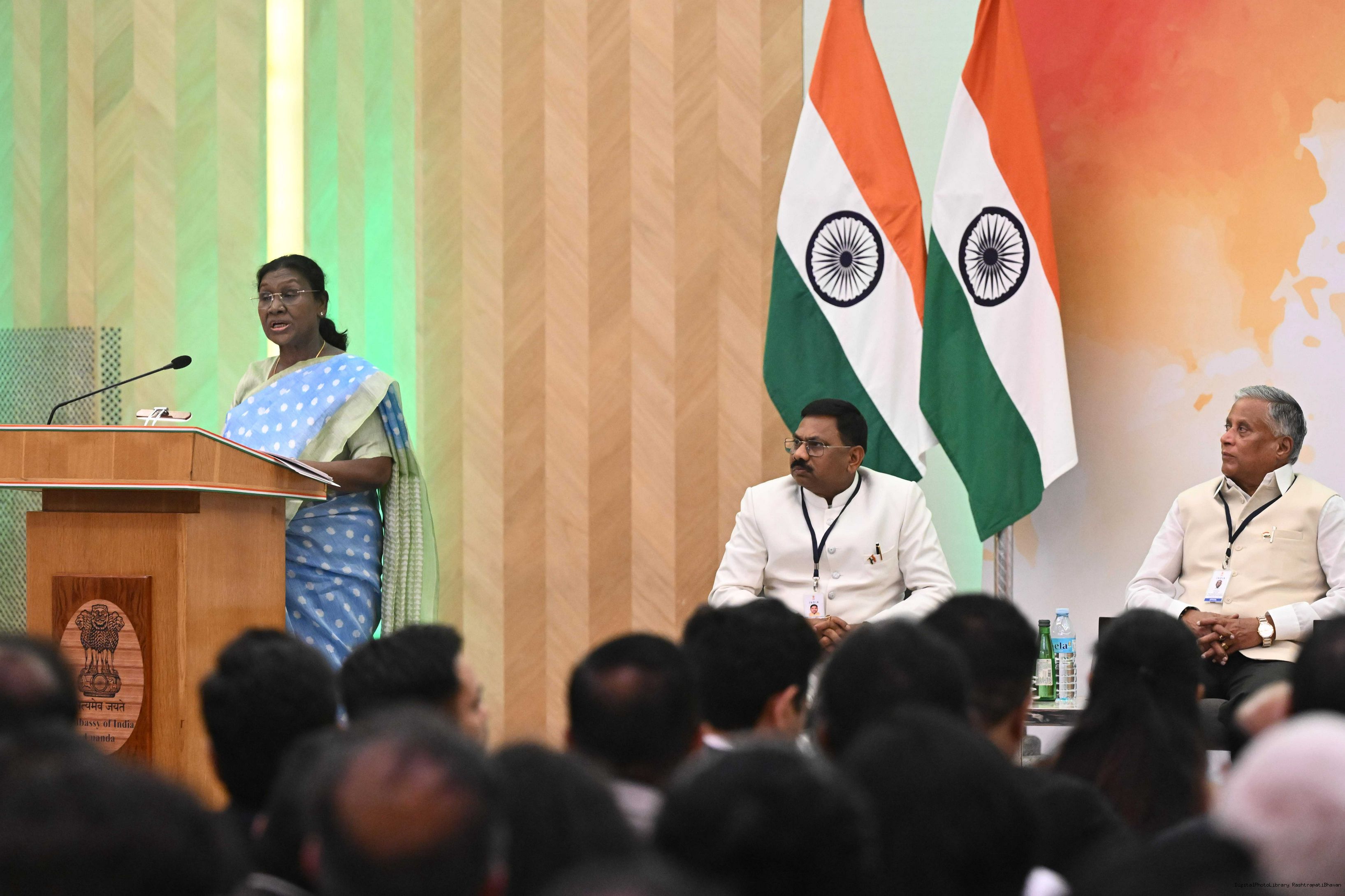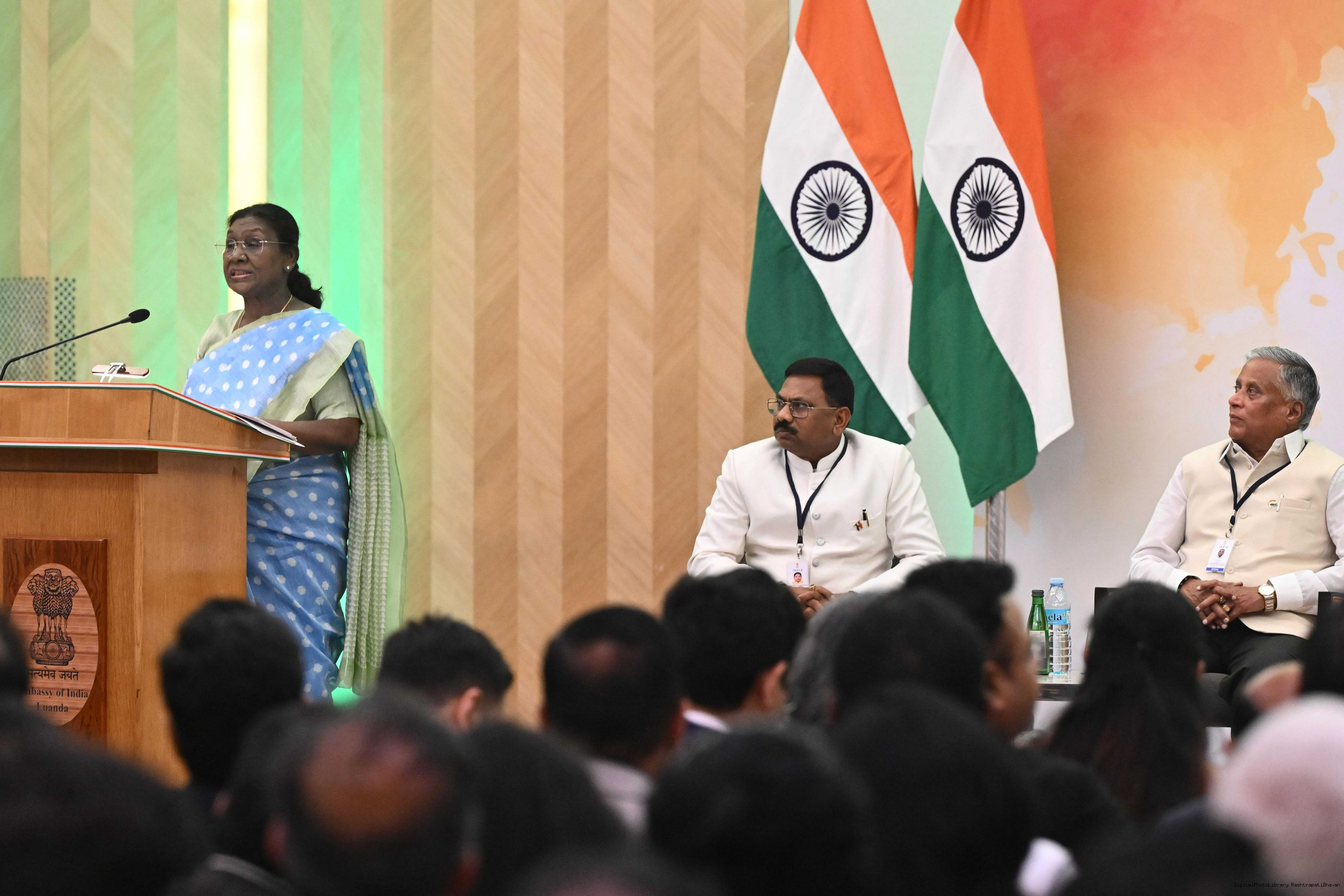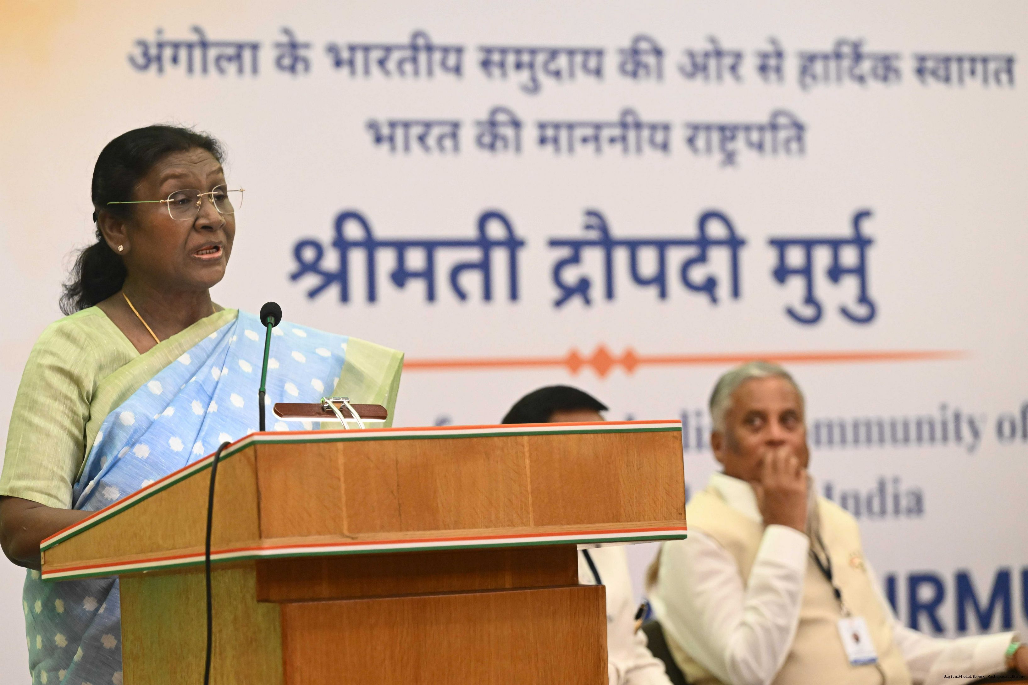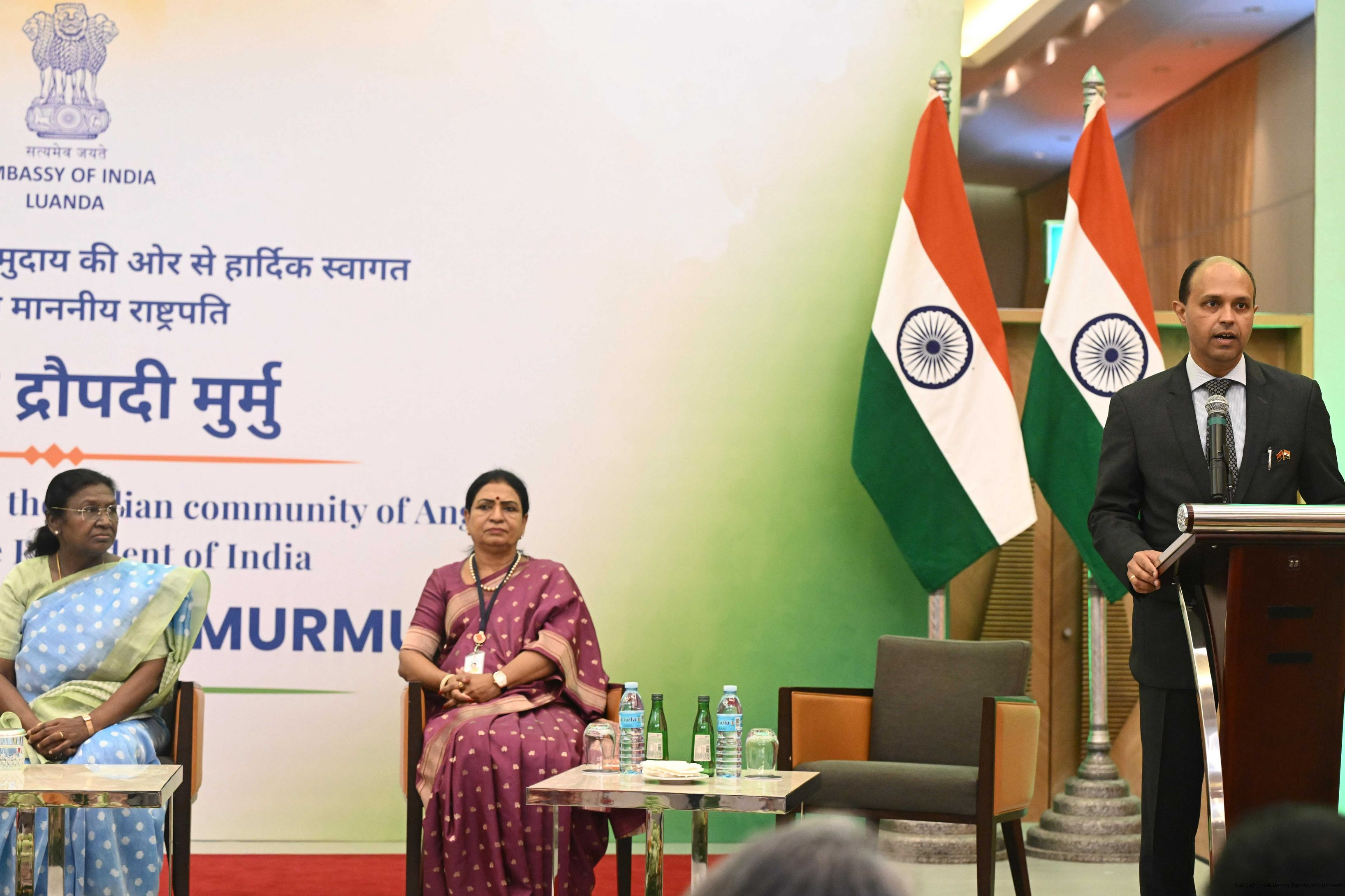 | Caption: | The President of India, Smt. Droupadi Murmu addressed the members of the Indian Community at a Reception hosted by the Ambassador of India to Angola at Luanda on November 10, 2025. |
