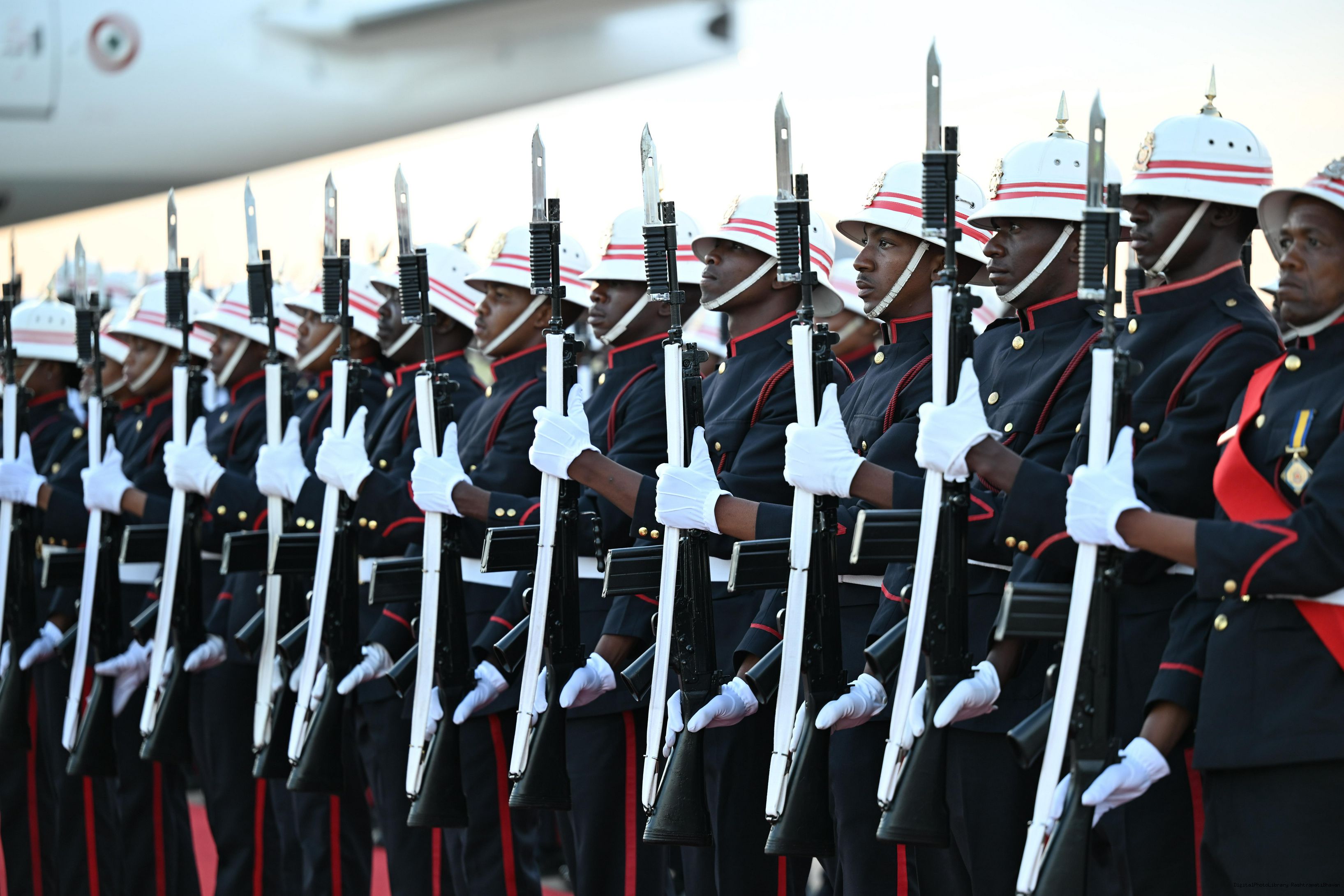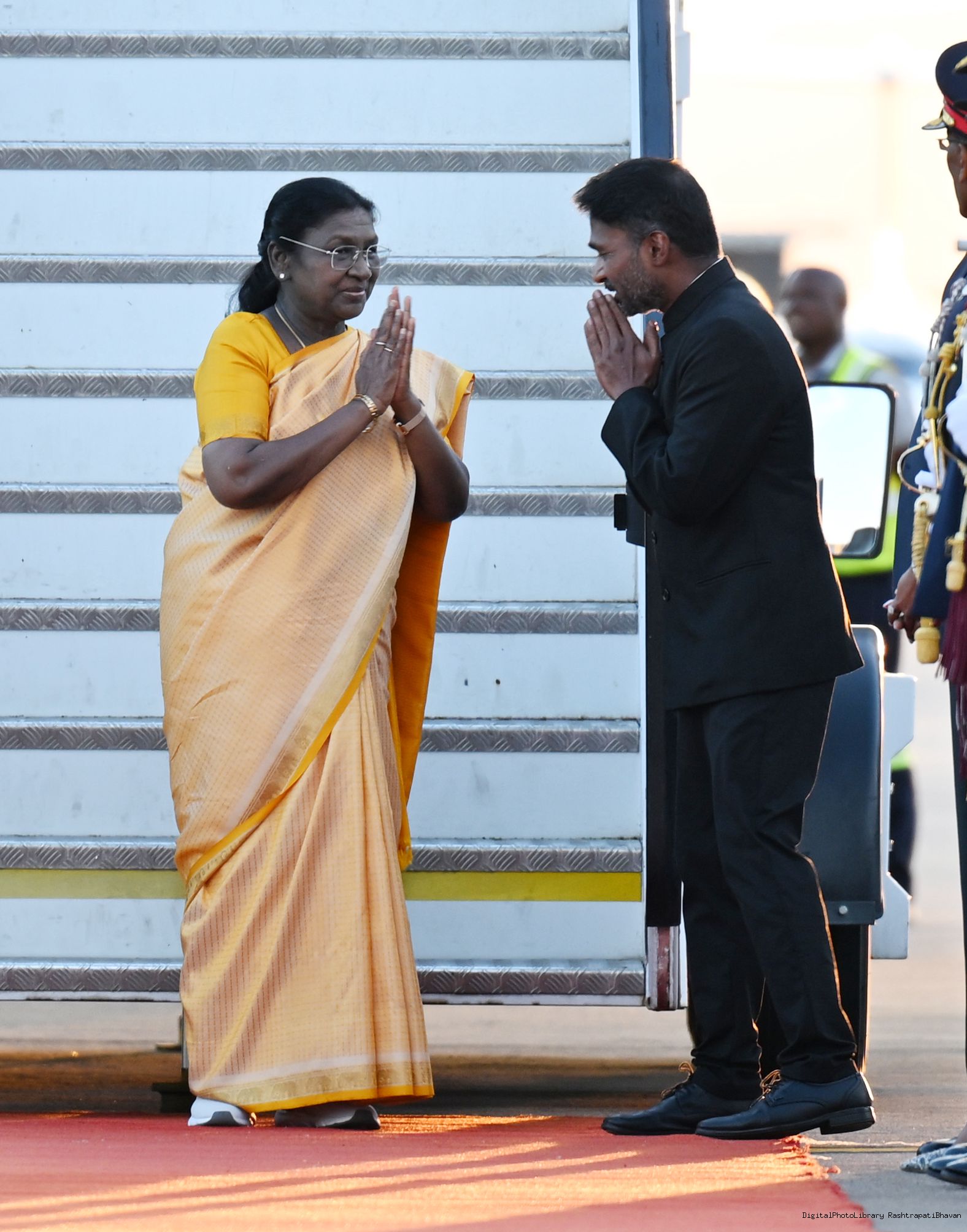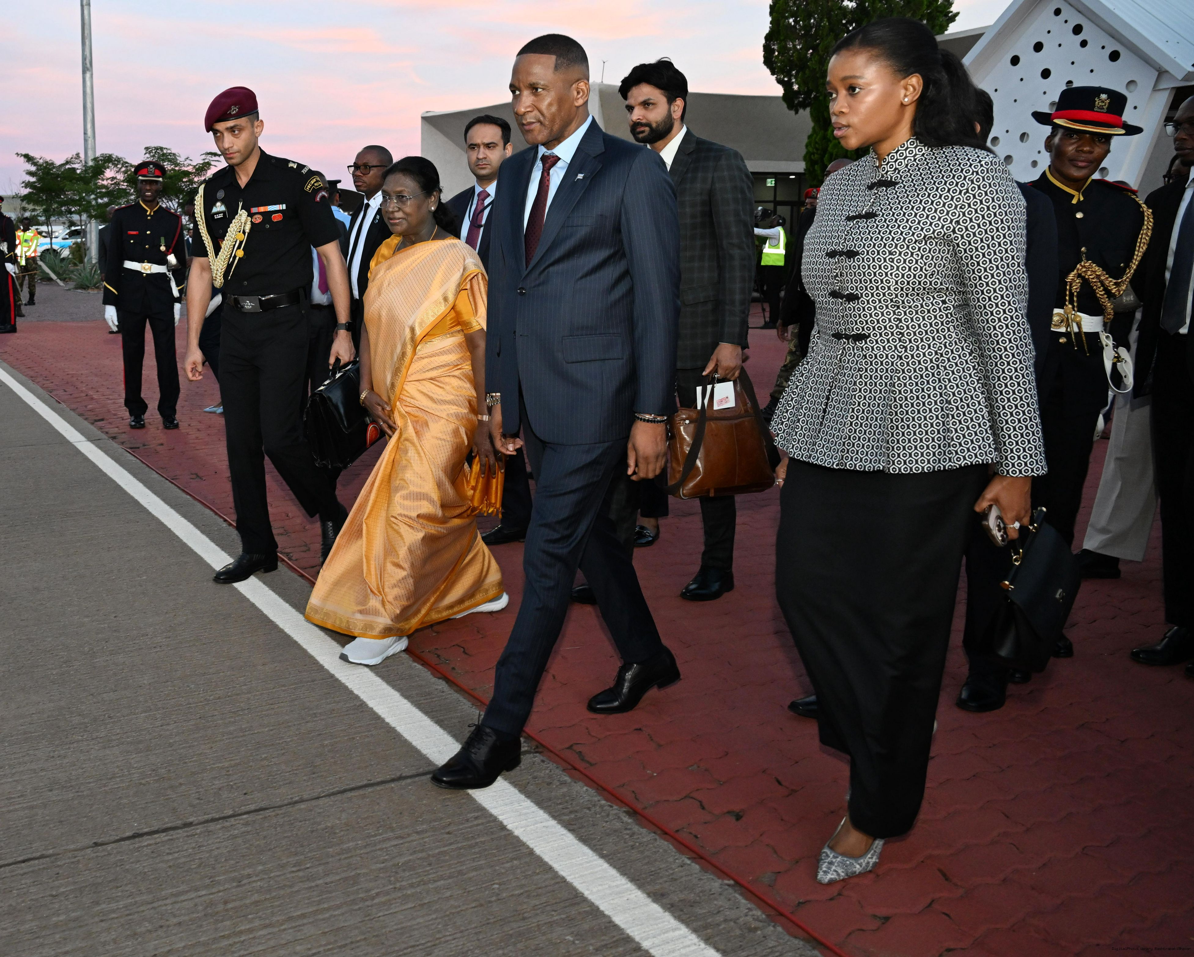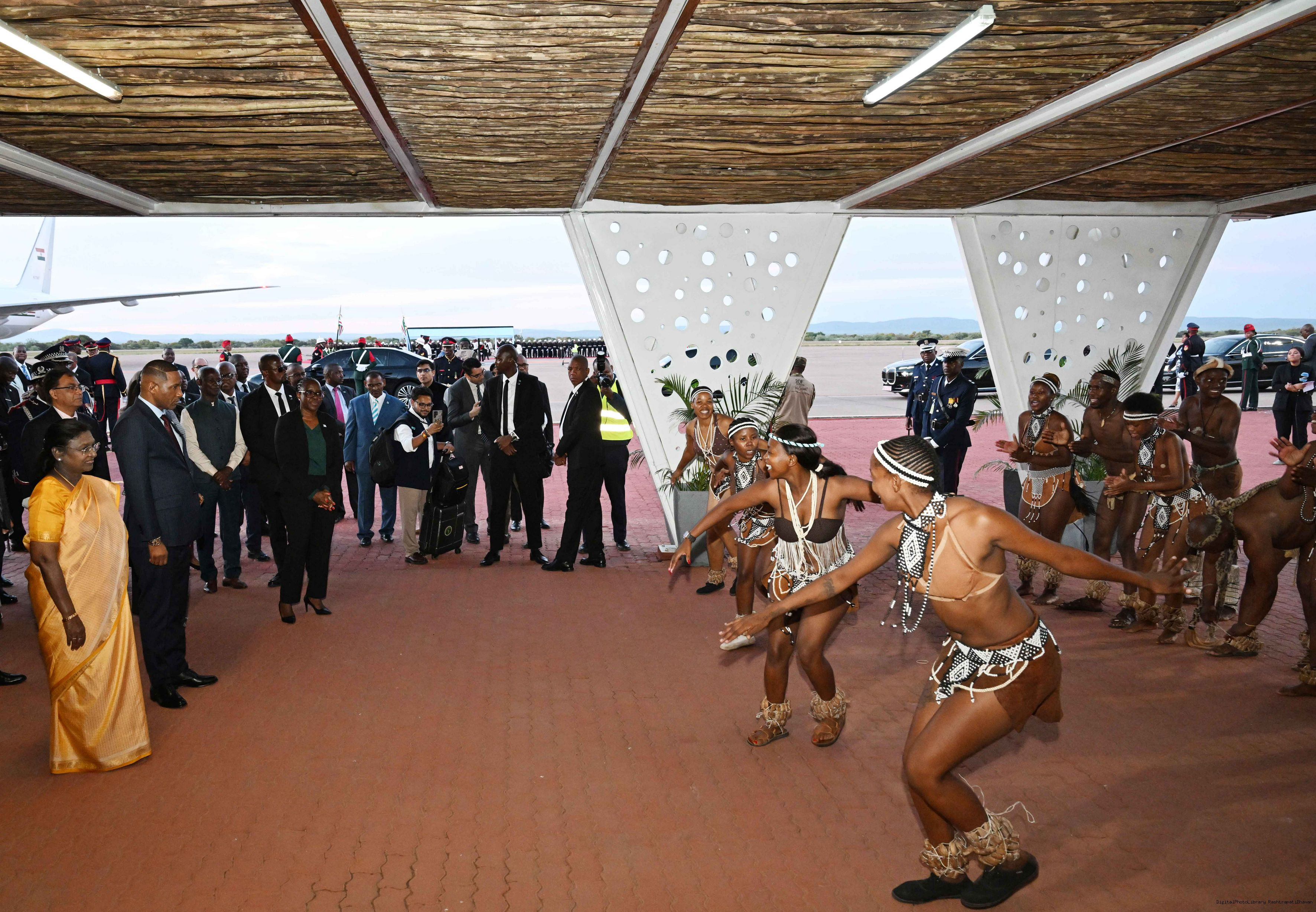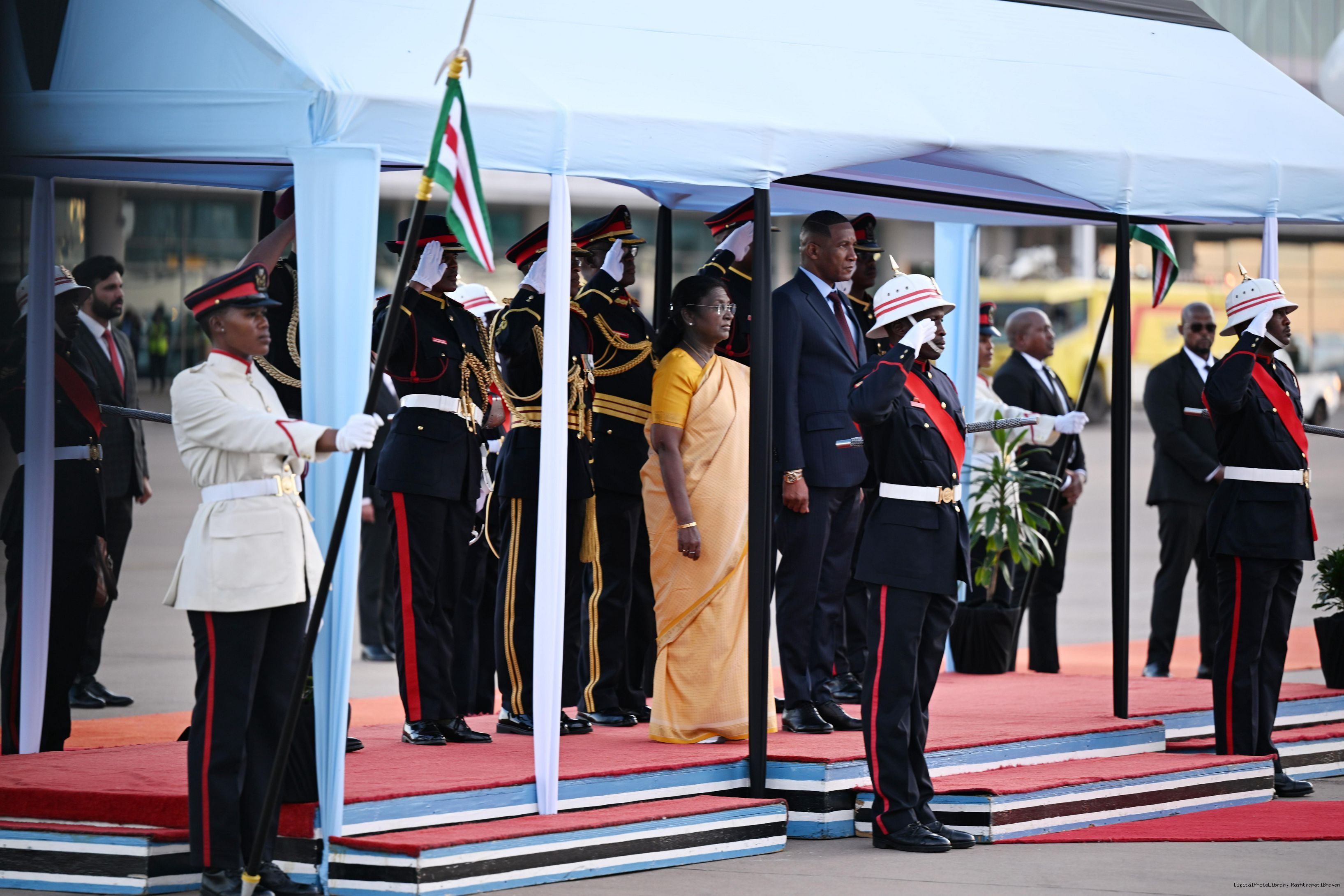 | Caption: | The President of India, Smt. Draupadi Murmu was ceremonially received and presented with a Guard of Honour by His Excellency Advocate Duma Gideon Boko, the President of Botswana at the Sir Seretse Khama International Airport, Gaborone, Botswana on November 11, 2025. |