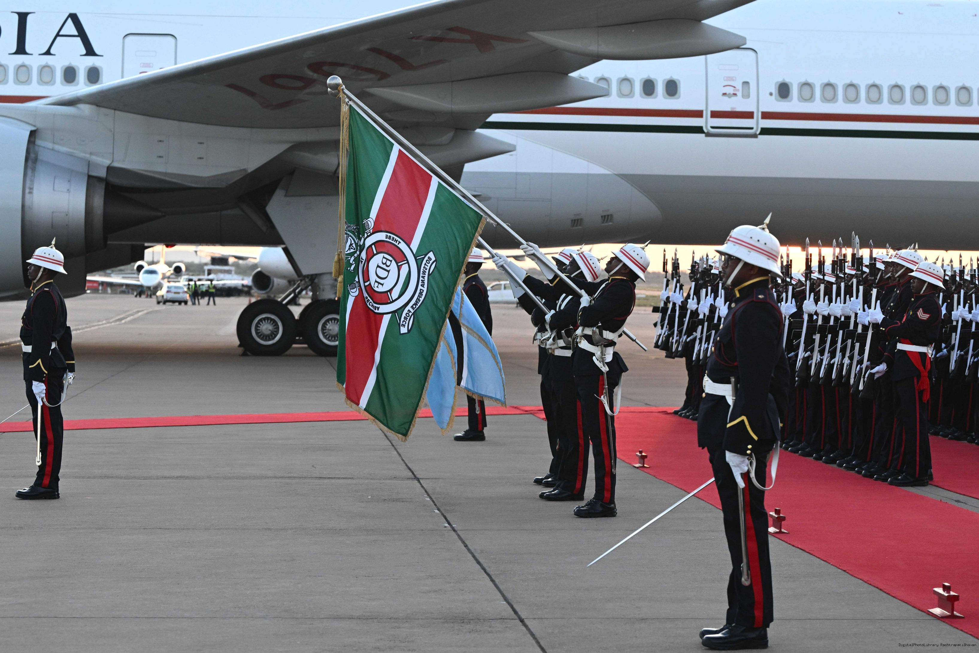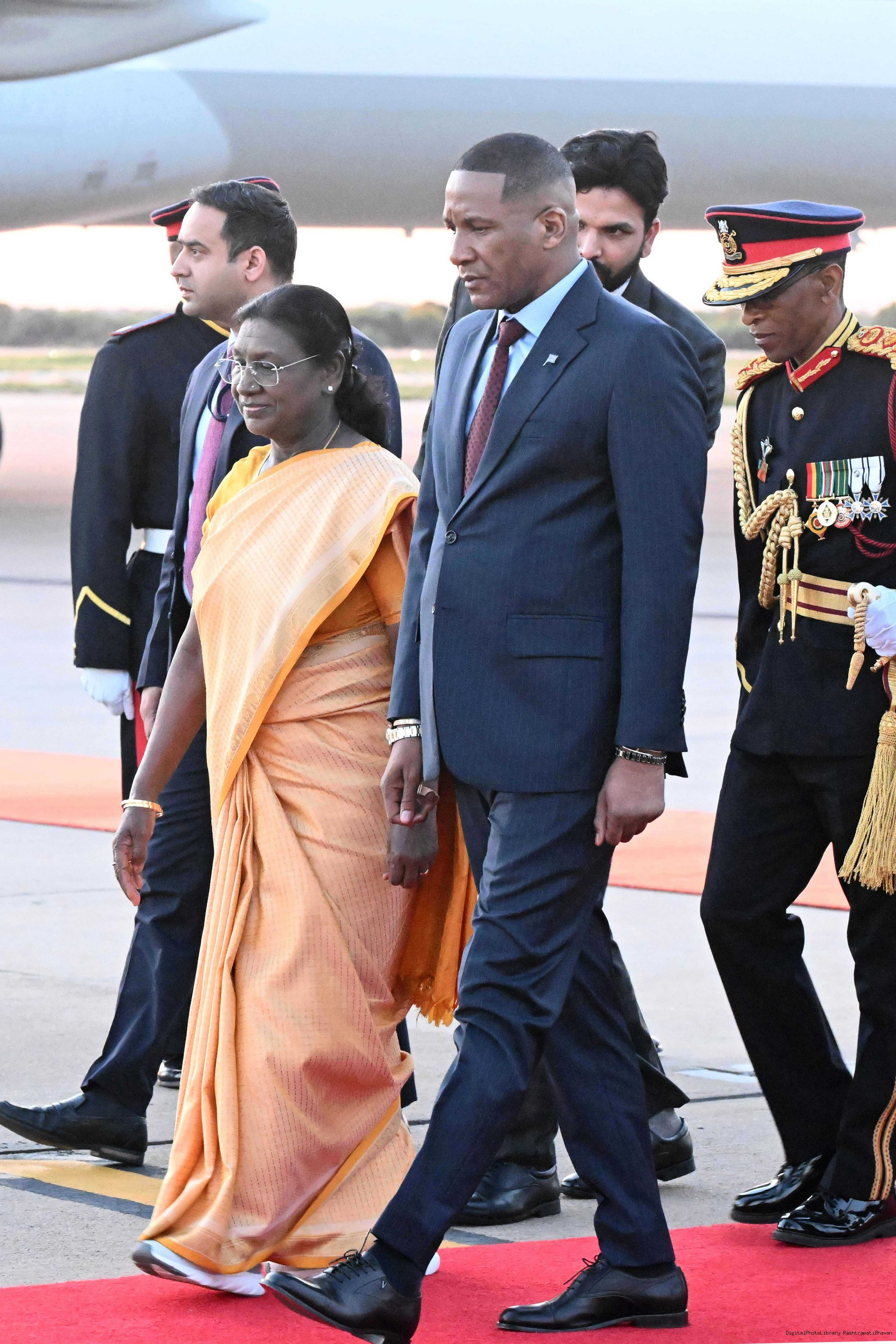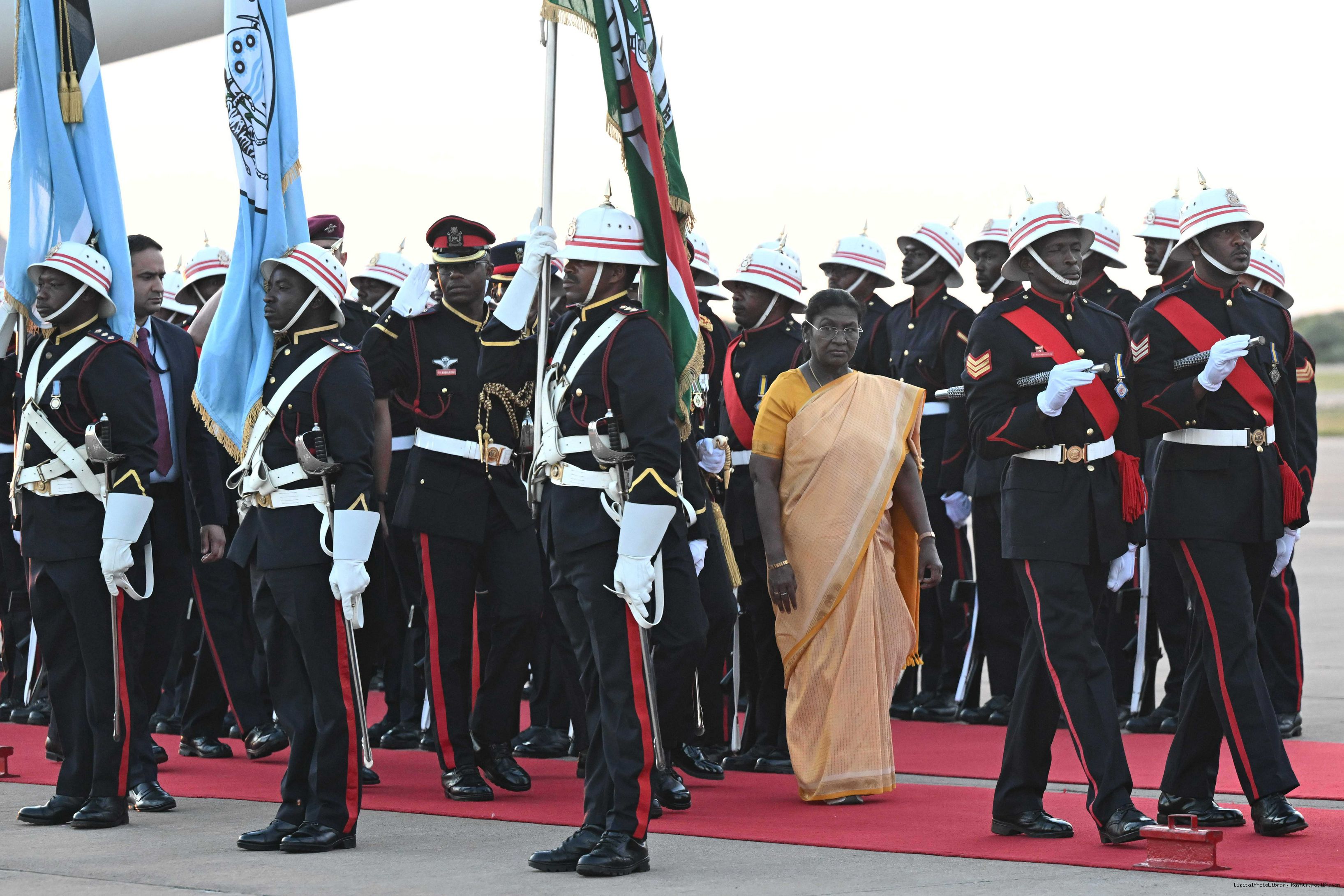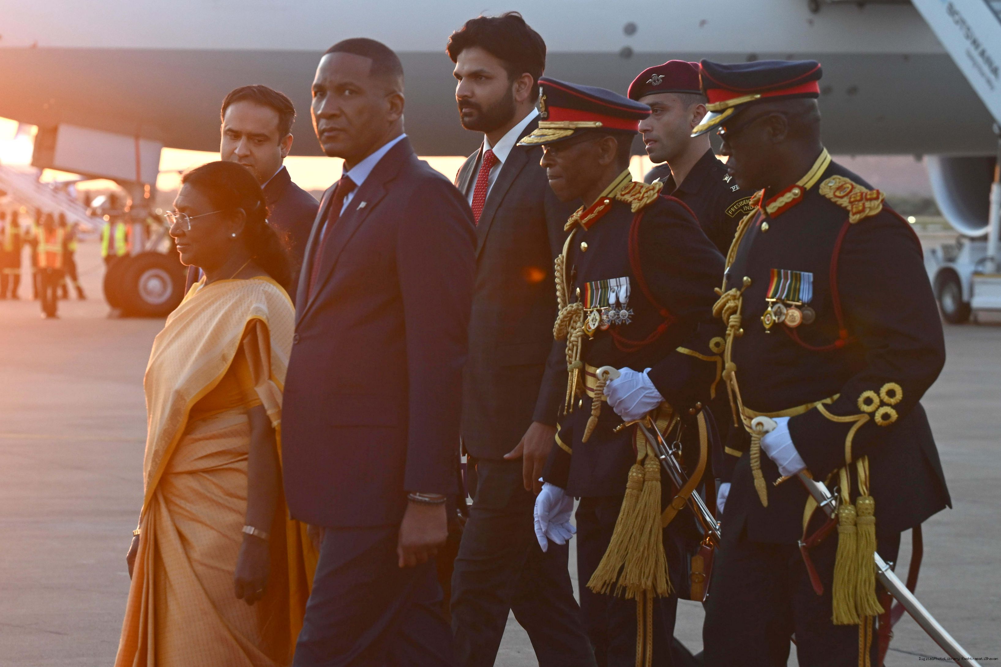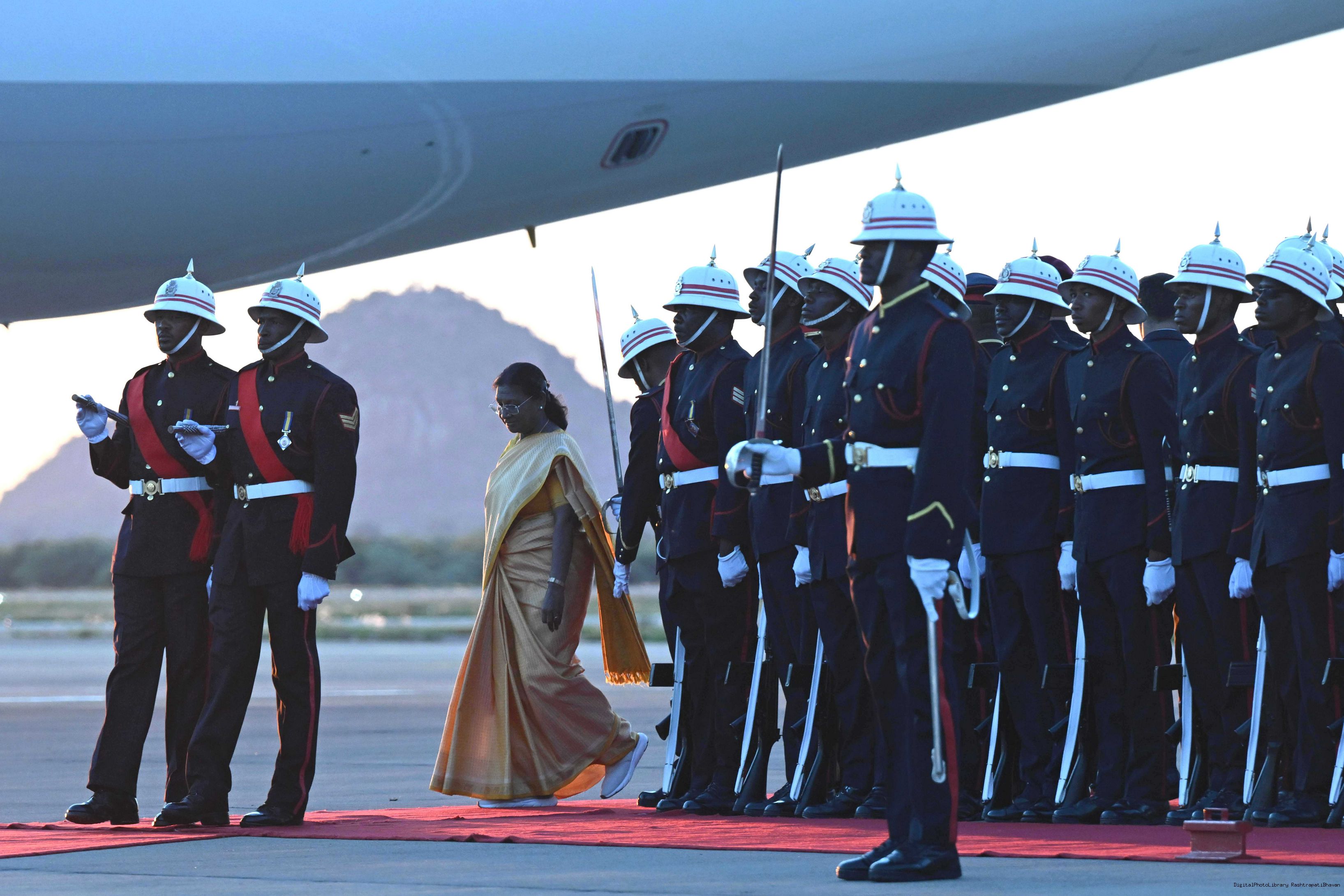 | Caption: | The President of India, Smt. Draupadi Murmu was ceremonially received and presented with a Guard of Honour by His Excellency Advocate Duma Gideon Boko, the President of Botswana at the Sir Seretse Khama International Airport, Gaborone, Botswana on November 11, 2025. |