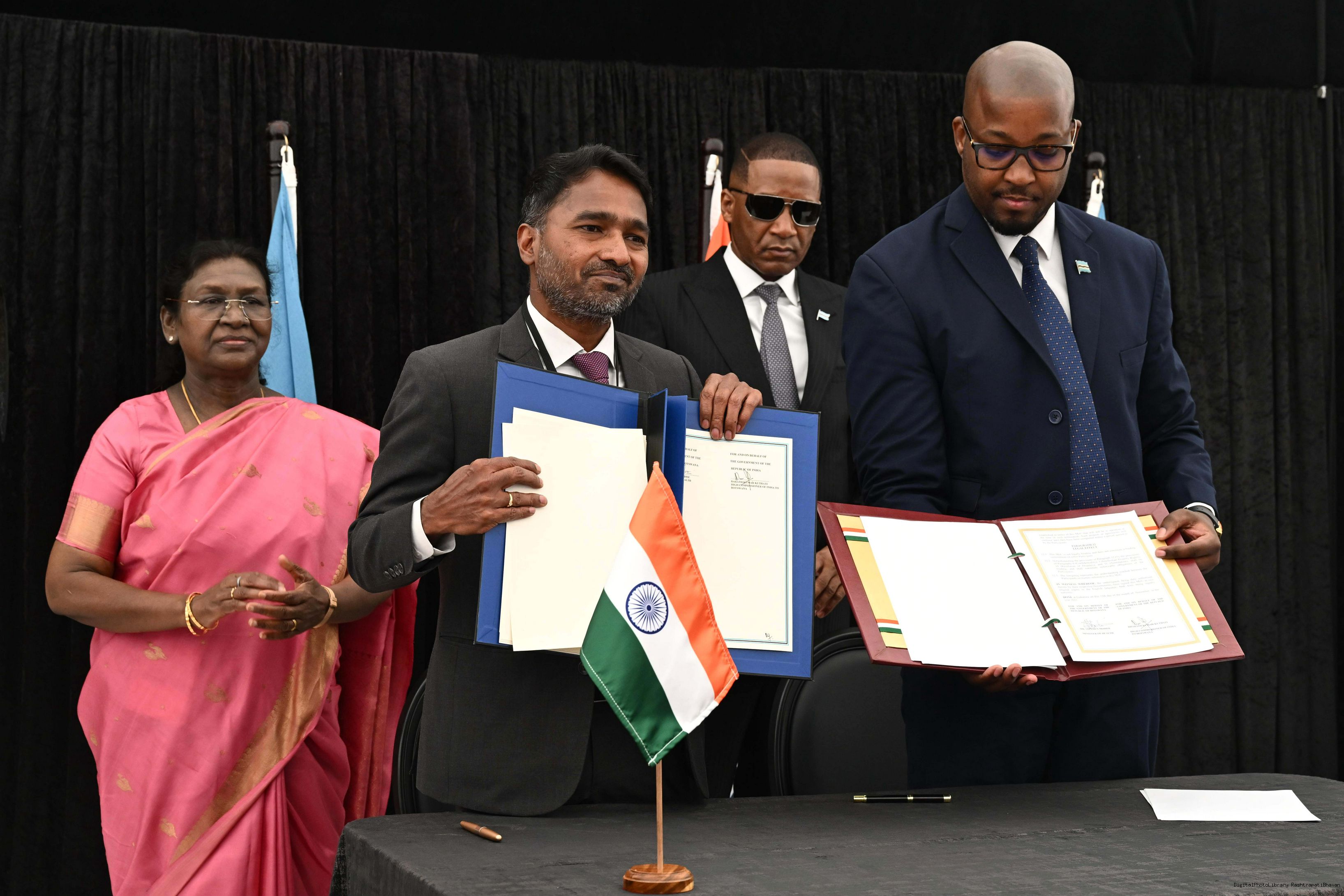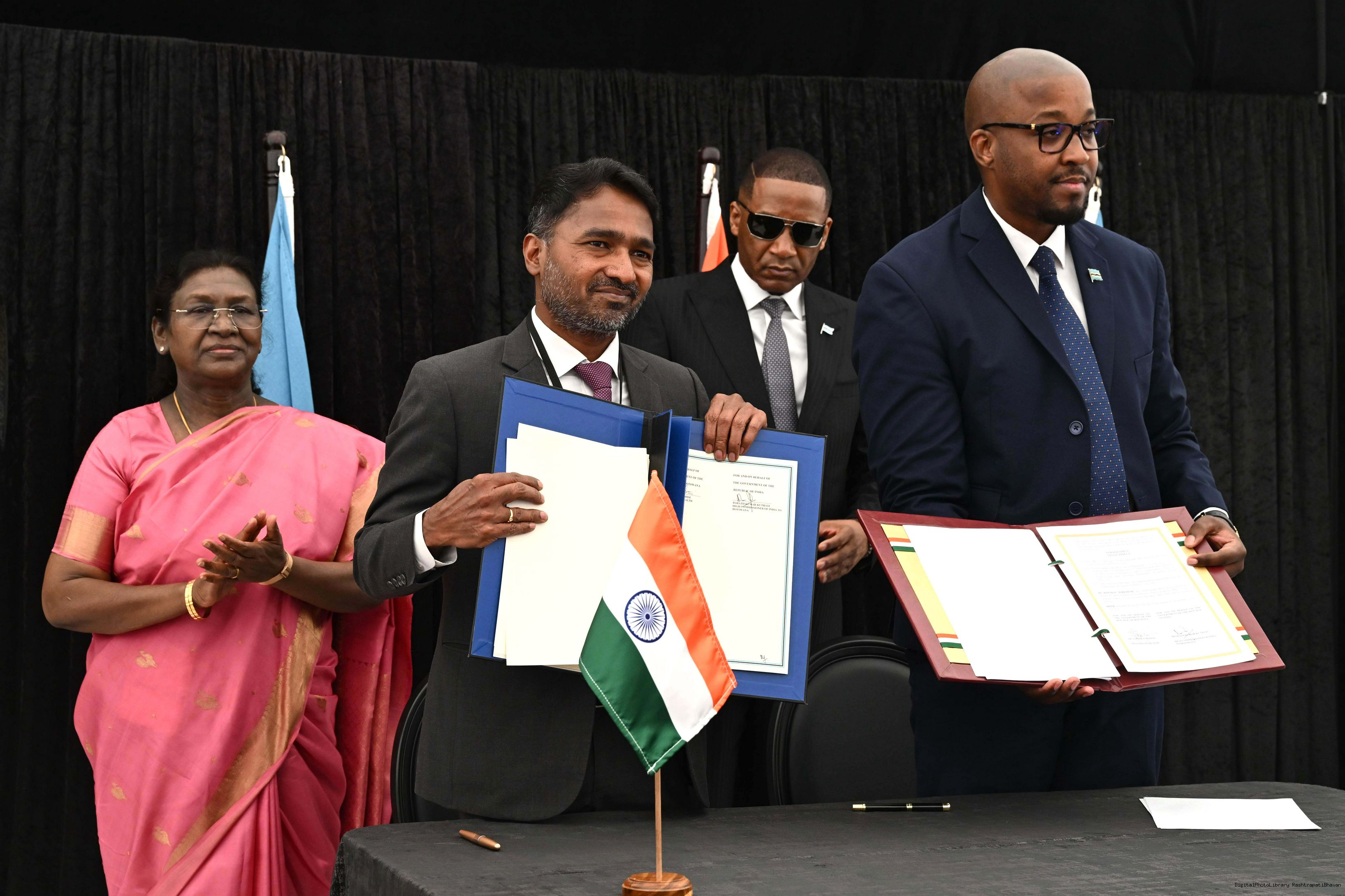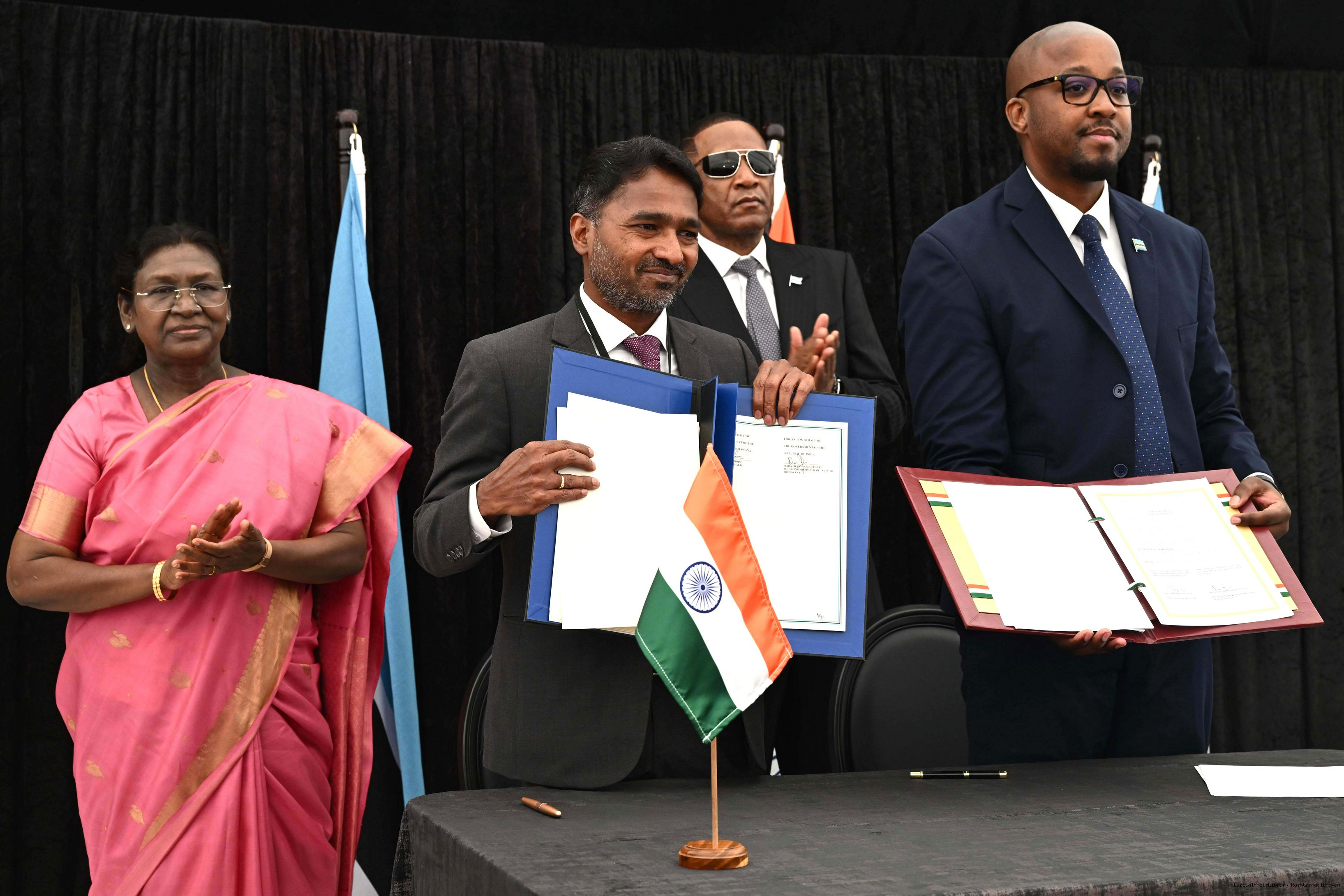 | Caption: | The President of India, Smt. Droupadi Murmu signing and exchange of MOUs at Gaborone, Botswana on November 12, 2025. |