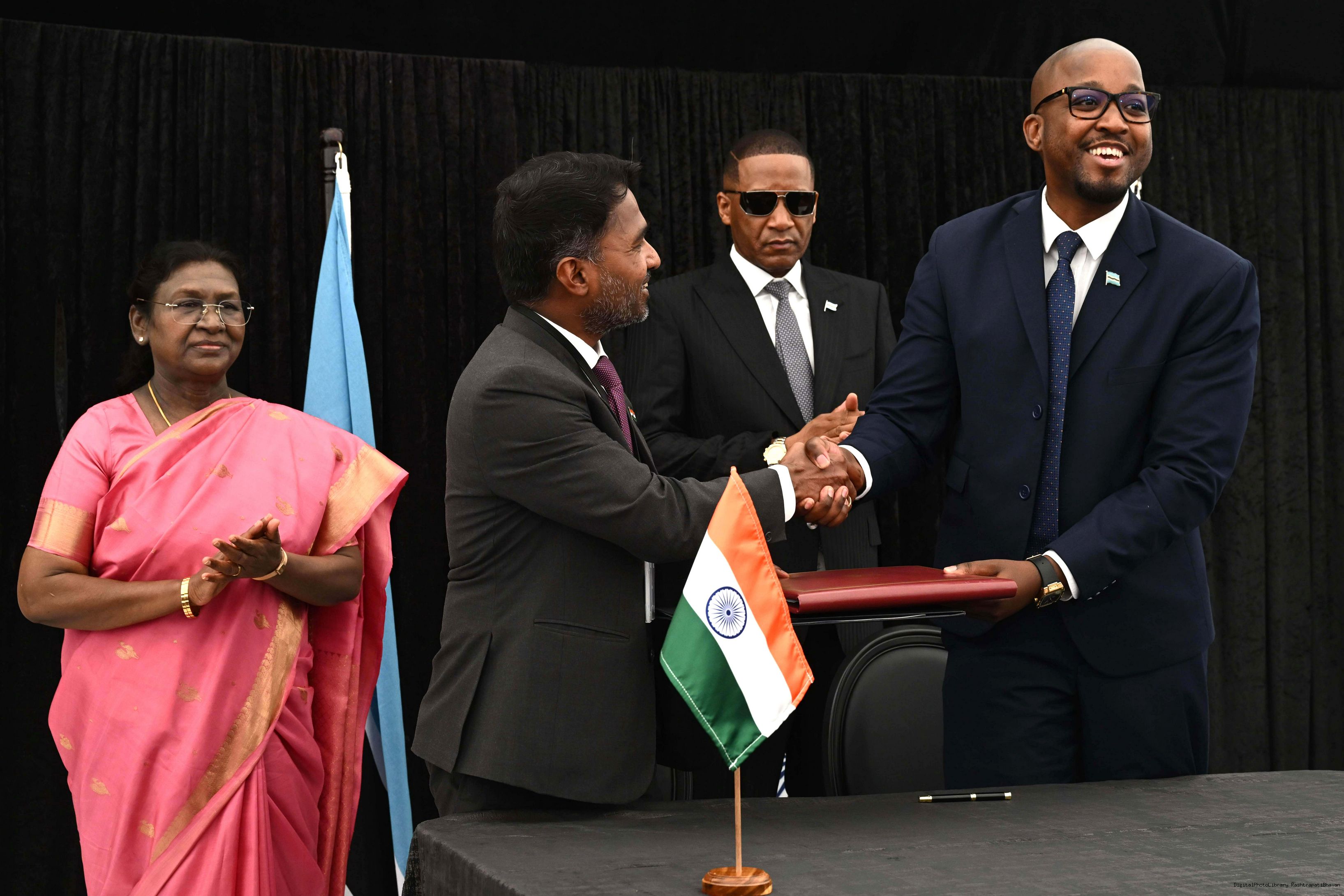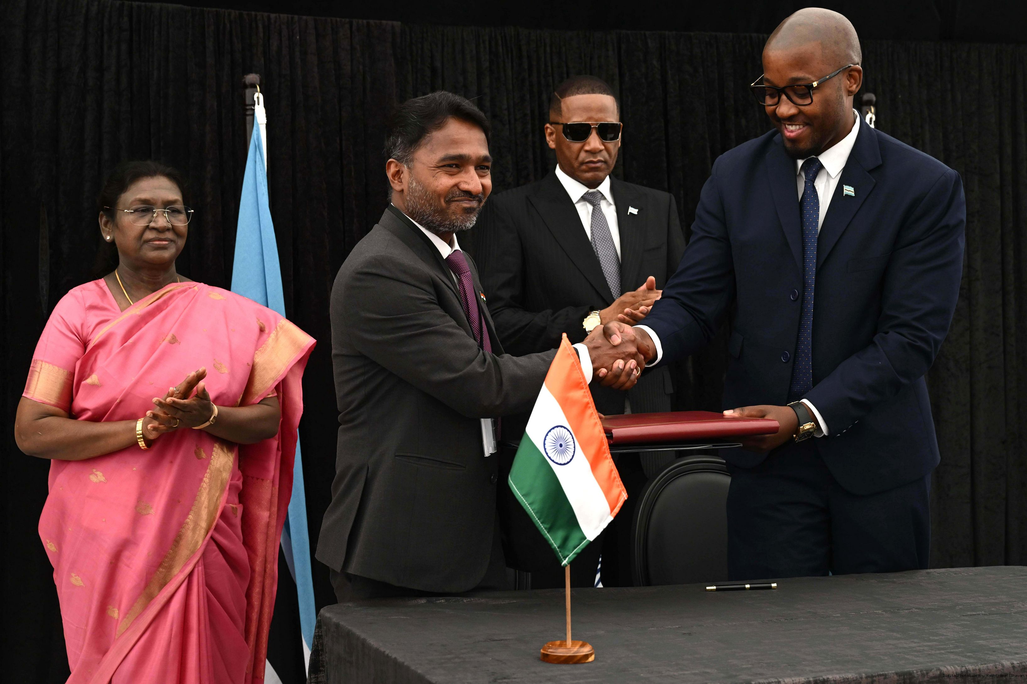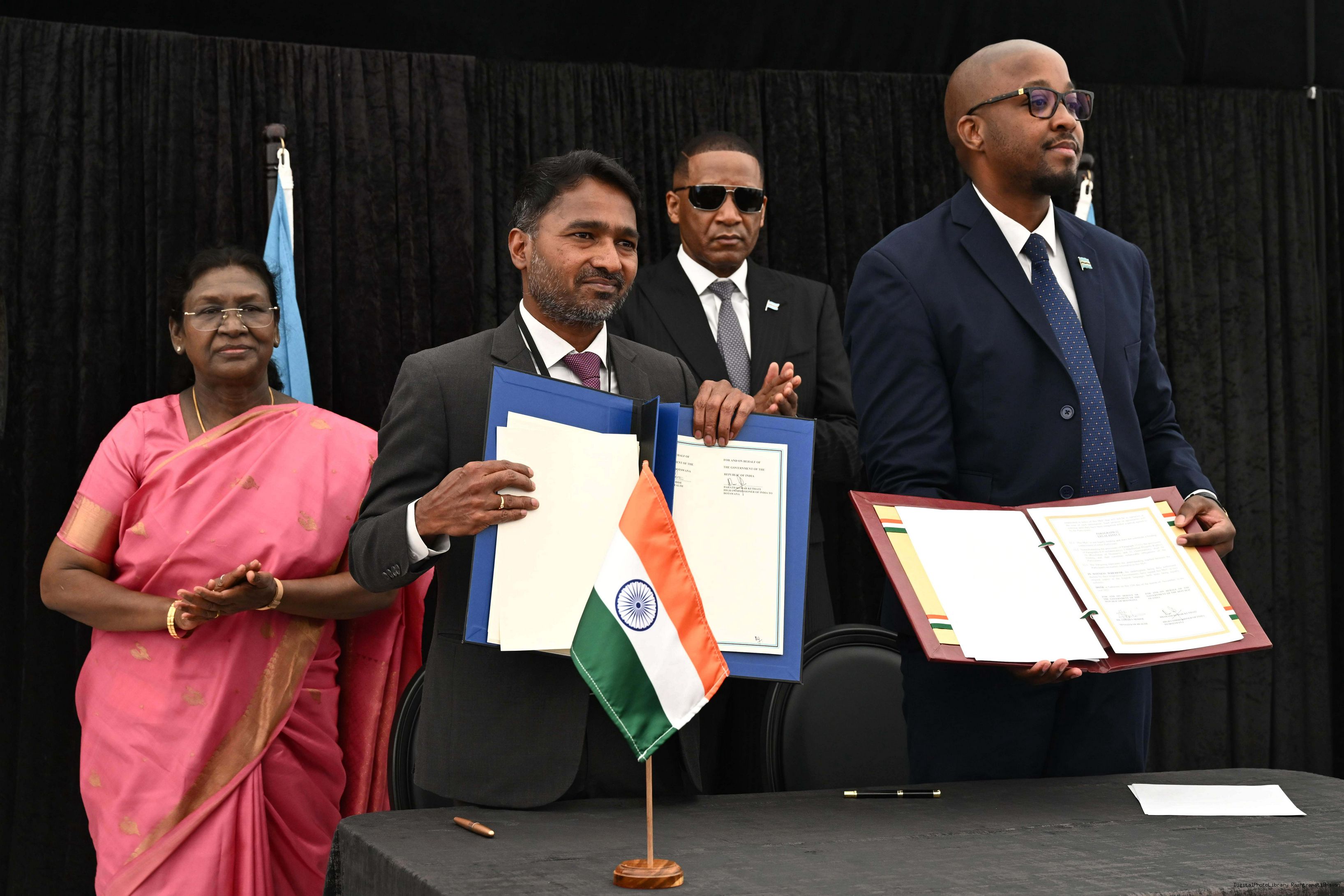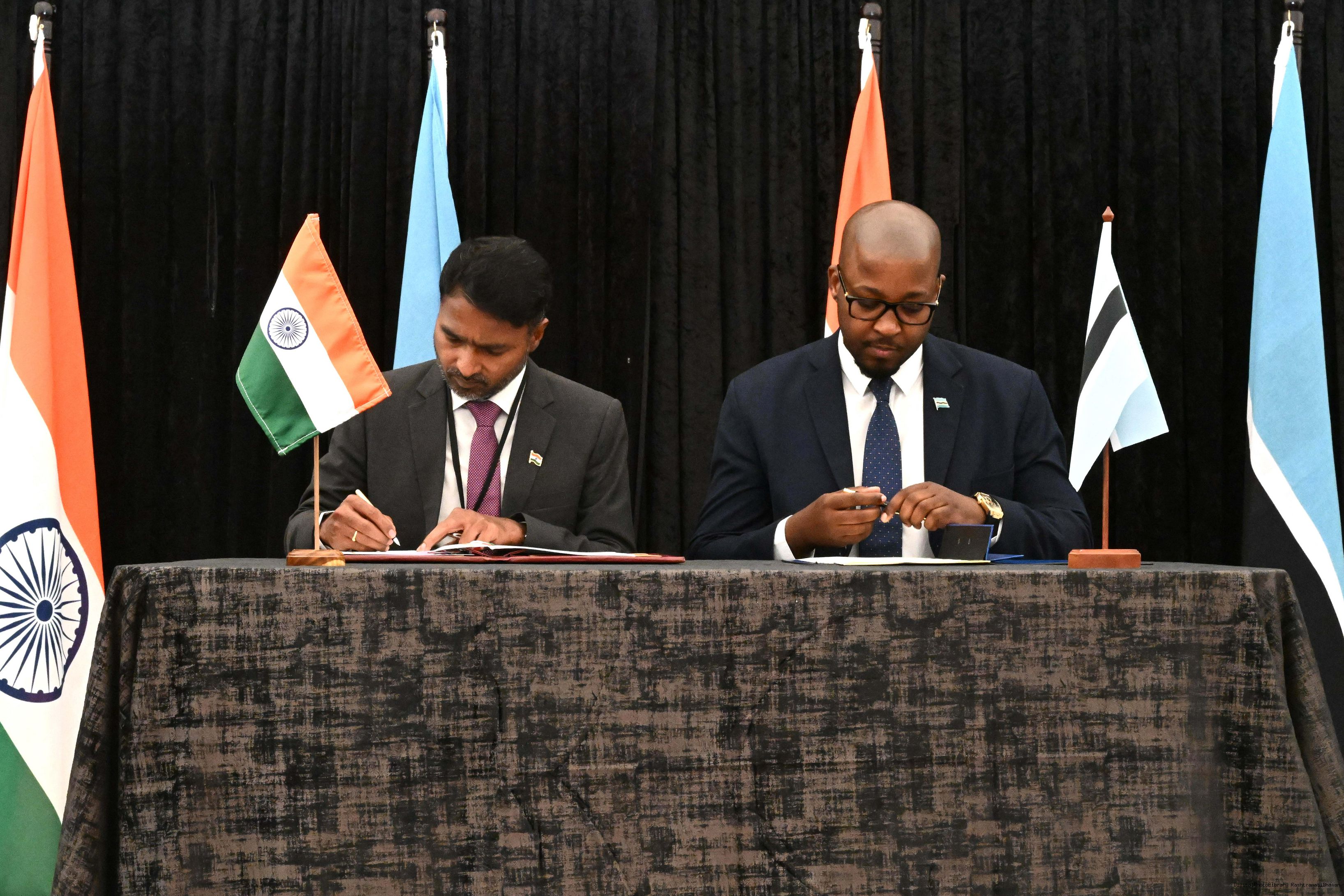 | Caption: | The President of India, Smt. Droupadi Murmu signing and exchange of MOUs at Gaborone, Botswana on November 12, 2025. |