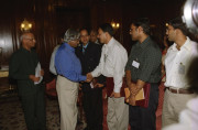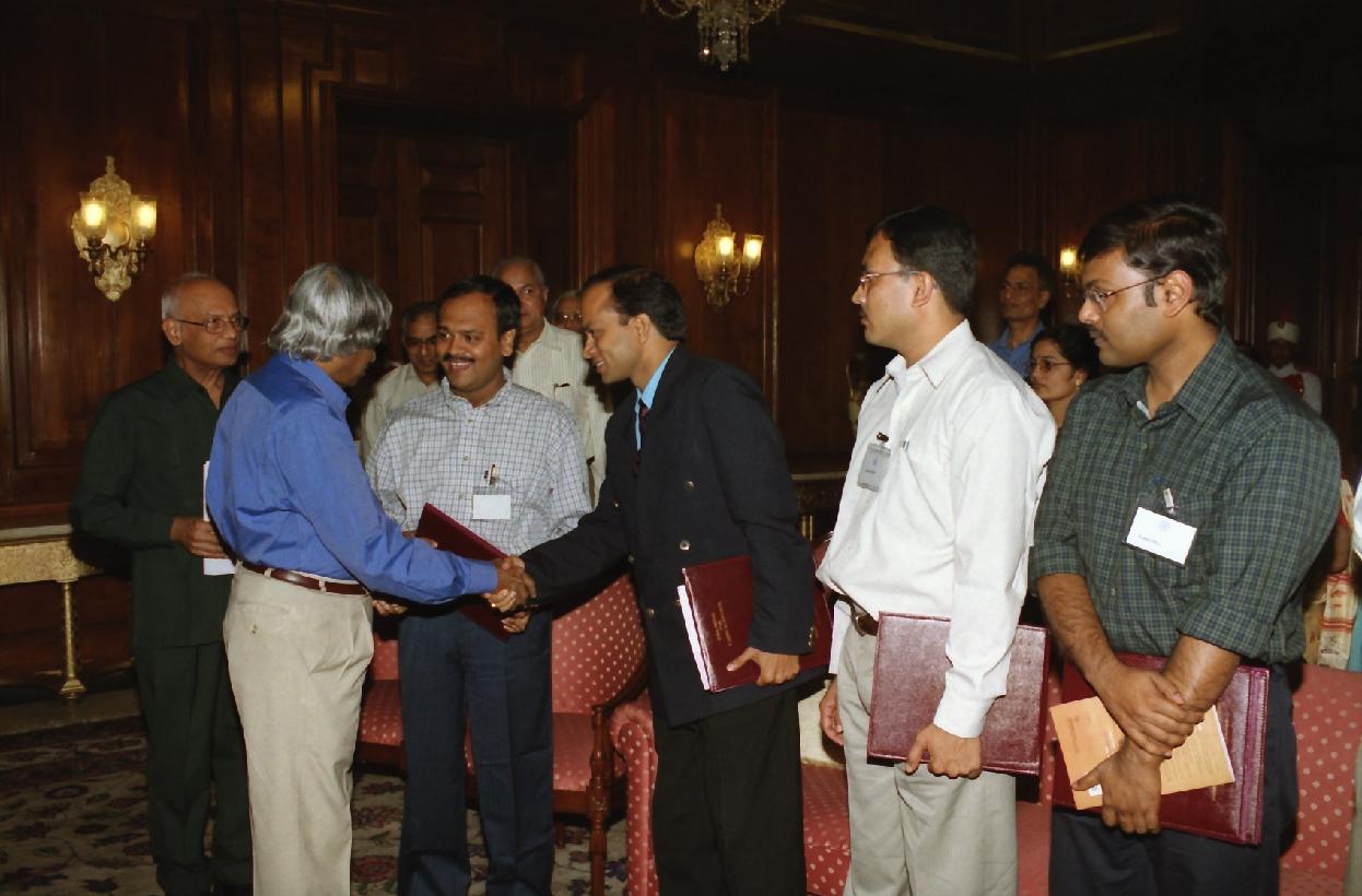 | Caption: | The President of India, Dr A P J Abdul Kalam receiving the Young Scientists Awardees Selected by the Indian National Science Academy and the Members of the Council of the Academy at the Yellow Drawing Room of Rashtrapati Bhavan in New Delhi on Oct 07, 2002 |