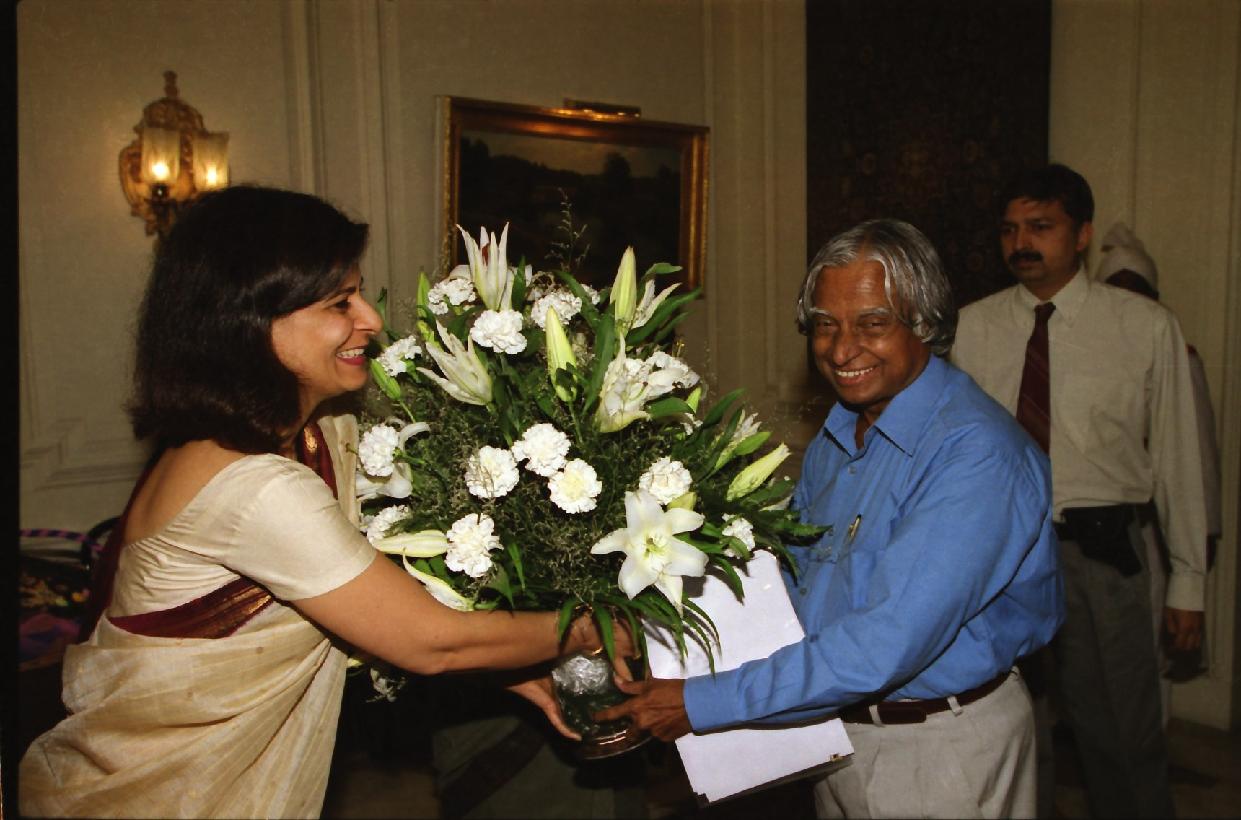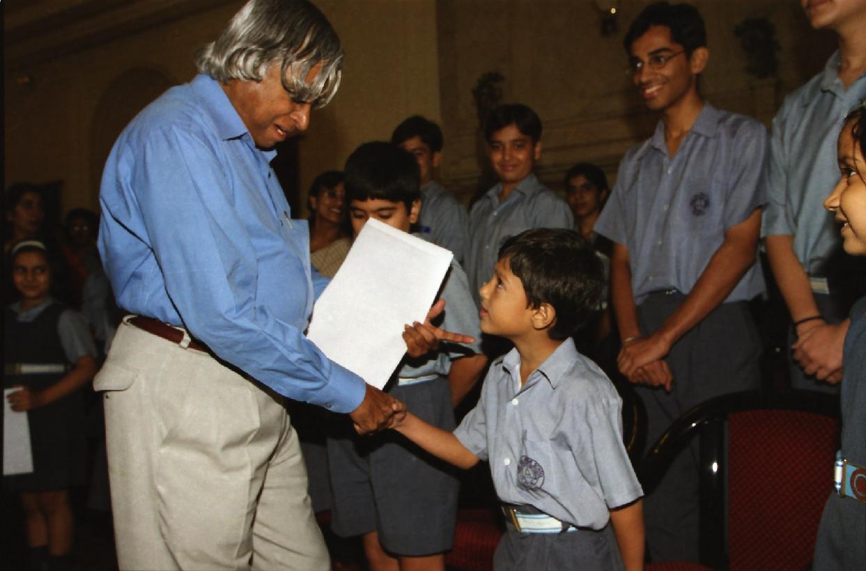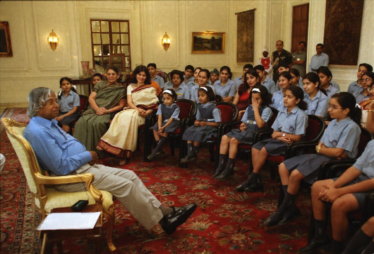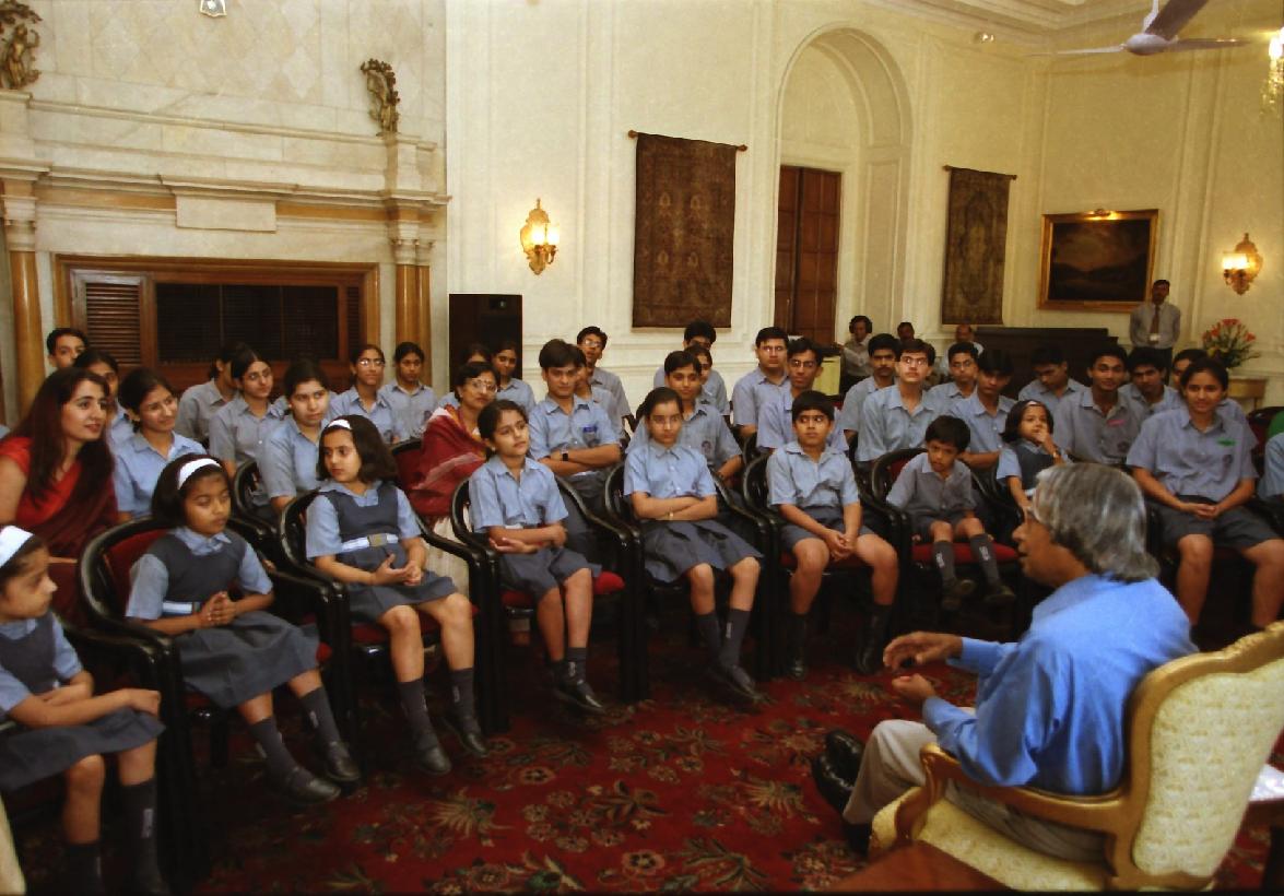 | Caption: | The President of India, Dr A P J Abdul Kalam meeting with the Students and Staff from New Era Public School, Mayapuri Road at the Yellow Drawing Room of Rashtrapati Bhavan in New Delhi on Oct 09, 2002 |