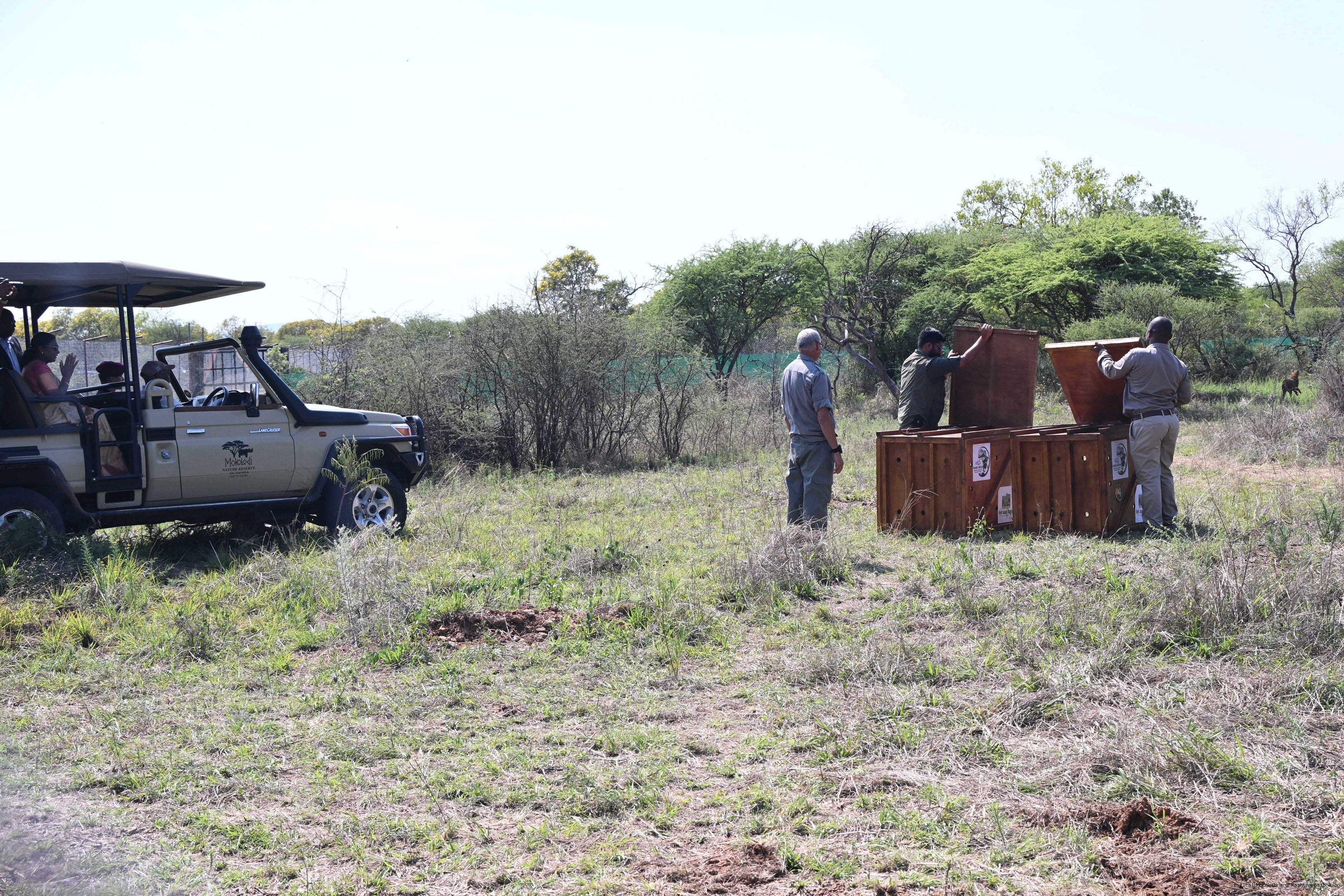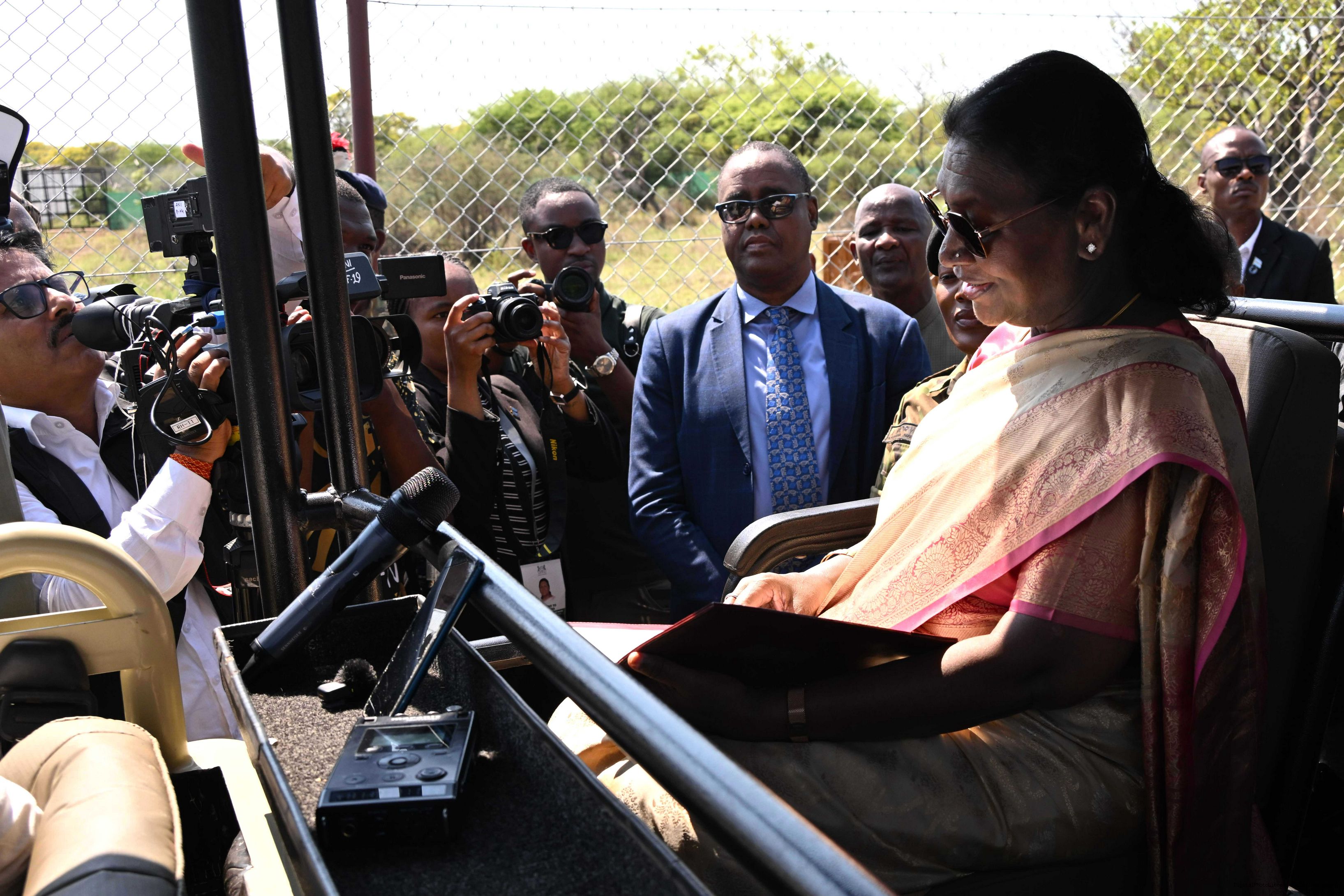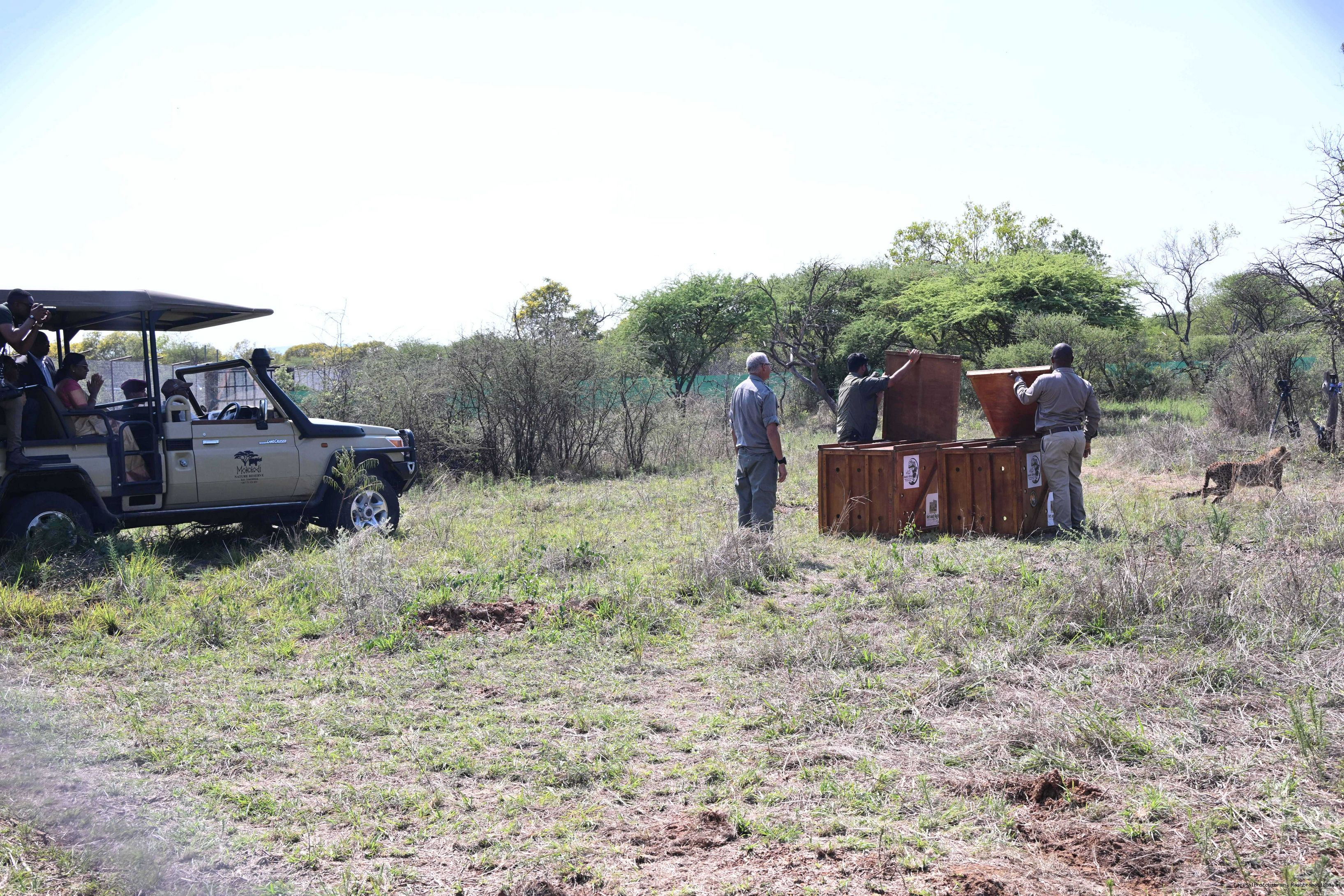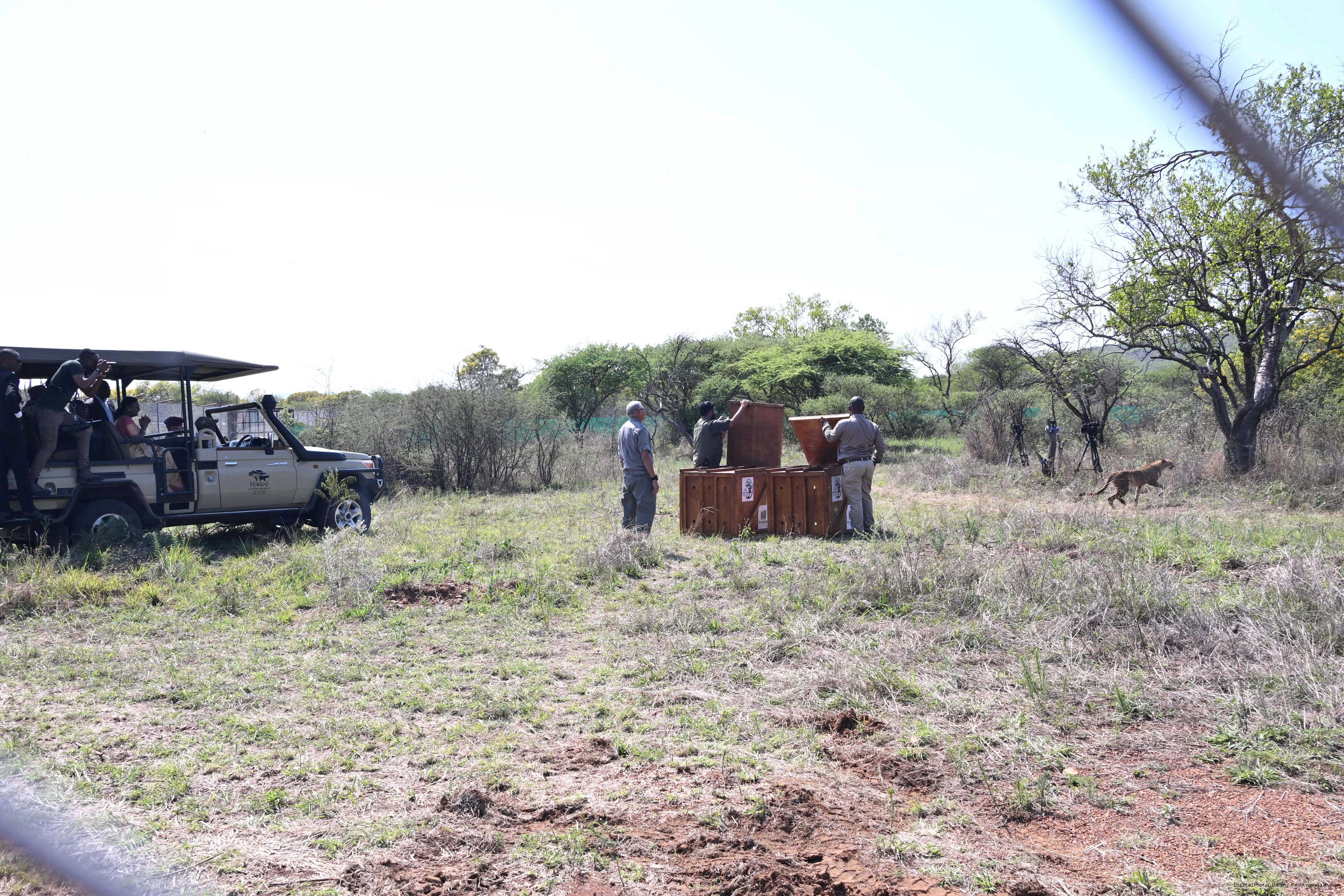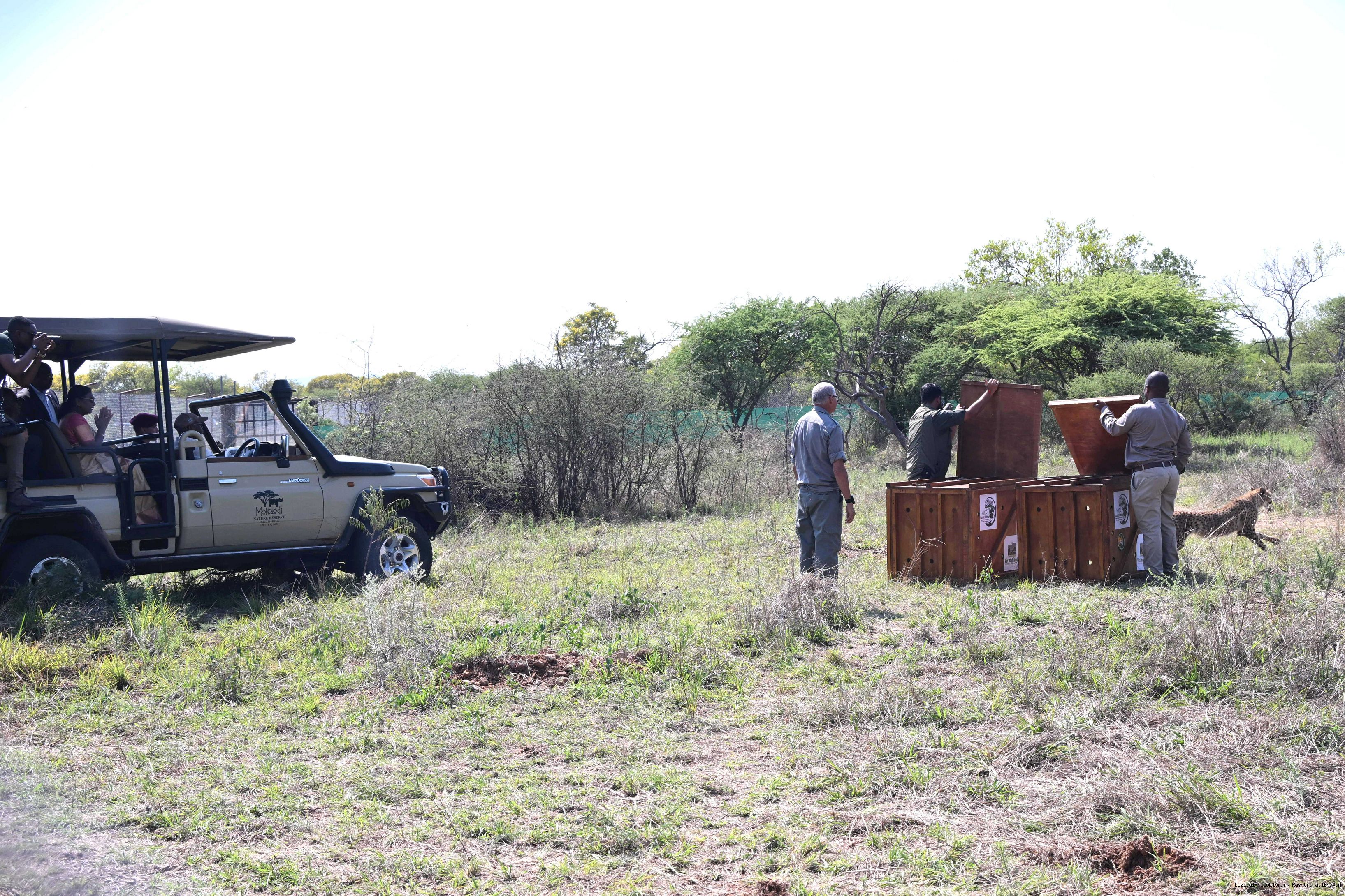 | Caption: | The President of India, Smt Droupadi Murmu and President Duma Gideon Boko witnessed the release of captured cheetahs originating from Botswana's Ghanzi region into the quarantine facility by experts from India and Botswana on November 12, 2025. |