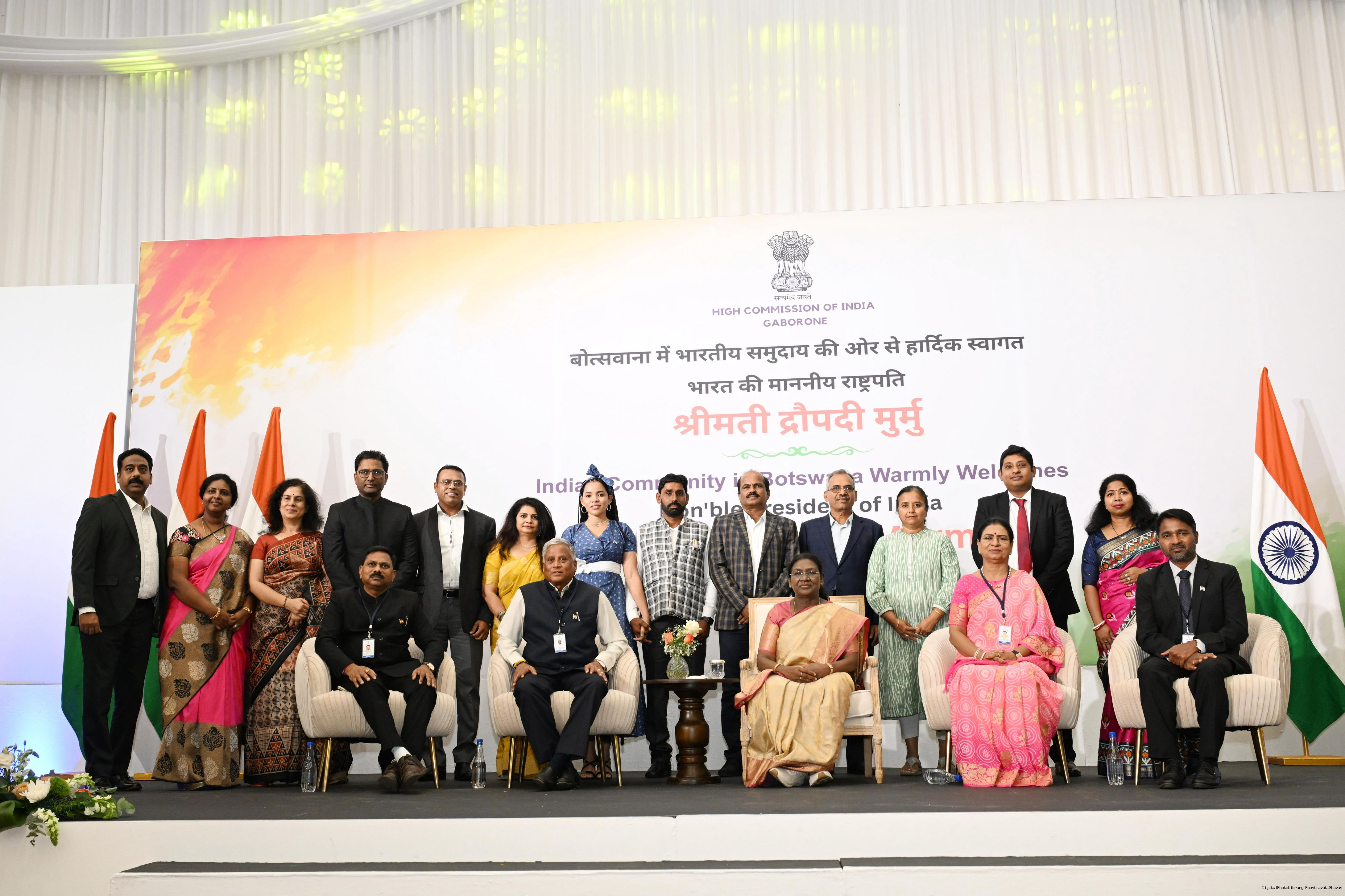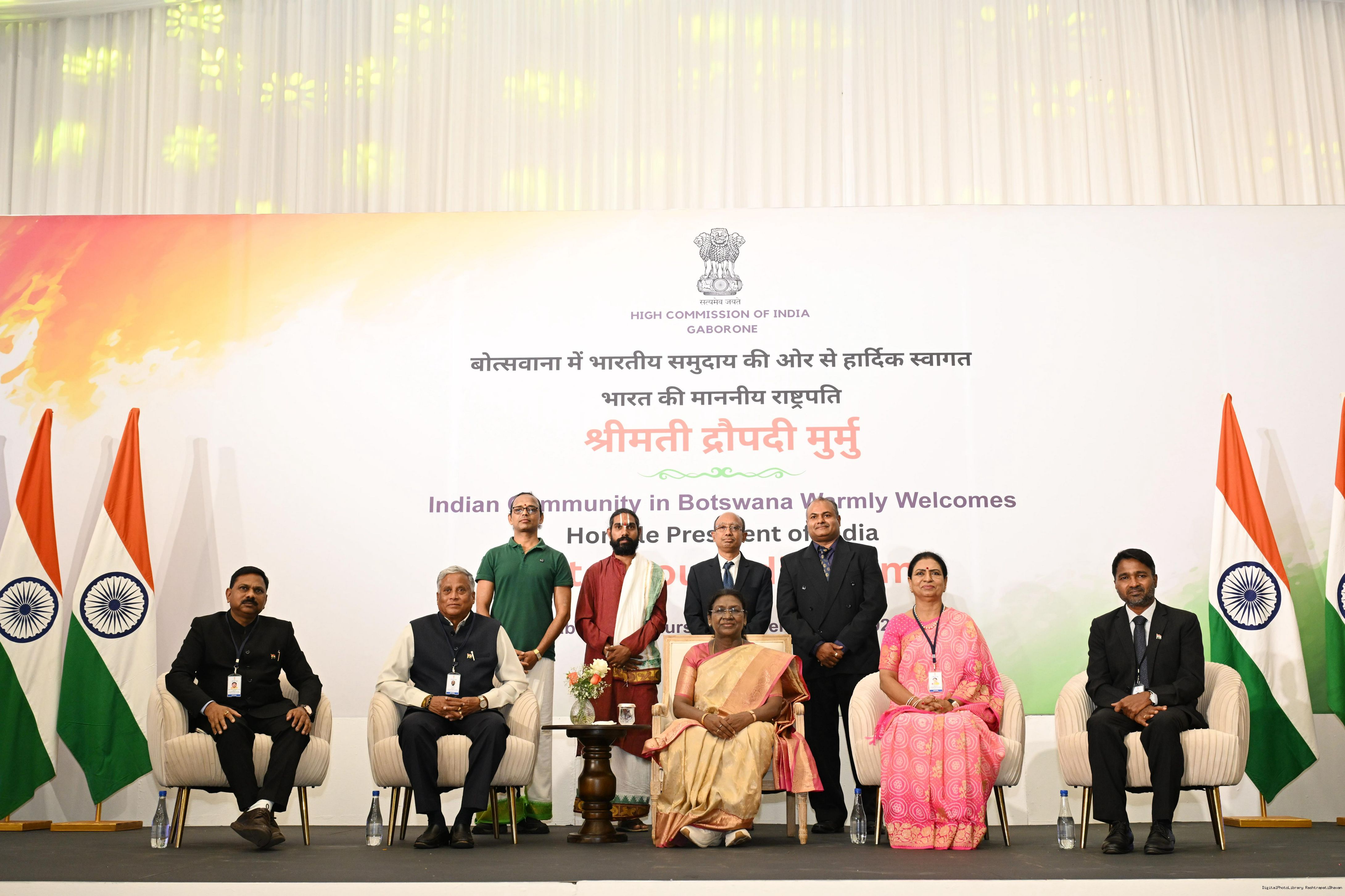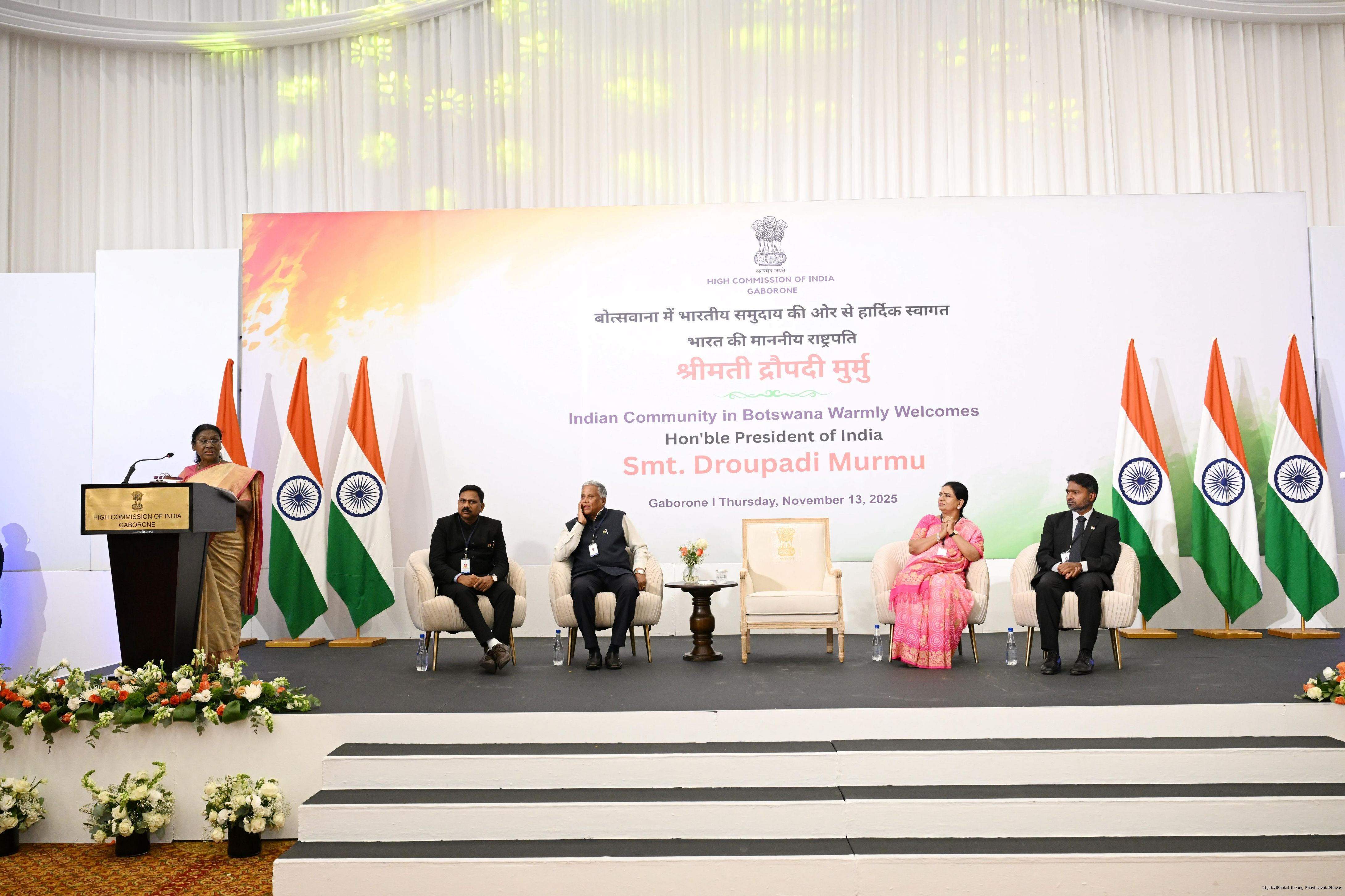 | Caption: | The President of India, Smt Droupadi Murmu addressed the members of Indian Community at a Reception hosted by the High Commissioner of India to Botswana at Gaborone on November 13, 2025. |