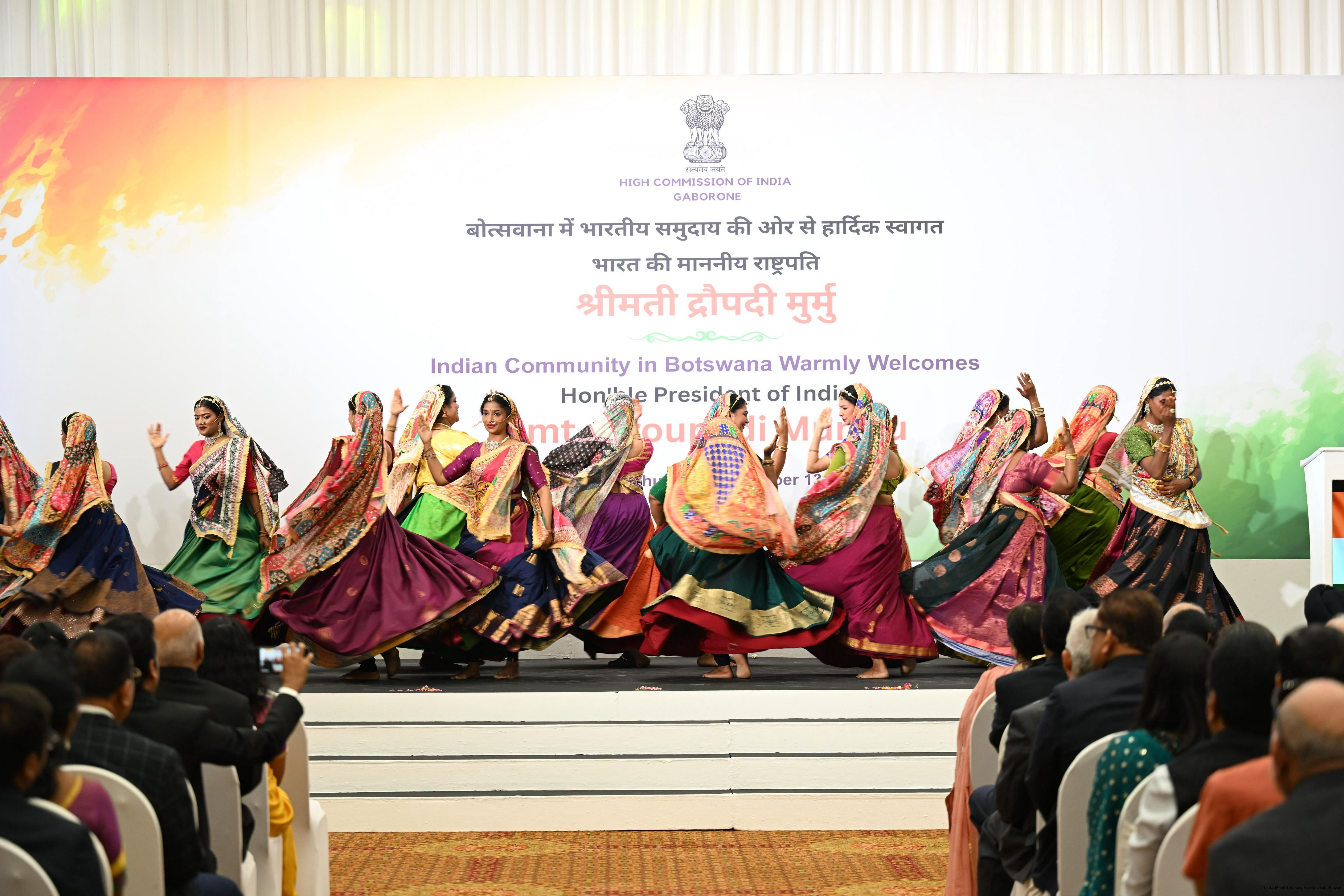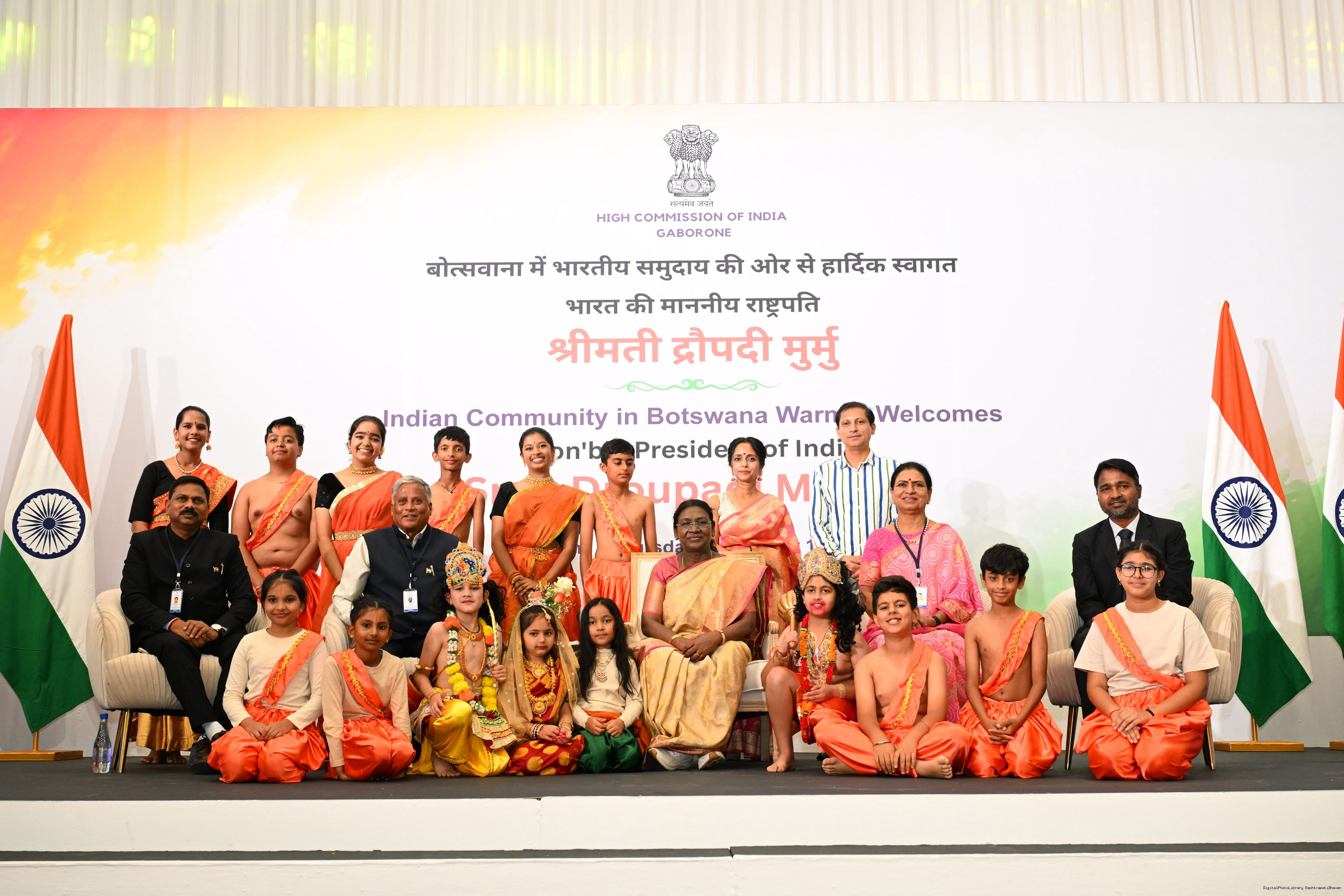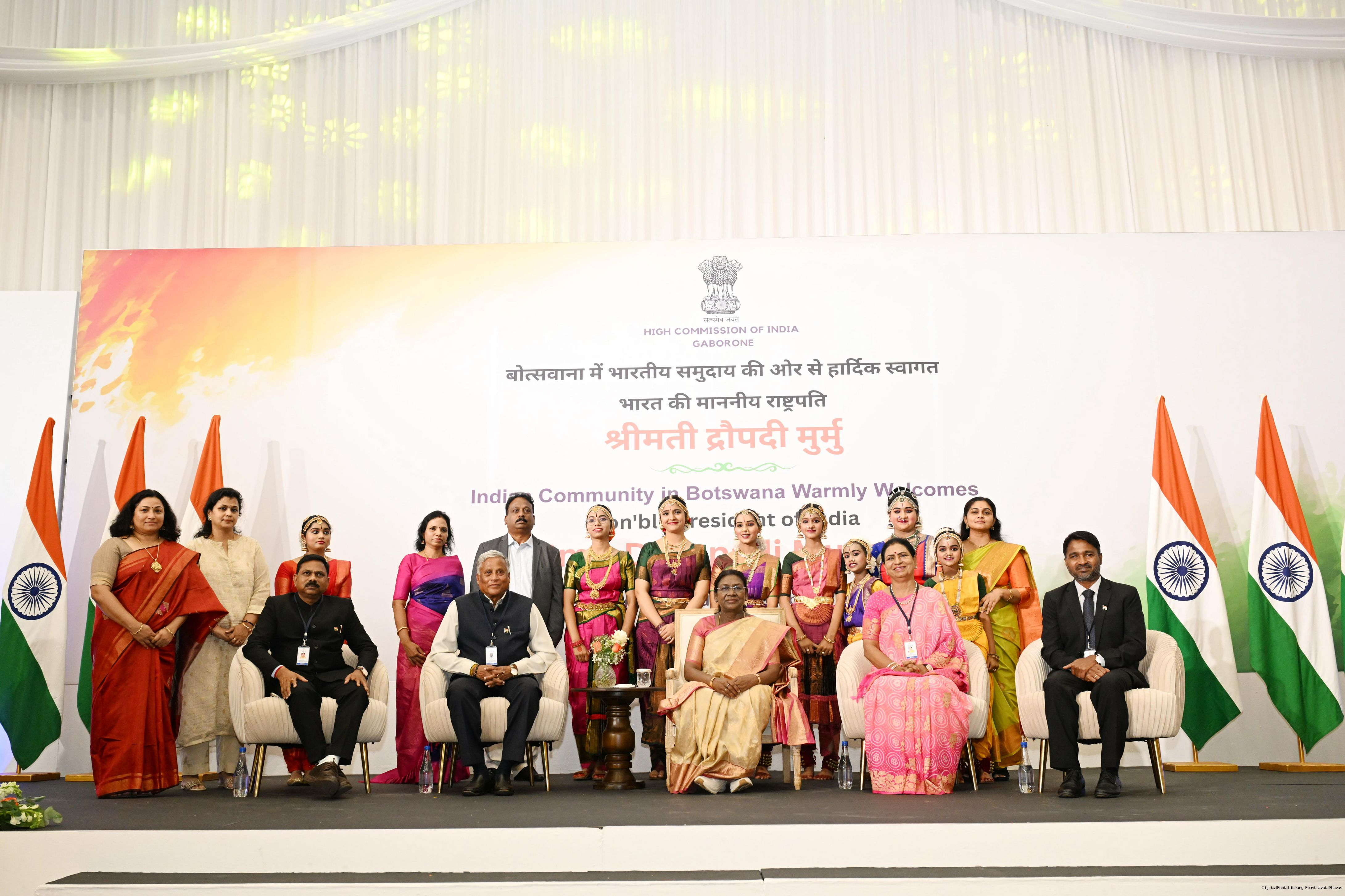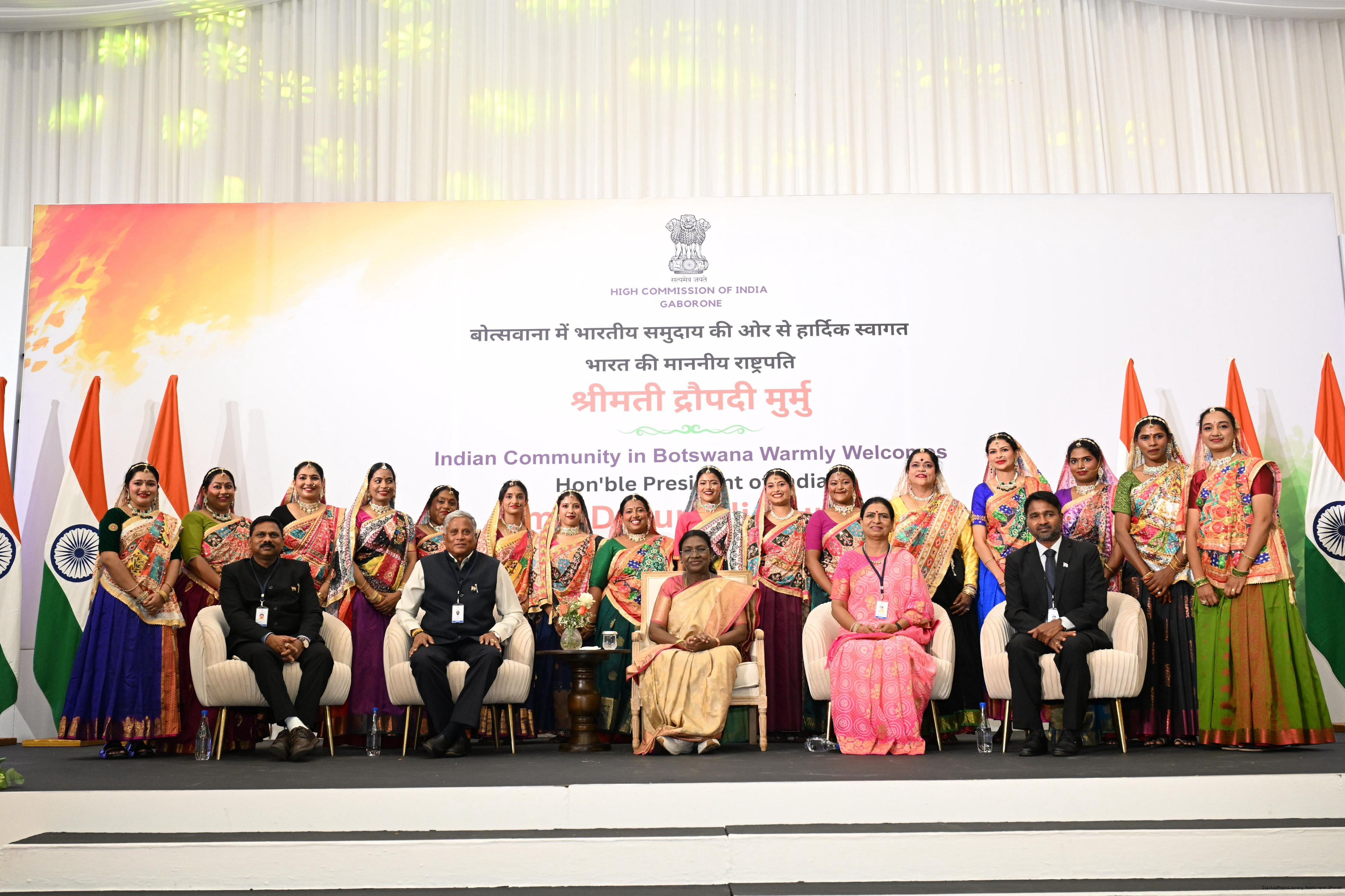 | Caption: | The President of India, Smt Droupadi Murmu addressed the members of Indian Community at a Reception hosted by the High Commissioner of India to Botswana at Gaborone on November 13, 2025. |