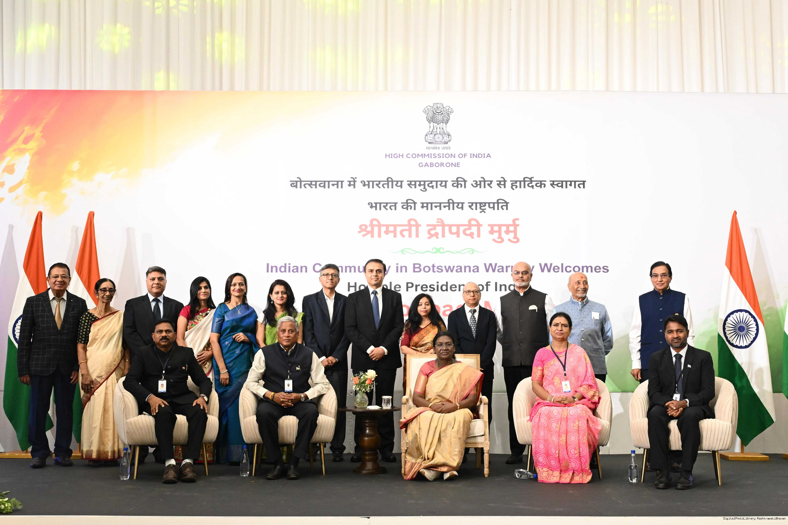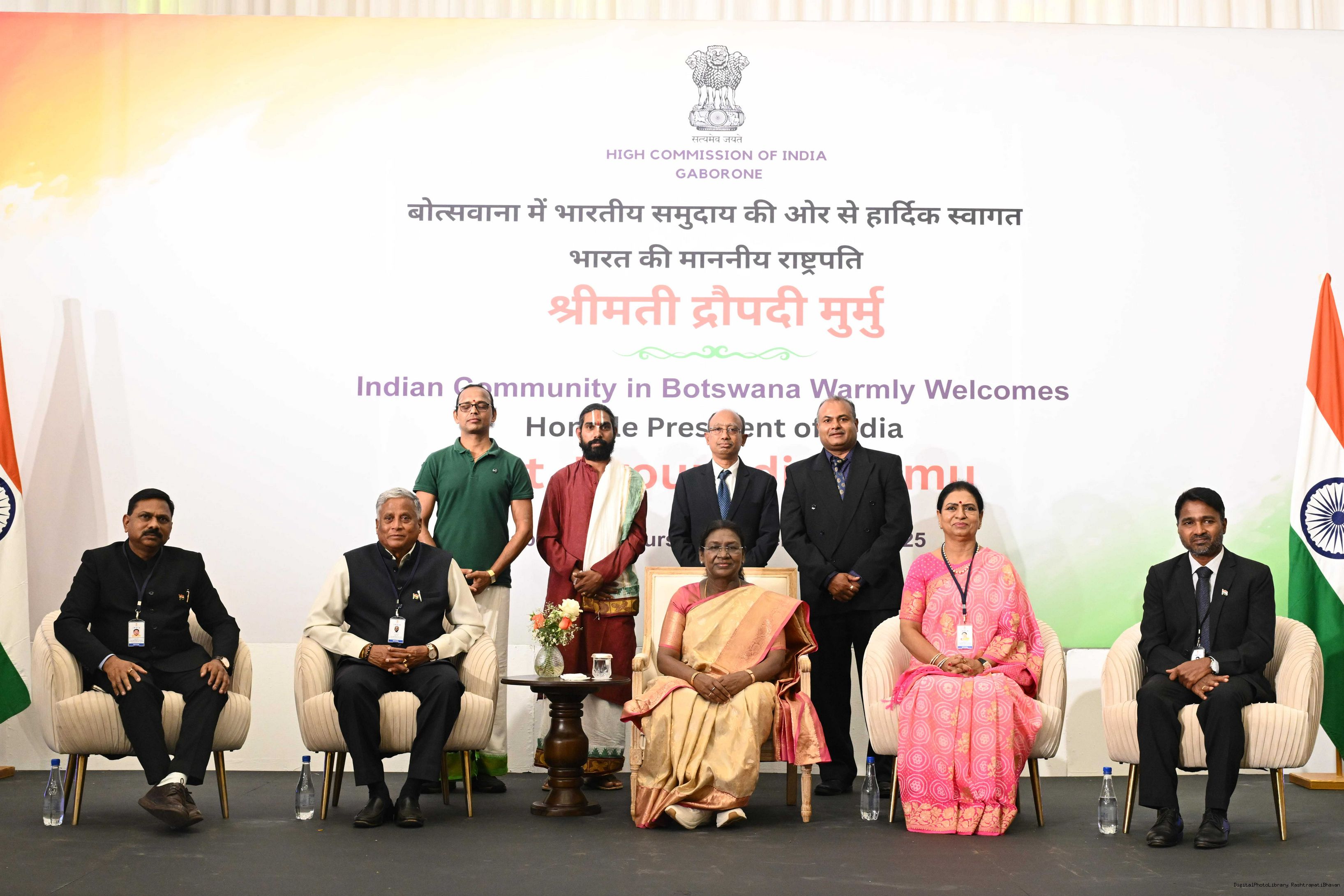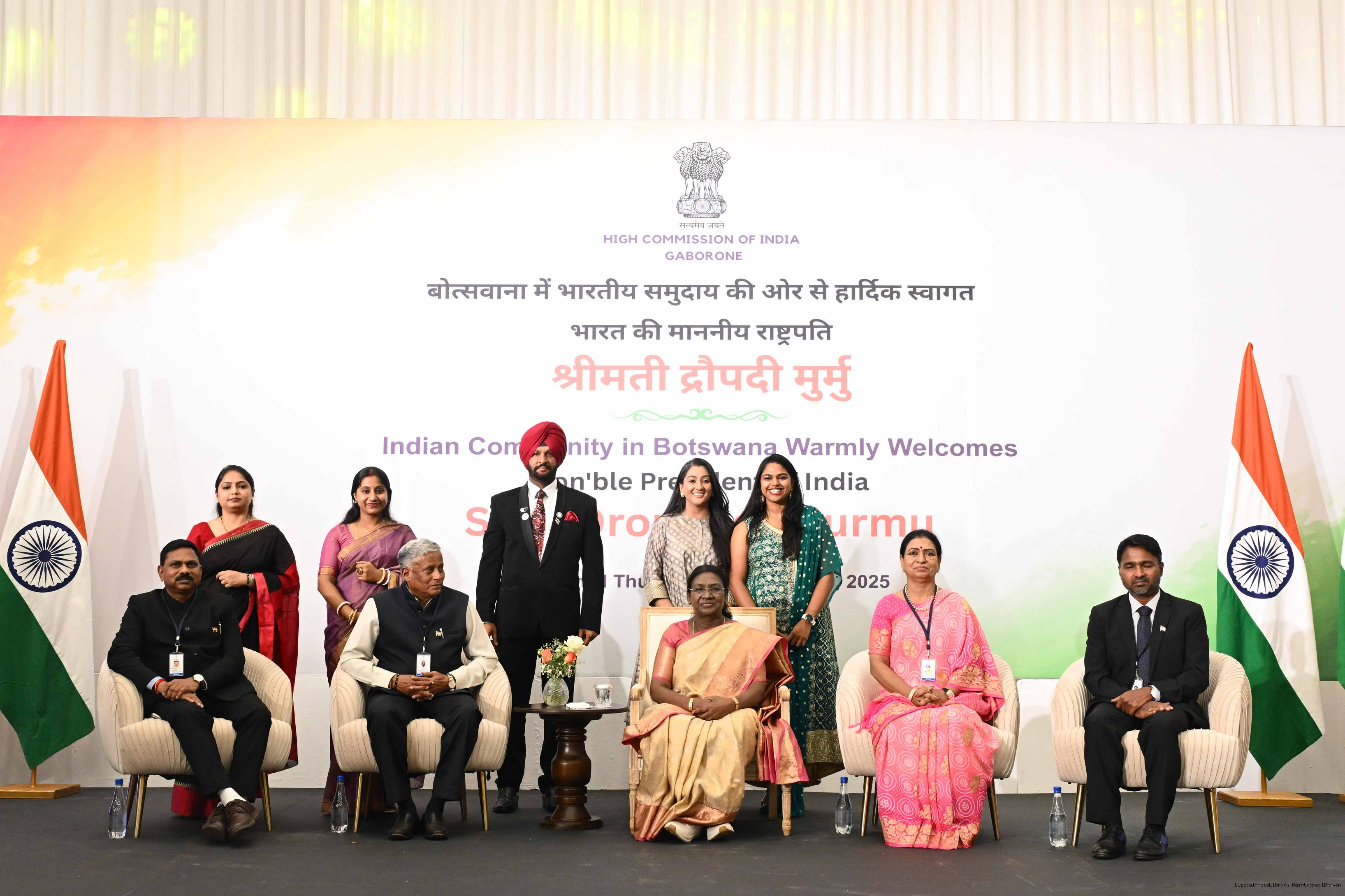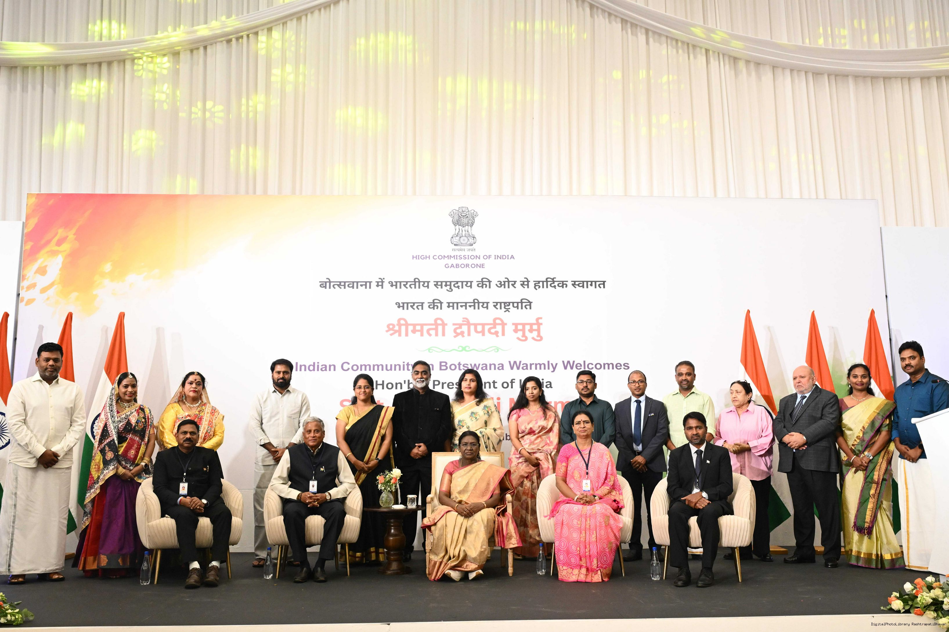 | Caption: | The President of India, Smt Droupadi Murmu addressed the members of Indian Community at a Reception hosted by the High Commissioner of India to Botswana at Gaborone on November 13, 2025. |