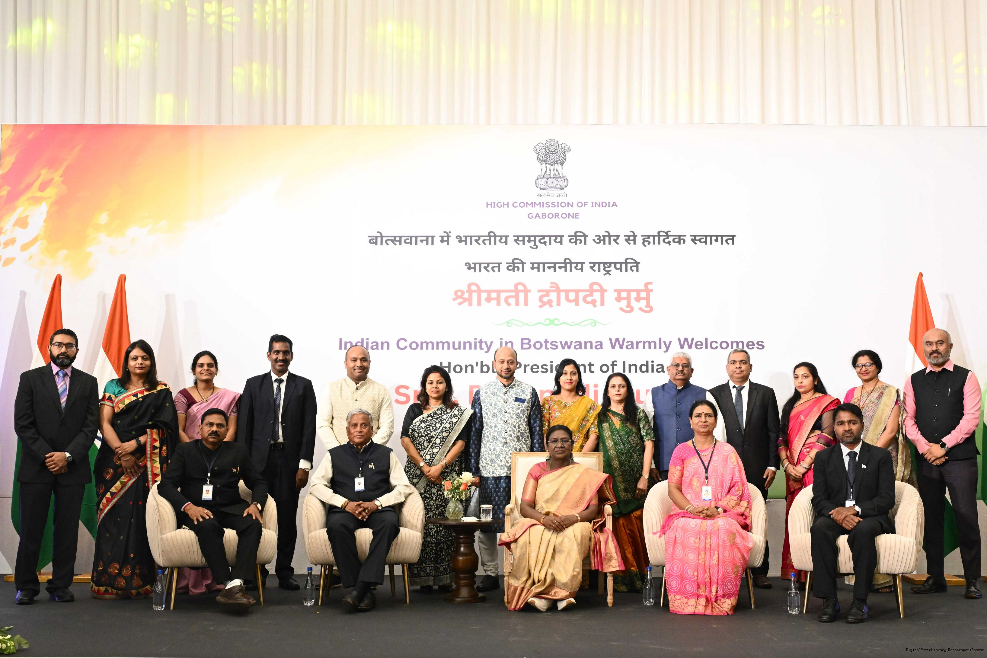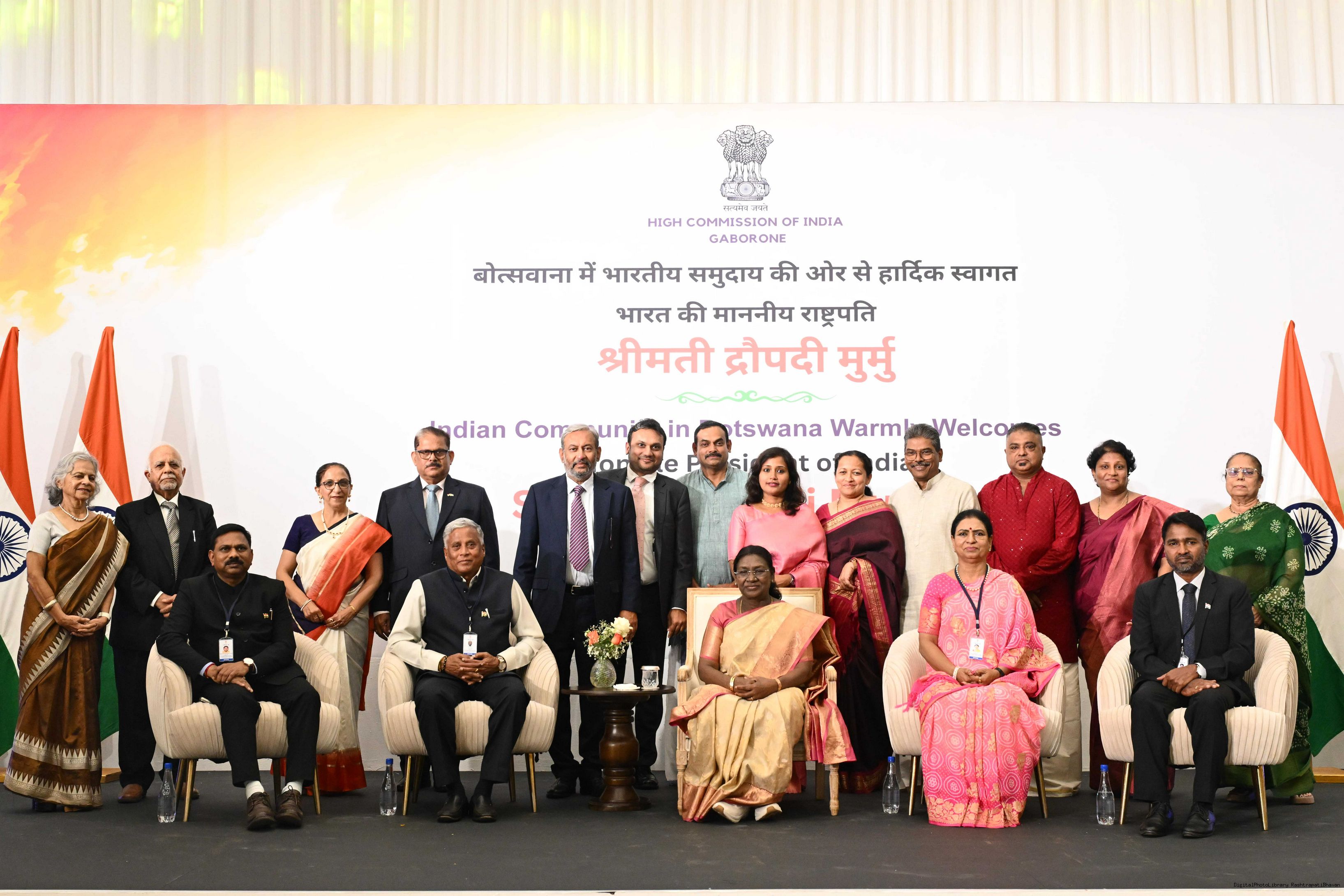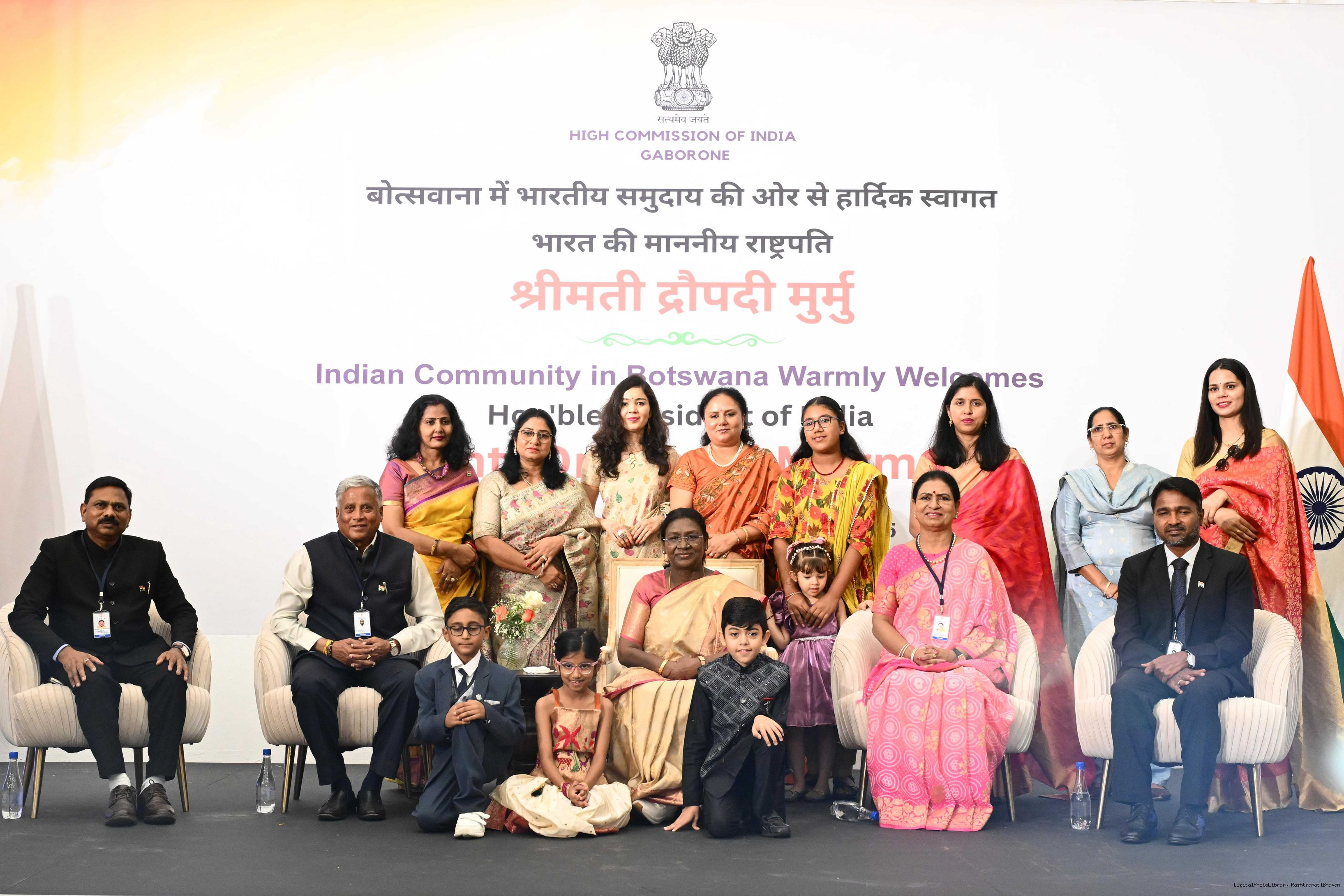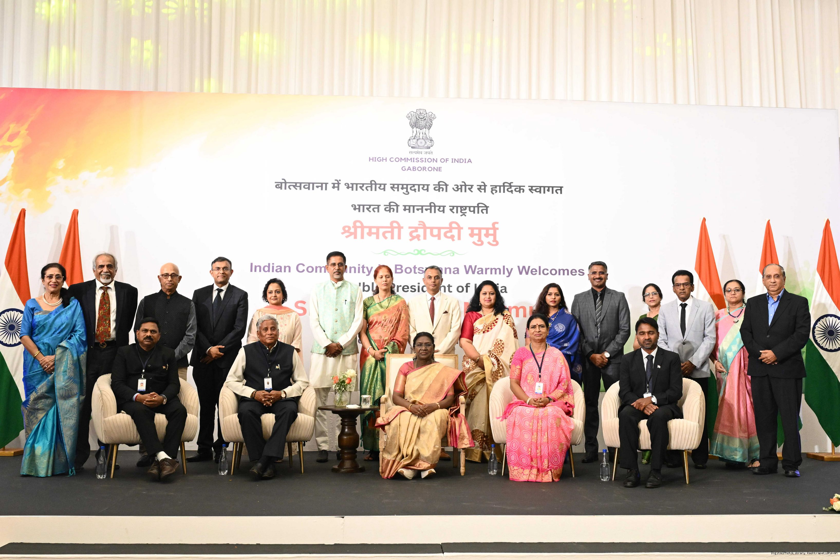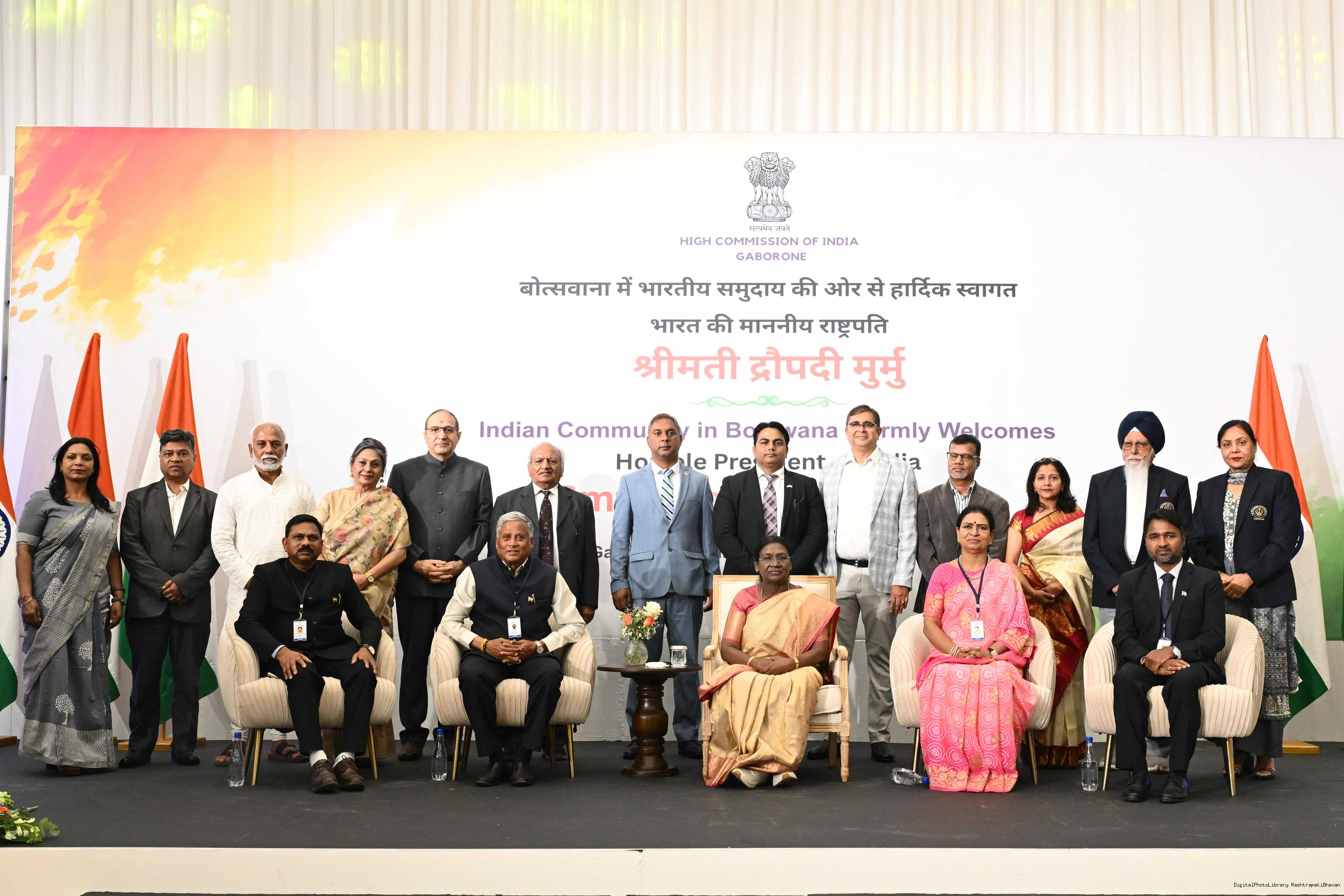 | Caption: | The President of India, Smt Droupadi Murmu addressed the members of Indian Community at a Reception hosted by the High Commissioner of India to Botswana at Gaborone on November 13, 2025. |